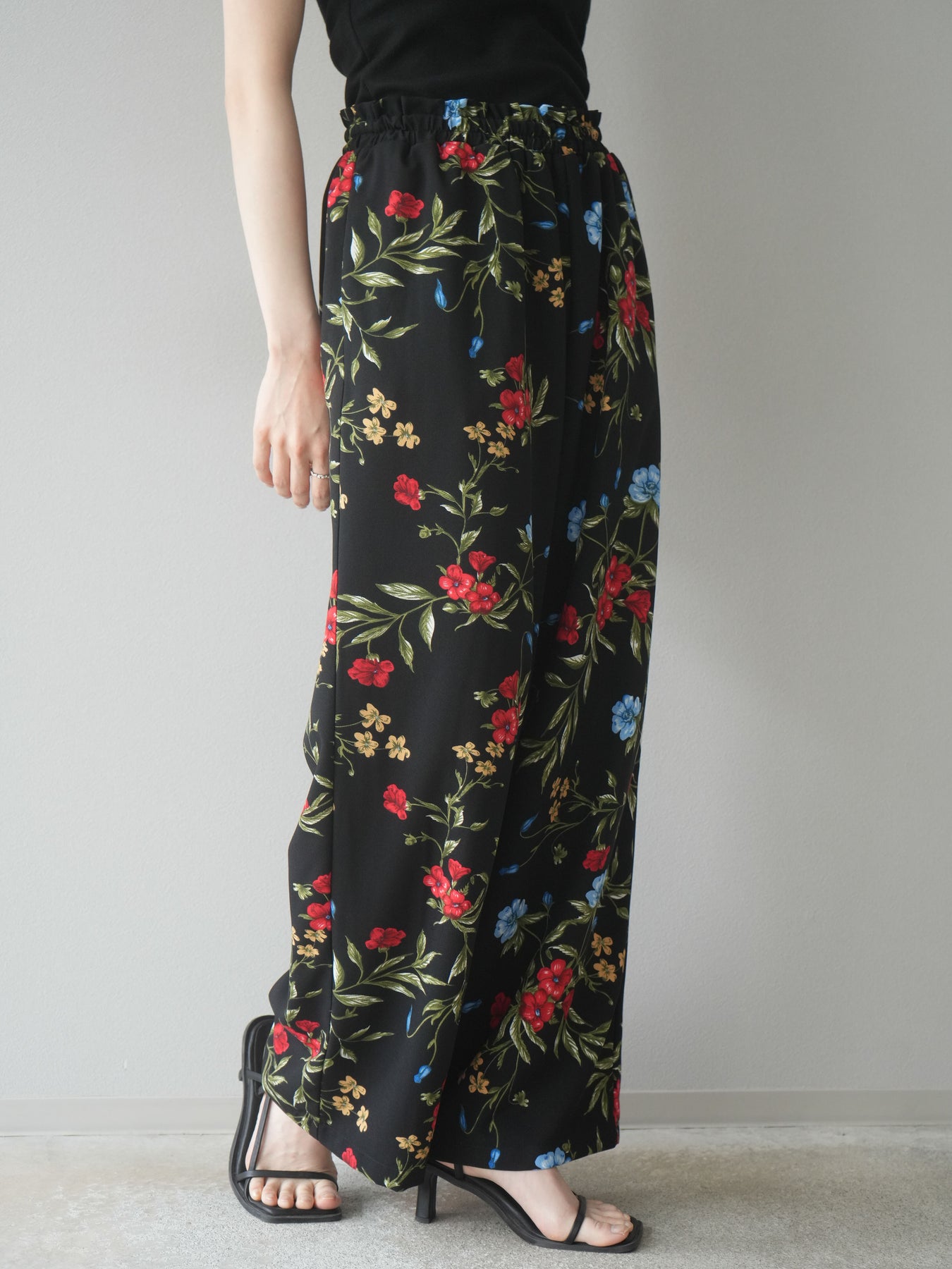 這款休閒褲散發著輕鬆的氛圍,鮮豔的植物圖案引人注目。輕盈的布料和直筒輪廓,不僅舒適貼身,更能凸顯腿部線條。腰部採用全鬆緊設計,穿著舒適無壓力。雖然圖案華麗,但黑色底色易於搭配其他單品,只需搭配簡單的上衣即可打造完美造型。這款印花褲非常適合成年人穿著,無論是日常穿著還是度假造型,都能輕鬆駕馭。