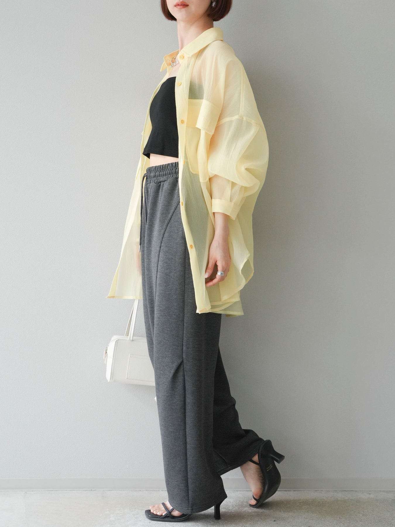 這款曲線褲採用輕盈的蓬鬆布料製成,彈性恰到好處。褲側採用立體曲線廓形,簡潔中不失活力。褲腰採用全彈性布料,穿著舒適。它與休閒上衣、襯衫和背心搭配,打造出幹練俐落的造型。