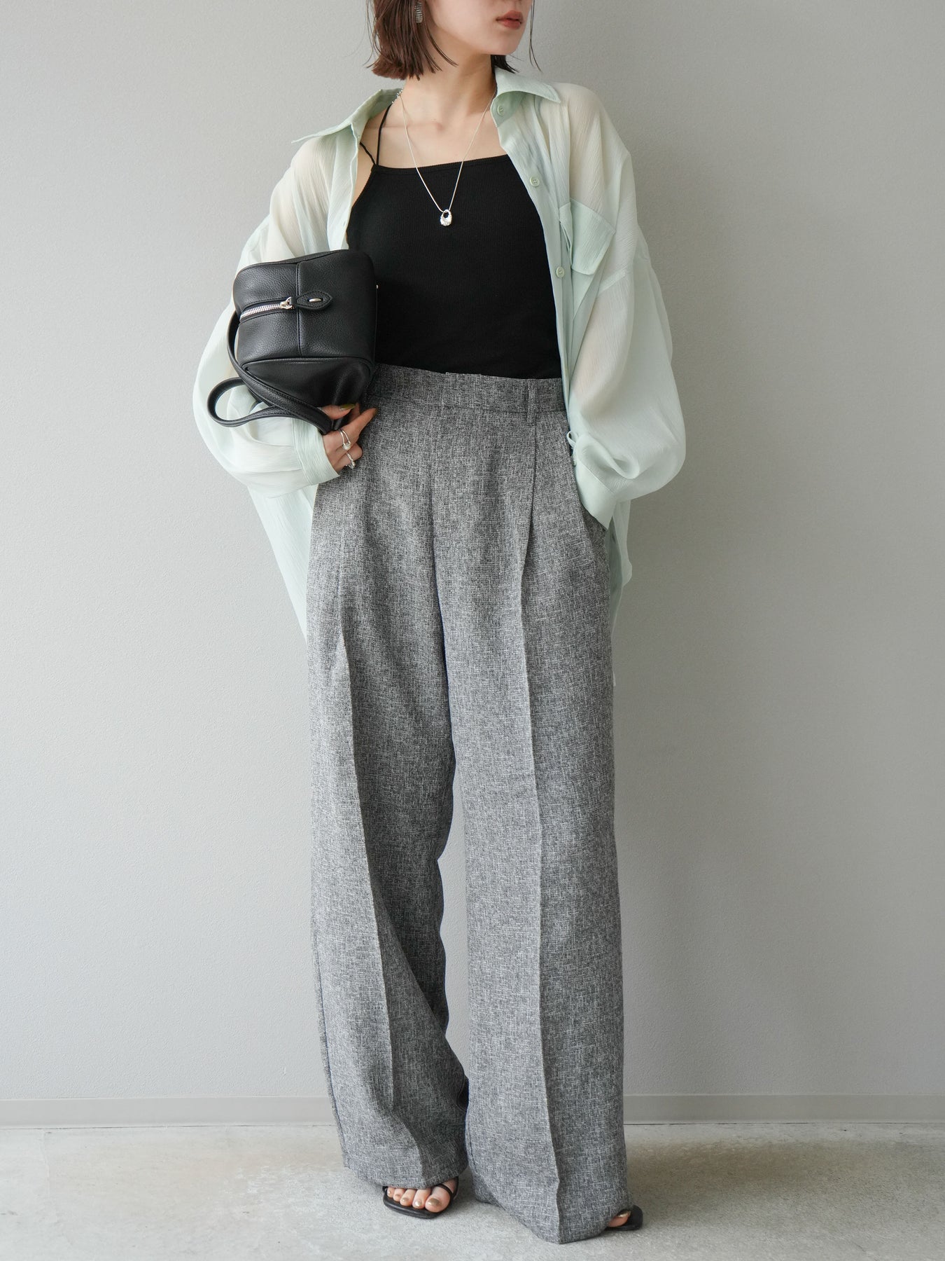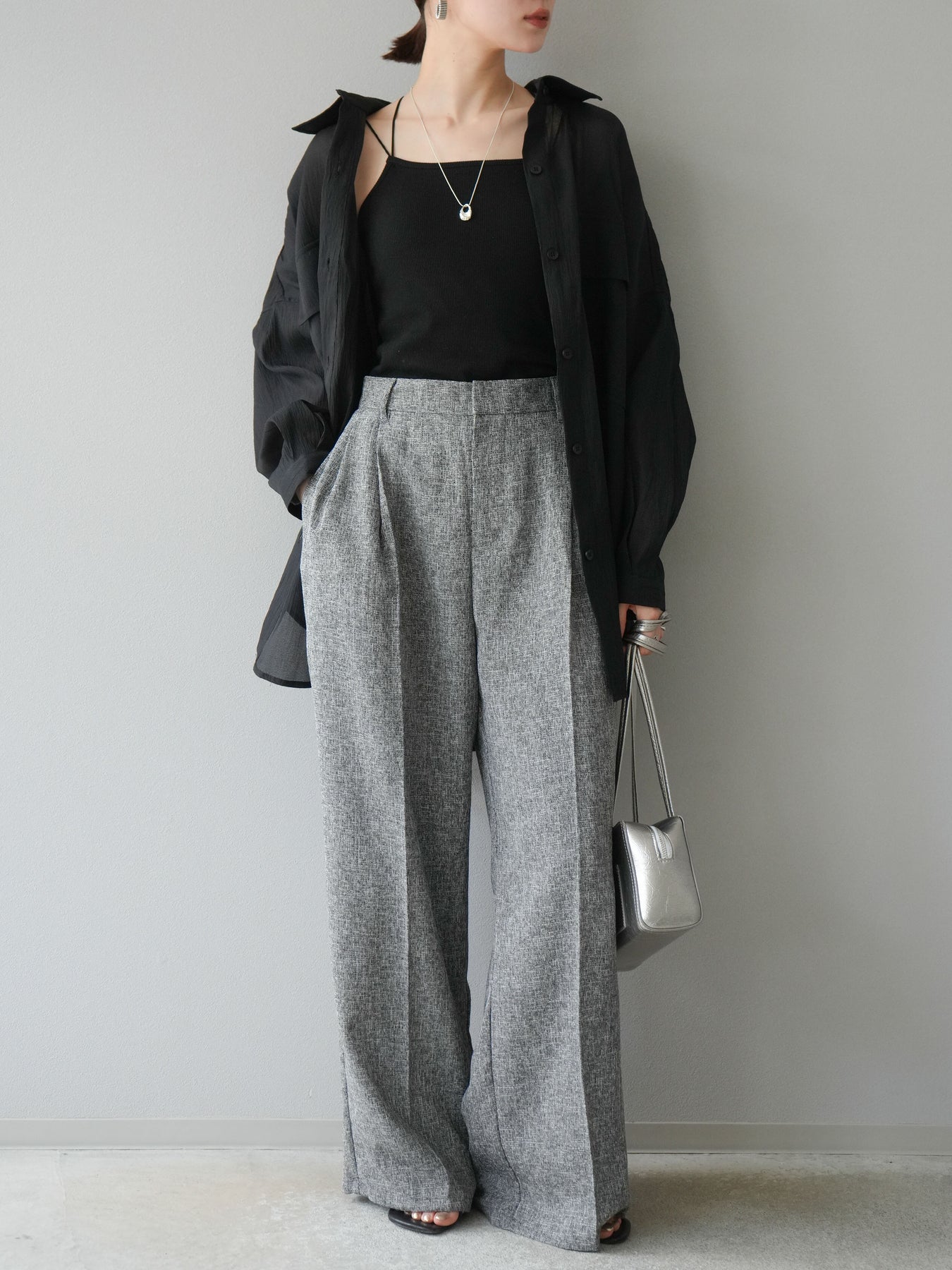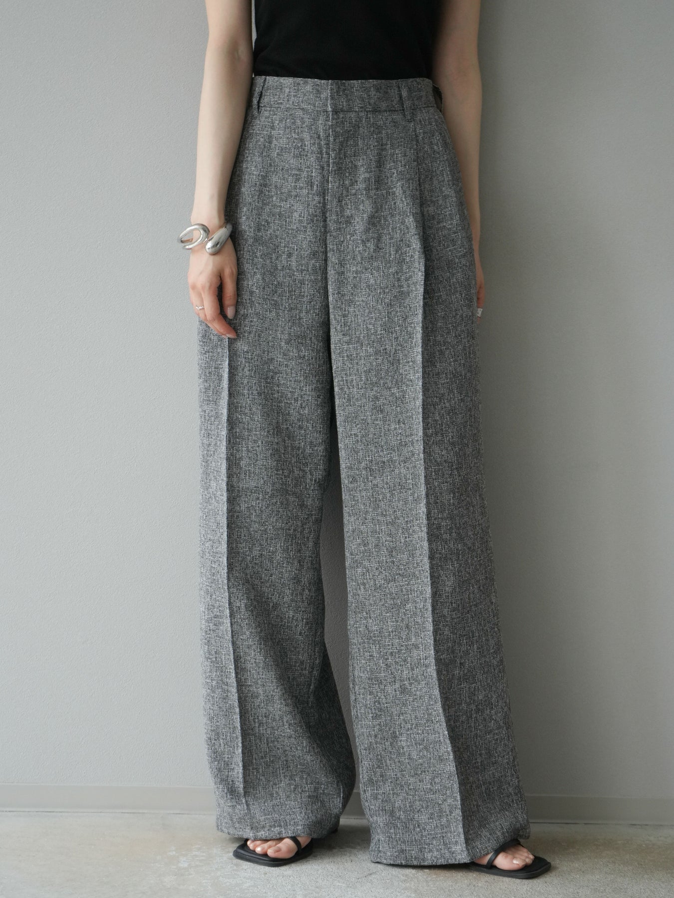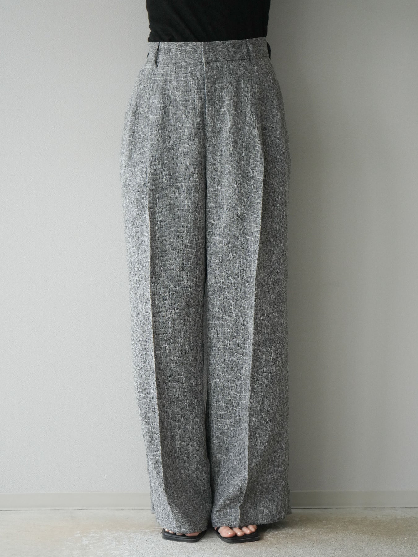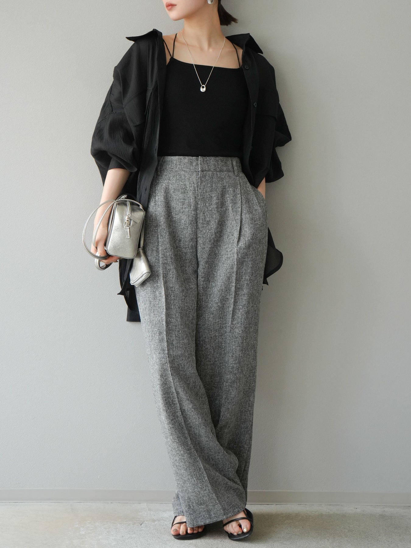 以富有表現力的混合粗花呢面料製成的寬褲。優雅的輪廓帶來輕鬆的穿著體驗,前側的褶襉設計則營造出立體俐落的造型。搭配高跟鞋可打造成熟造型,搭配運動鞋則可打造休閒造型。無論工作場合或休閒場合,這款褲子都值得信賴。
