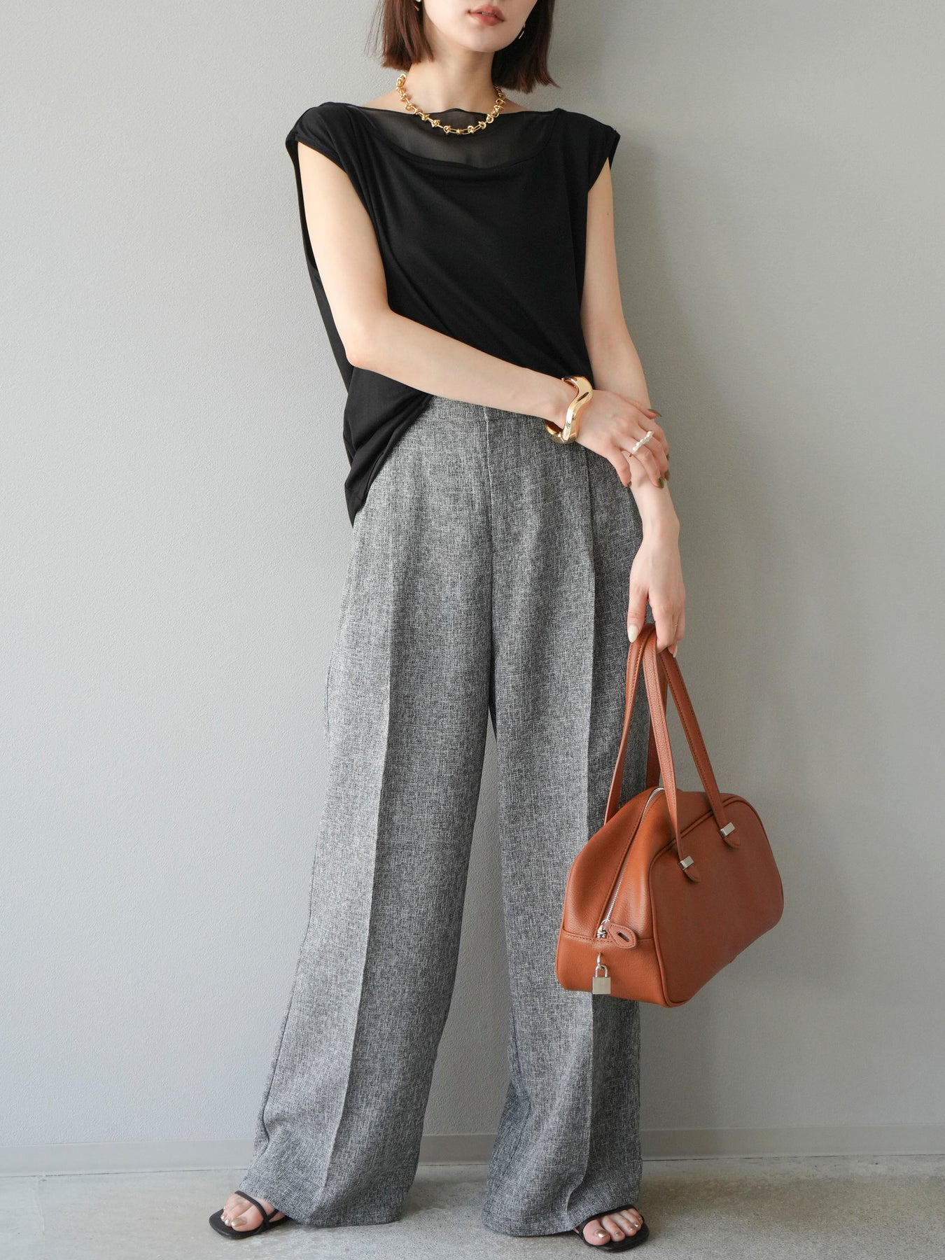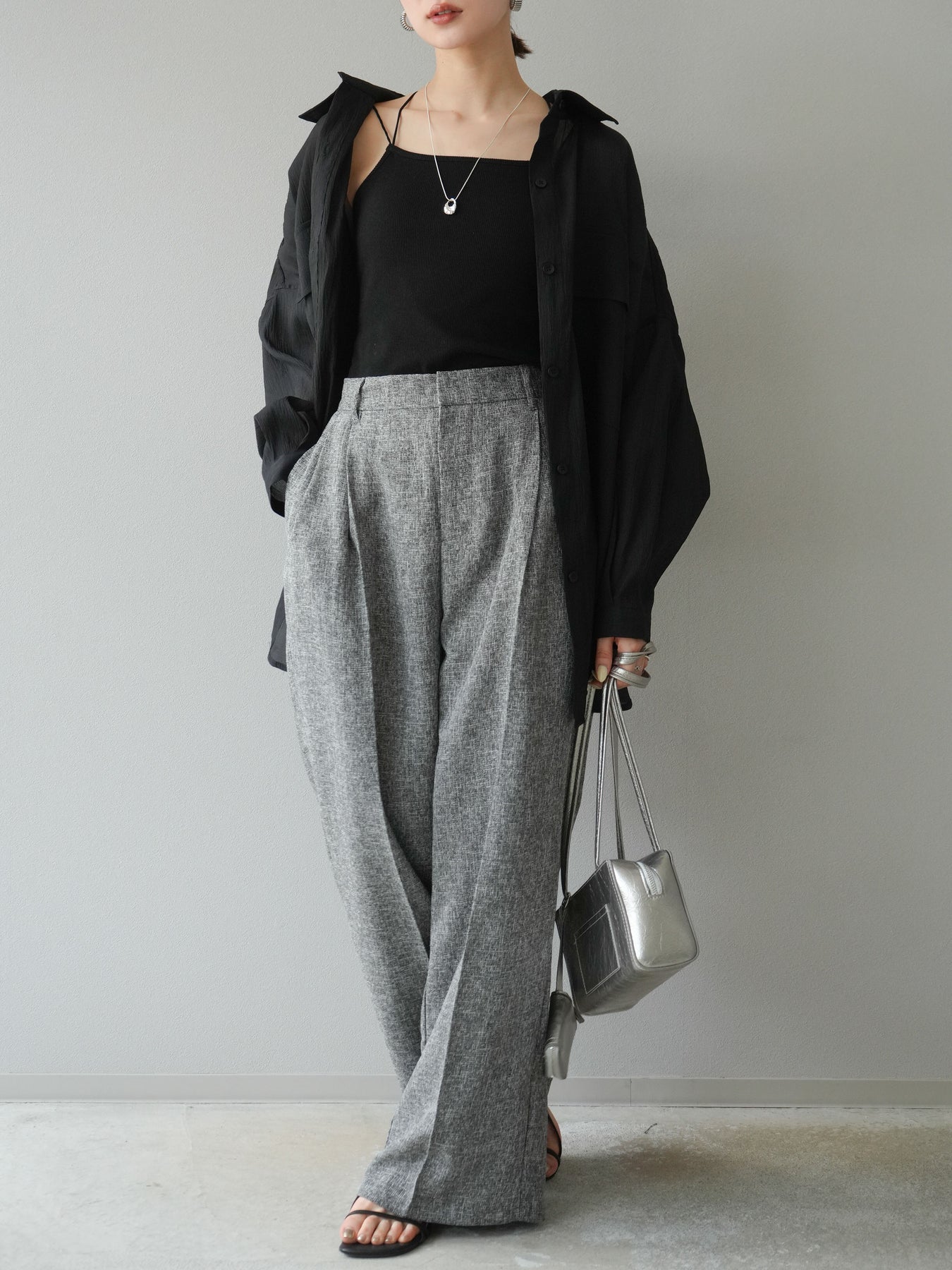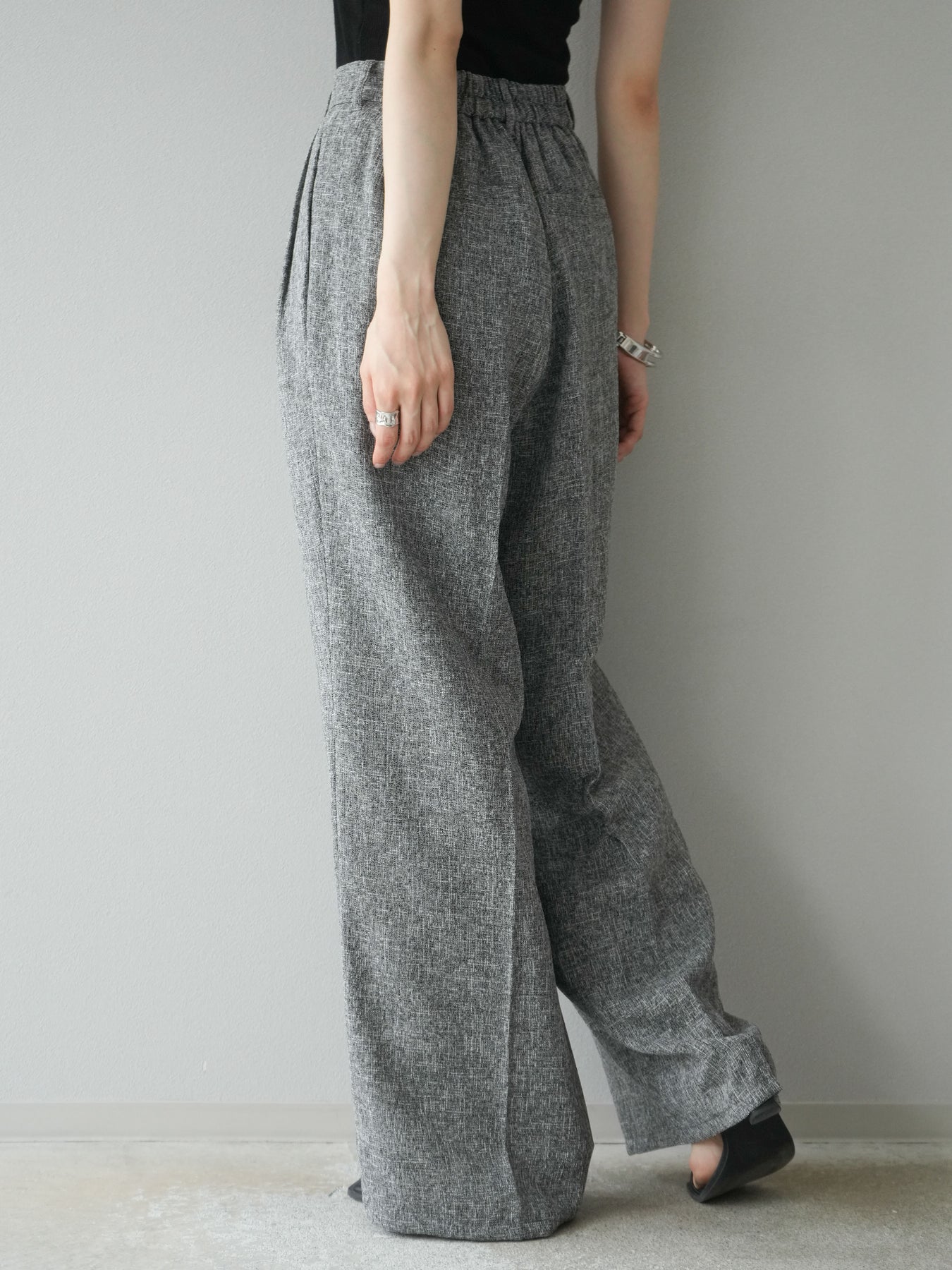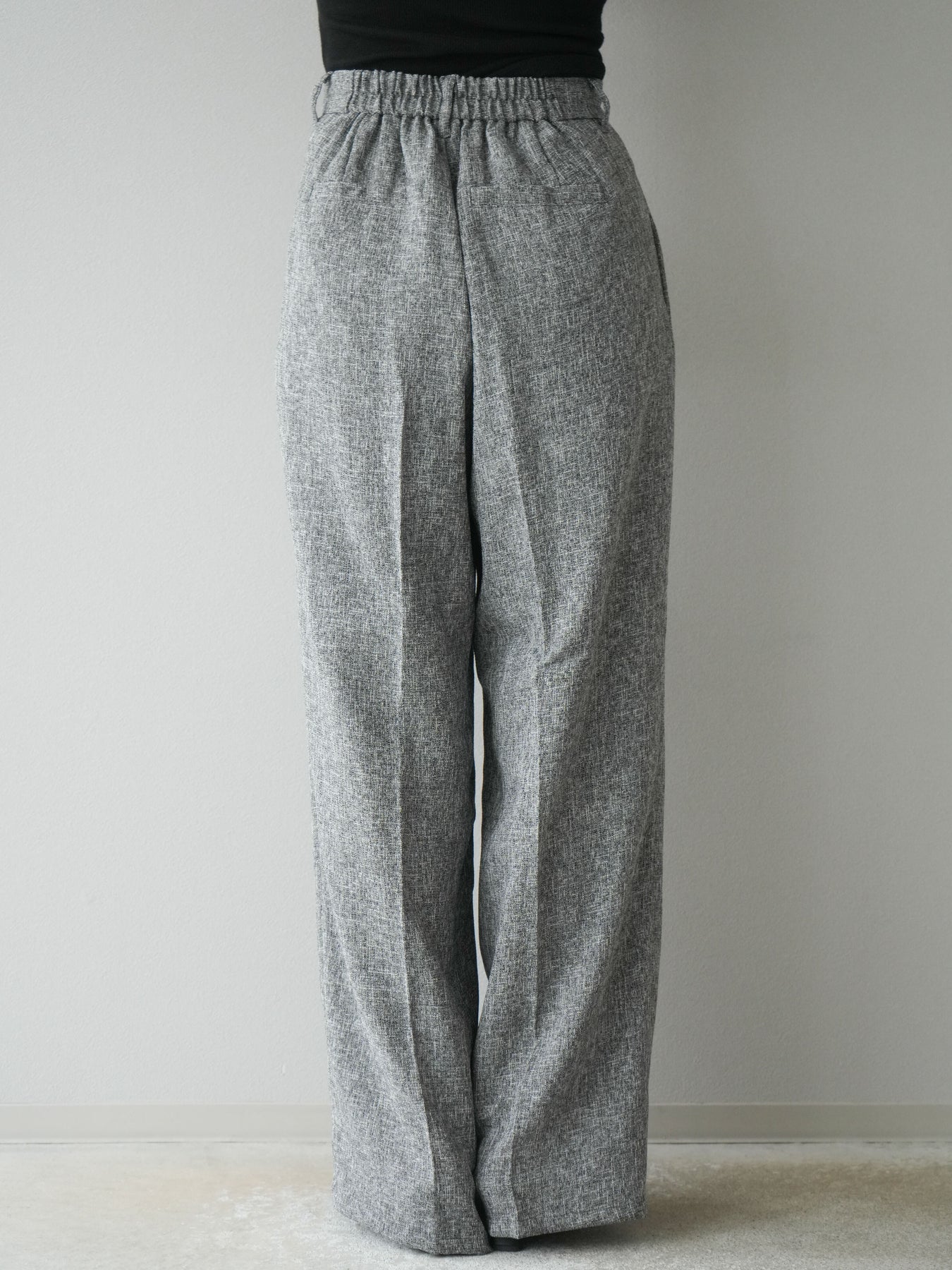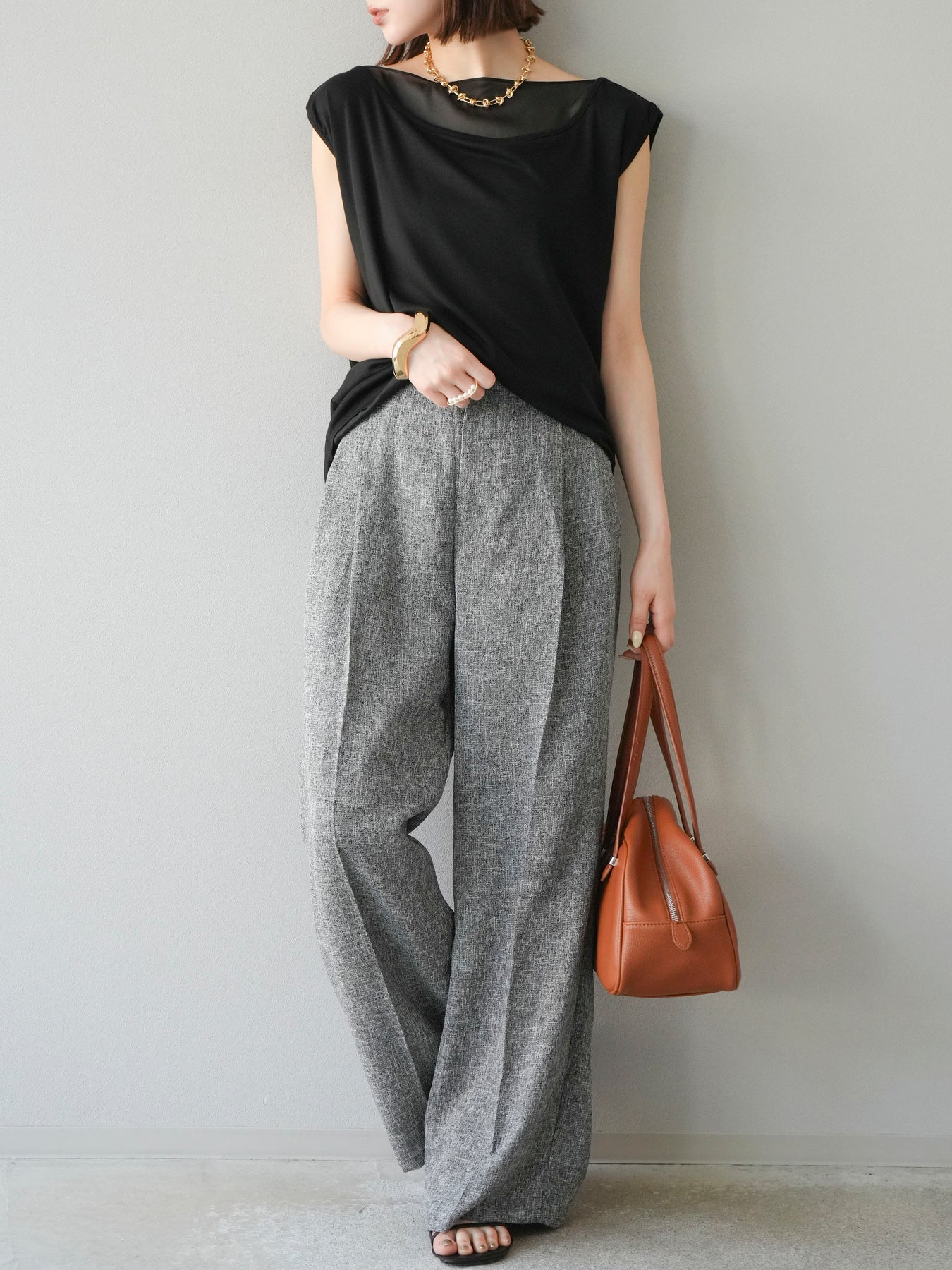 以富有表現力的混合粗花呢面料製成的寬褲。優雅的輪廓帶來輕鬆的穿著體驗,前側的褶襉設計則營造出立體俐落的造型。搭配高跟鞋可打造成熟造型,搭配運動鞋則可打造休閒造型。無論工作場合或休閒場合,這款褲子都值得信賴。