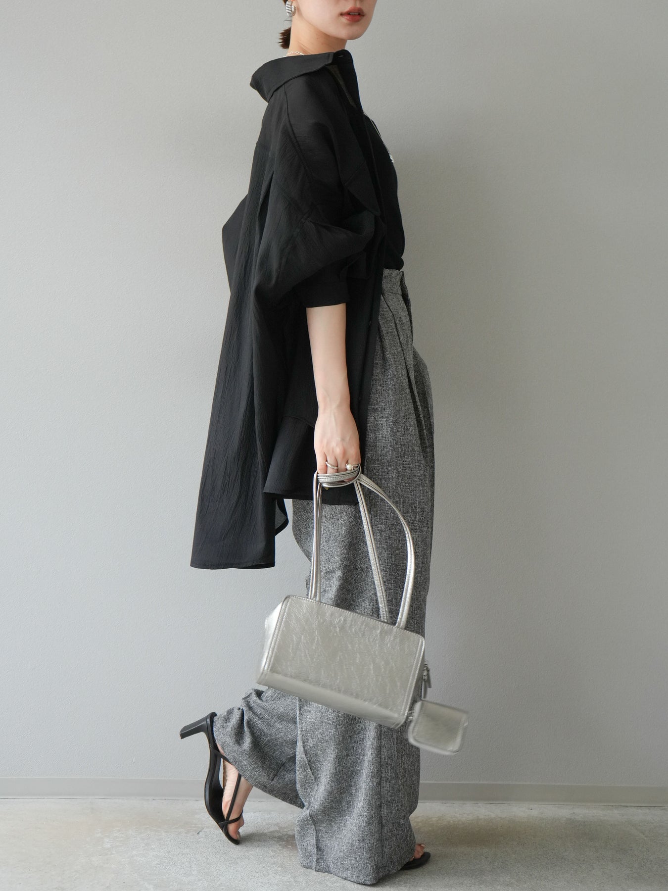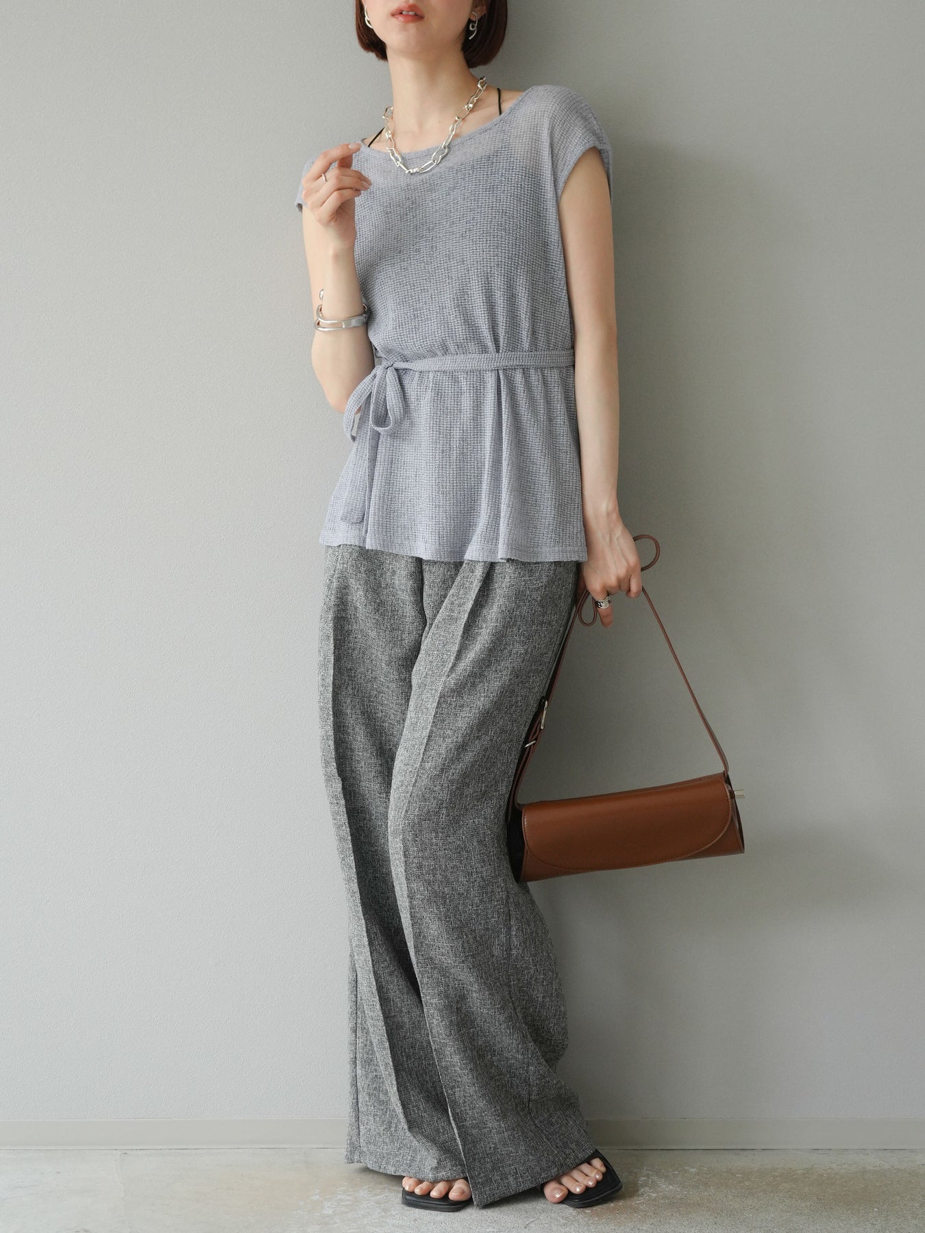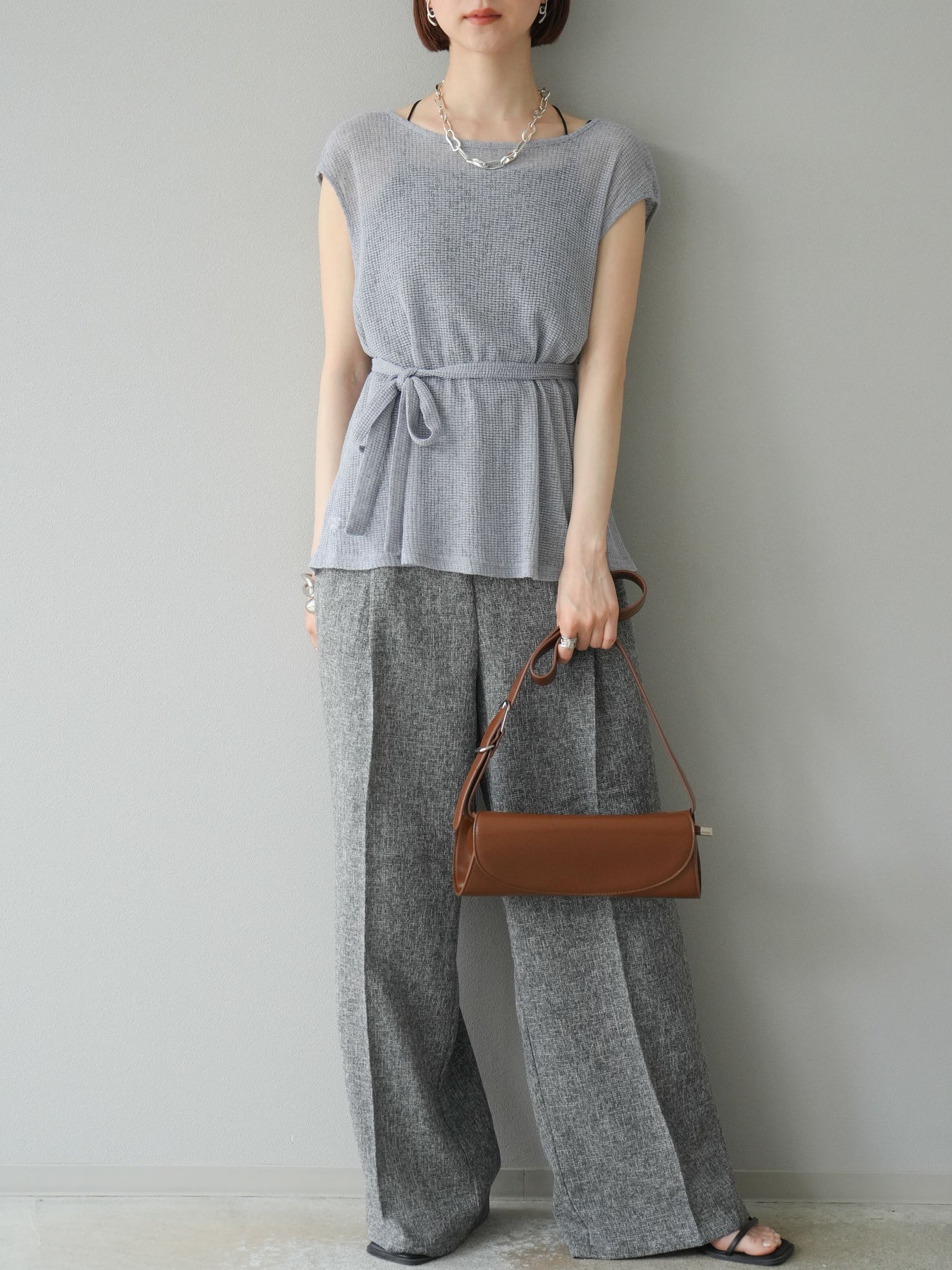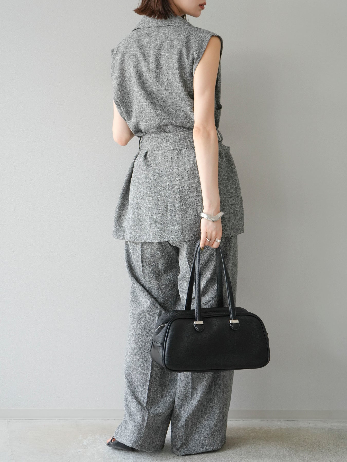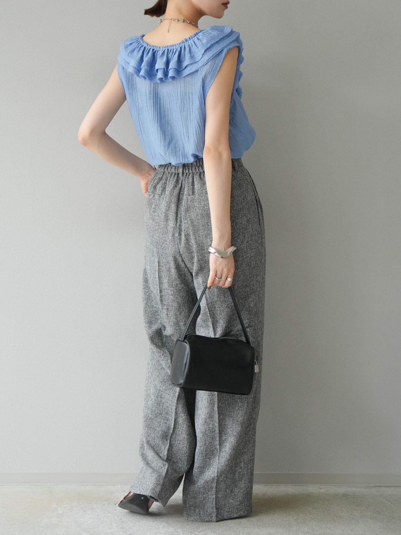 以富有表現力的混合粗花呢面料製成的寬褲。優雅的輪廓帶來輕鬆的穿著體驗,前側的褶襉設計則營造出立體俐落的造型。搭配高跟鞋可打造成熟造型,搭配運動鞋則可打造休閒造型。無論工作場合或休閒場合,這款褲子都值得信賴。
