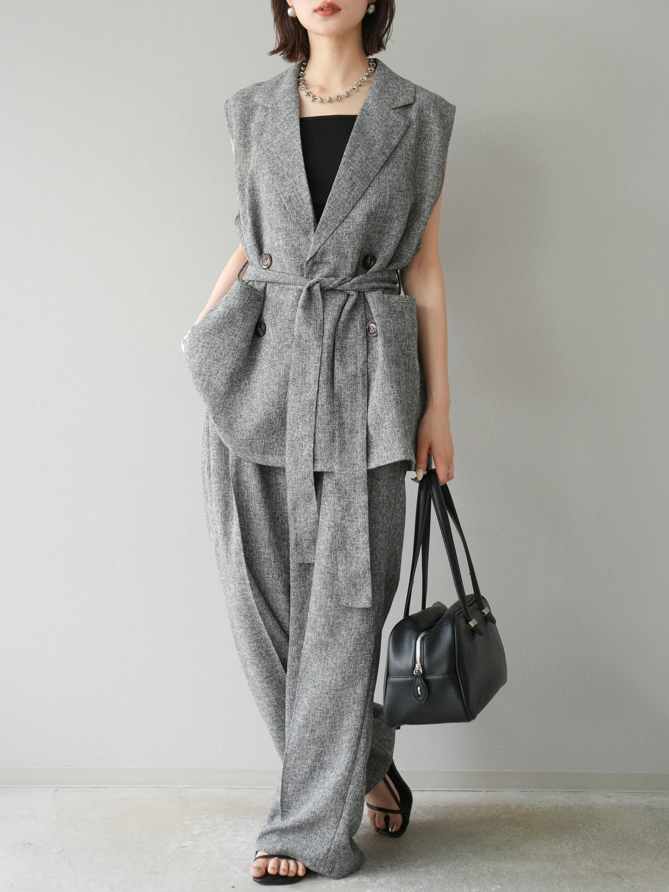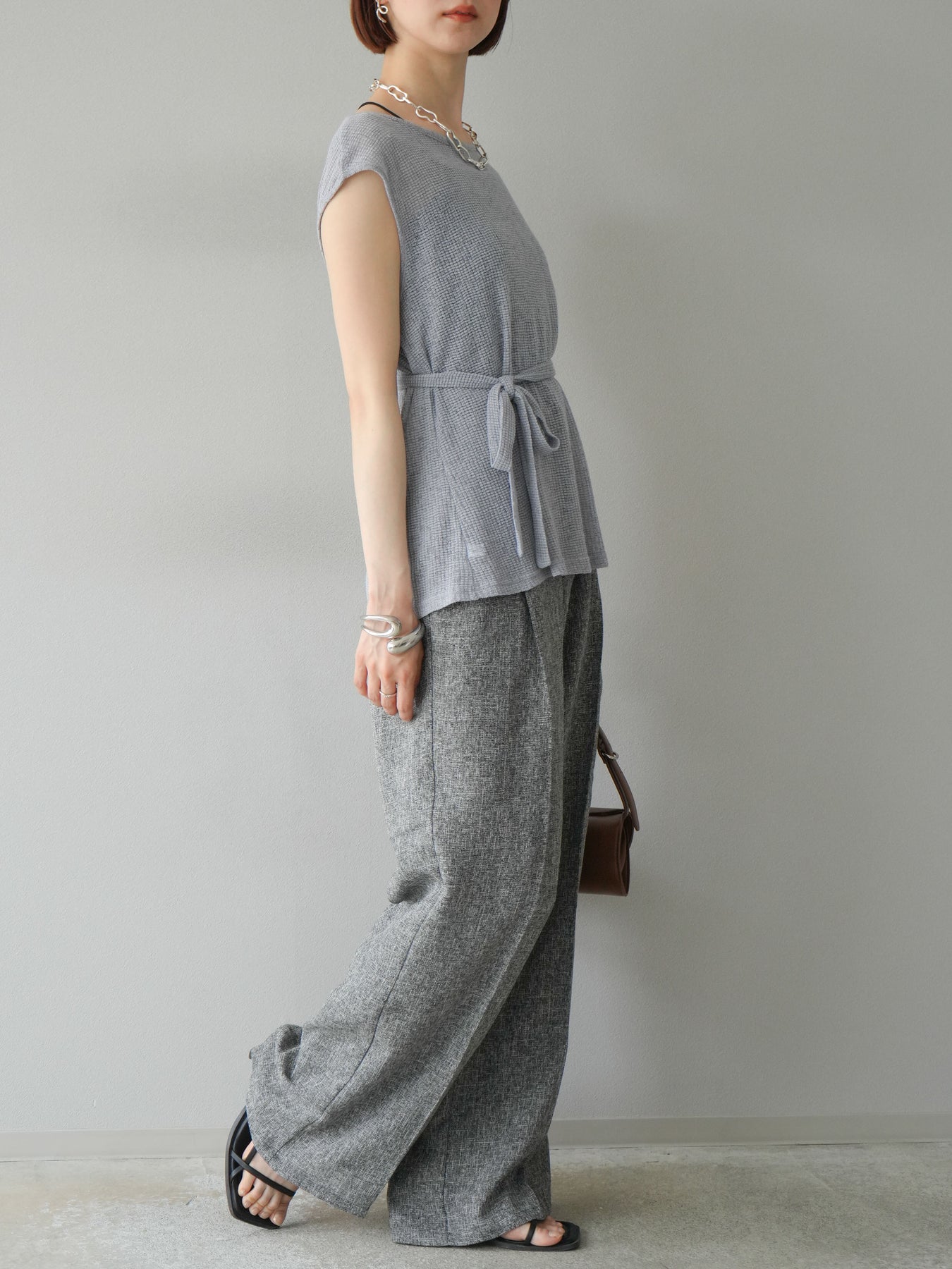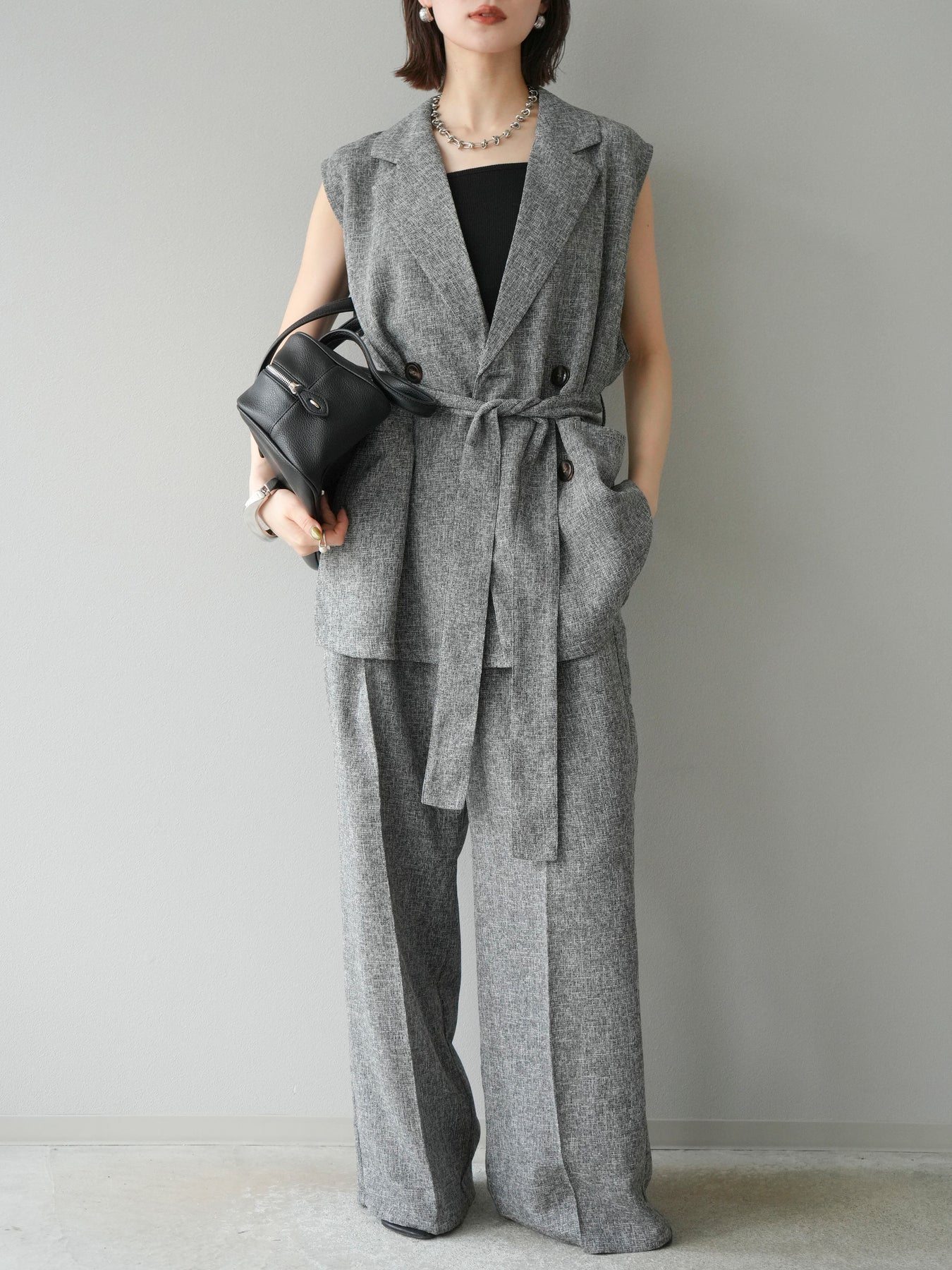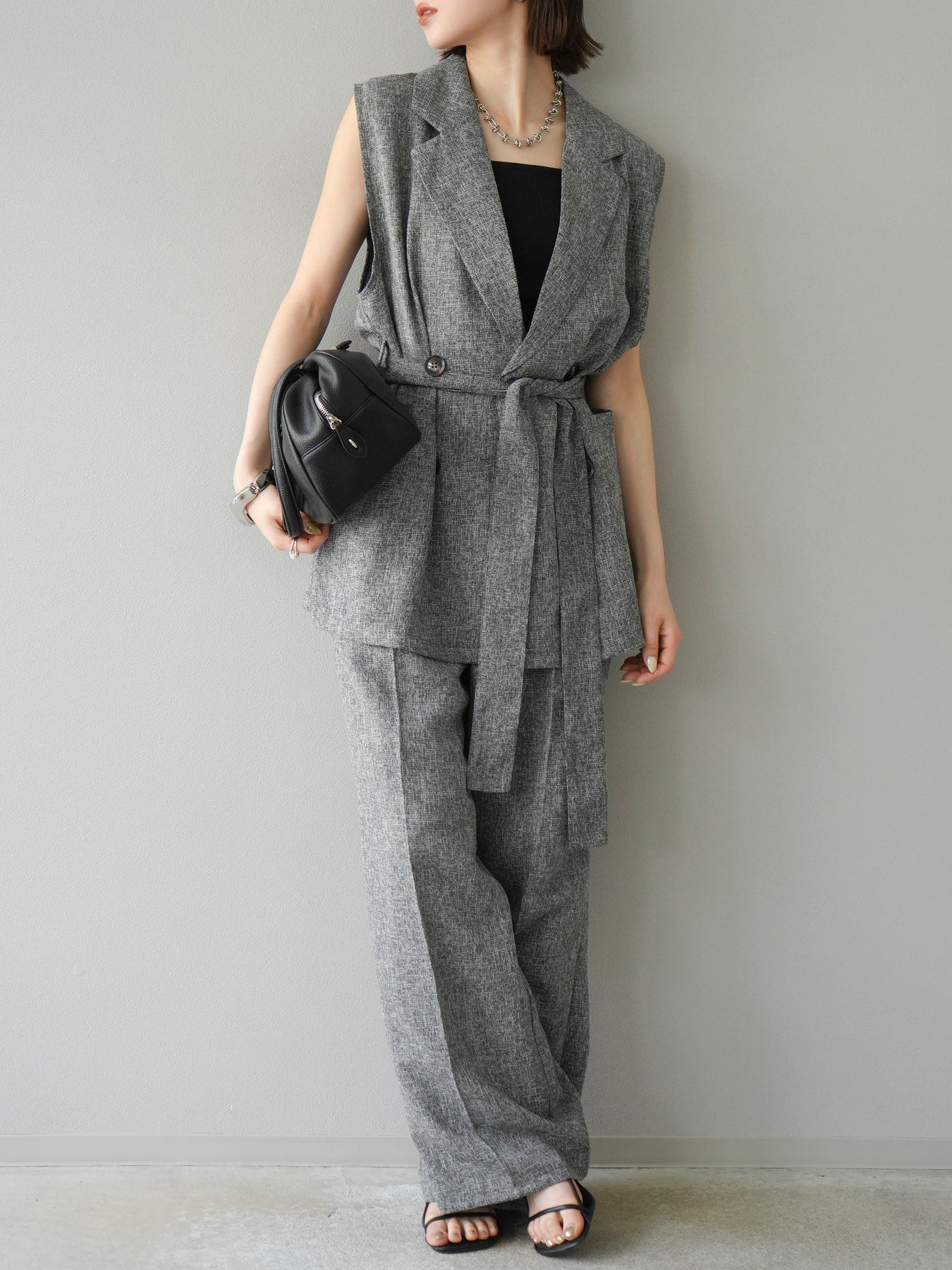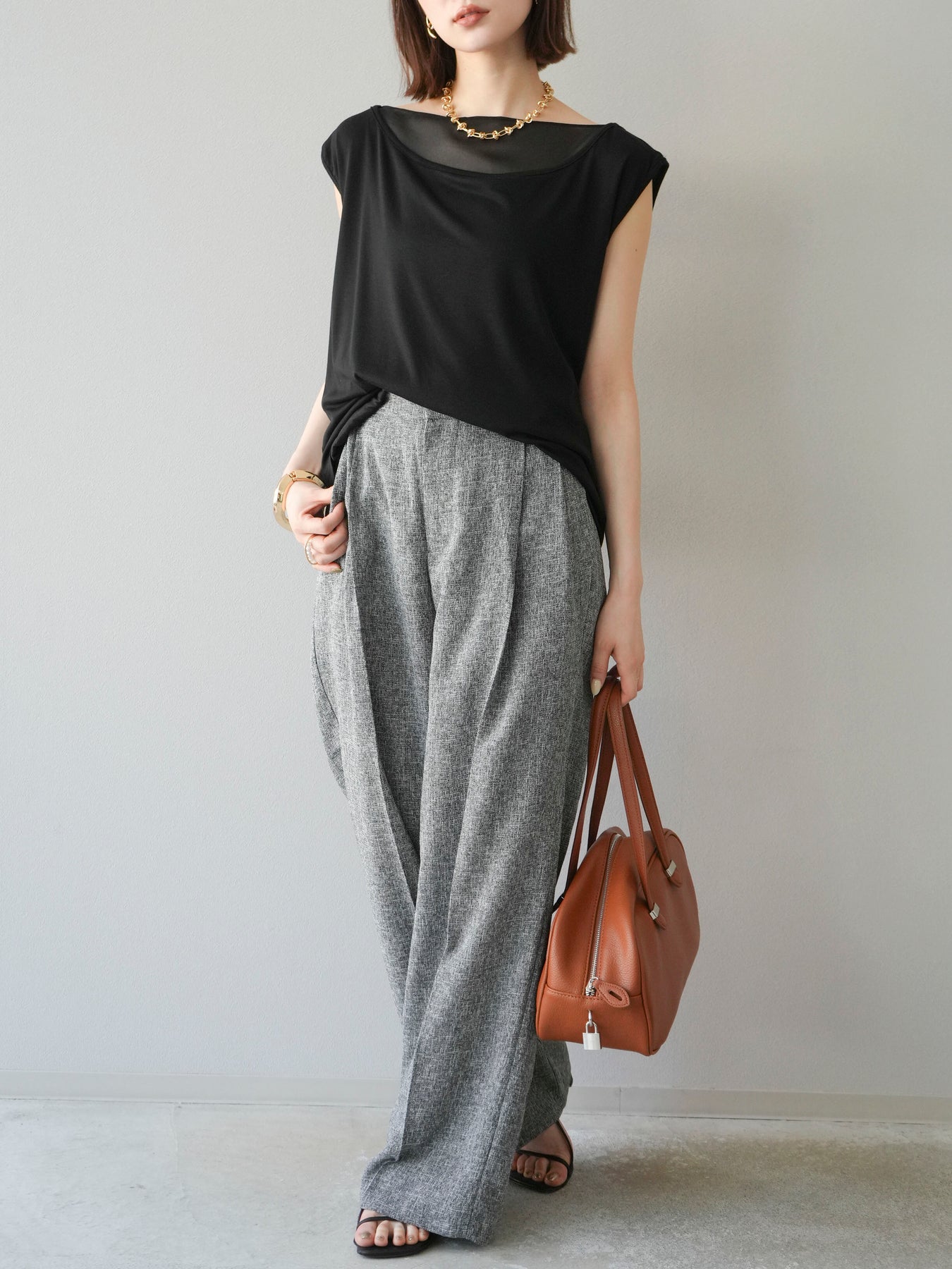 以富有表現力的混合粗花呢面料製成的寬褲。優雅的輪廓帶來輕鬆的穿著體驗,前側的褶襉設計則營造出立體俐落的造型。搭配高跟鞋可打造成熟造型,搭配運動鞋則可打造休閒造型。無論工作場合或休閒場合,這款褲子都值得信賴。