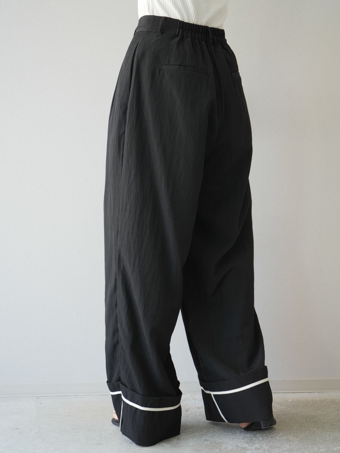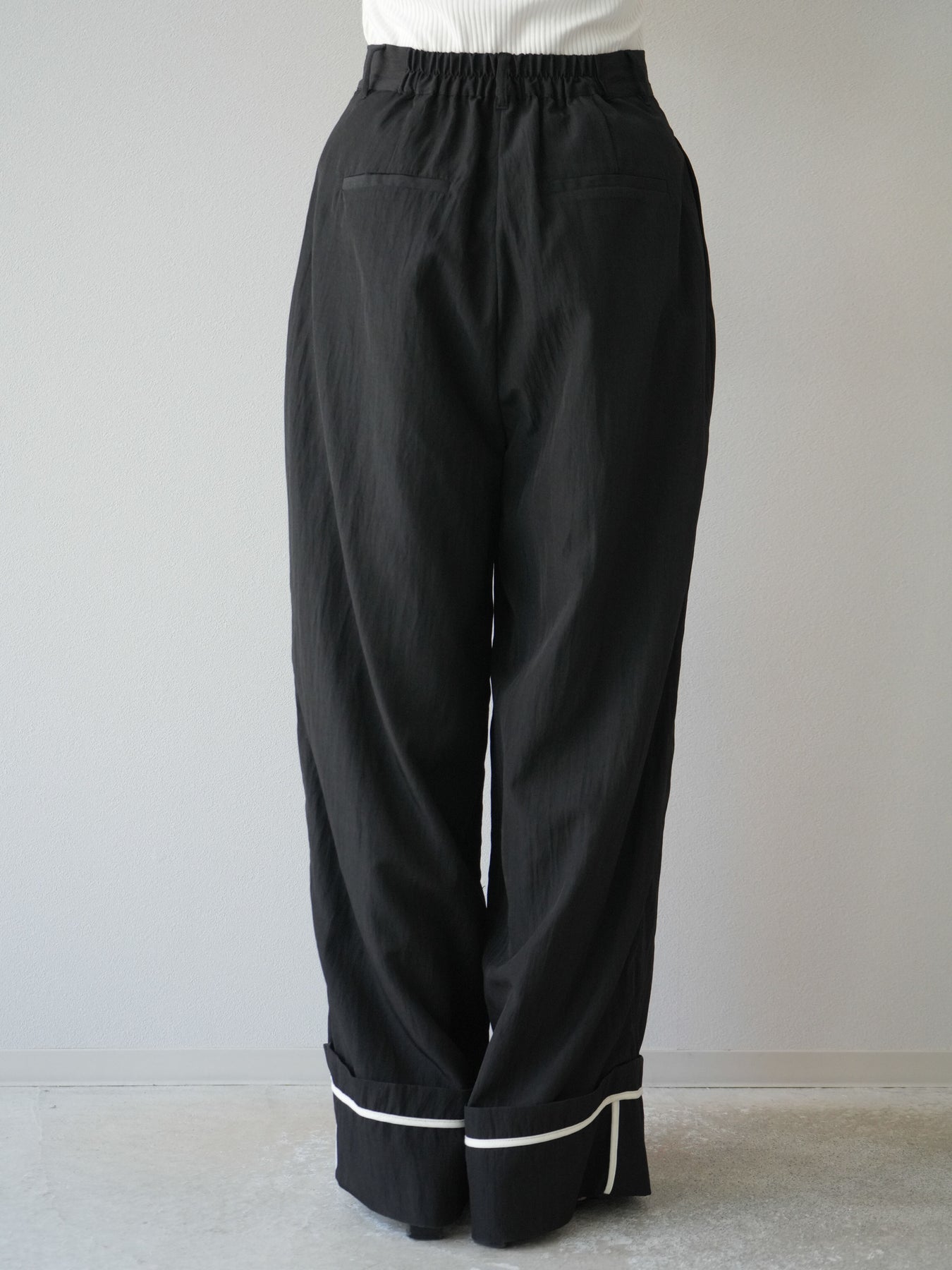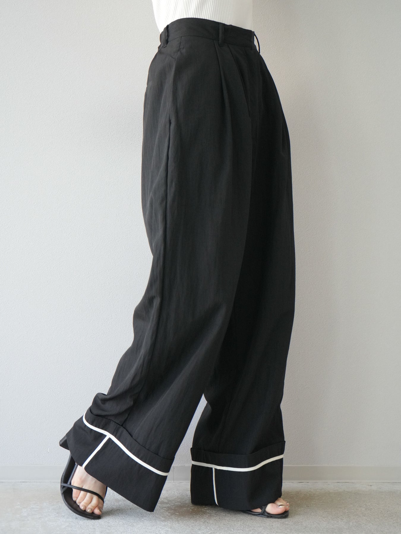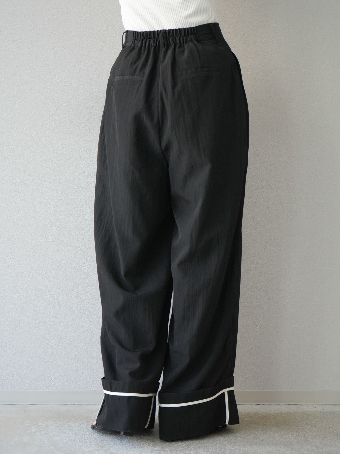 【預購】仿亞麻下擺迴力寬褲/黑色