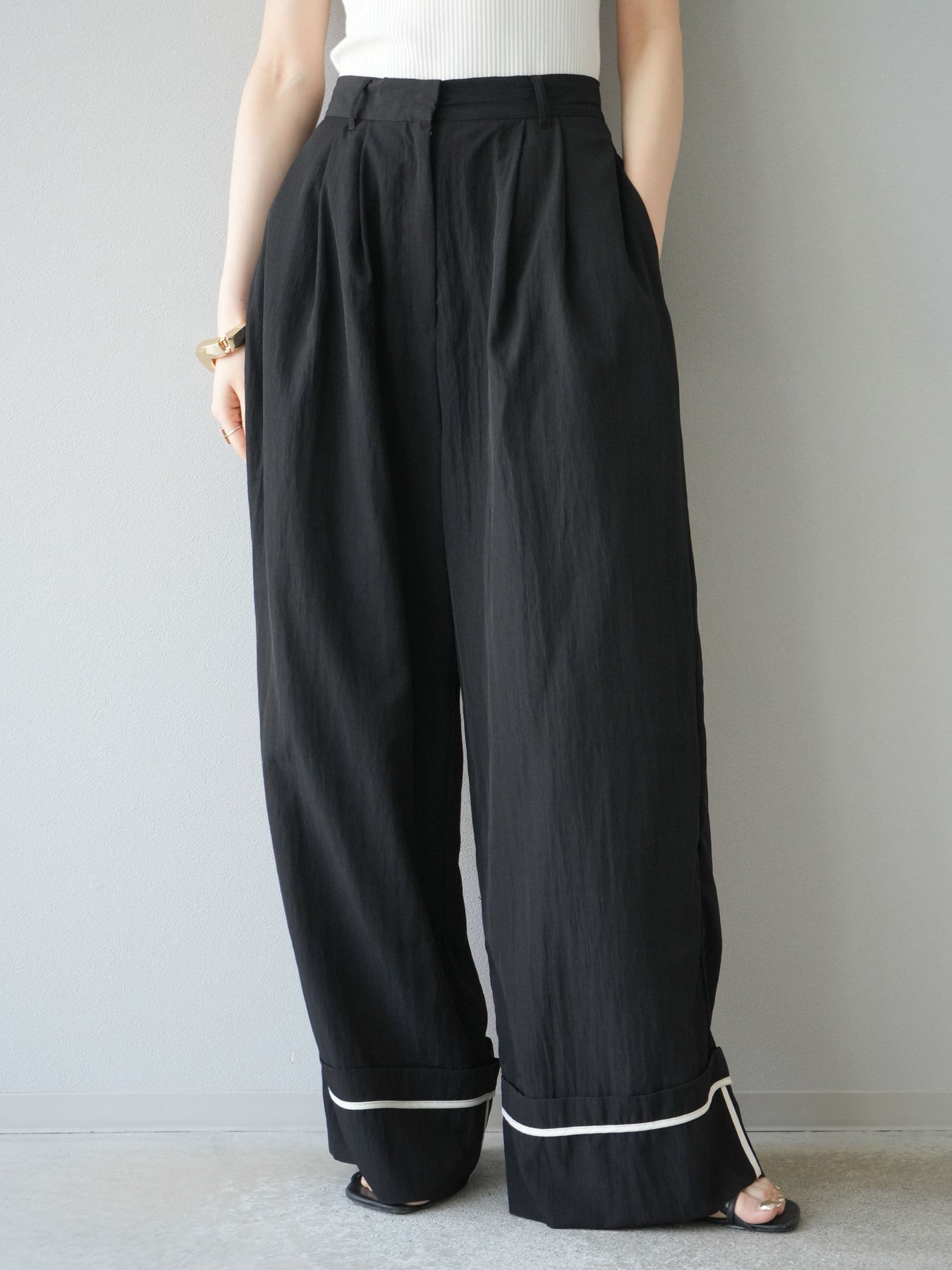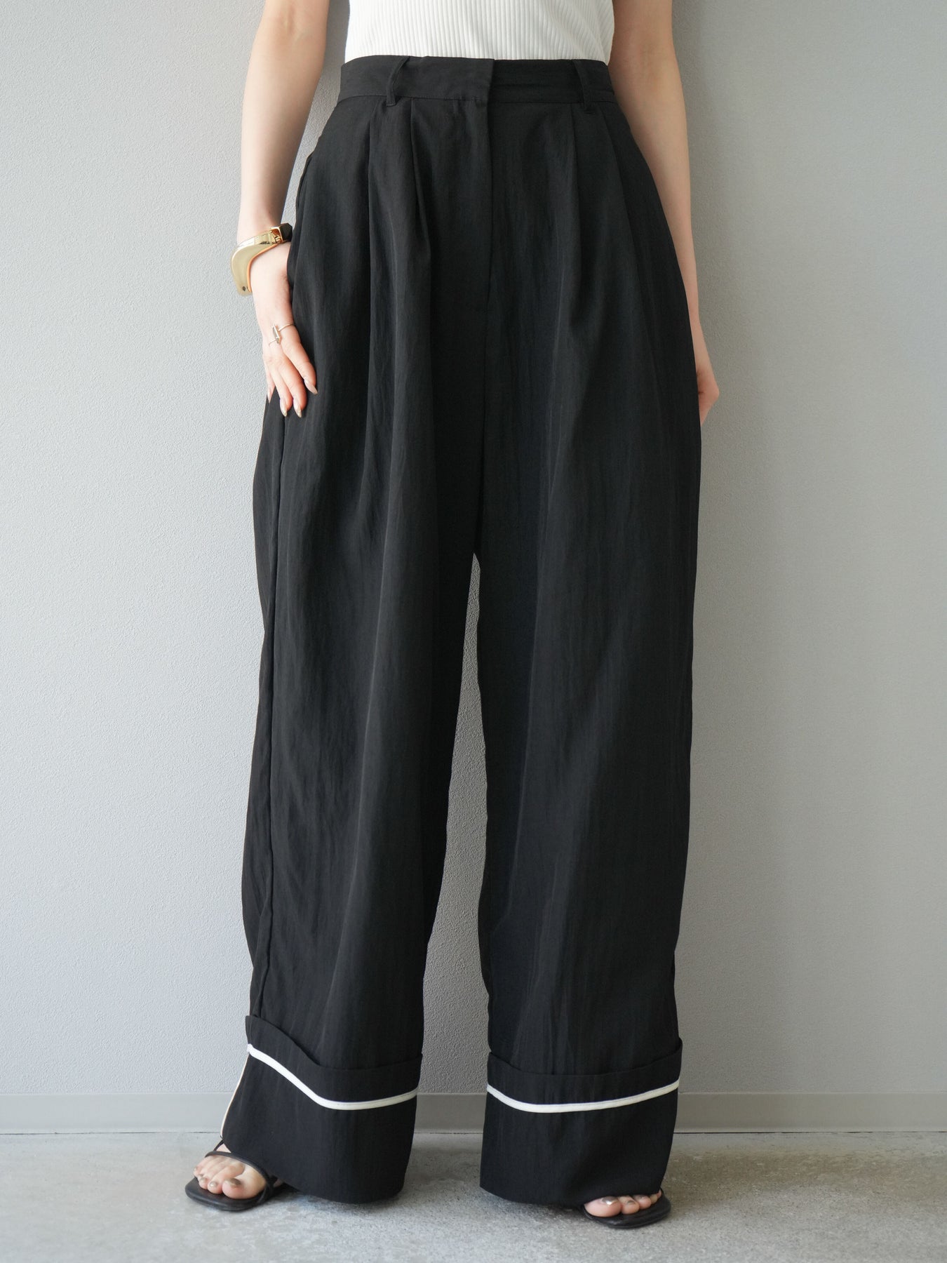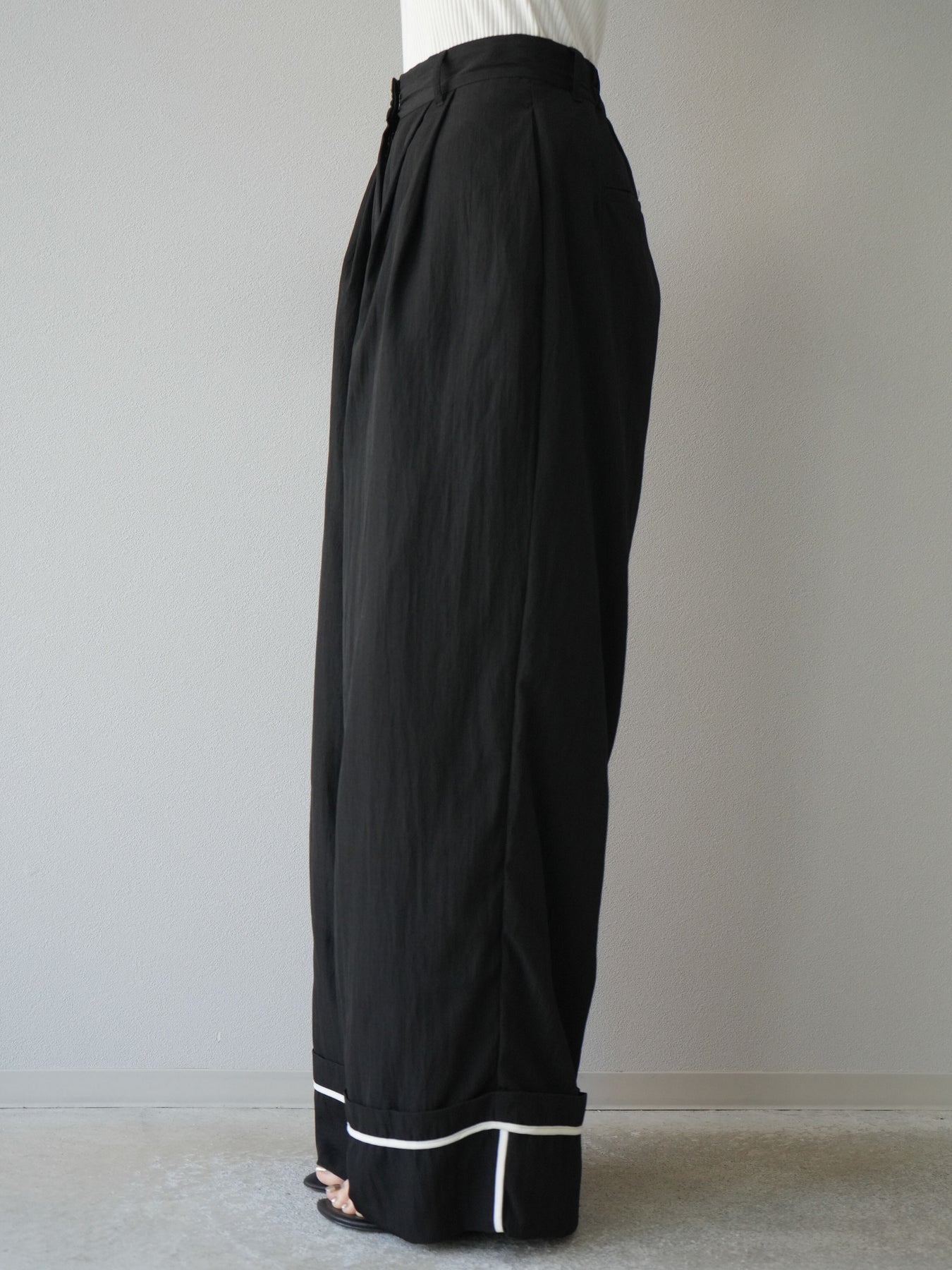 【預購】仿亞麻下擺迴力寬褲/黑色