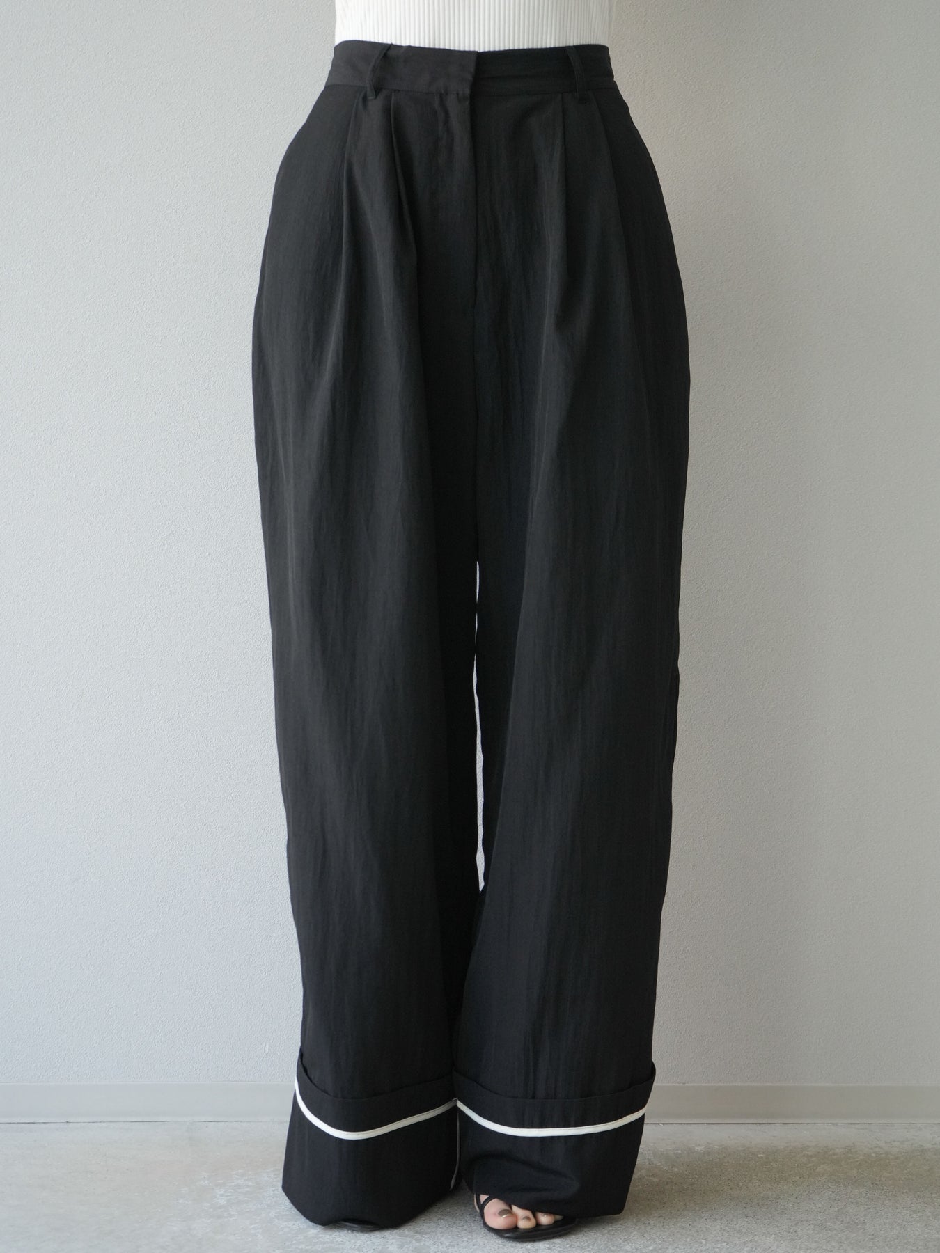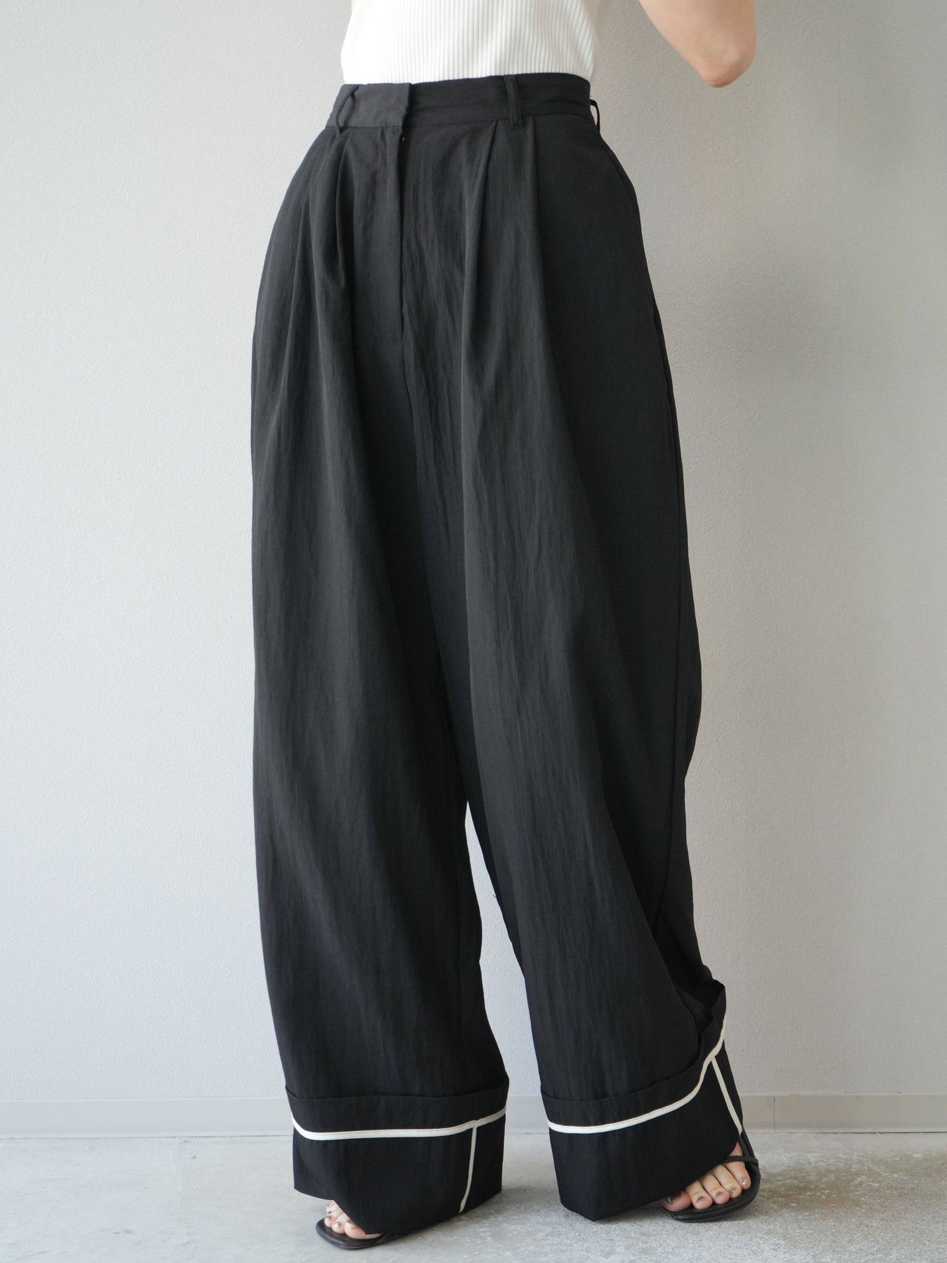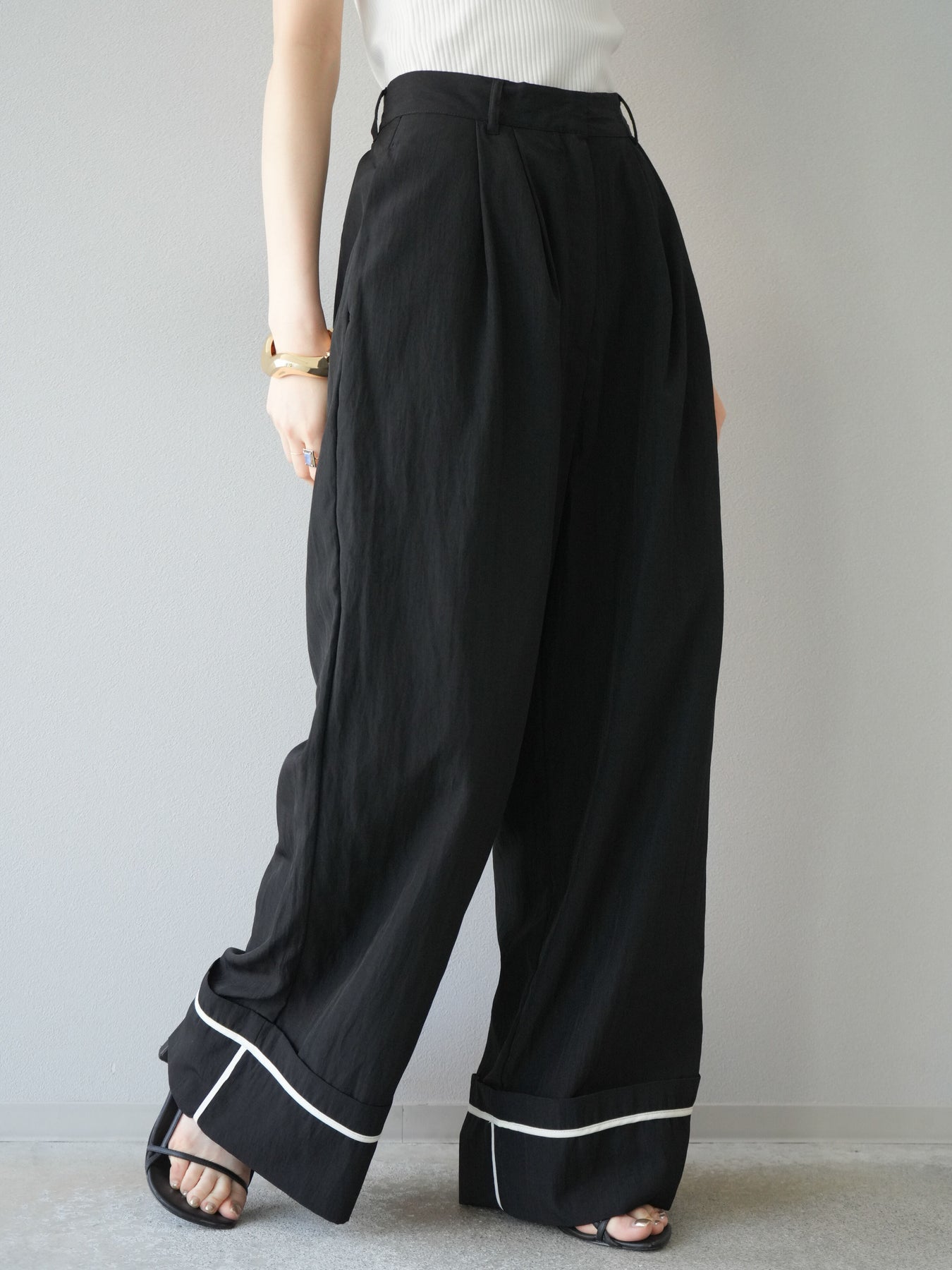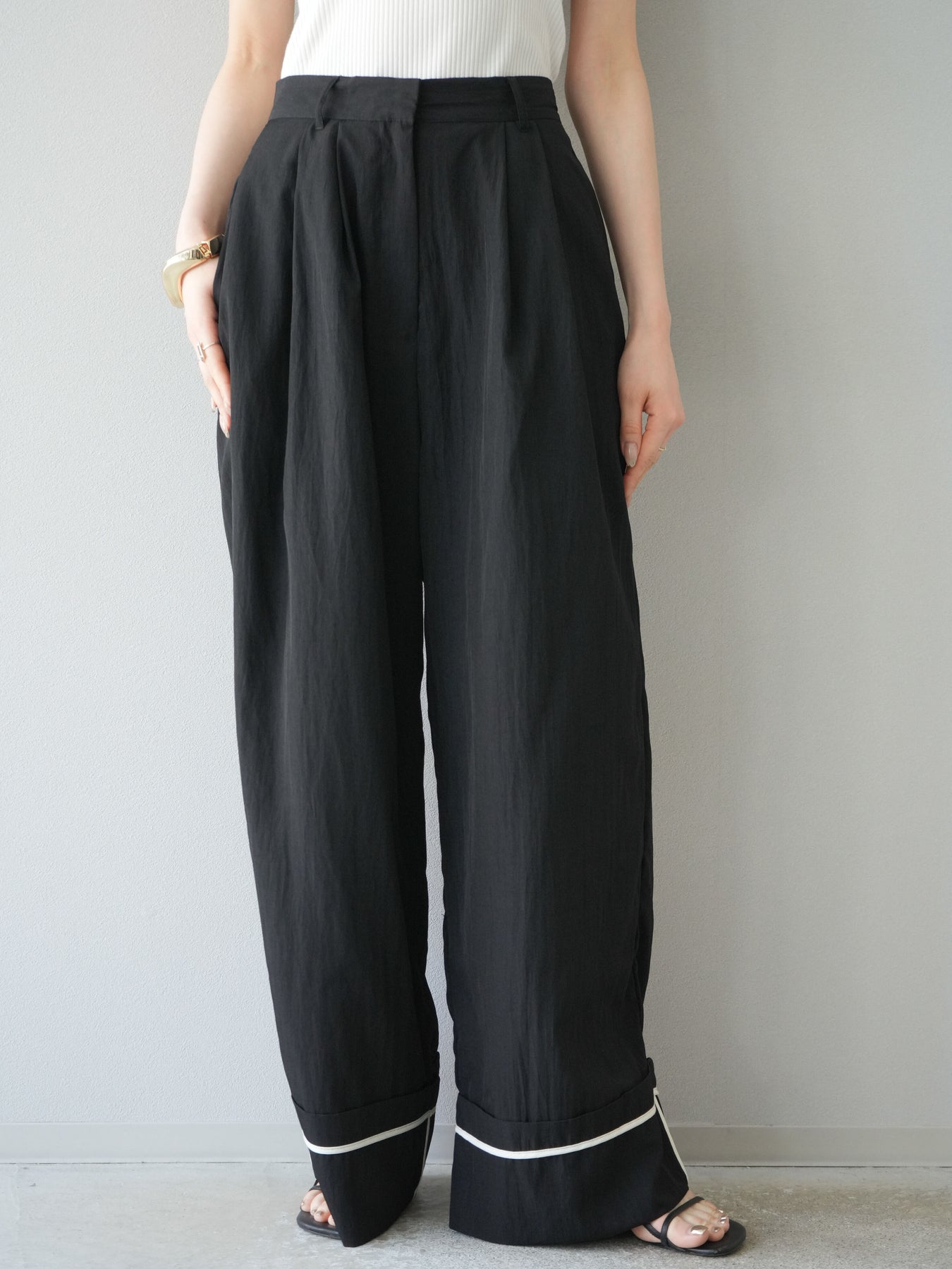 【預購】仿亞麻下擺迴力寬褲/黑色