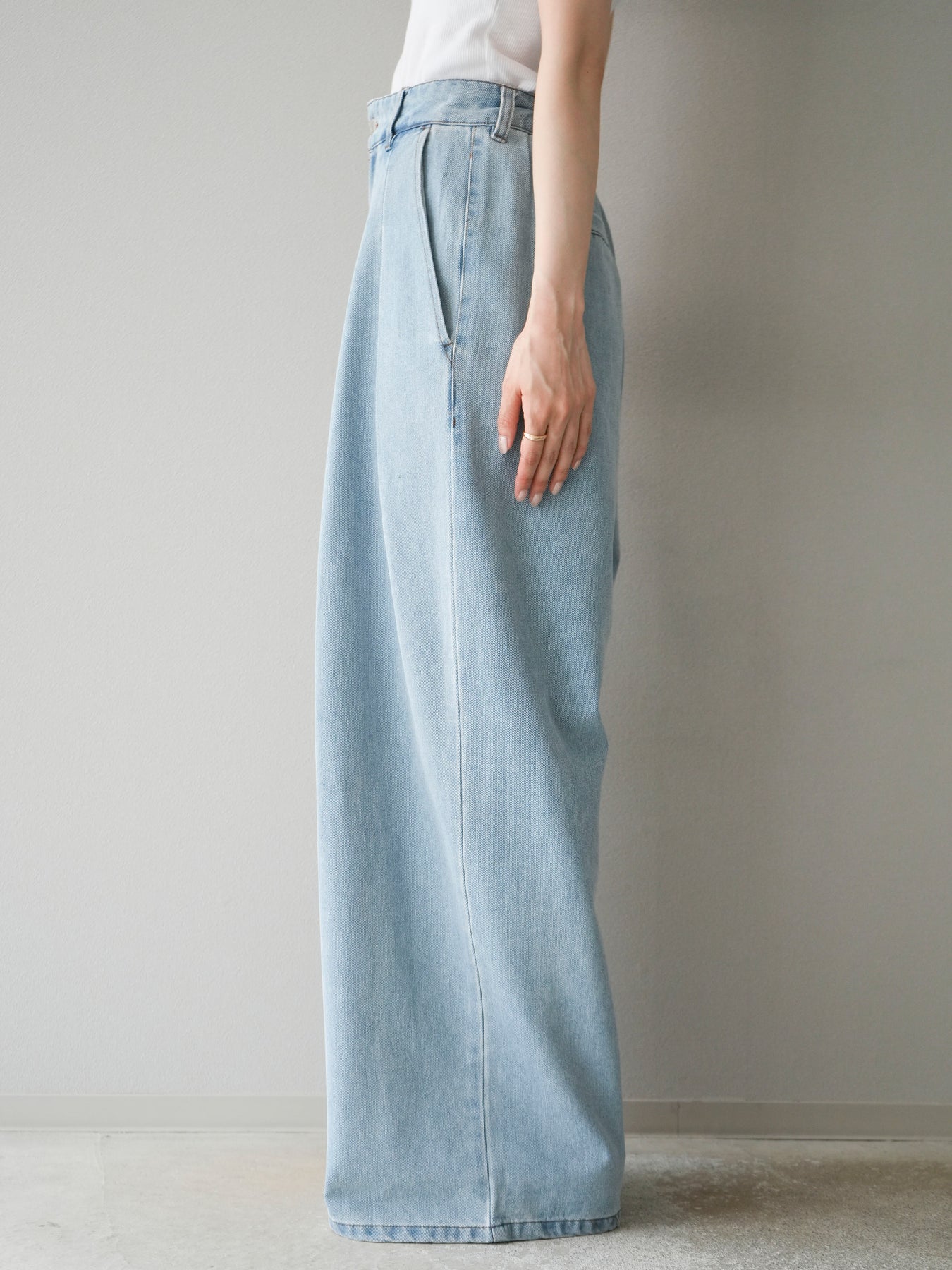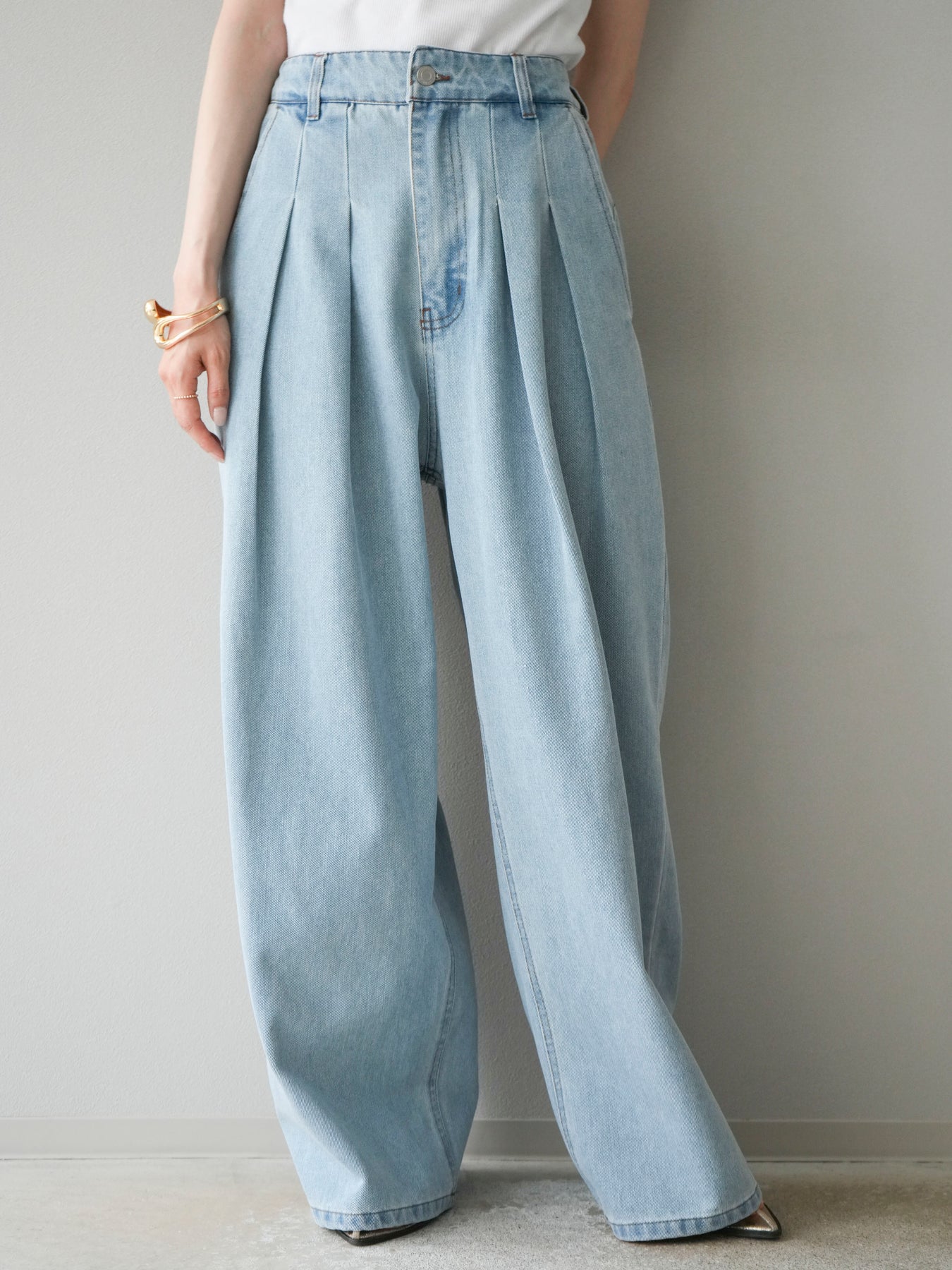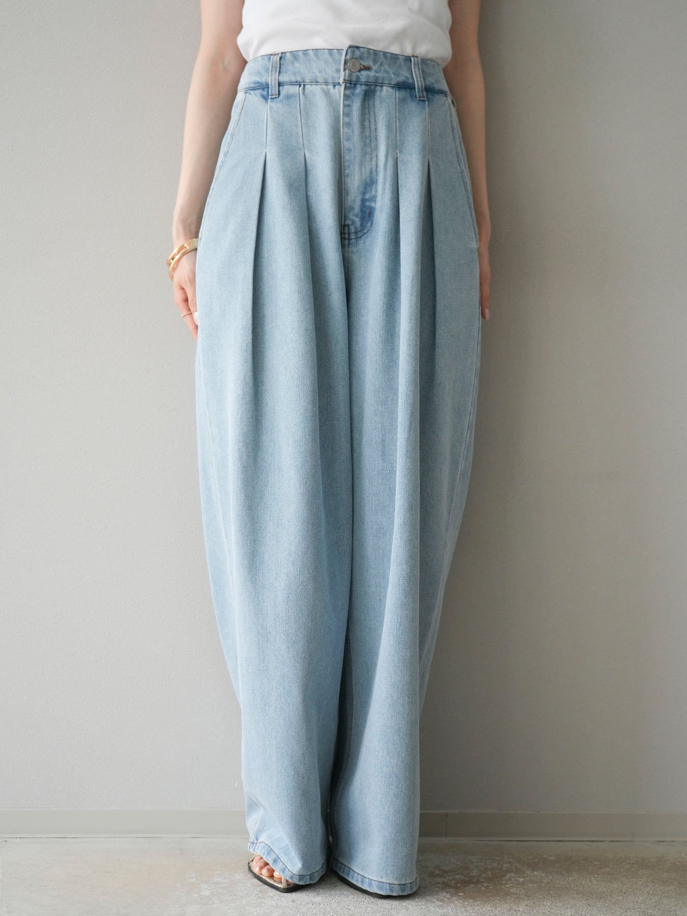【預購】雙褶寬牛仔褲/漂白