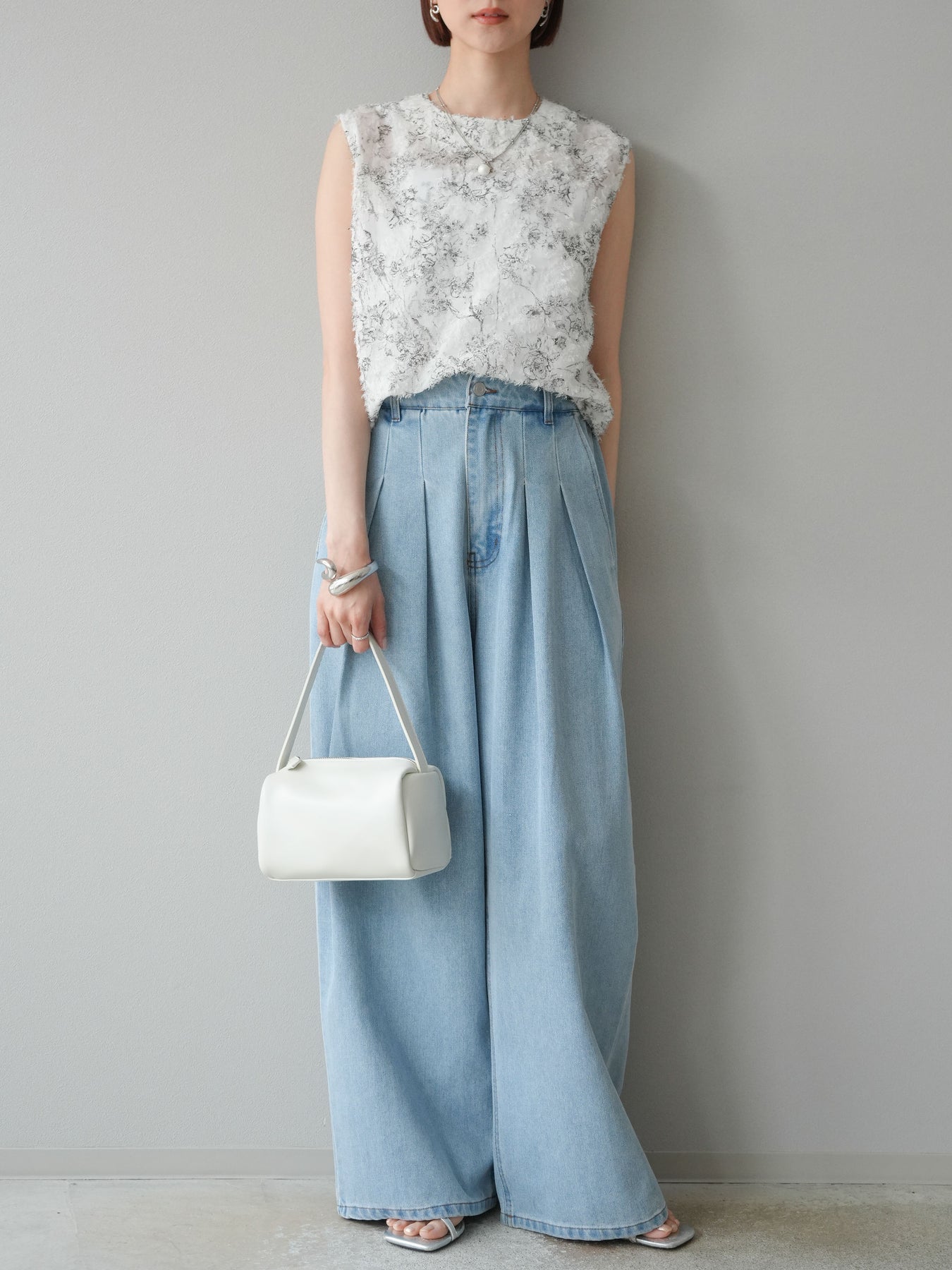 這款雙褶寬牛仔褲體積適中,輪廓優美。 從腰部延伸的自然線條增強了您的風格,營造出輕鬆、成熟的休閒風格。 前片雙褶設計,讓腰部更具立體感,高腰設計更顯腿部修長。 雖然是牛仔布,但布料柔軟且垂墜感十足,打造出雖然寬大卻看起來整潔的精緻輪廓。 另一個吸引人的特點是它的多功能性,因為它可以輕鬆搭配任何上衣,例如 T 卹、襯衫或無袖上衣。 它與運動鞋或涼鞋很相配,但我們也建議搭配高跟鞋,以顯得更成熟。