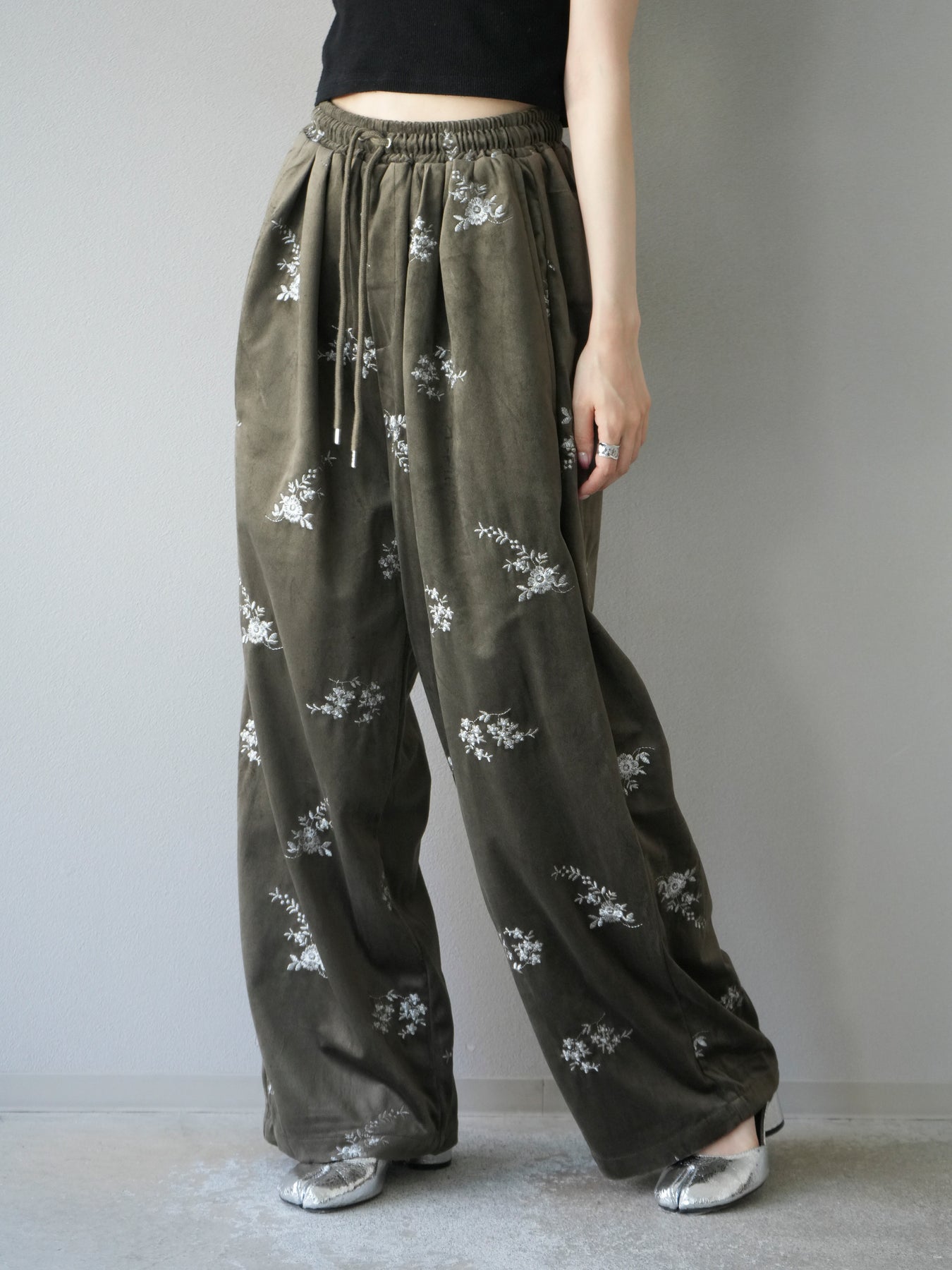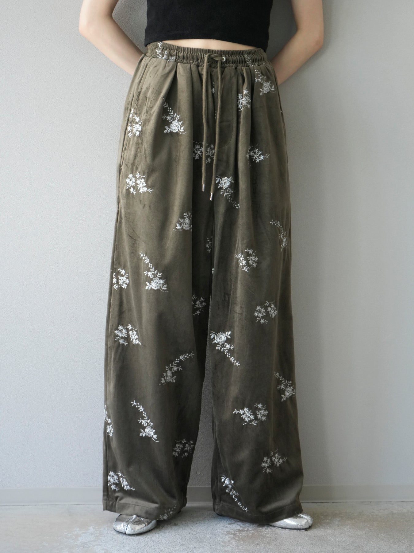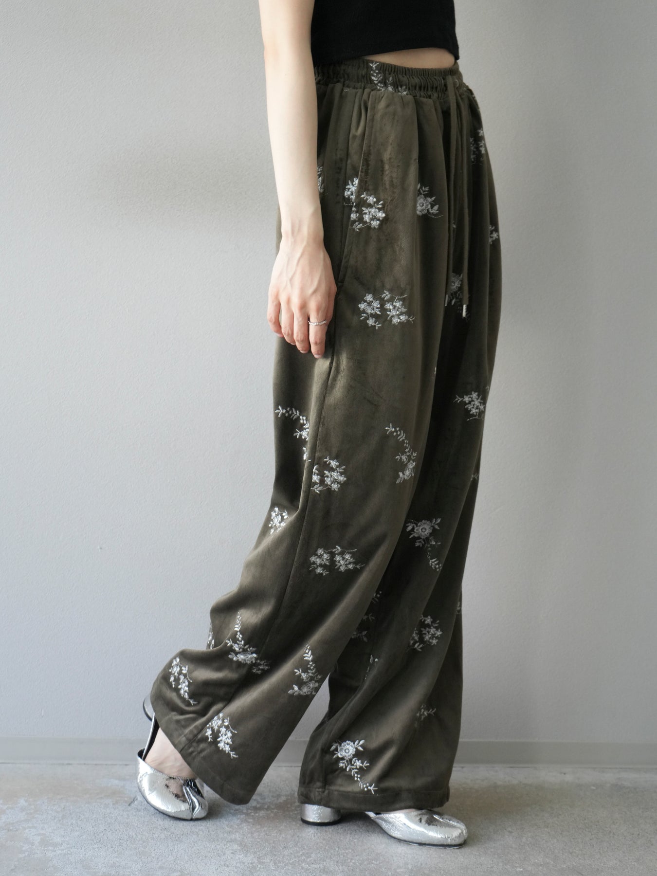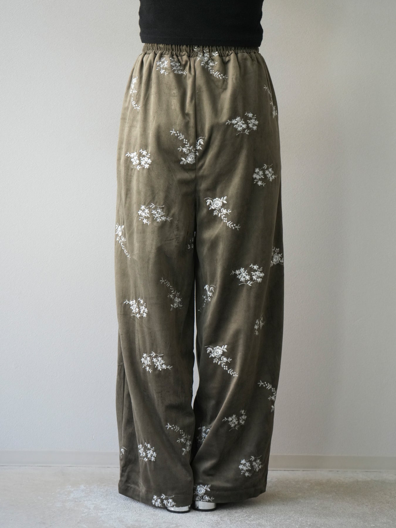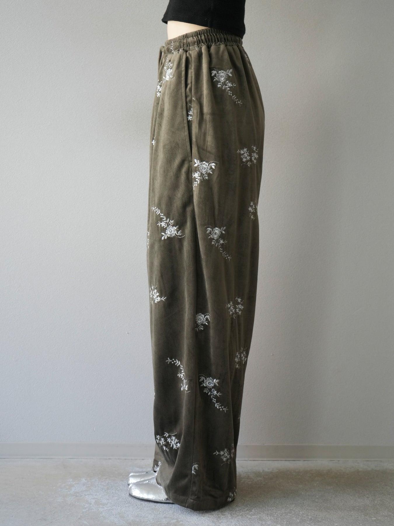 [予約]ベロアフラワーエンブロイダリーイージーパンツ/ブラウン