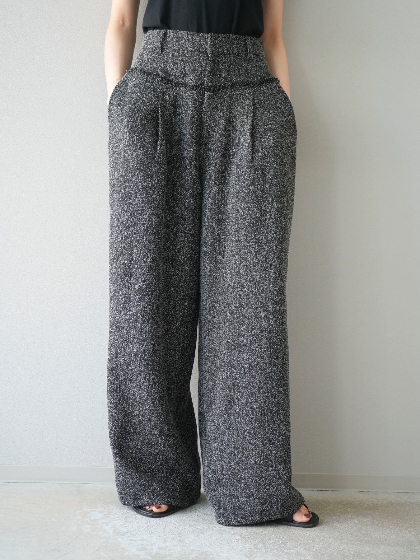 [予約]ウエストフリンジツイードワイドパンツ/ブラック