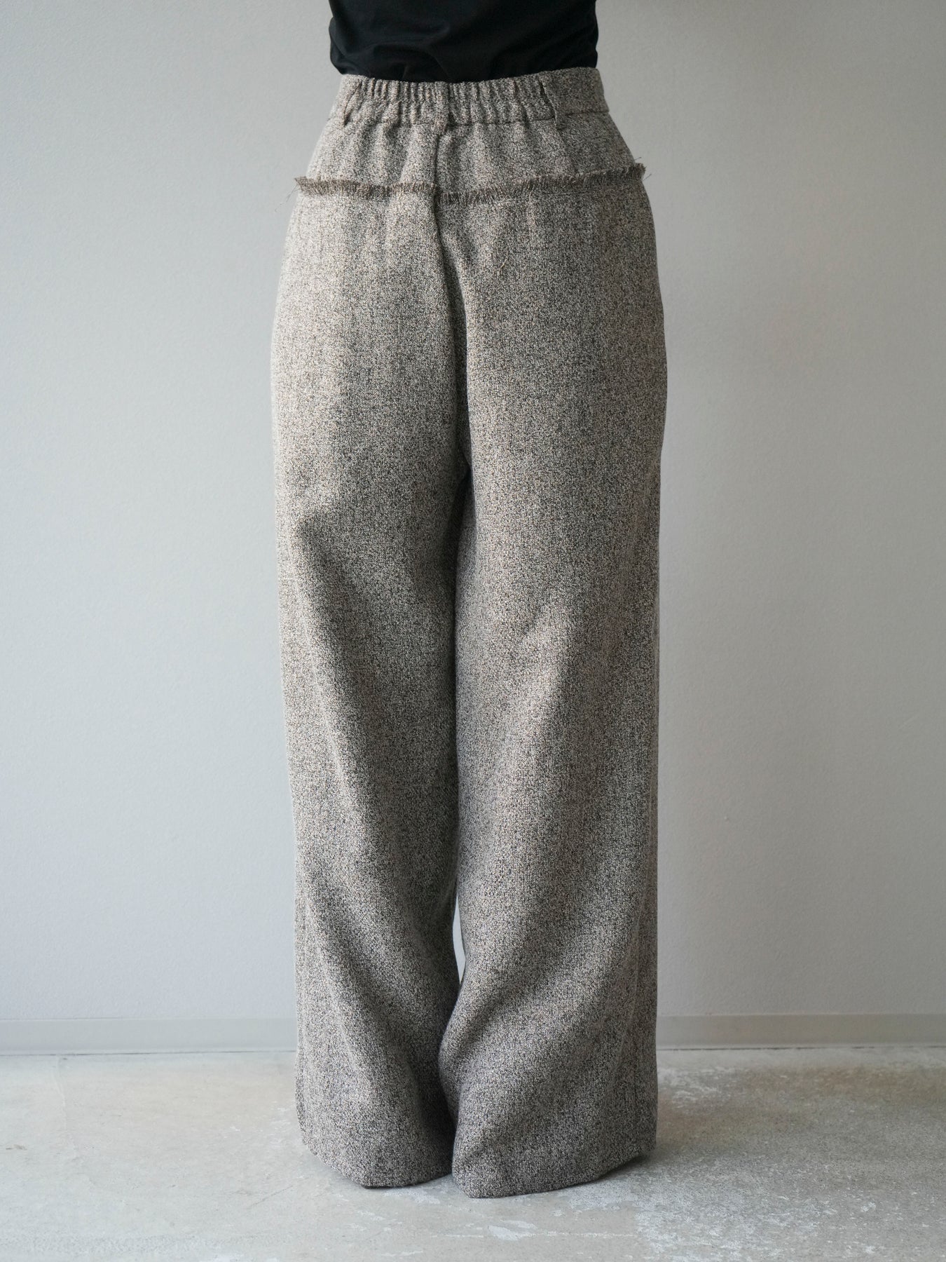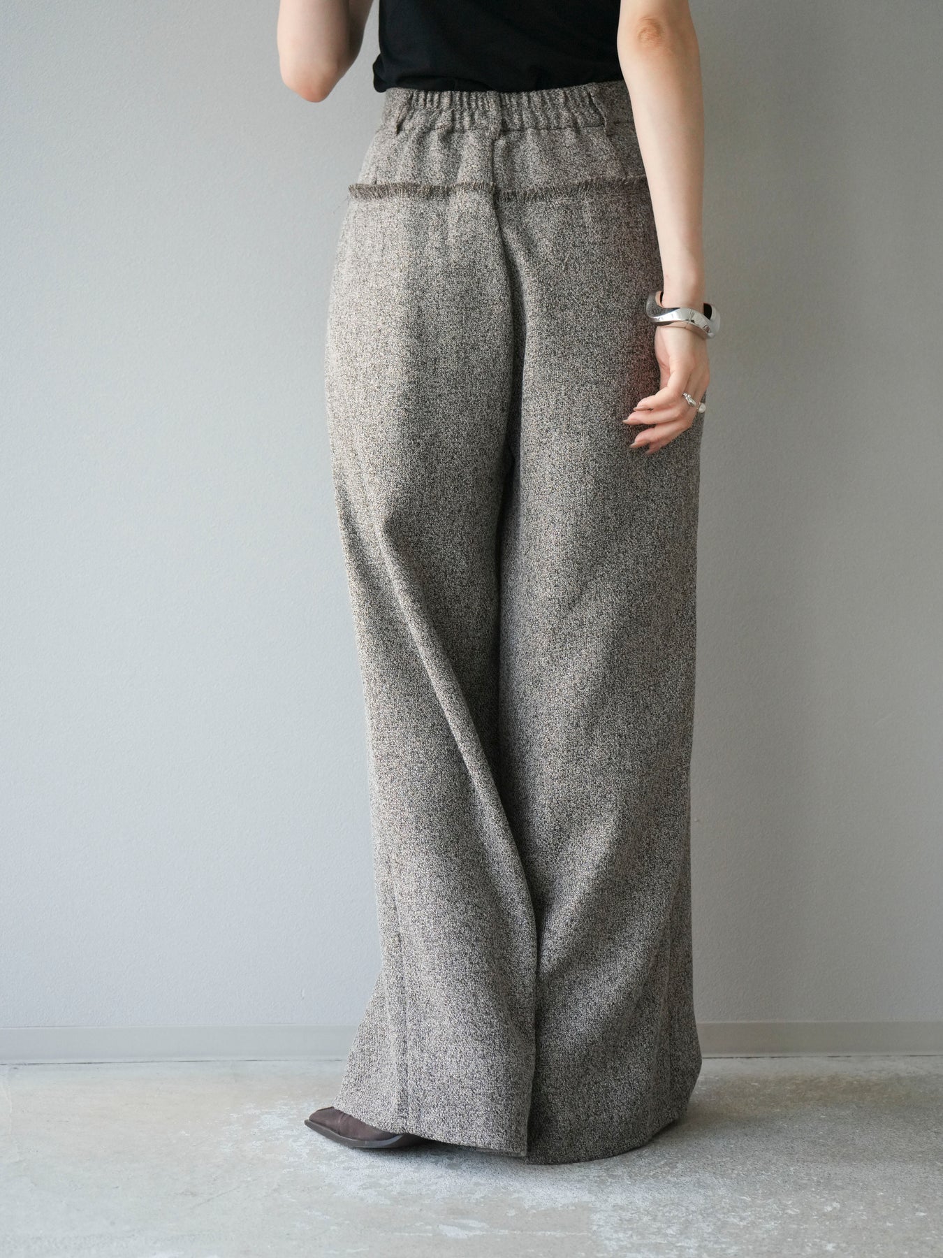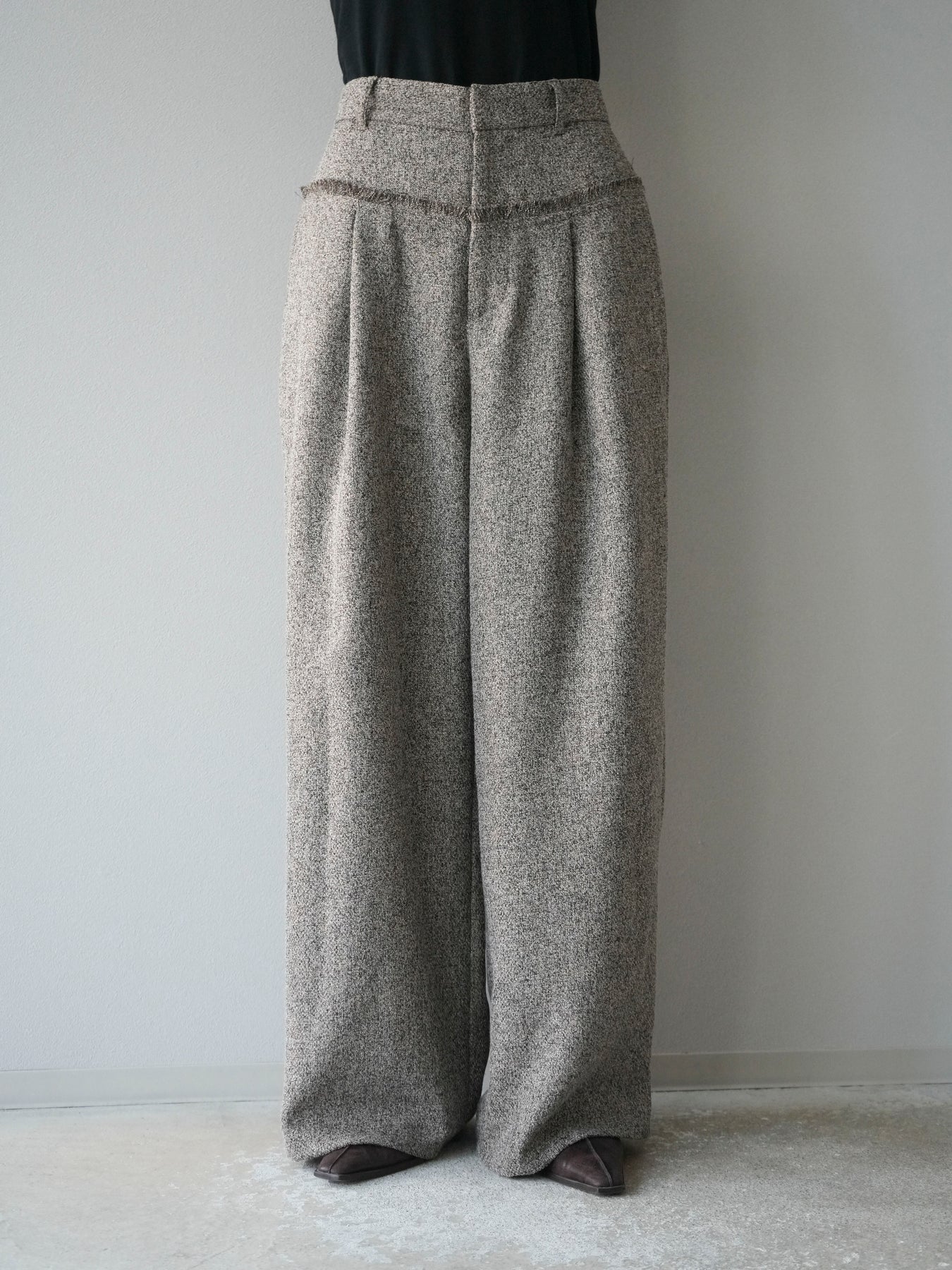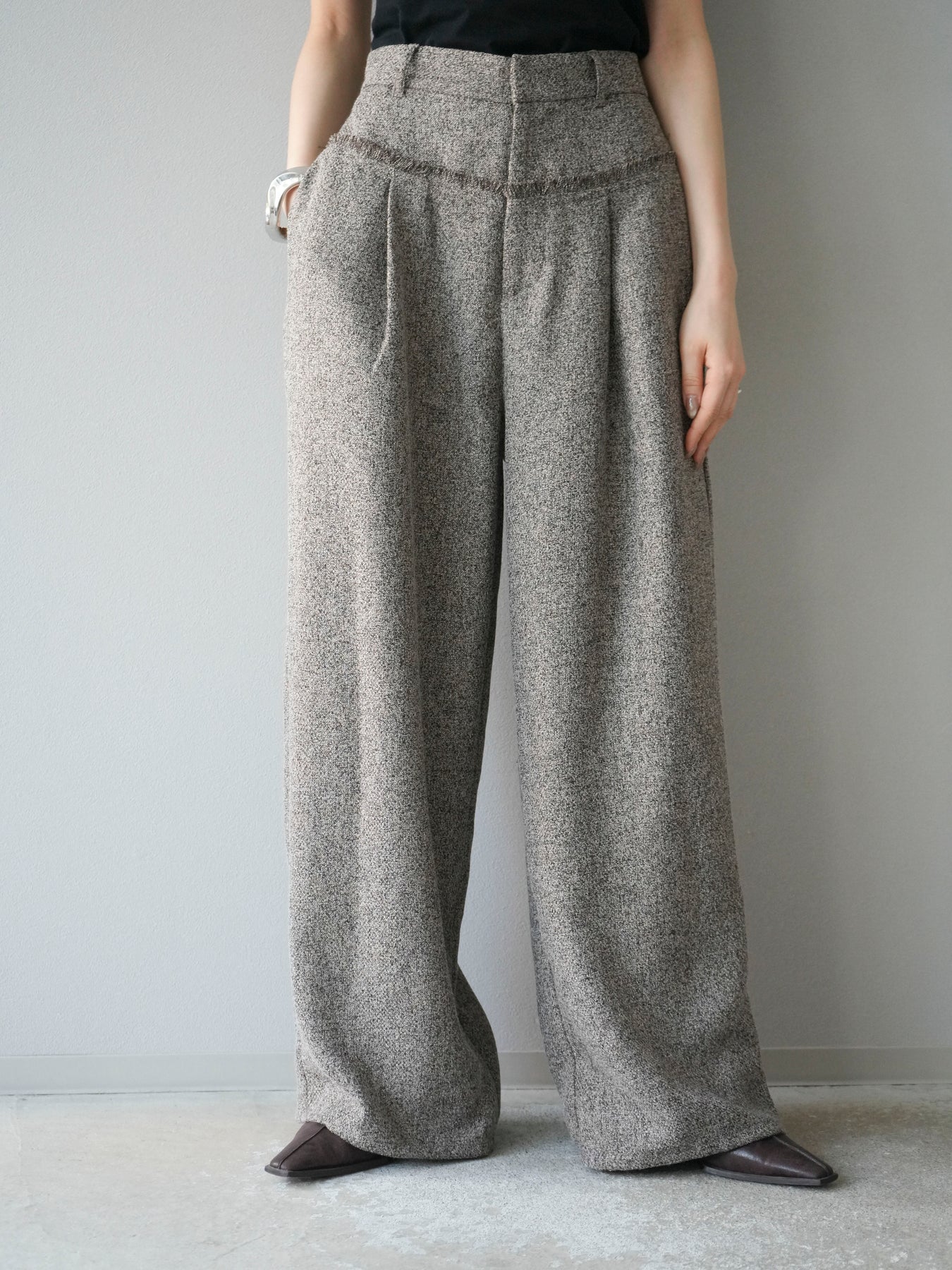 [予約]ウエストフリンジツイードワイドパンツ/ブラウン