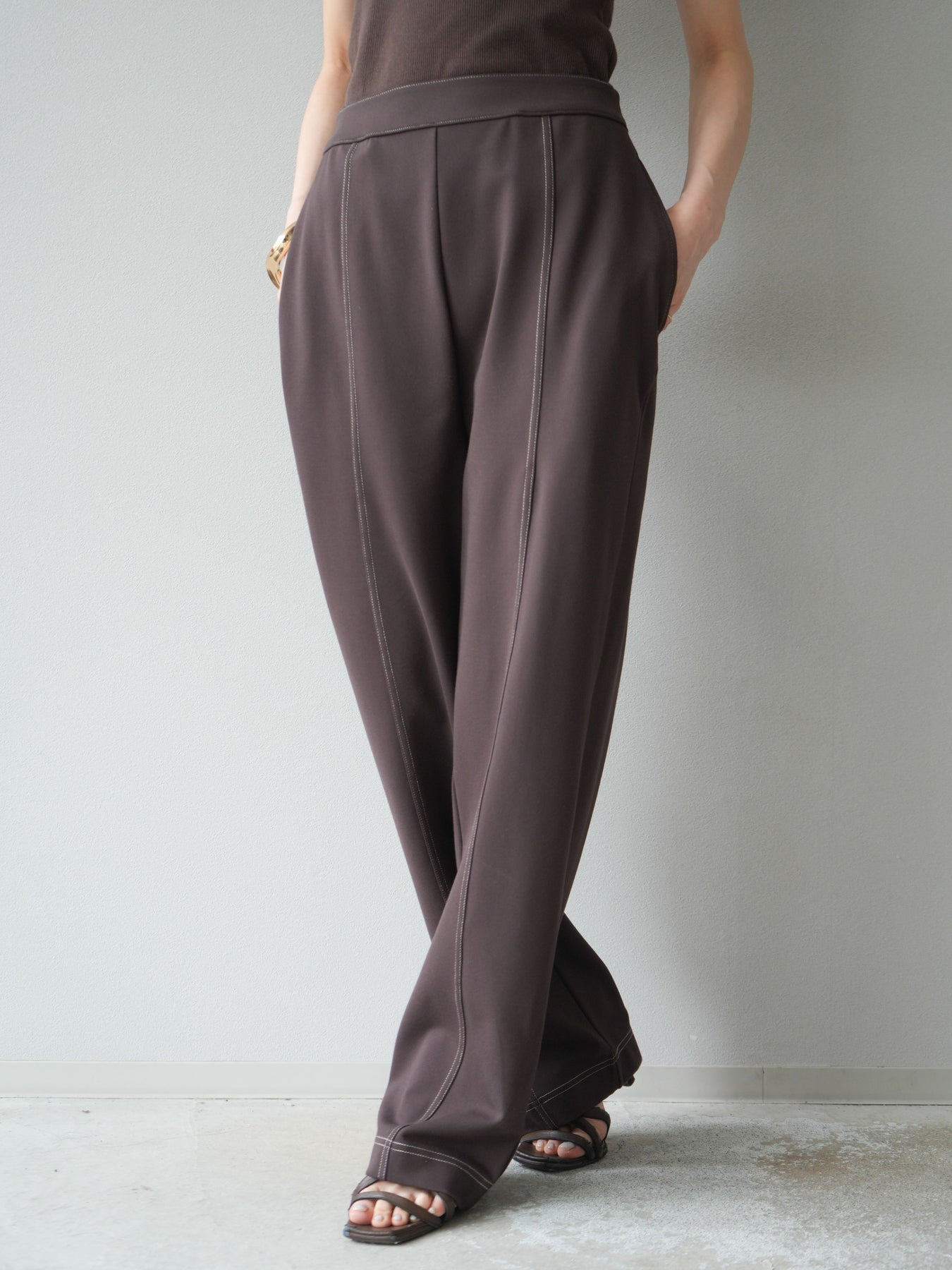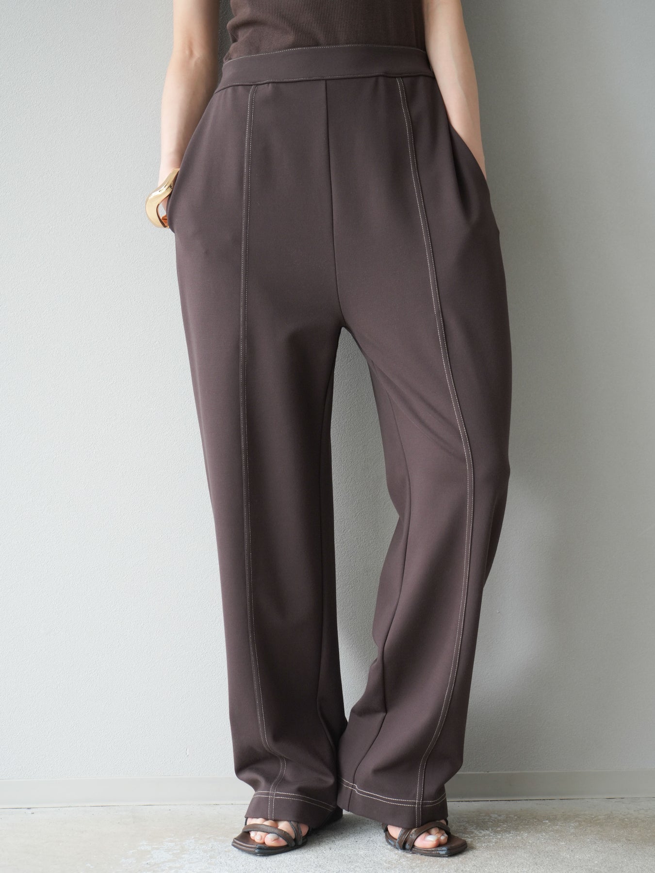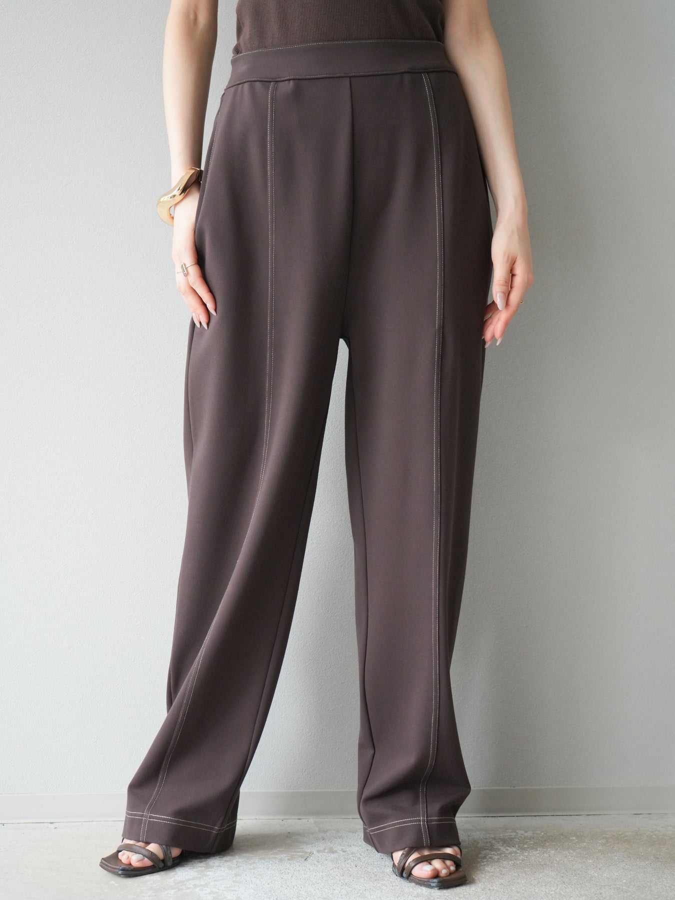 [予約]ステッチポンチライクパンツ/ブラウン