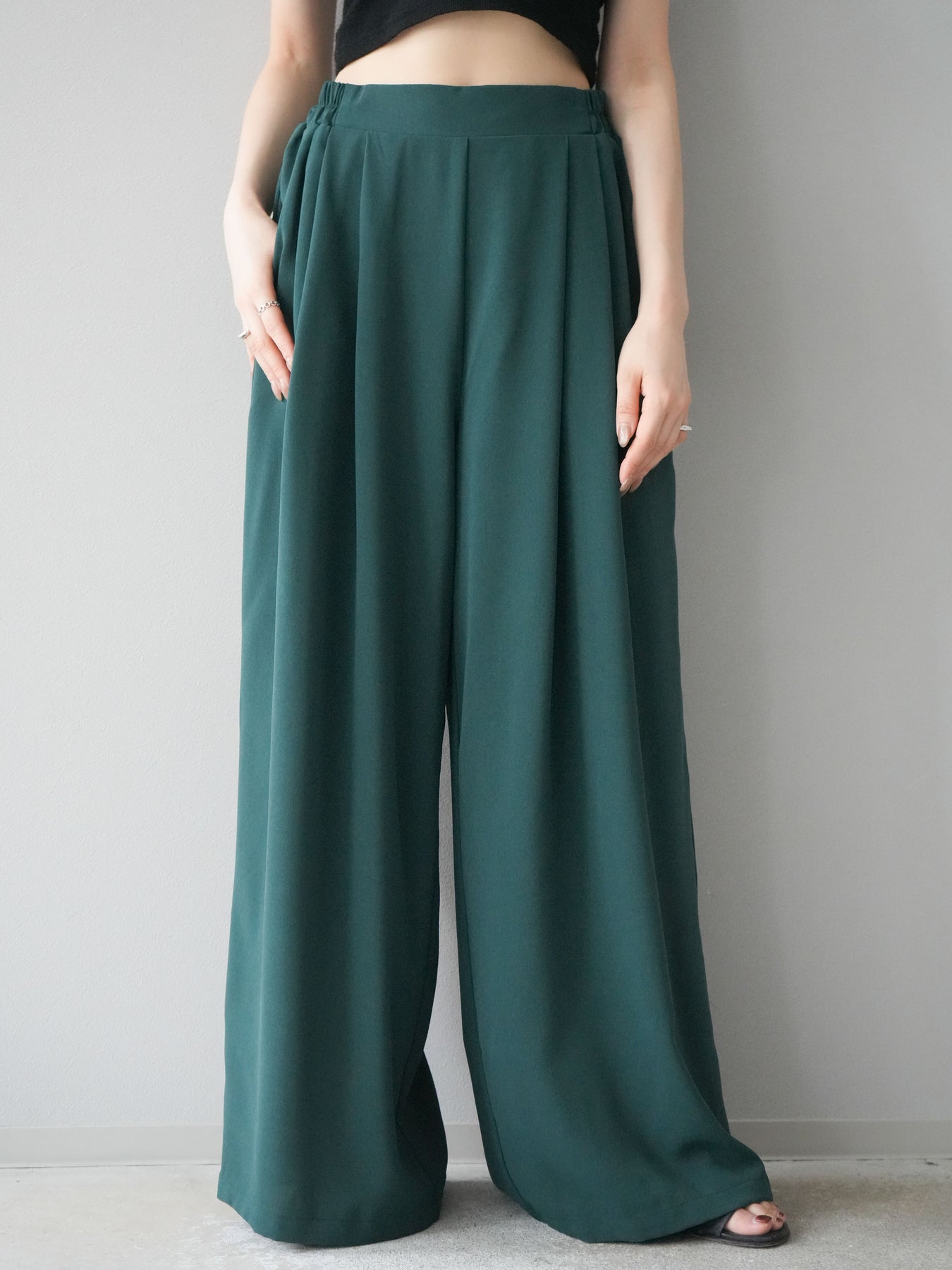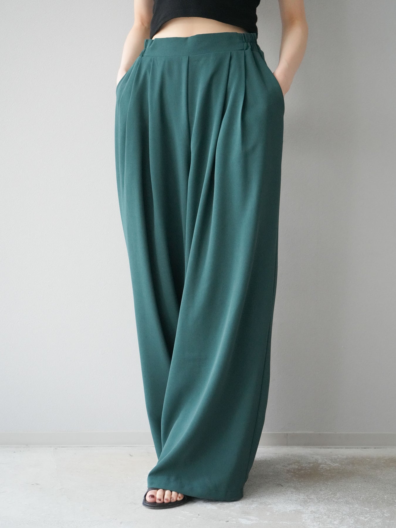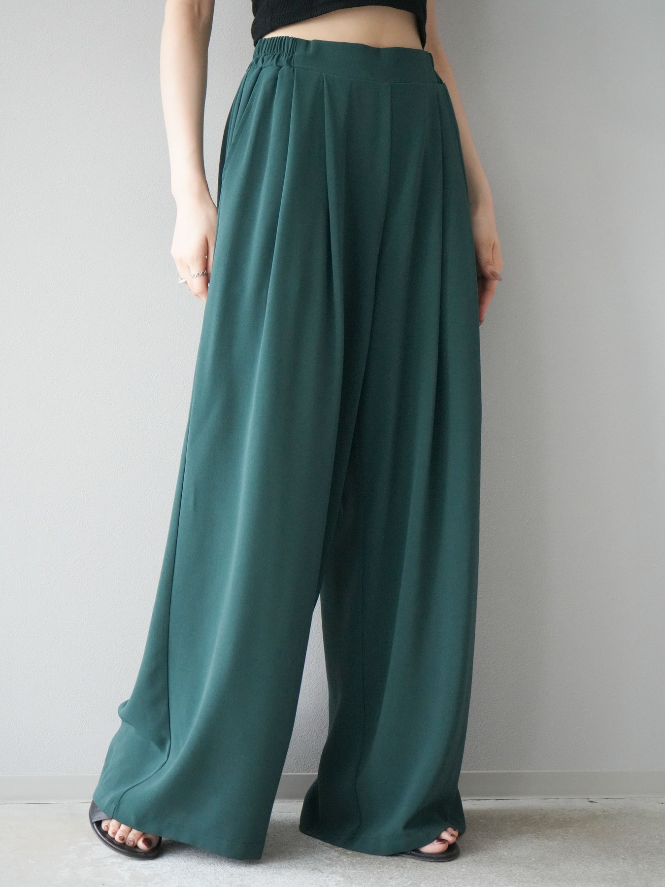 [予約]レーヨンライクタックワイドパンツ/グリーン