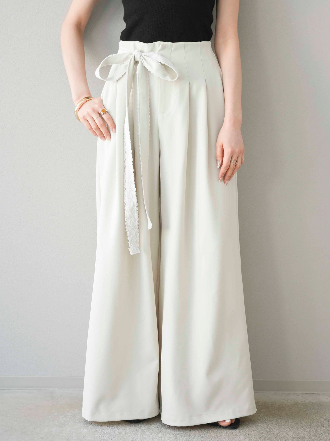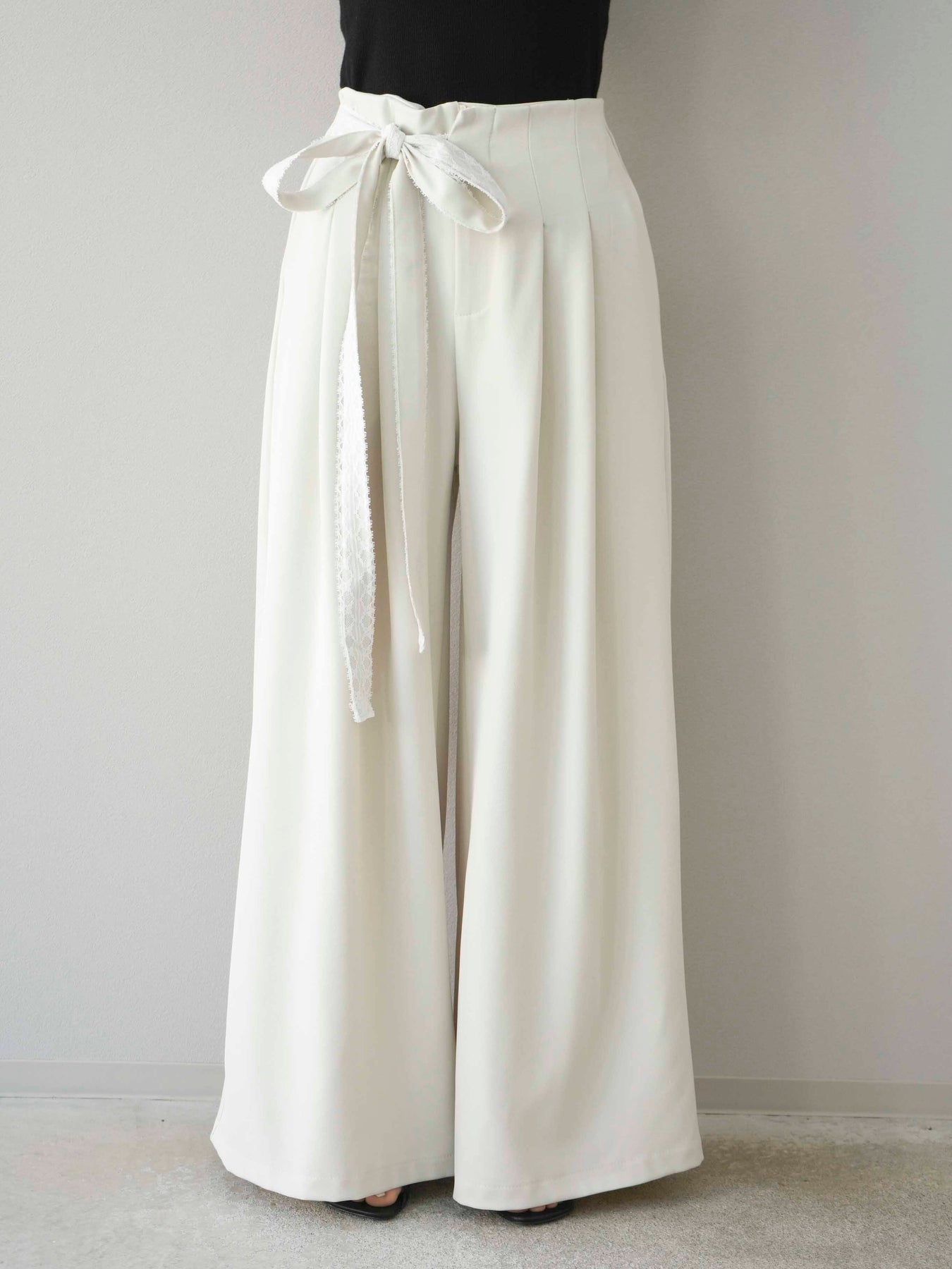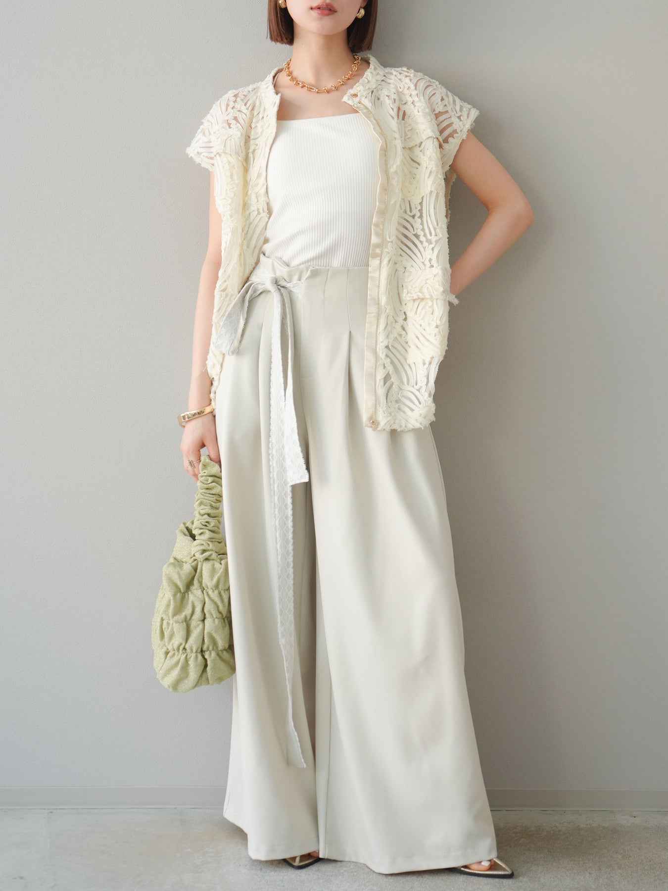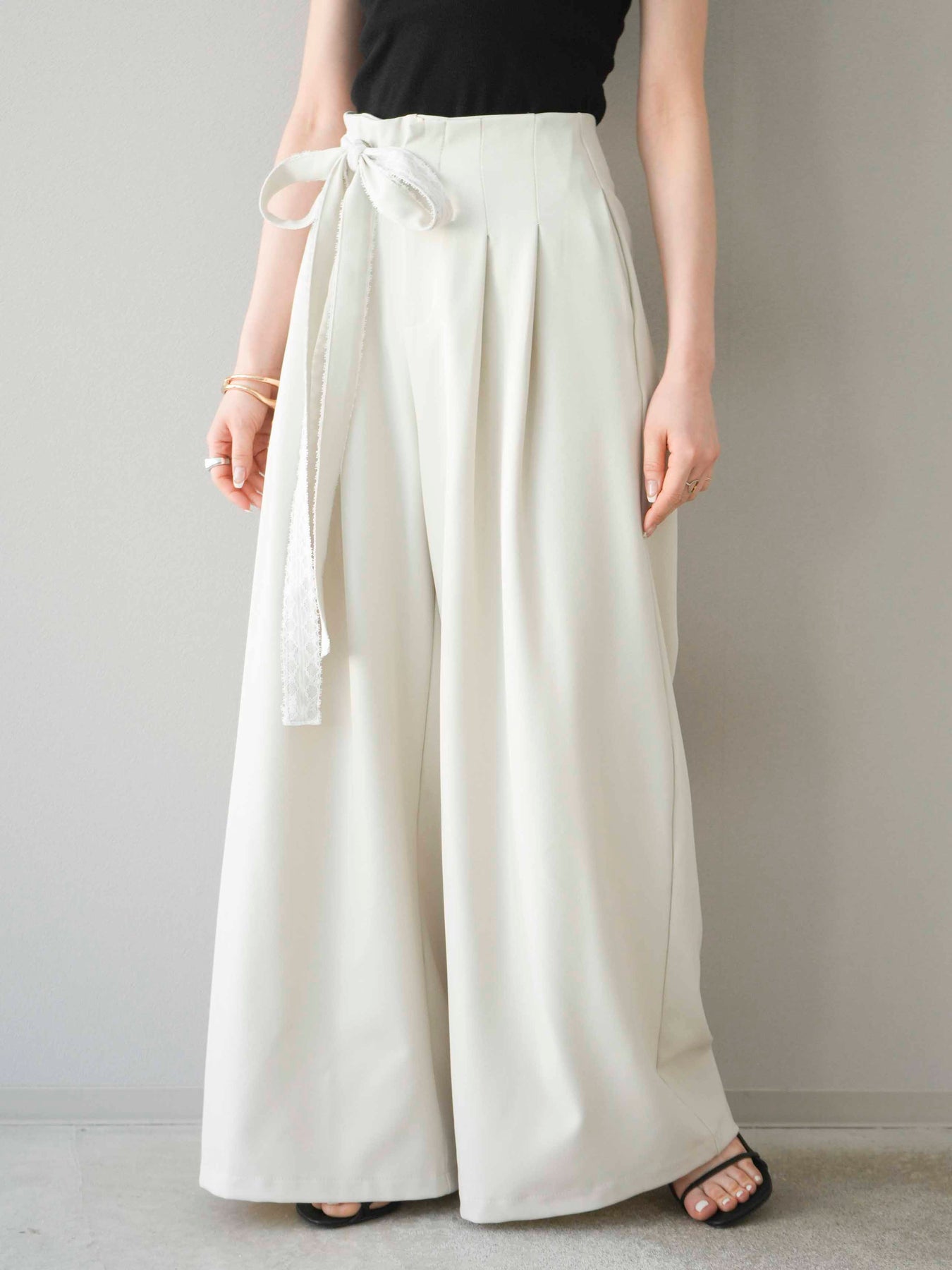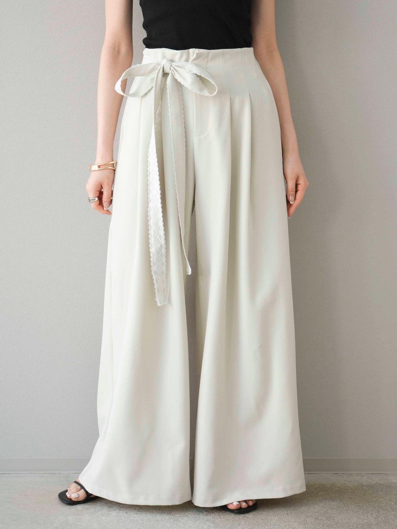 【預購】蕾絲腰帶設計寬褲/象牙白