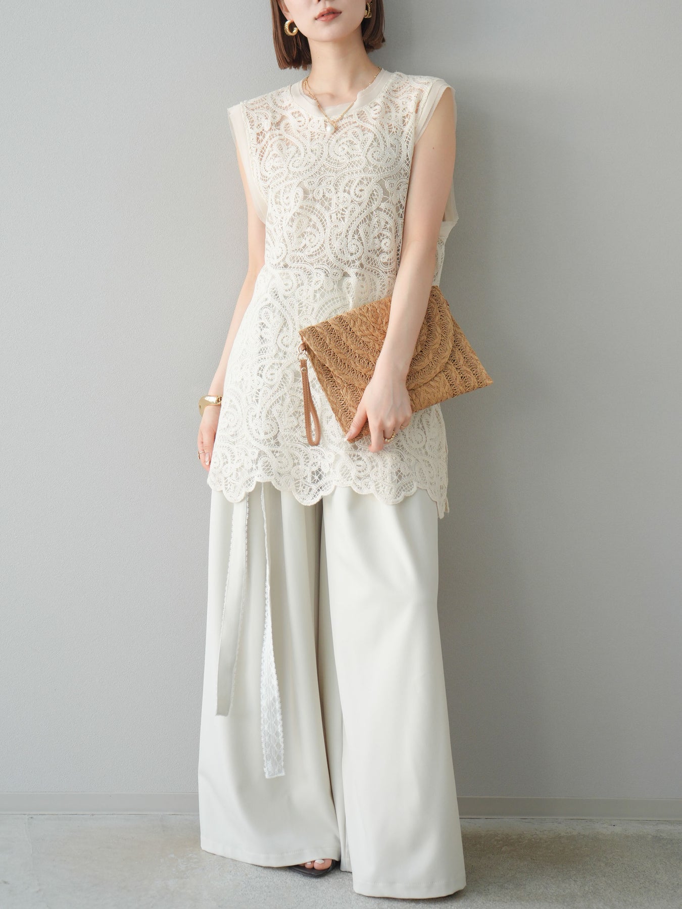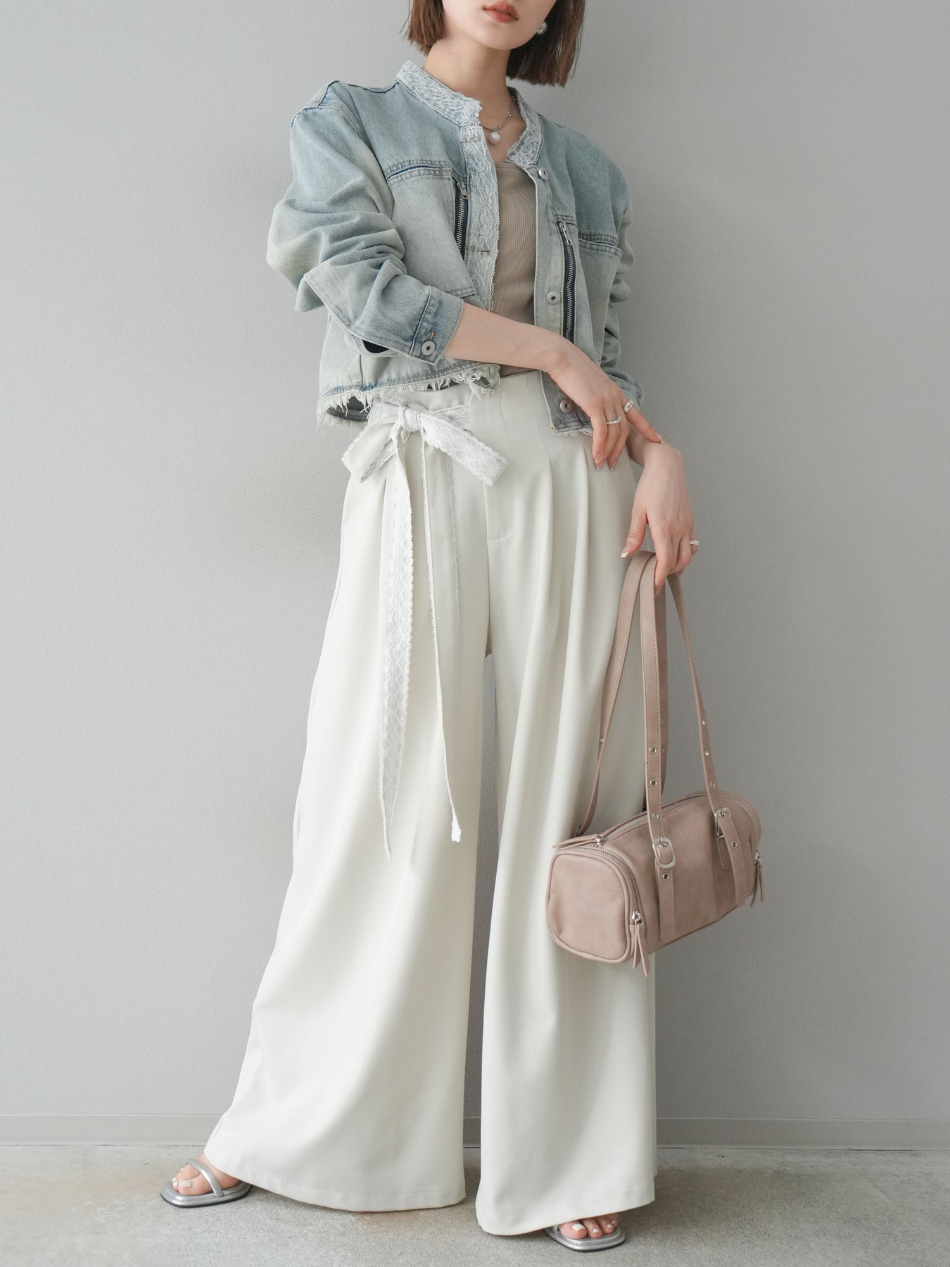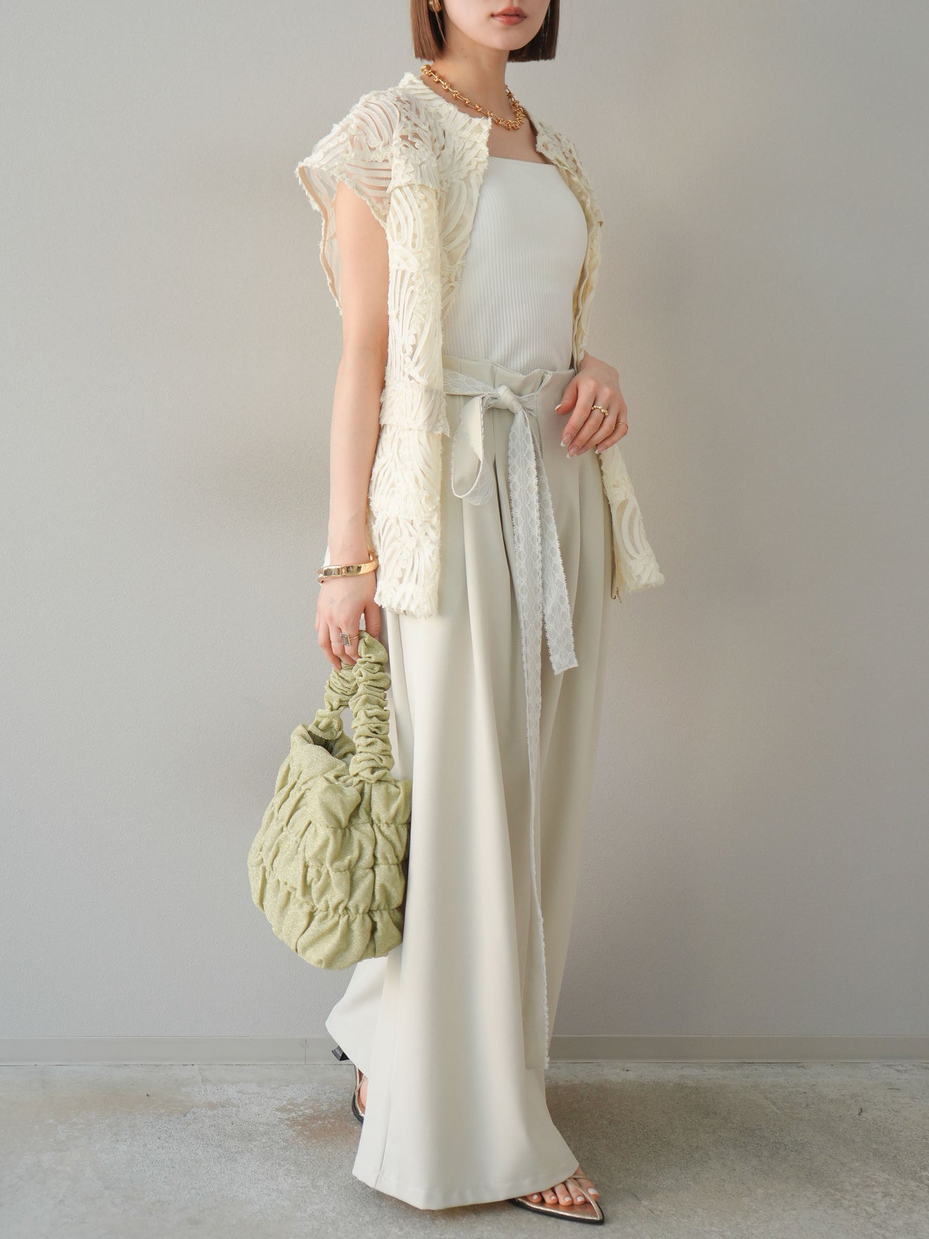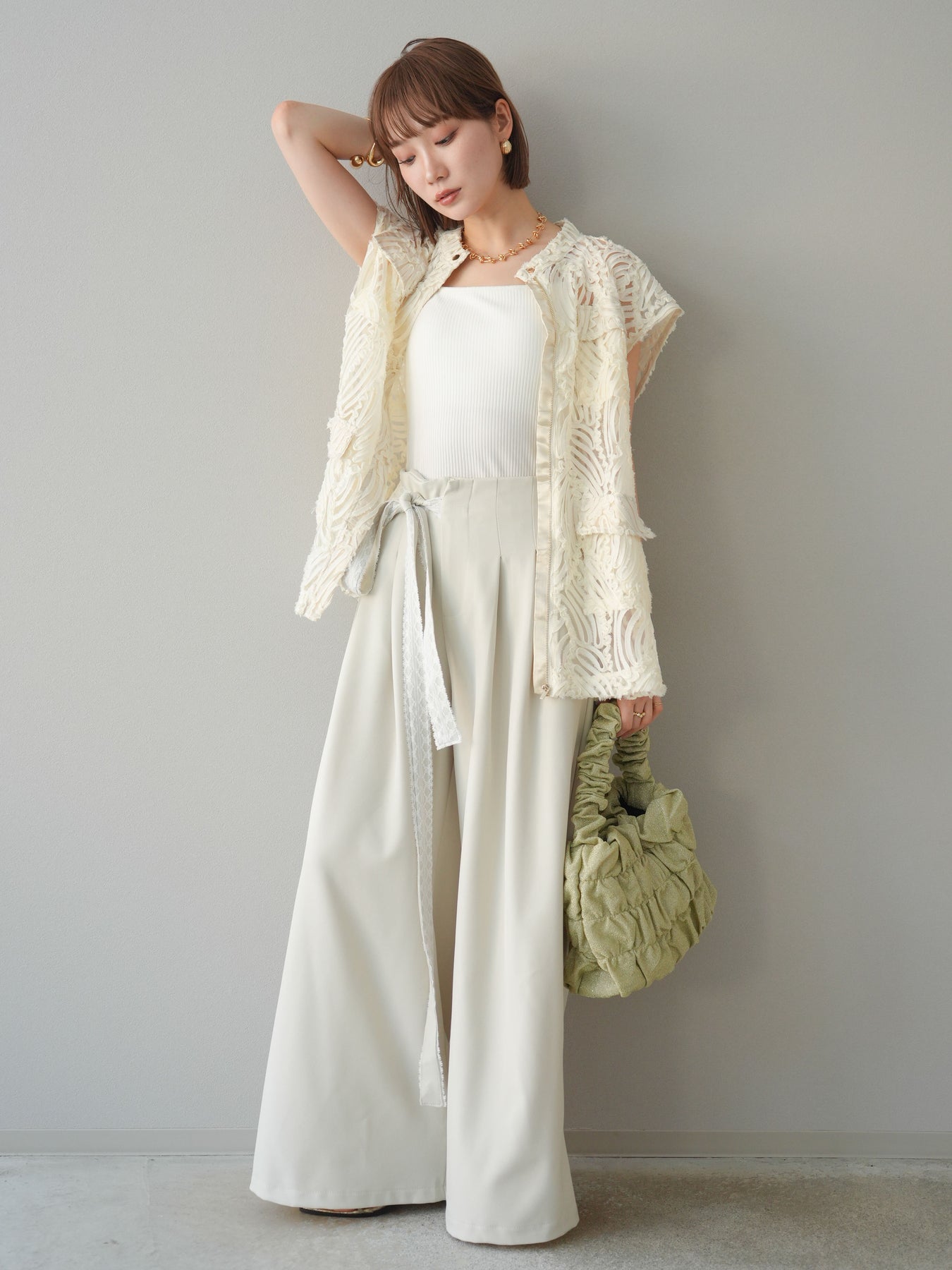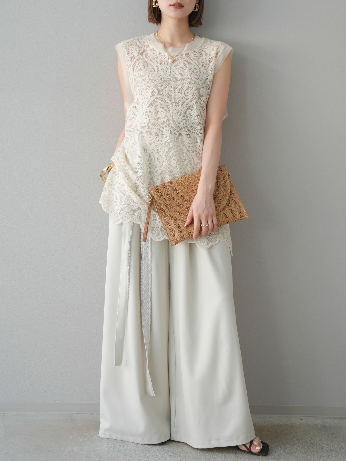 【預購】蕾絲腰帶設計寬褲/象牙白