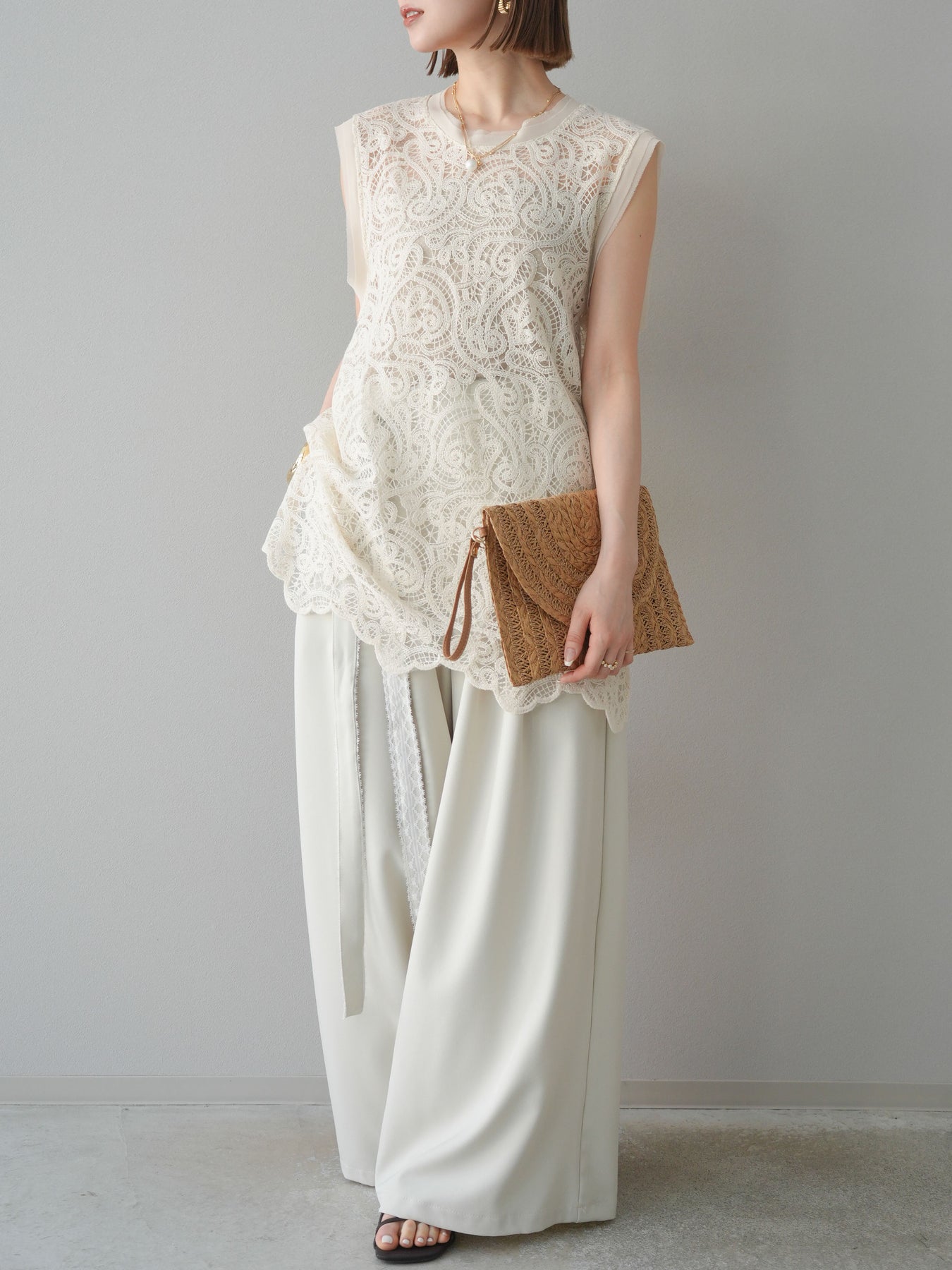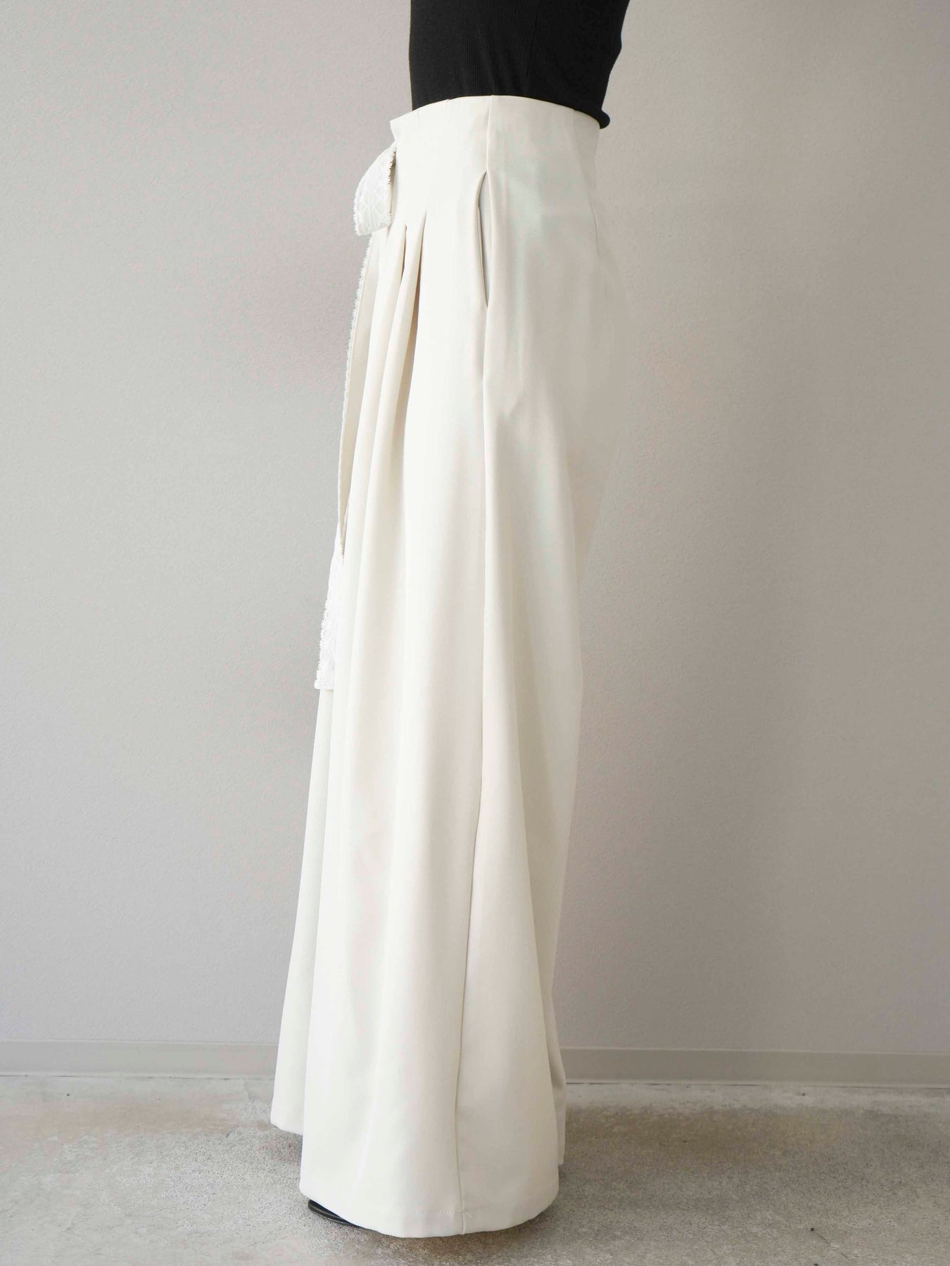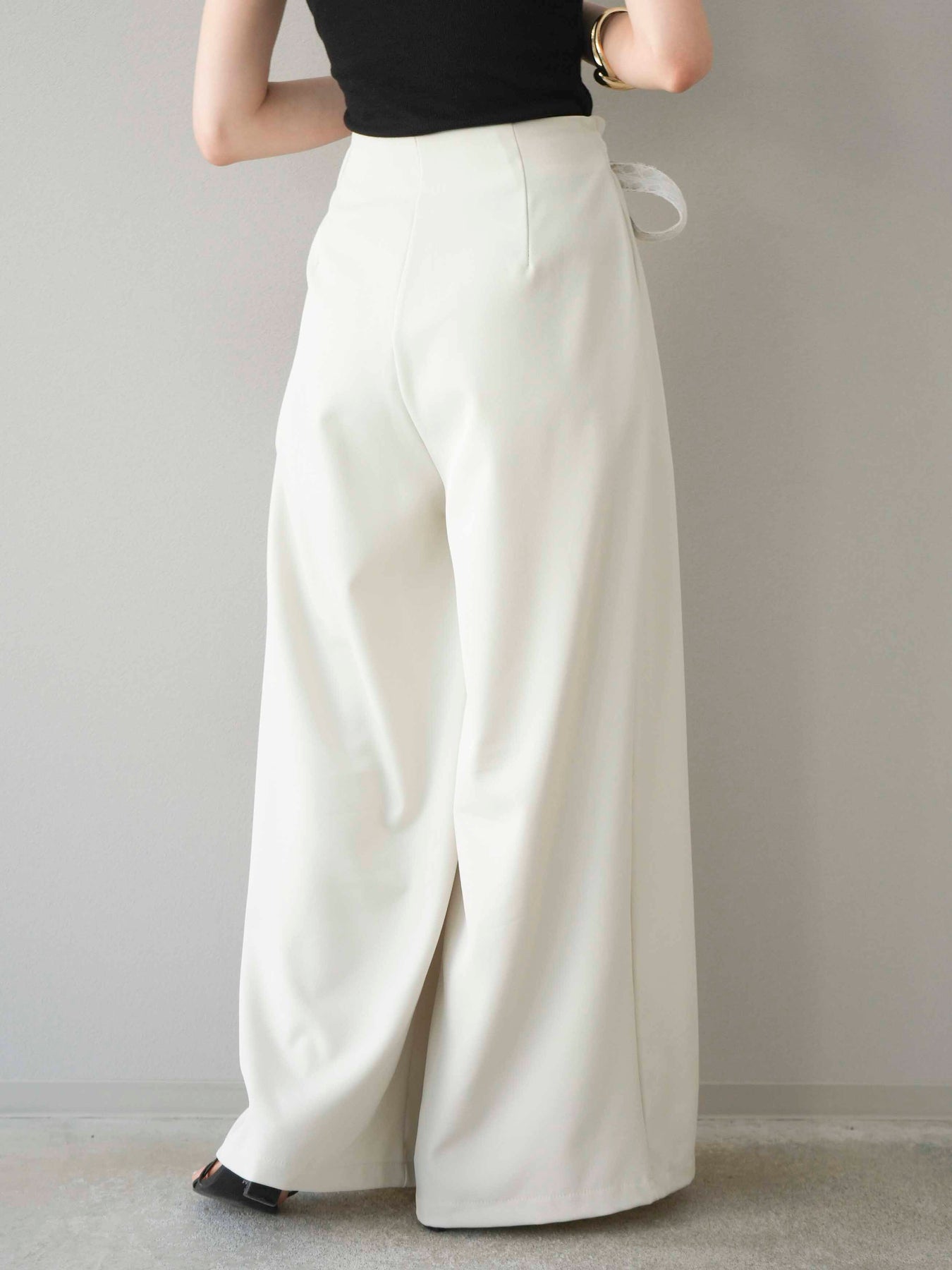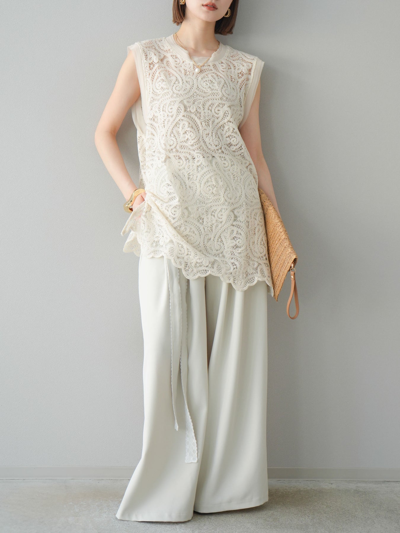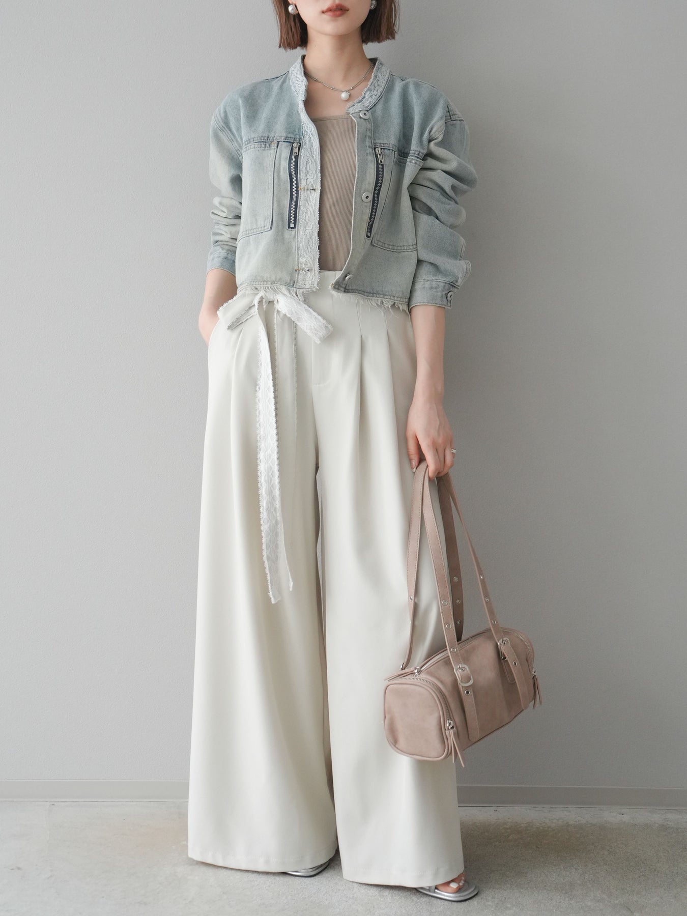 【預購】蕾絲腰帶設計寬褲/象牙白