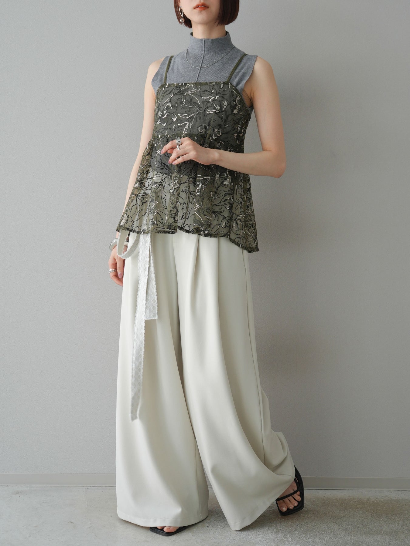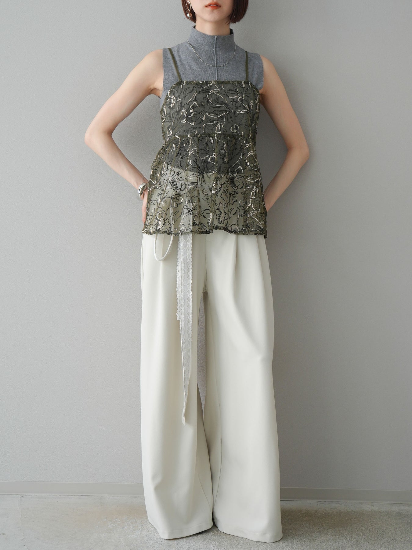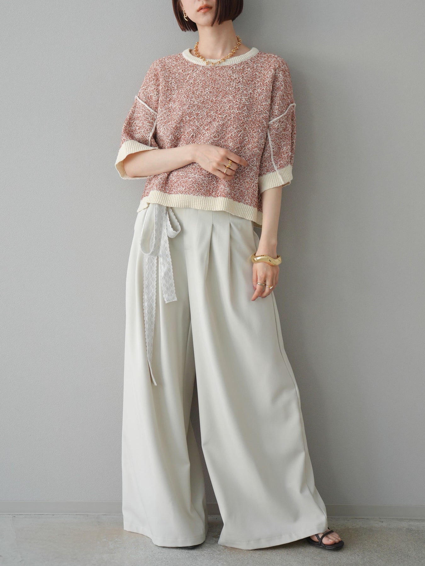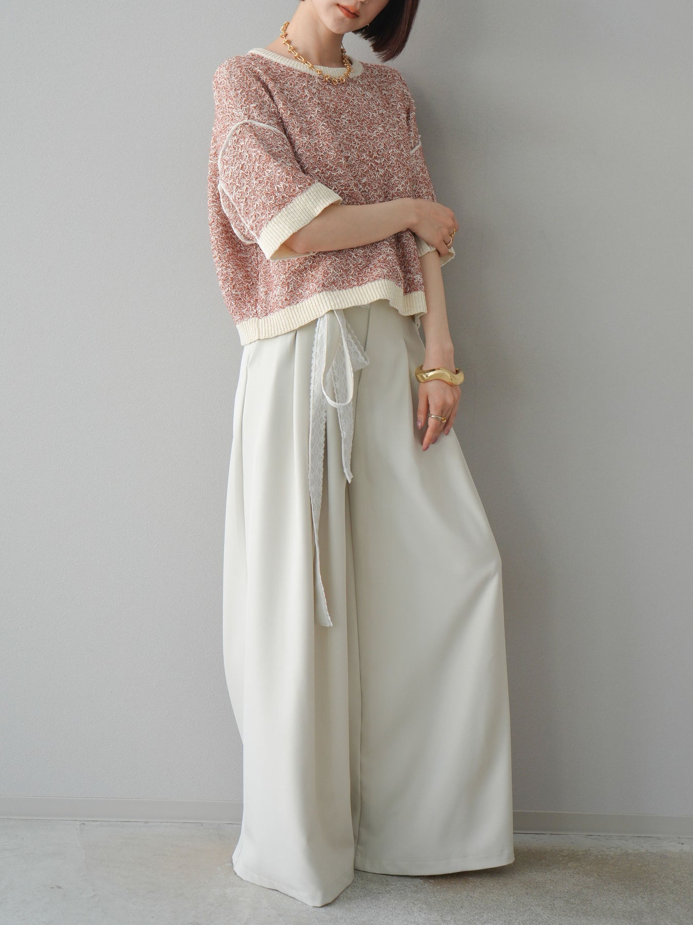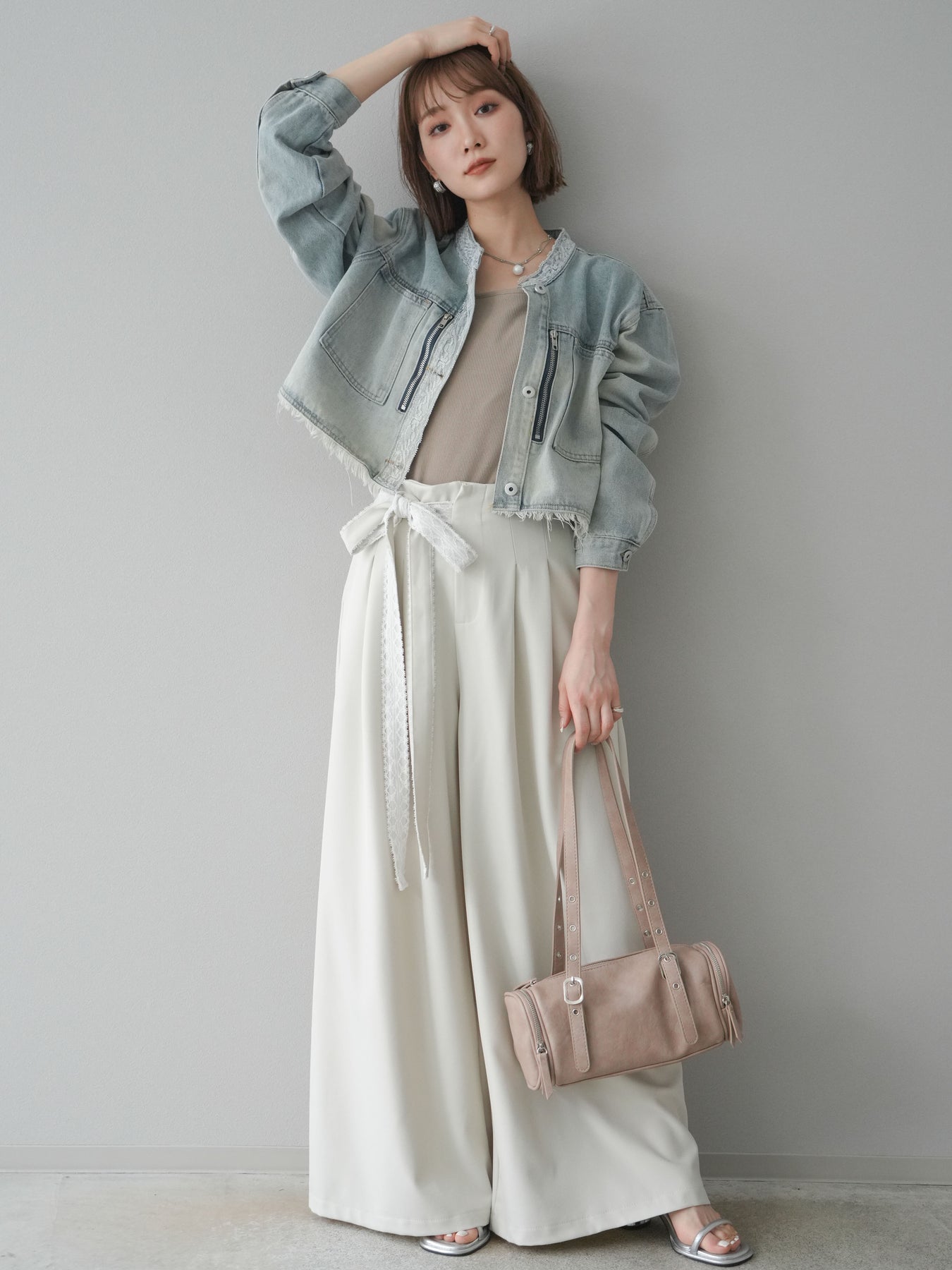【預購】蕾絲腰帶設計寬褲/象牙白