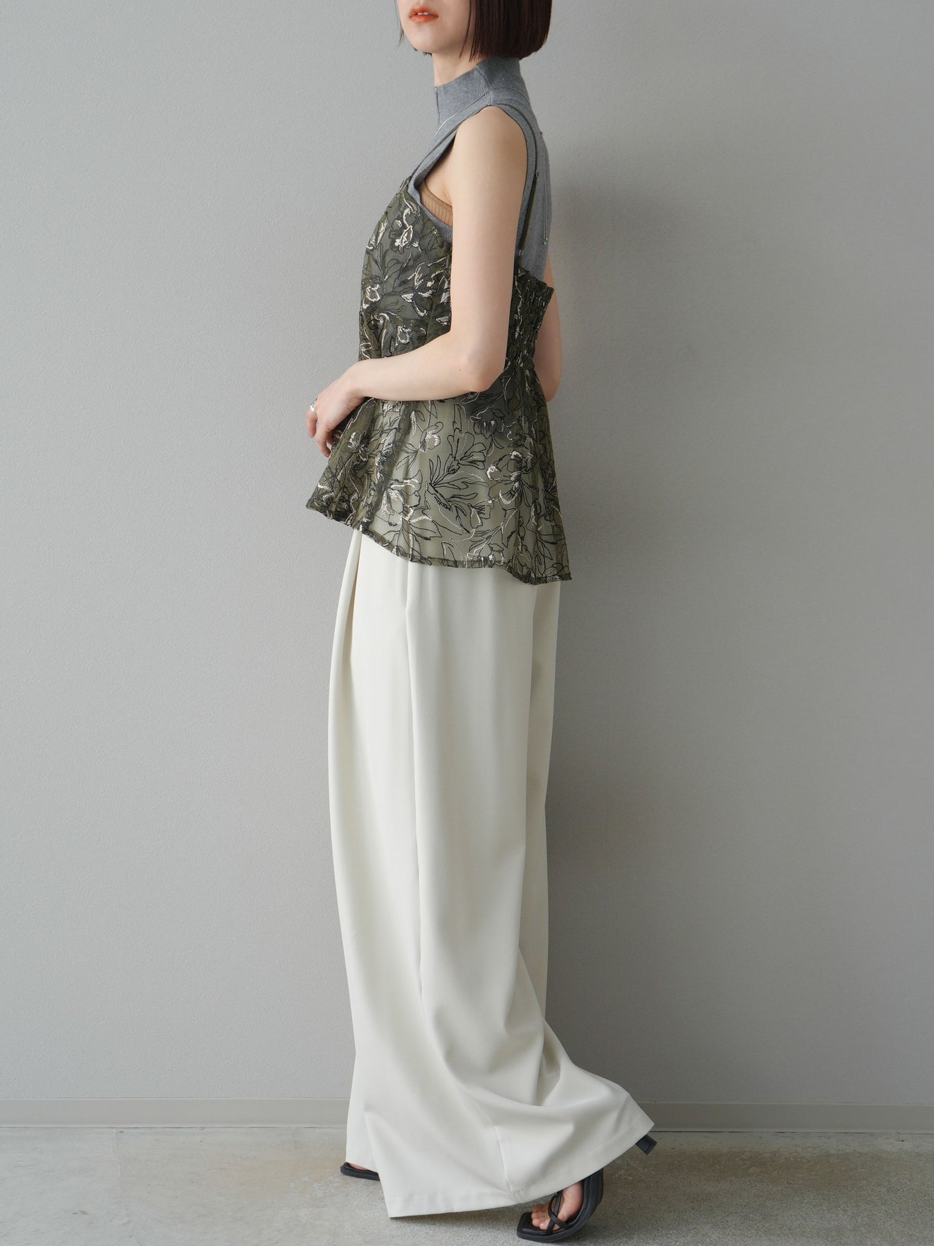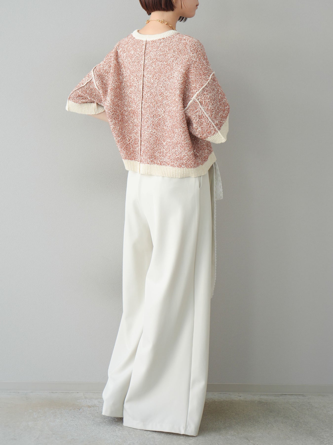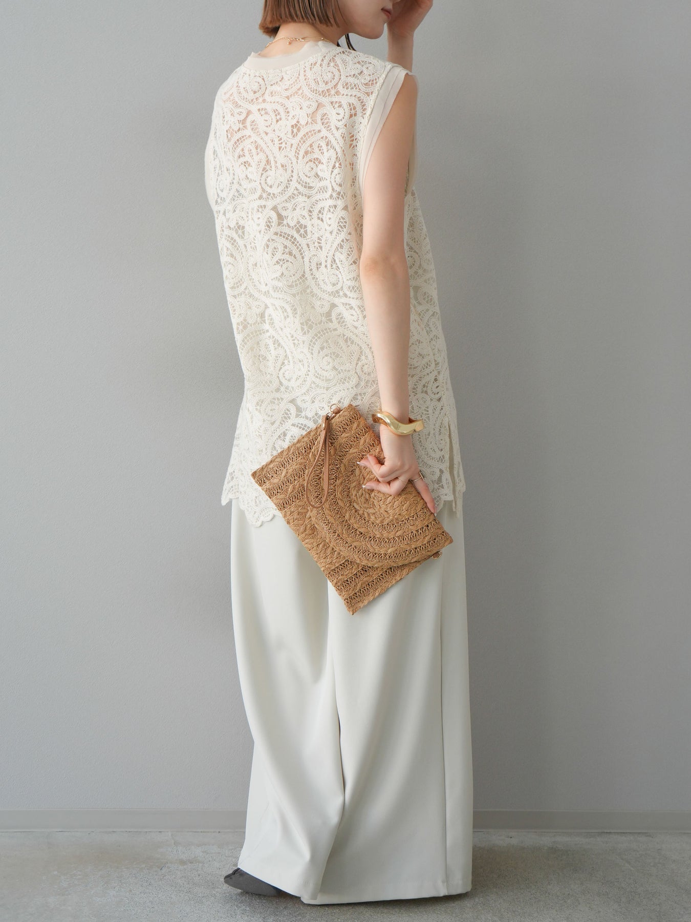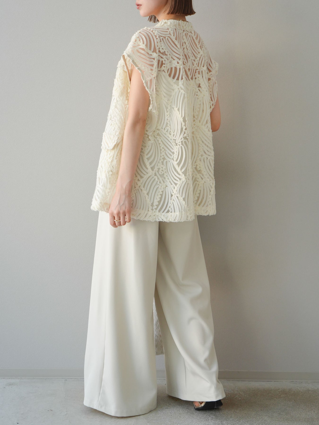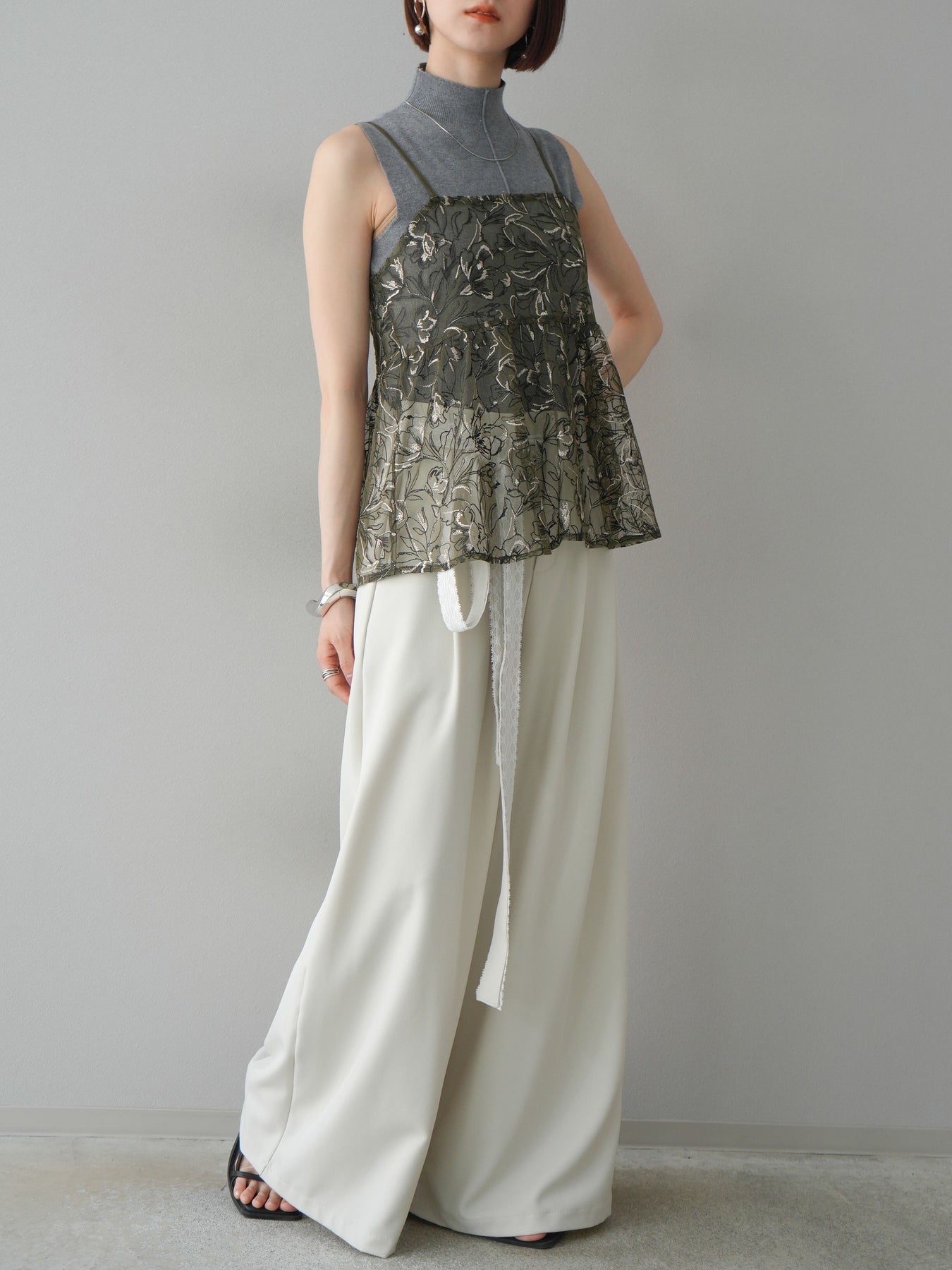 【預購】蕾絲腰帶設計寬褲/象牙白
