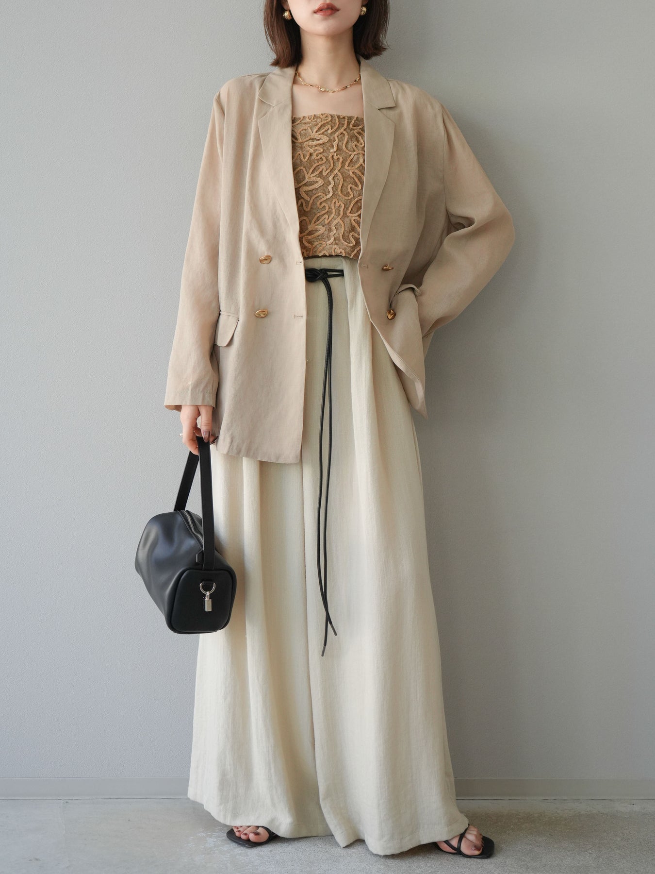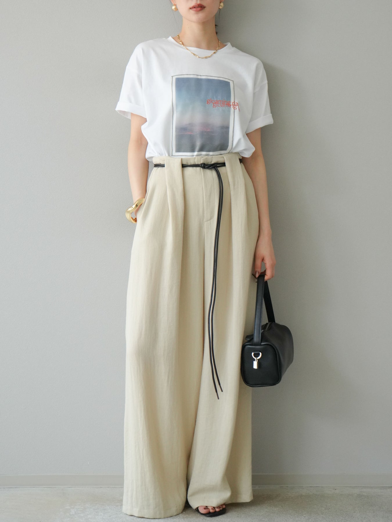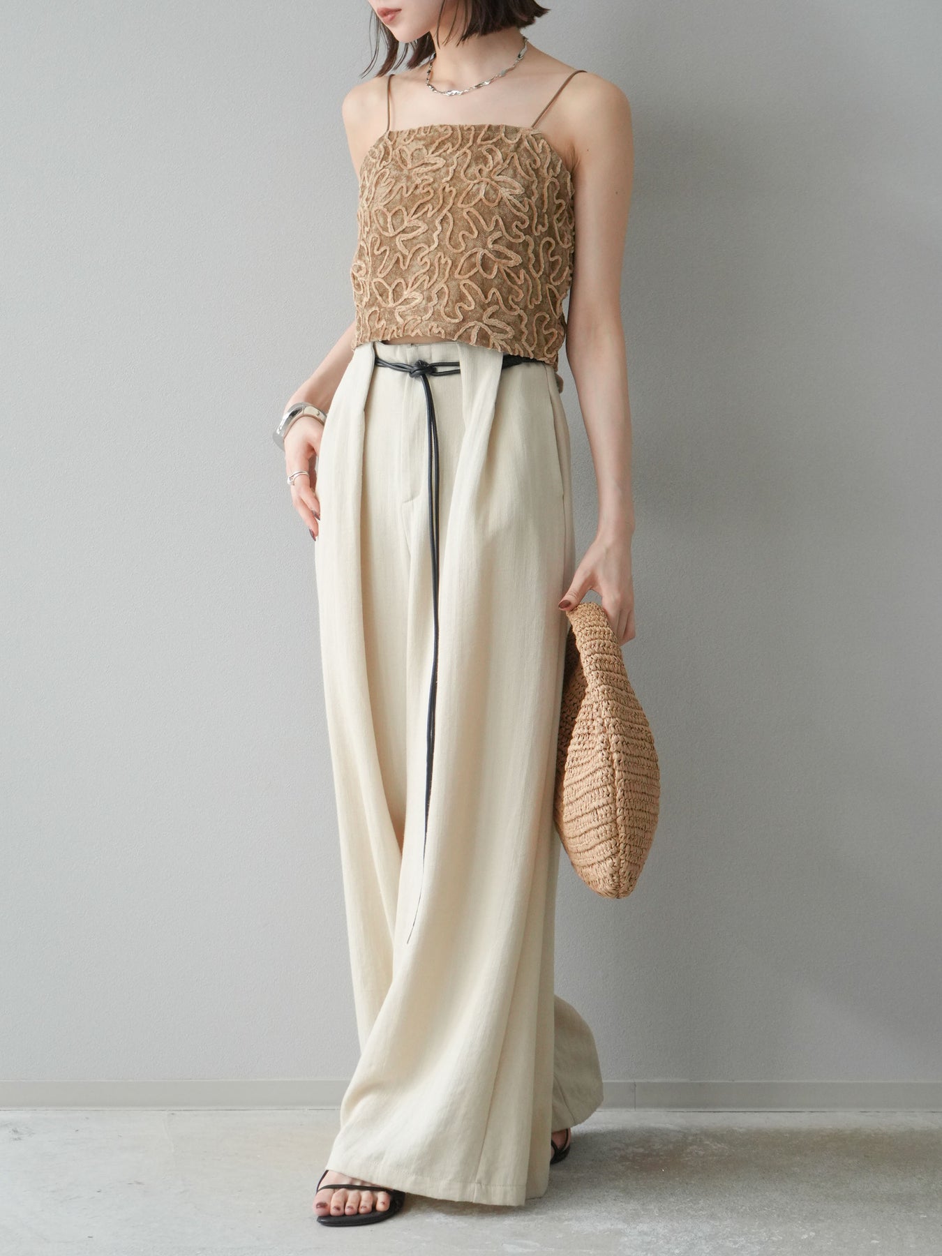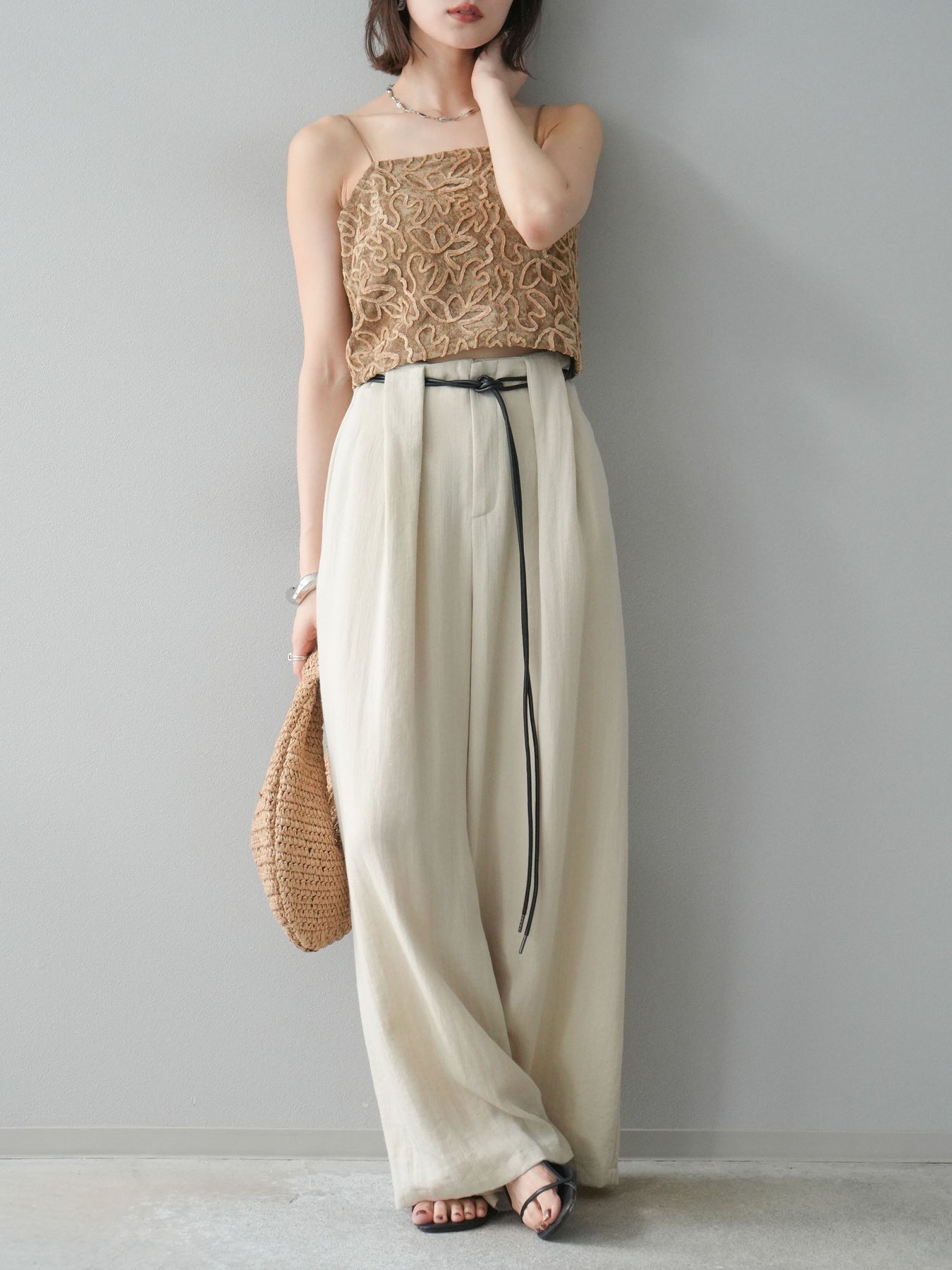 寬鬆褲採用亞麻材質製成,質感自然。順滑的觸感和輕盈的垂墜感帶來舒適感,與季節氛圍相得益彰。附贈的繩帶設計更添亮點,腰部裝飾也提升了整體造型。搭配束腰上衣,展現優雅氣質。