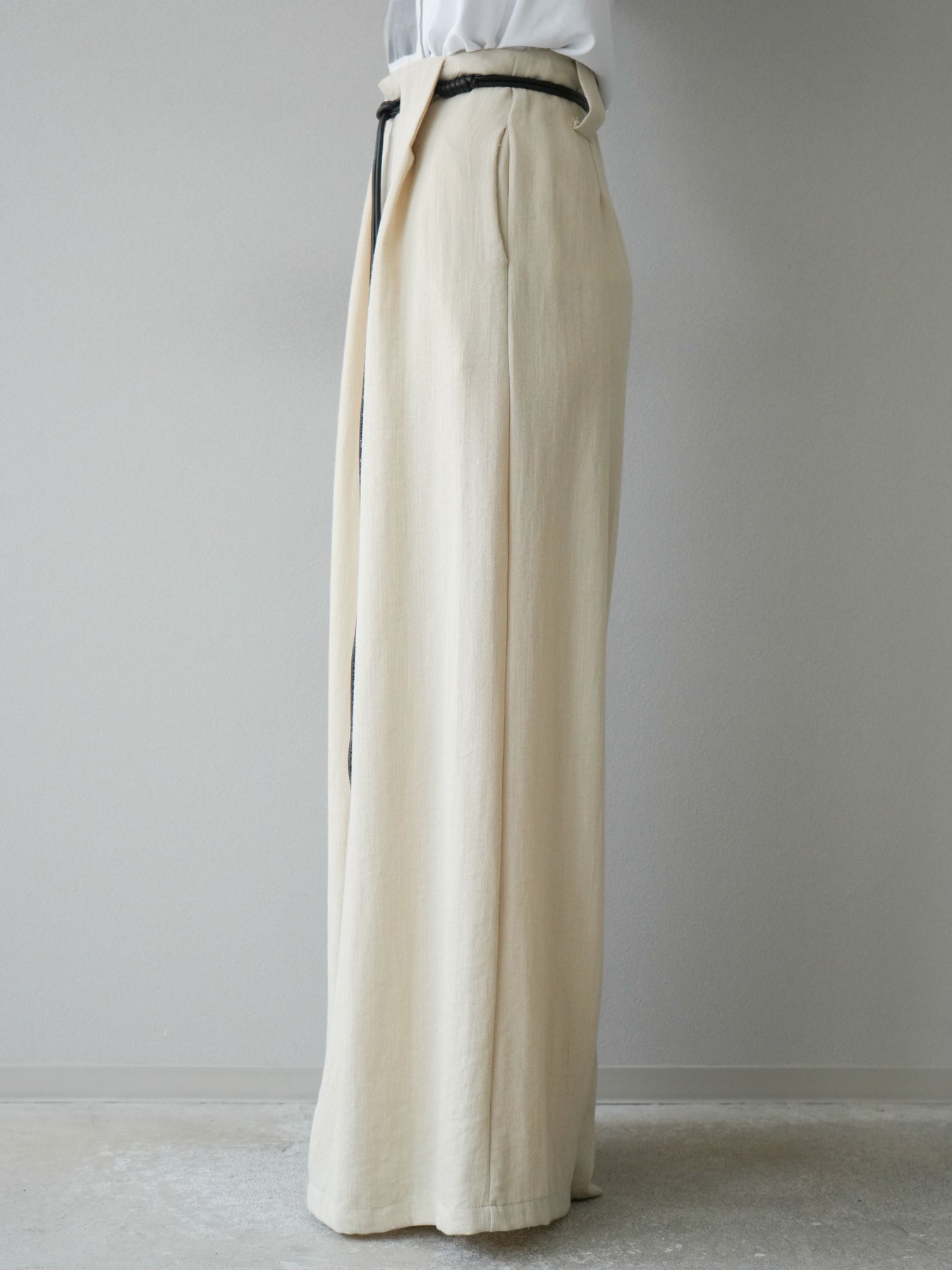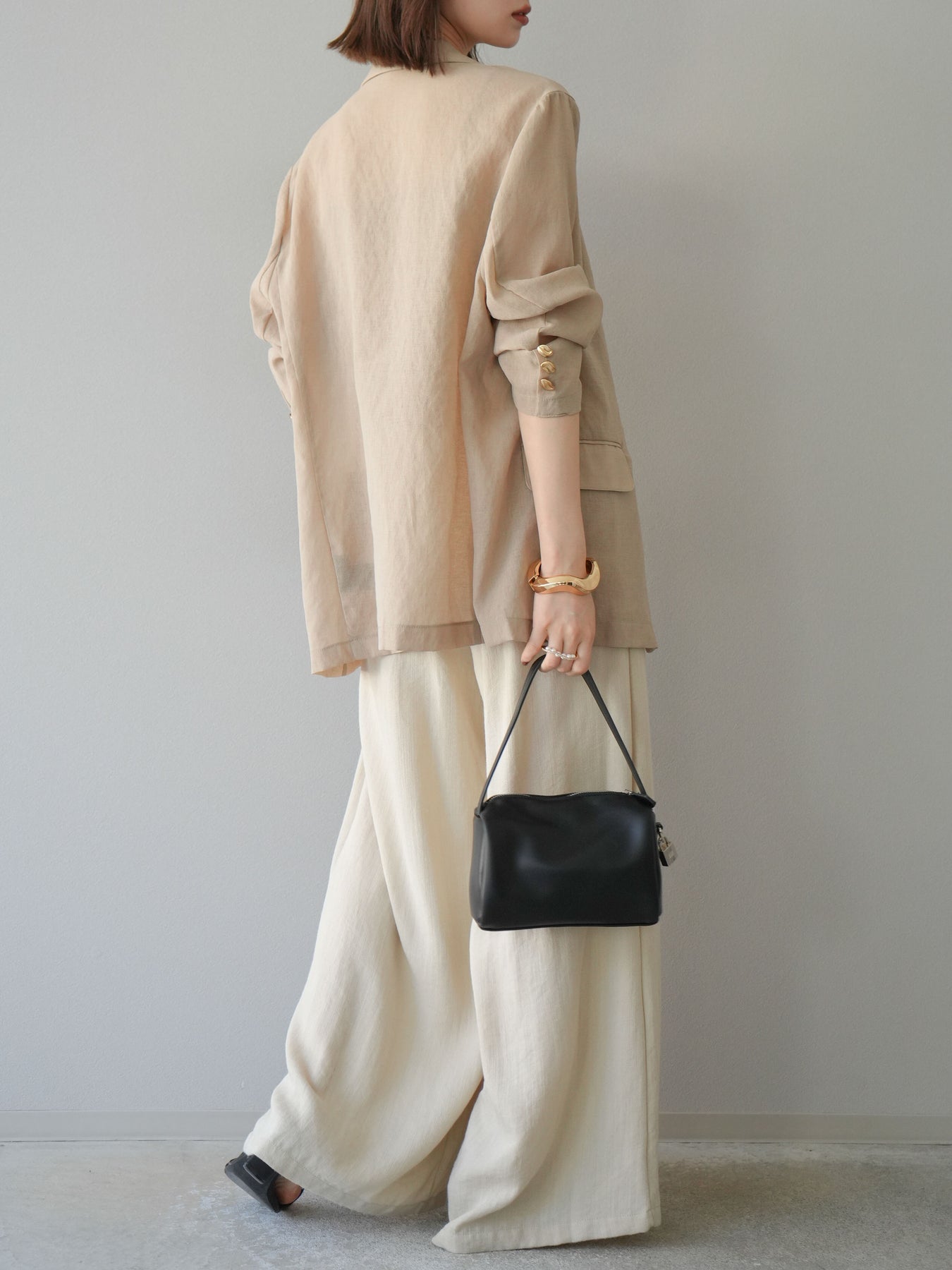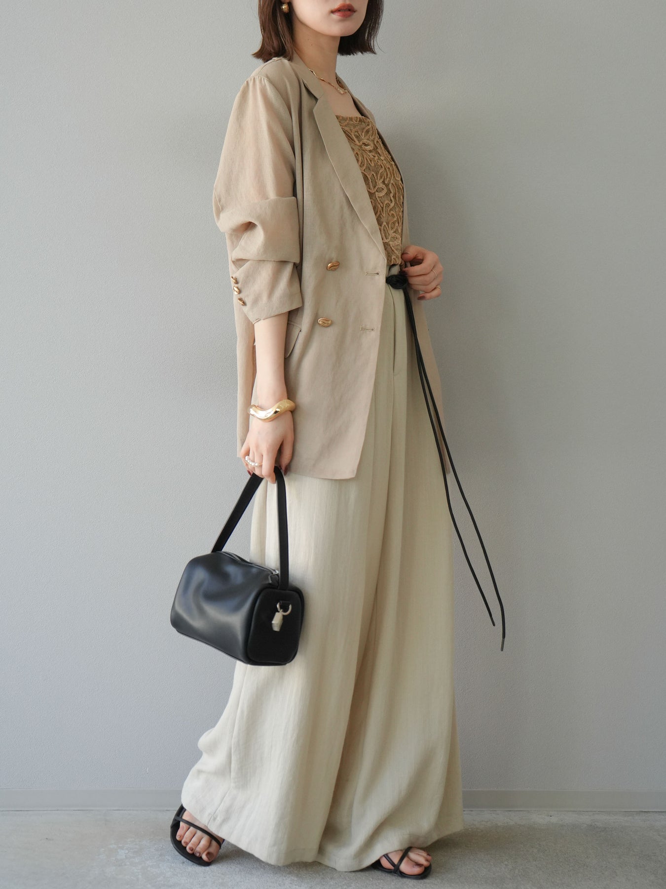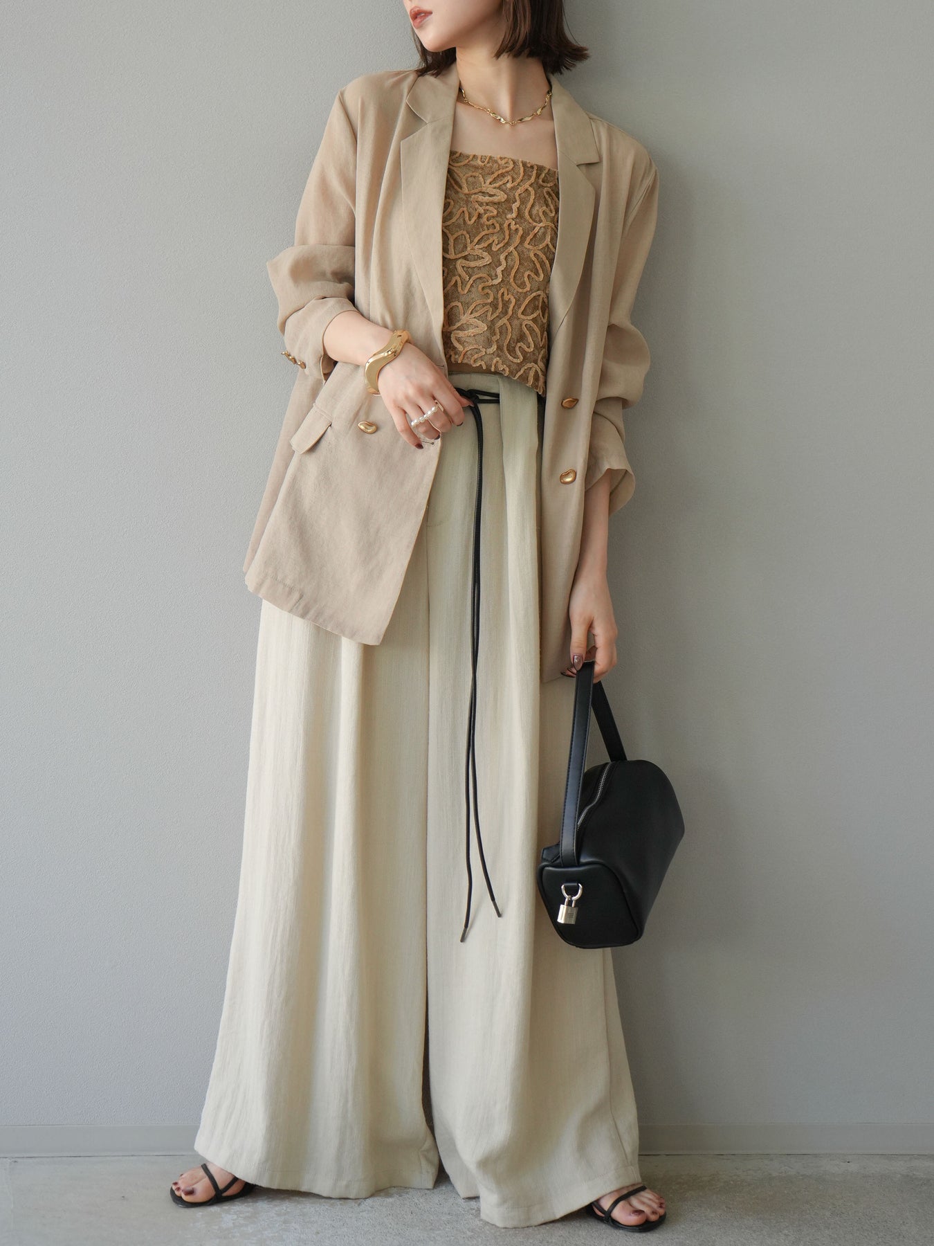 寬鬆褲採用亞麻材質製成,質感自然。順滑的觸感和輕盈的垂墜感帶來舒適感,與季節氛圍相得益彰。附贈的繩帶設計更添亮點,腰部裝飾也提升了整體造型。搭配束腰上衣,展現優雅氣質。