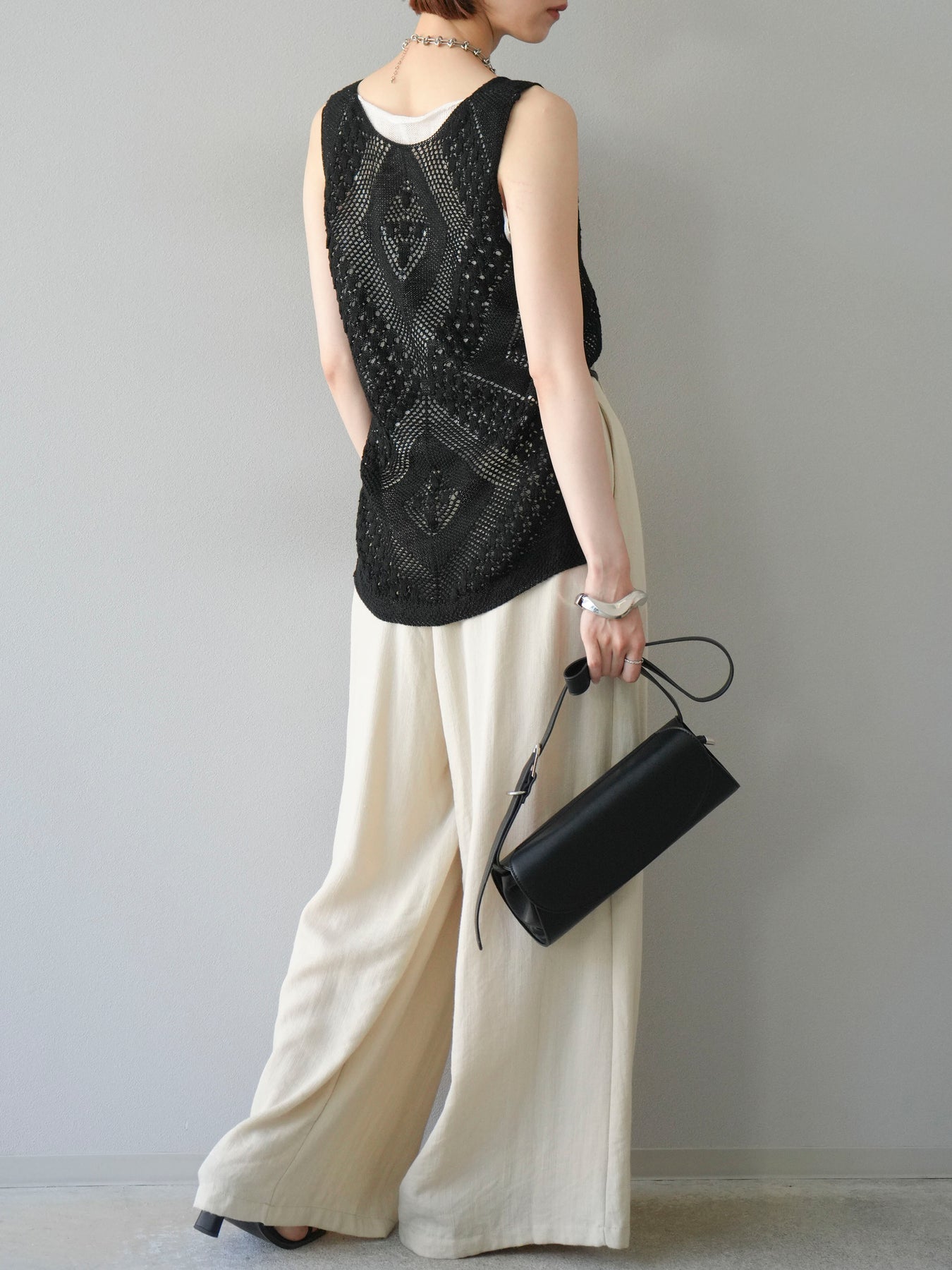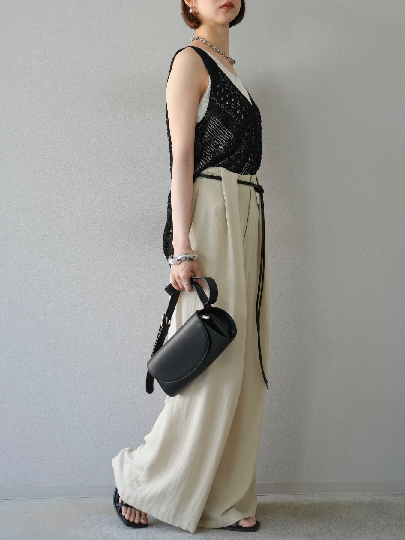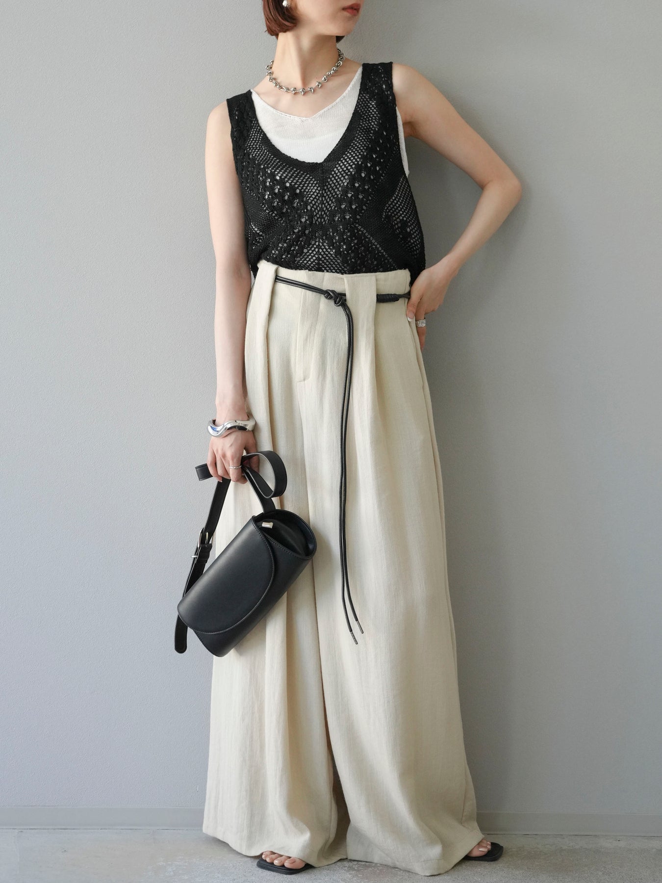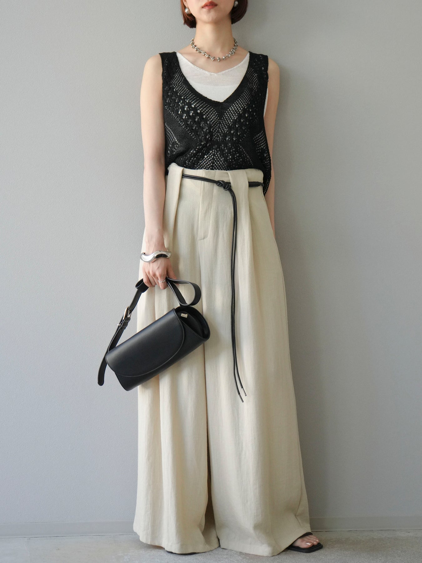 【預購】搜尋繩帶設計亞麻觸感寬褲相關商品 ↓