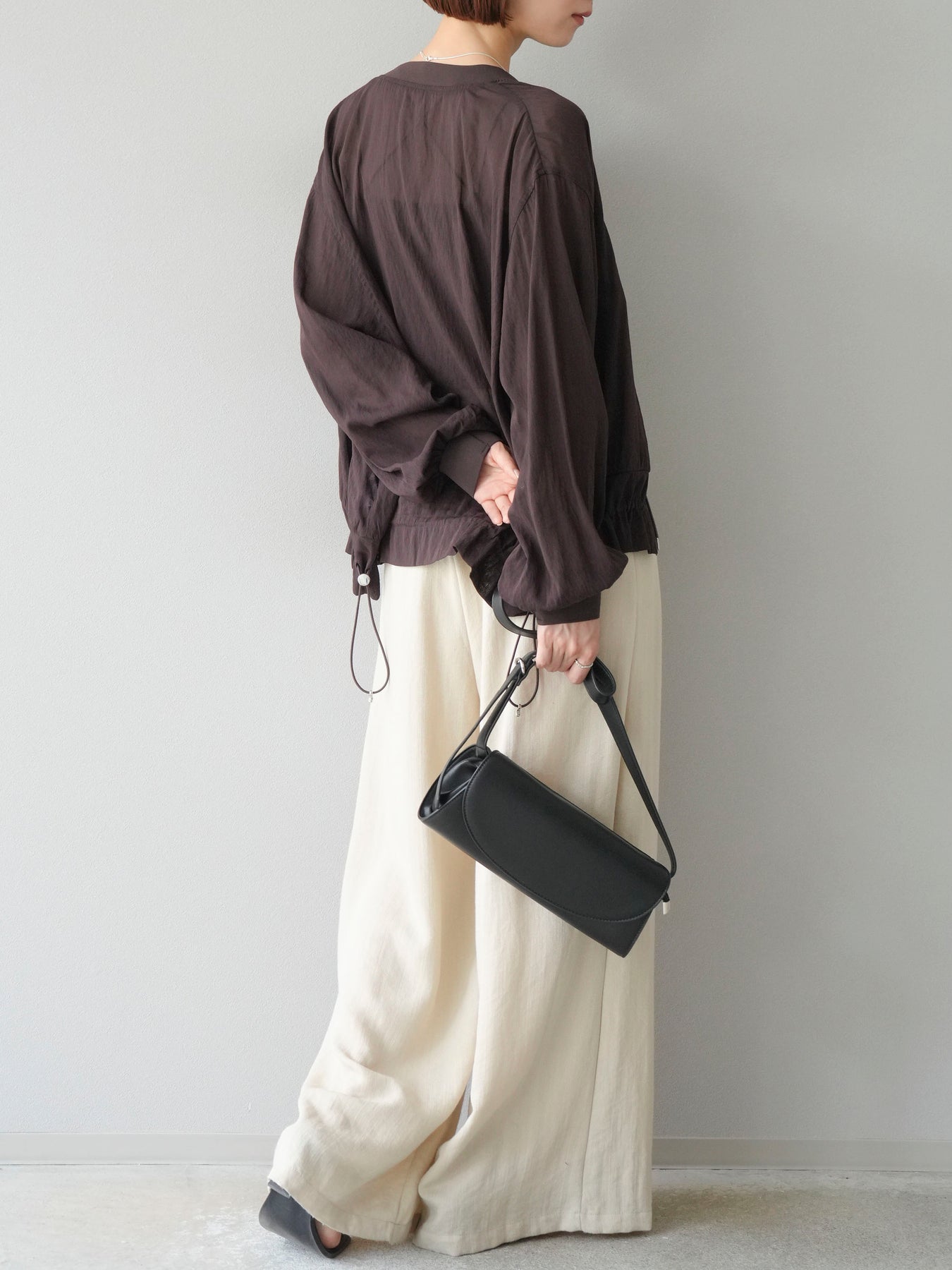 ・保養說明:建議在30℃以下水溫下手洗。由於材質特性,洗滌過程中可能會褪色,建議單獨洗滌短時間。將衣物翻面,放入洗衣網,選擇手洗模式洗滌,洗滌後整理懸掛晾乾。 *請勿使用滾筒烘乾機。如果在濕潤狀態下揉搓,可能會出現褪色或串色。避免浸泡或被雨水或汗水浸濕,並請立即丟棄。穿著時,請注意避免摩擦、汗水、水漬,以及與不同顏色衣物疊穿。