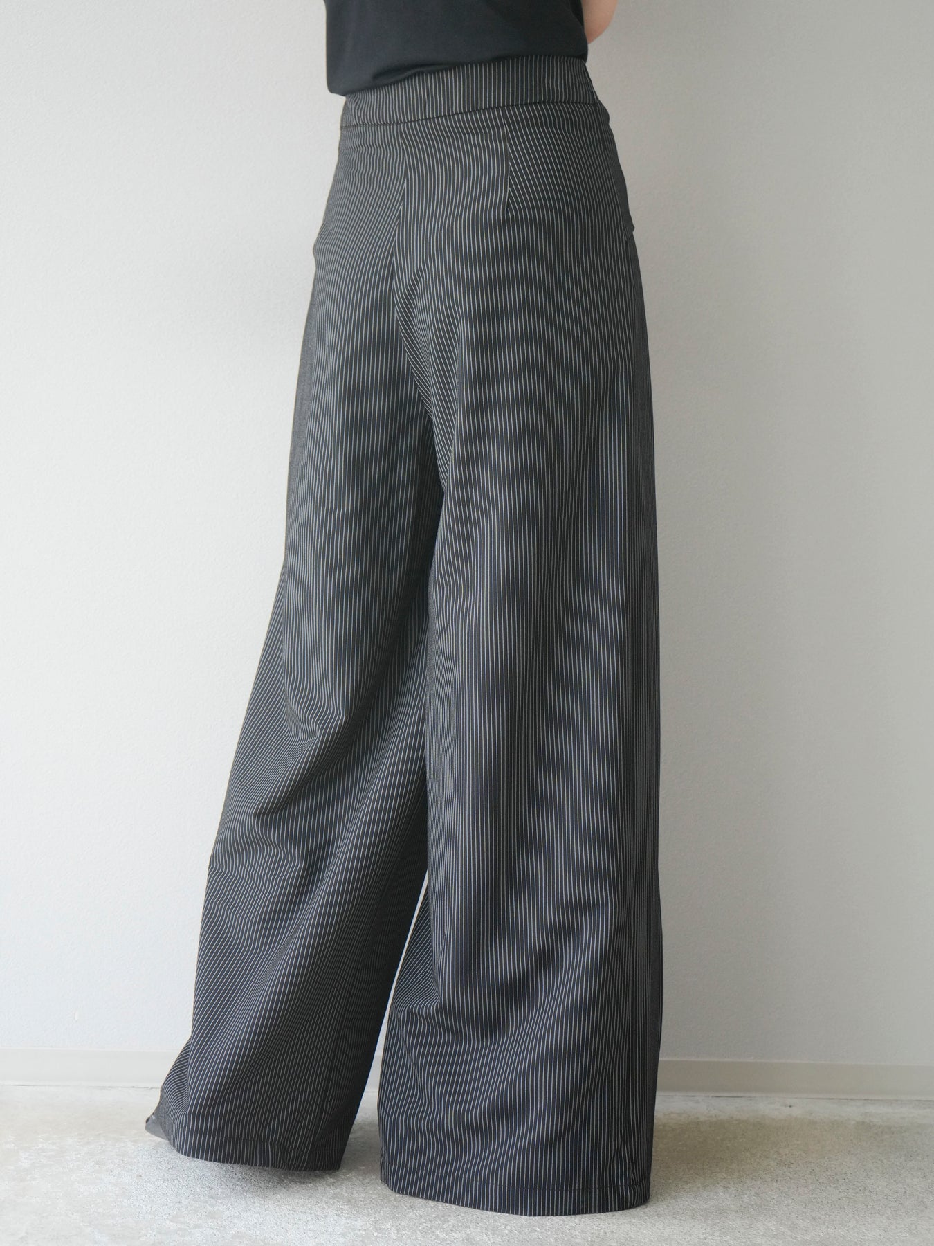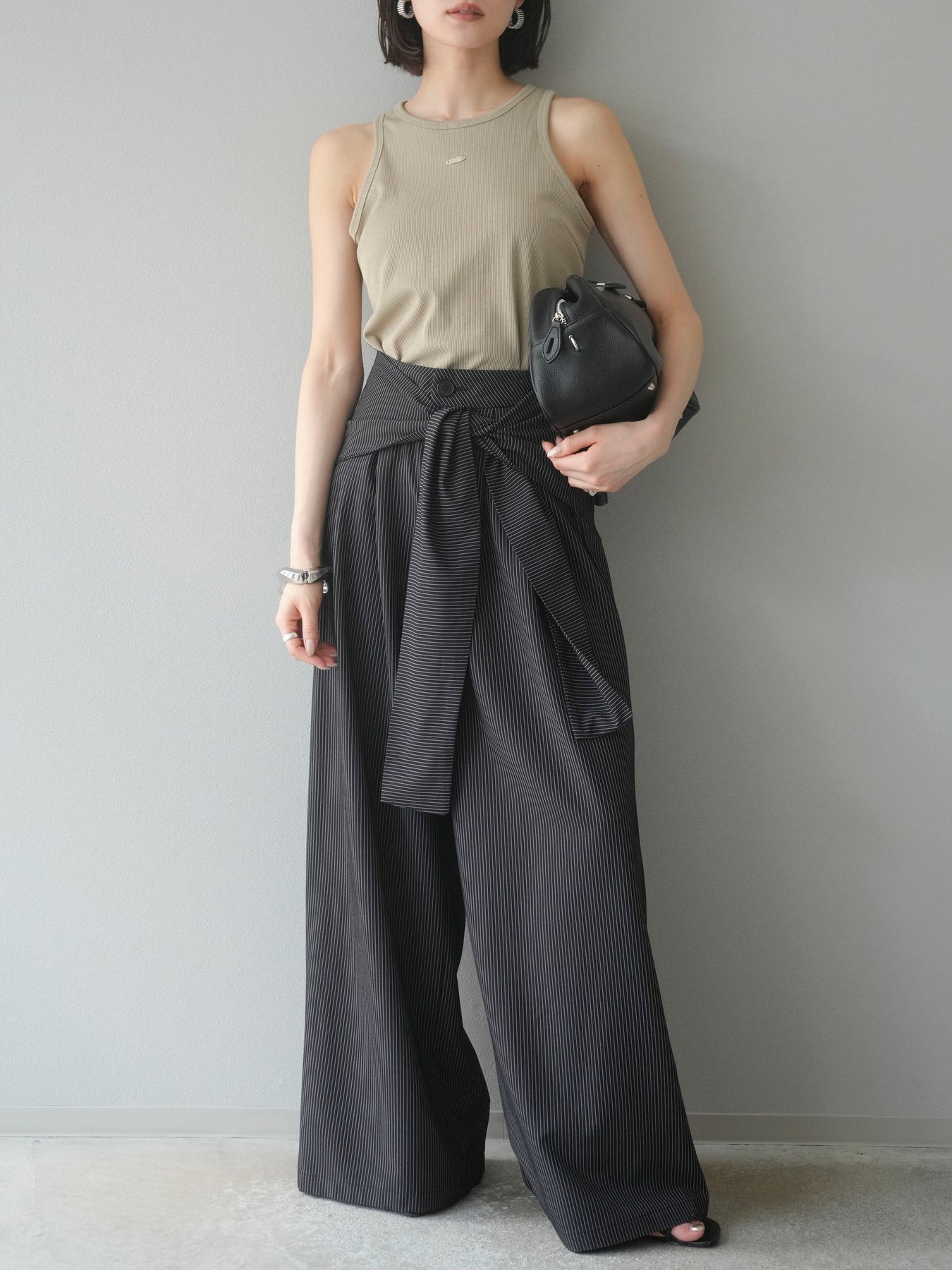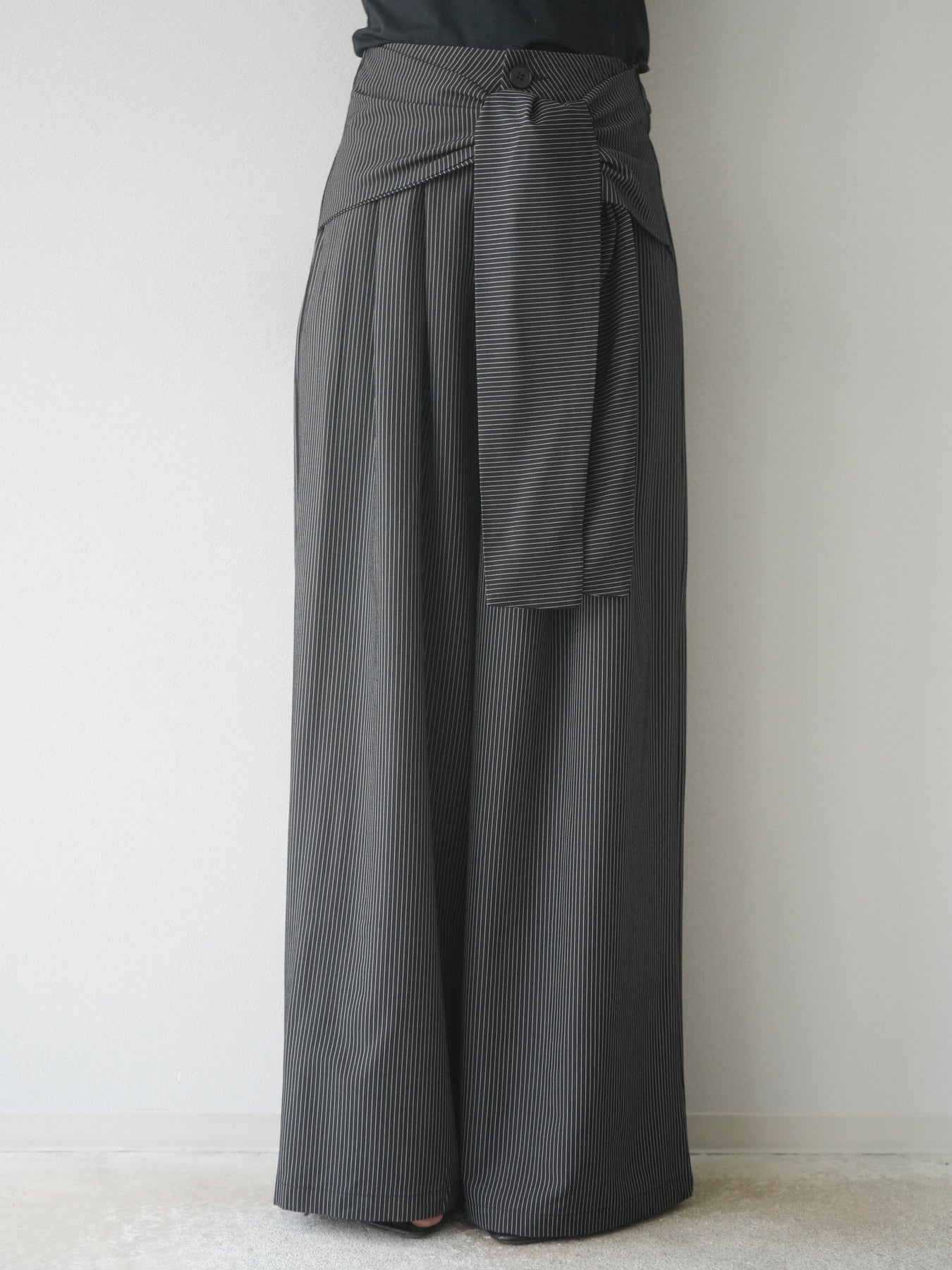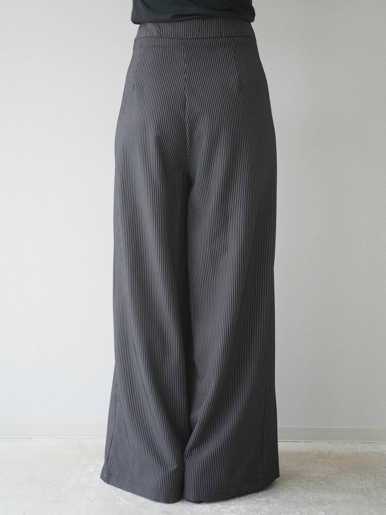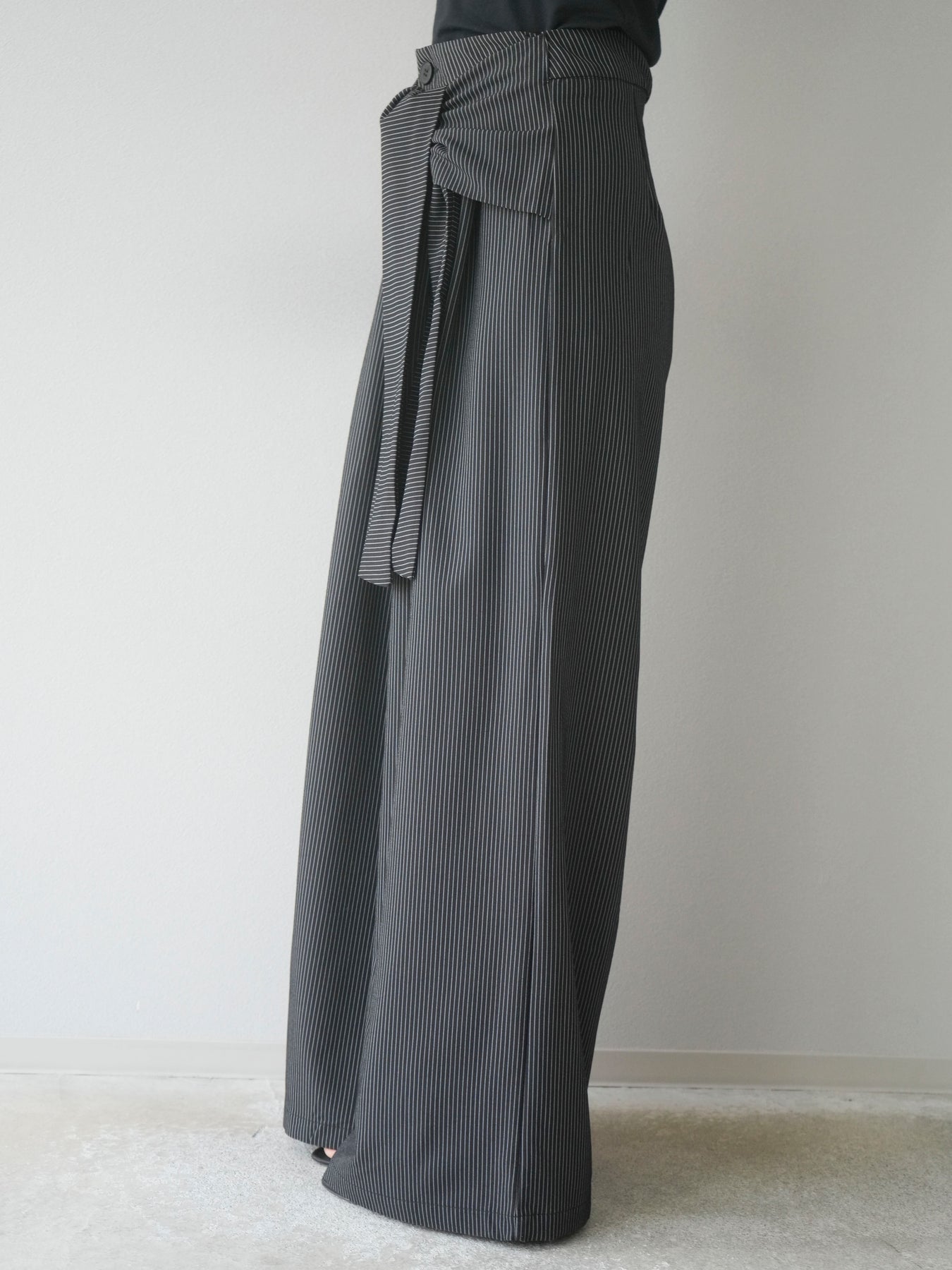【預購】條紋裹腰闊腿褲/黑色