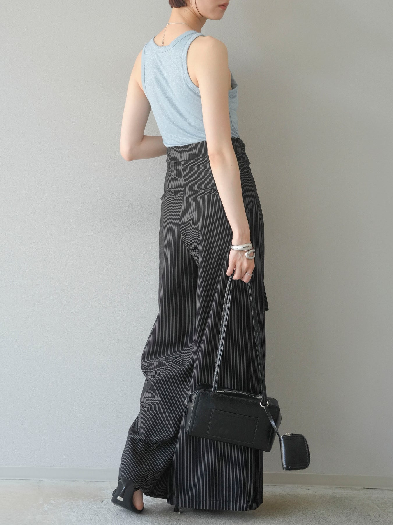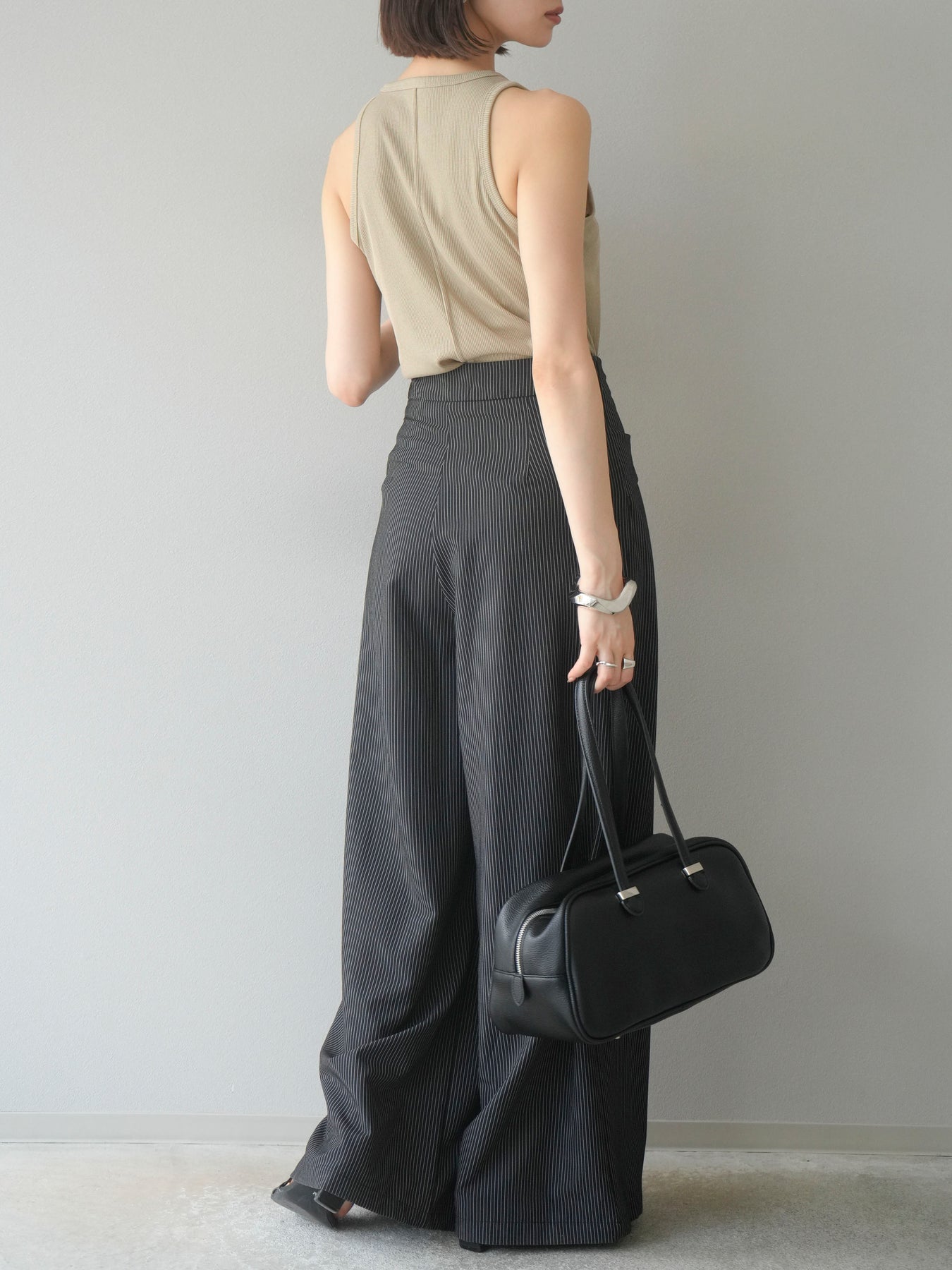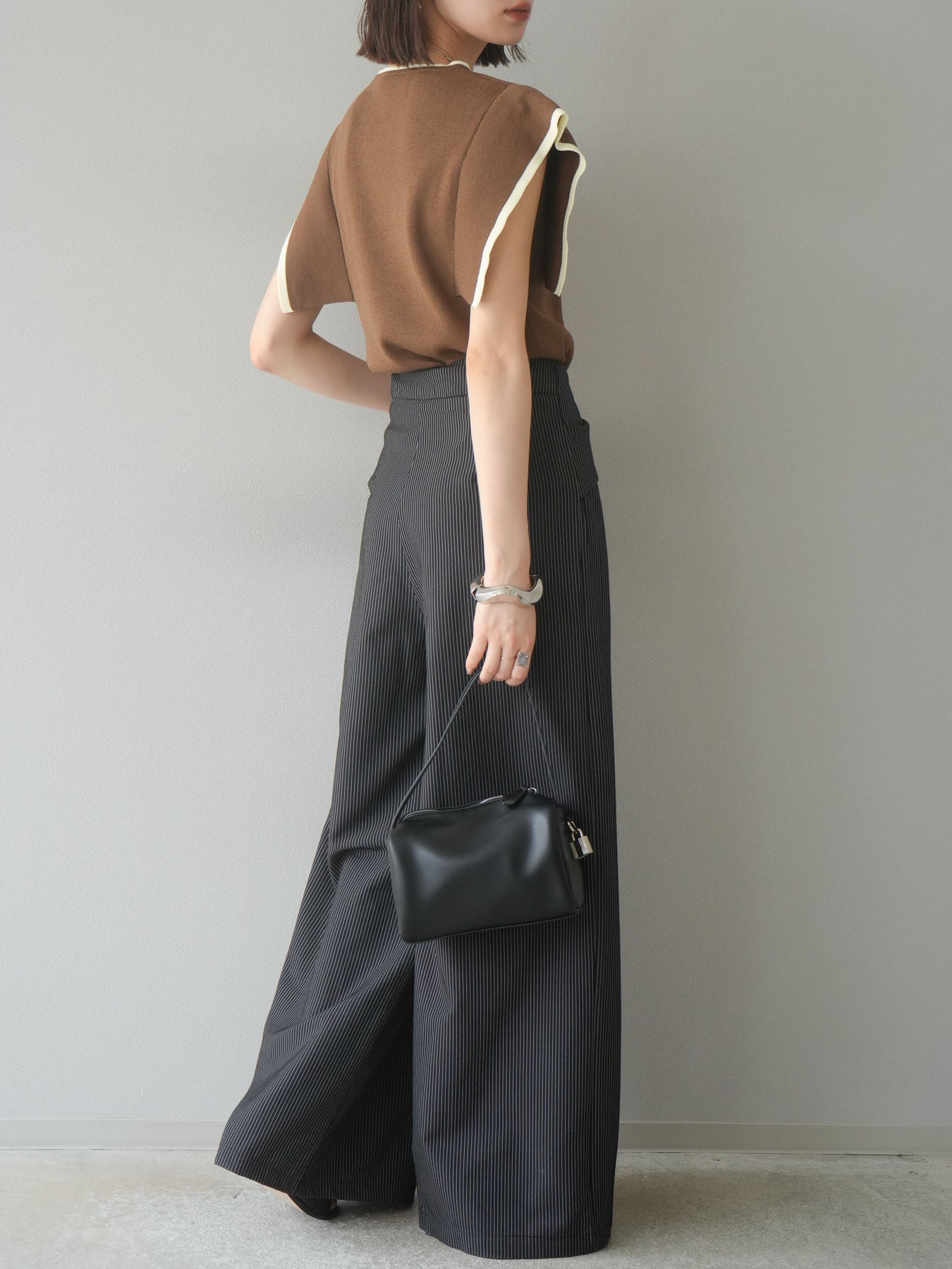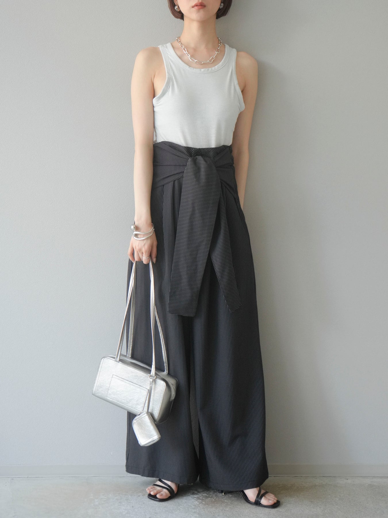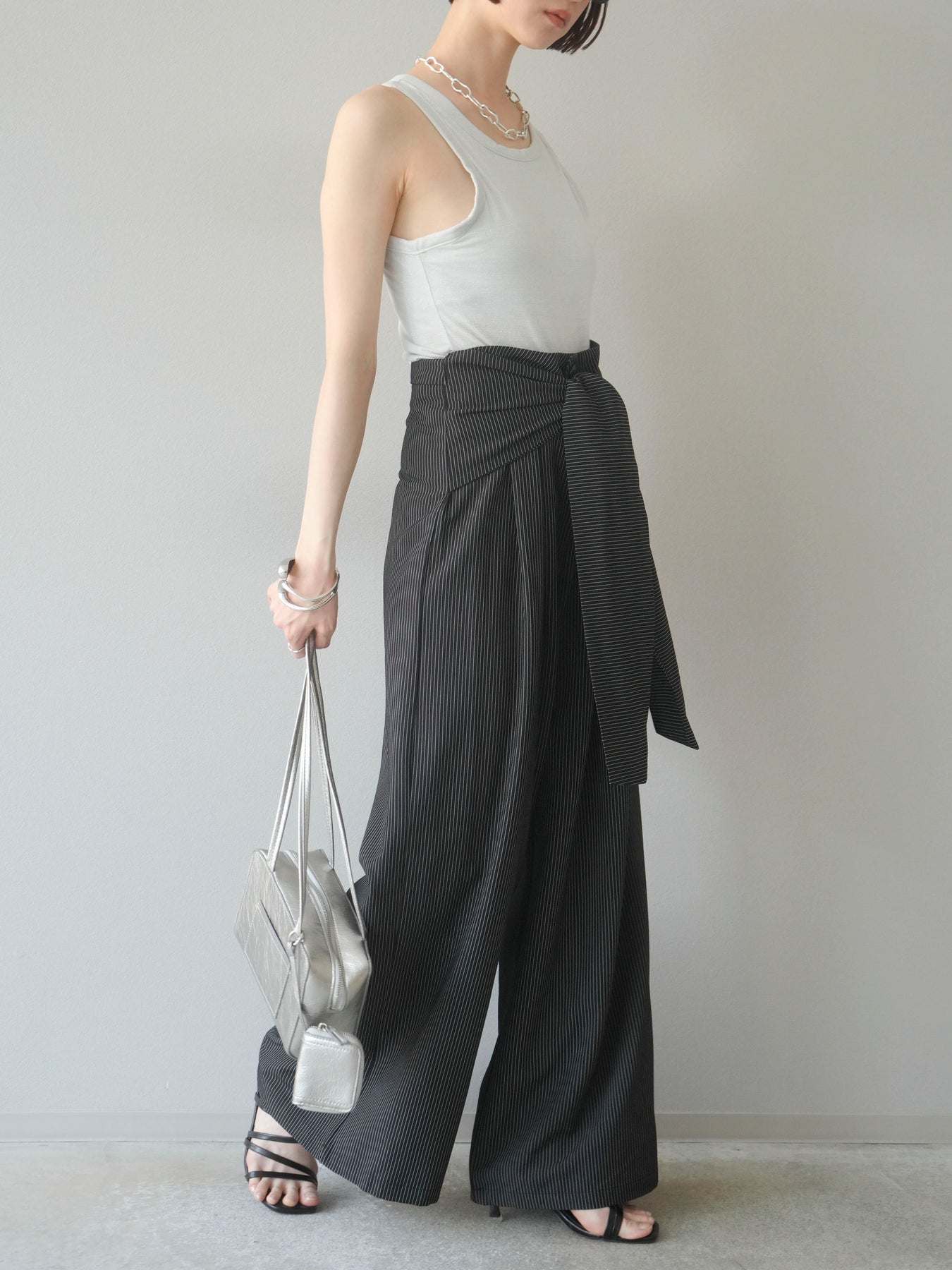 【預購】條紋裹腰闊腿褲/黑色