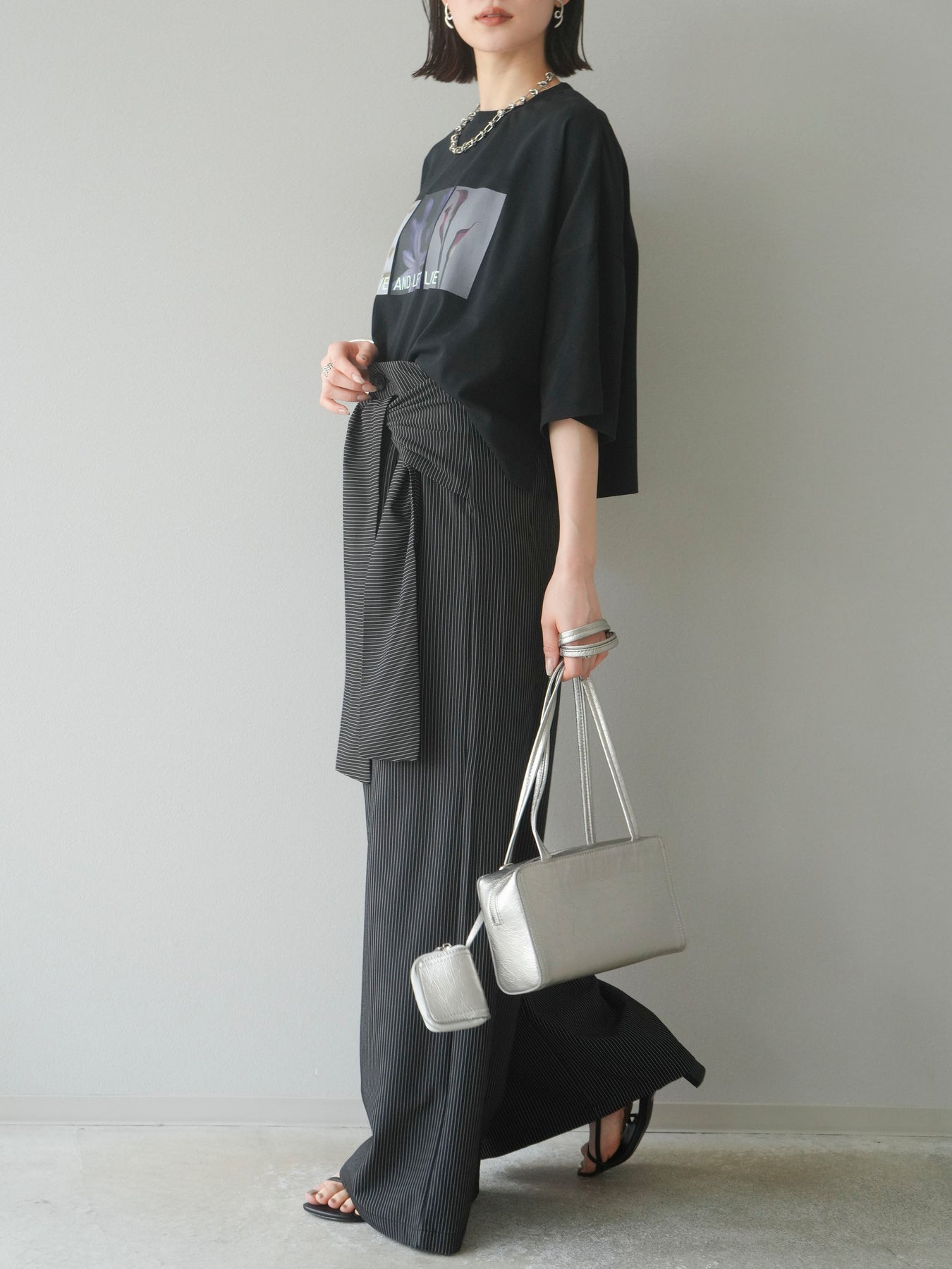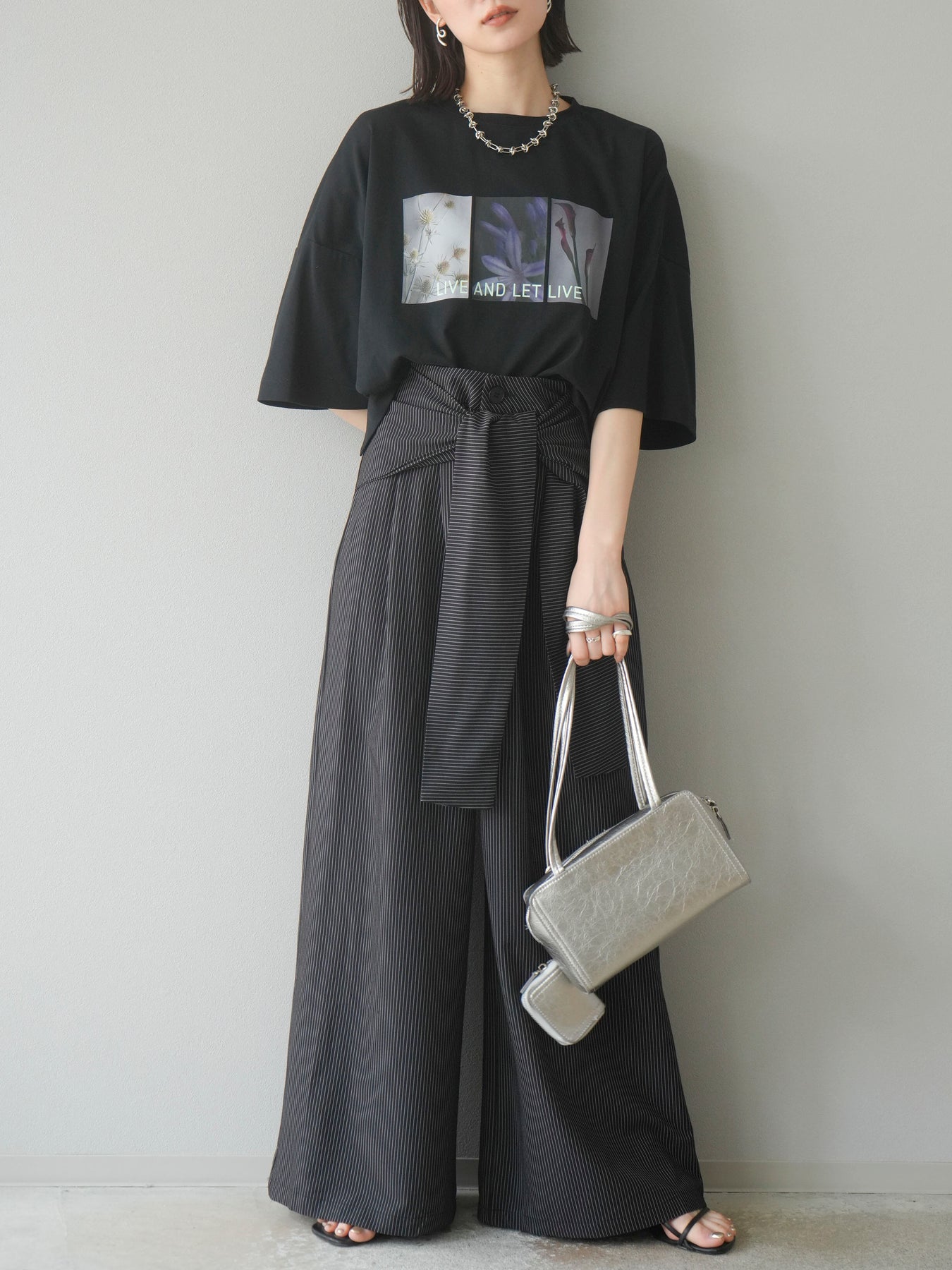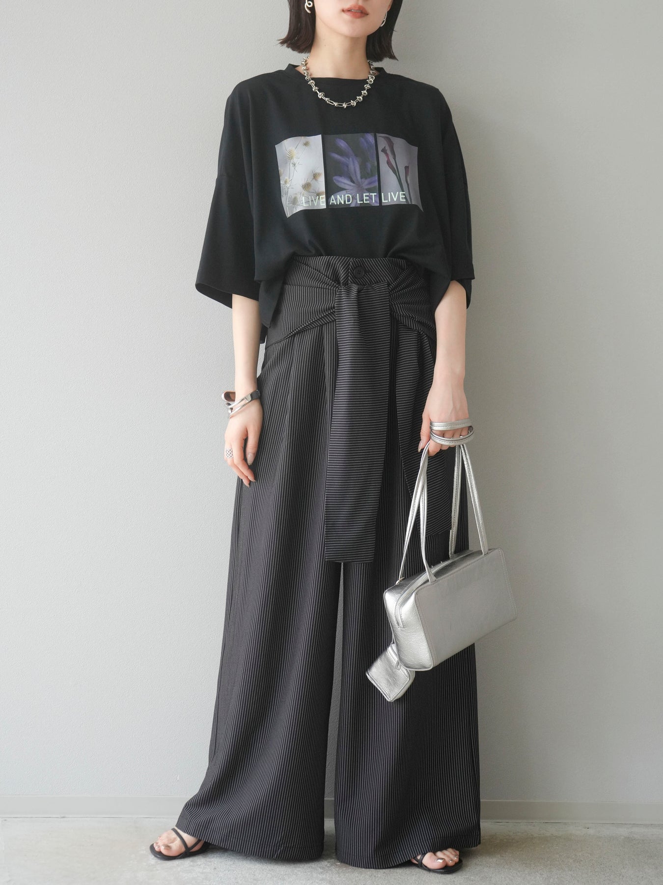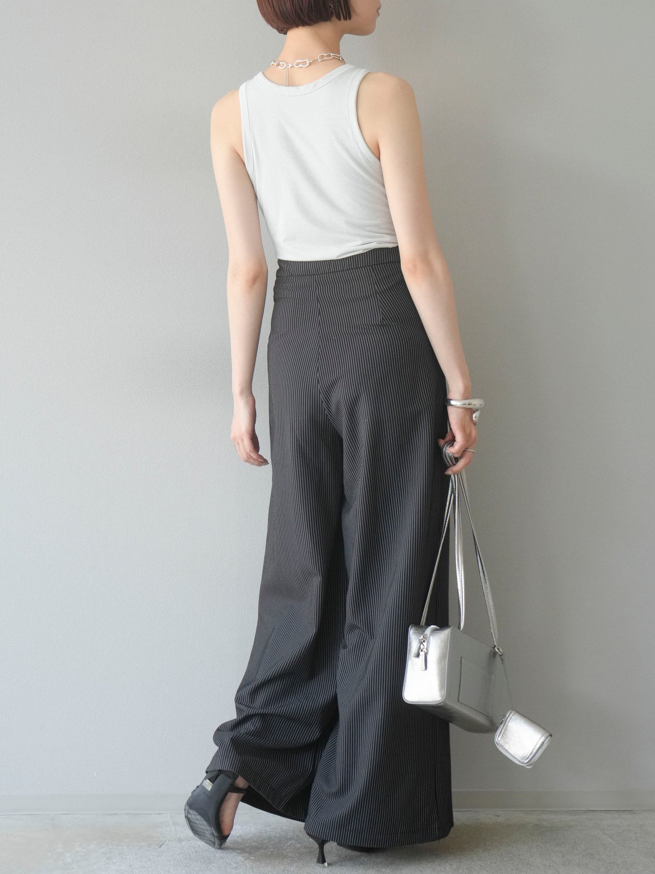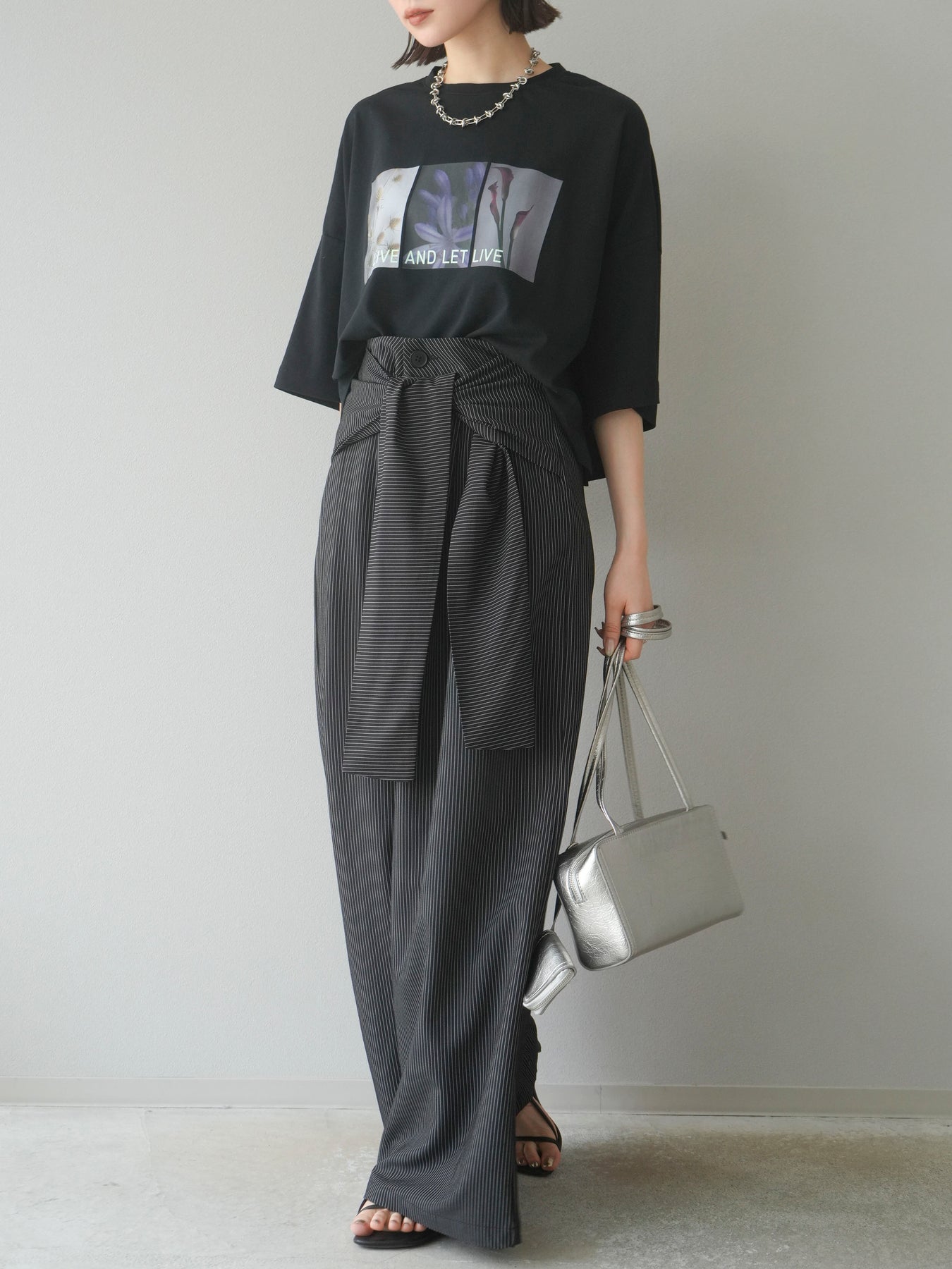【預購】條紋裹腰闊腿褲/黑色