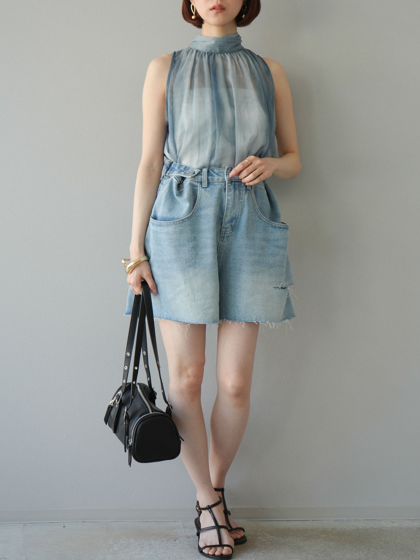 【預購】寬鬆半身牛仔褲/淺藍