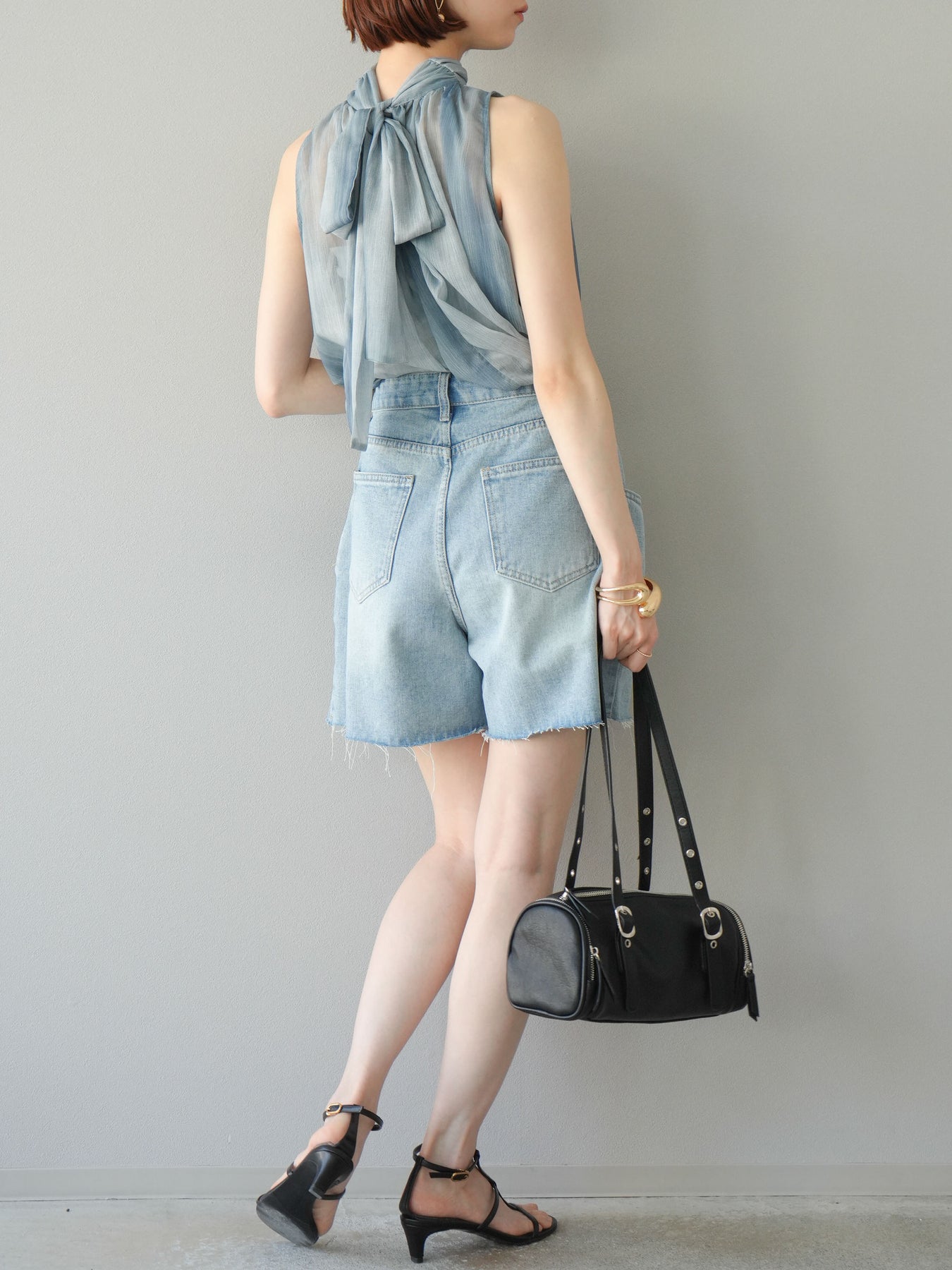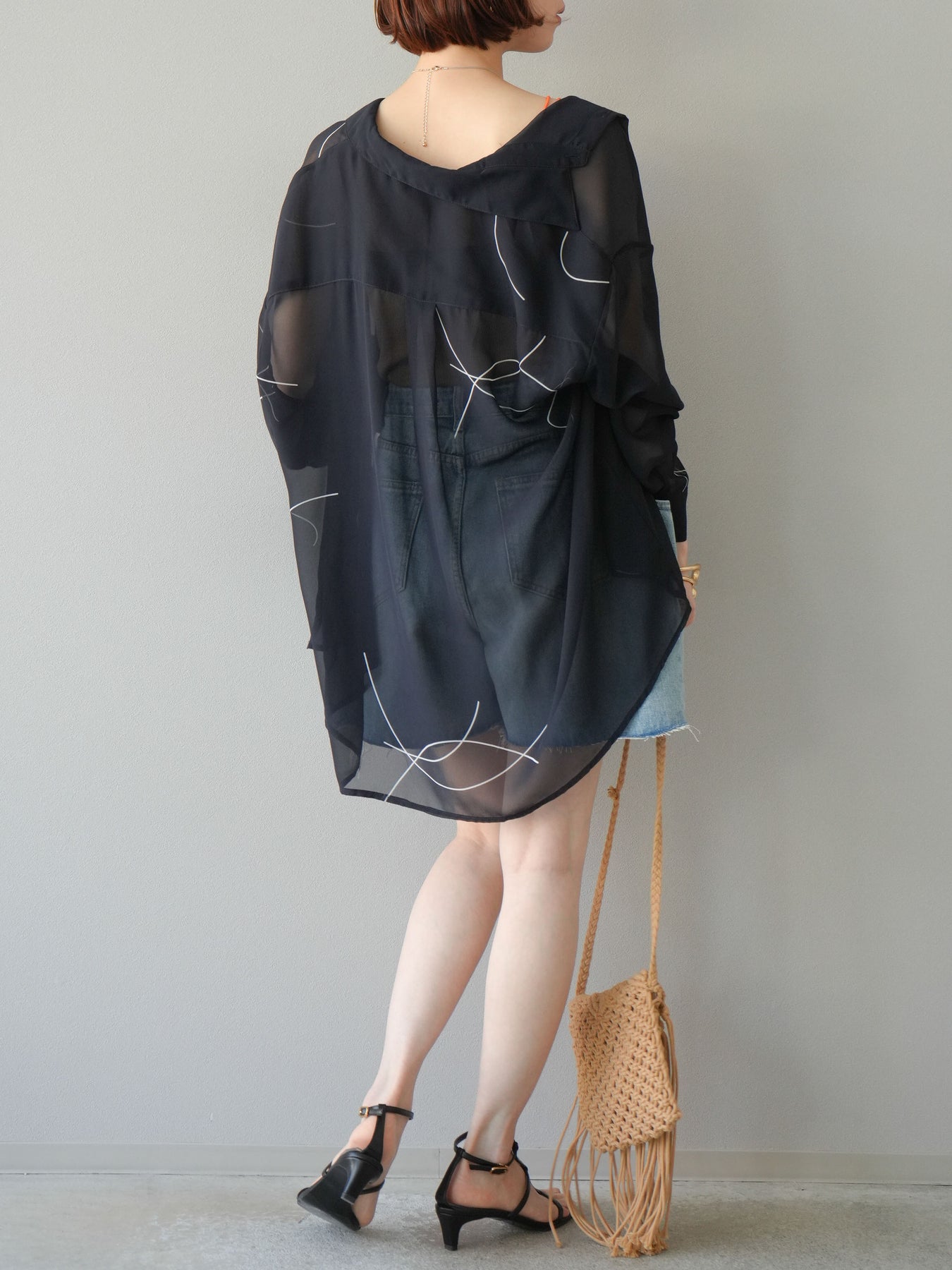 保養說明:建議在30°C或以下水溫下手洗。由於布料特性,洗滌過程中可能會出現褪色和縮水,因此建議單獨洗滌短時間。將衣物翻面,放入洗衣網中,選擇手洗模式洗滌,洗滌後,整理衣物後懸掛晾乾。 *請勿烘乾。 如果在濕潤狀態下摩擦,可能會褪色或串色。請避免浸泡或讓衣物被雨水或汗水浸濕,並及時處理。穿著時,請注意避免摩擦、汗水、水漬以及與不同顏色衣物疊穿。