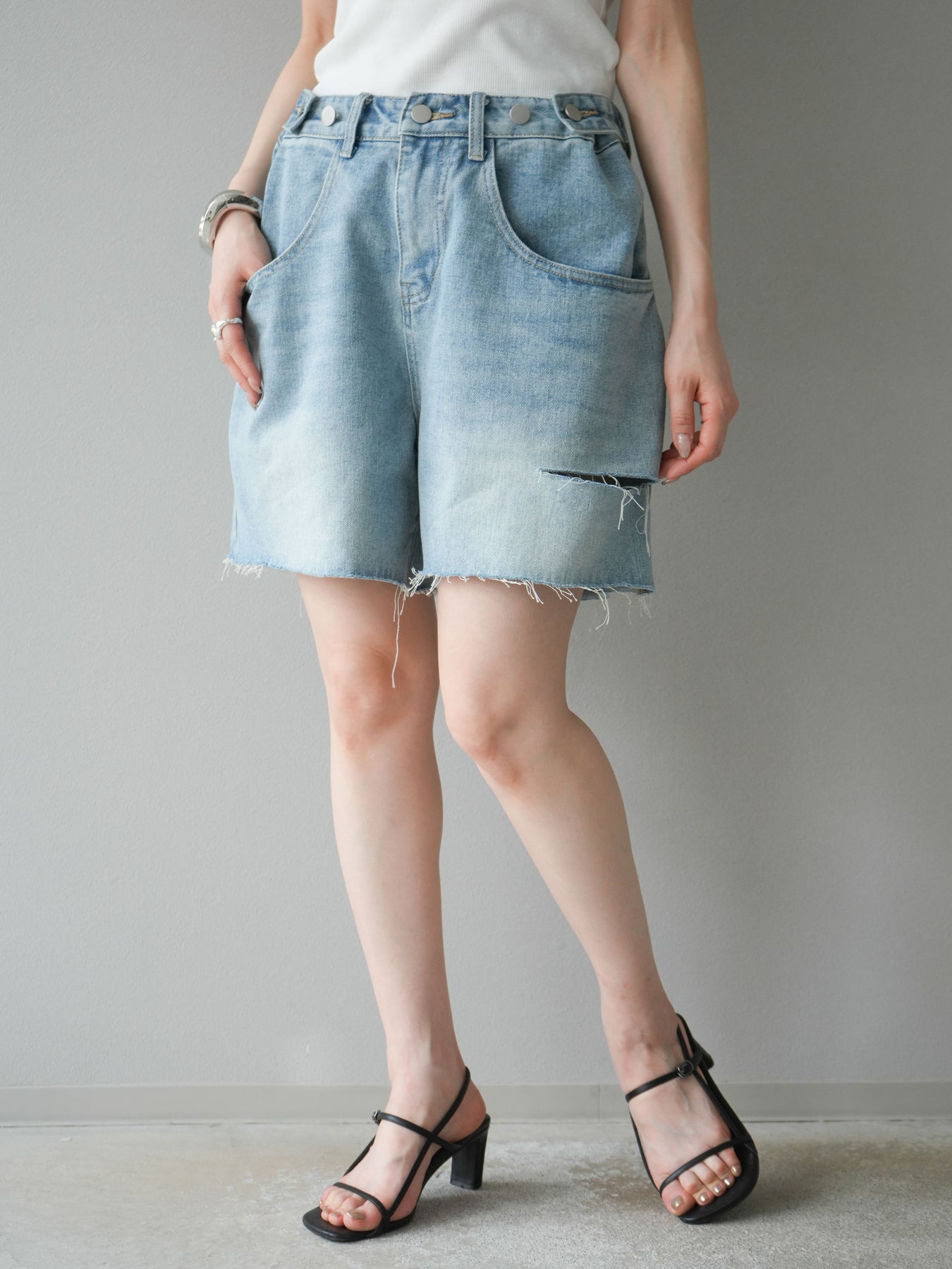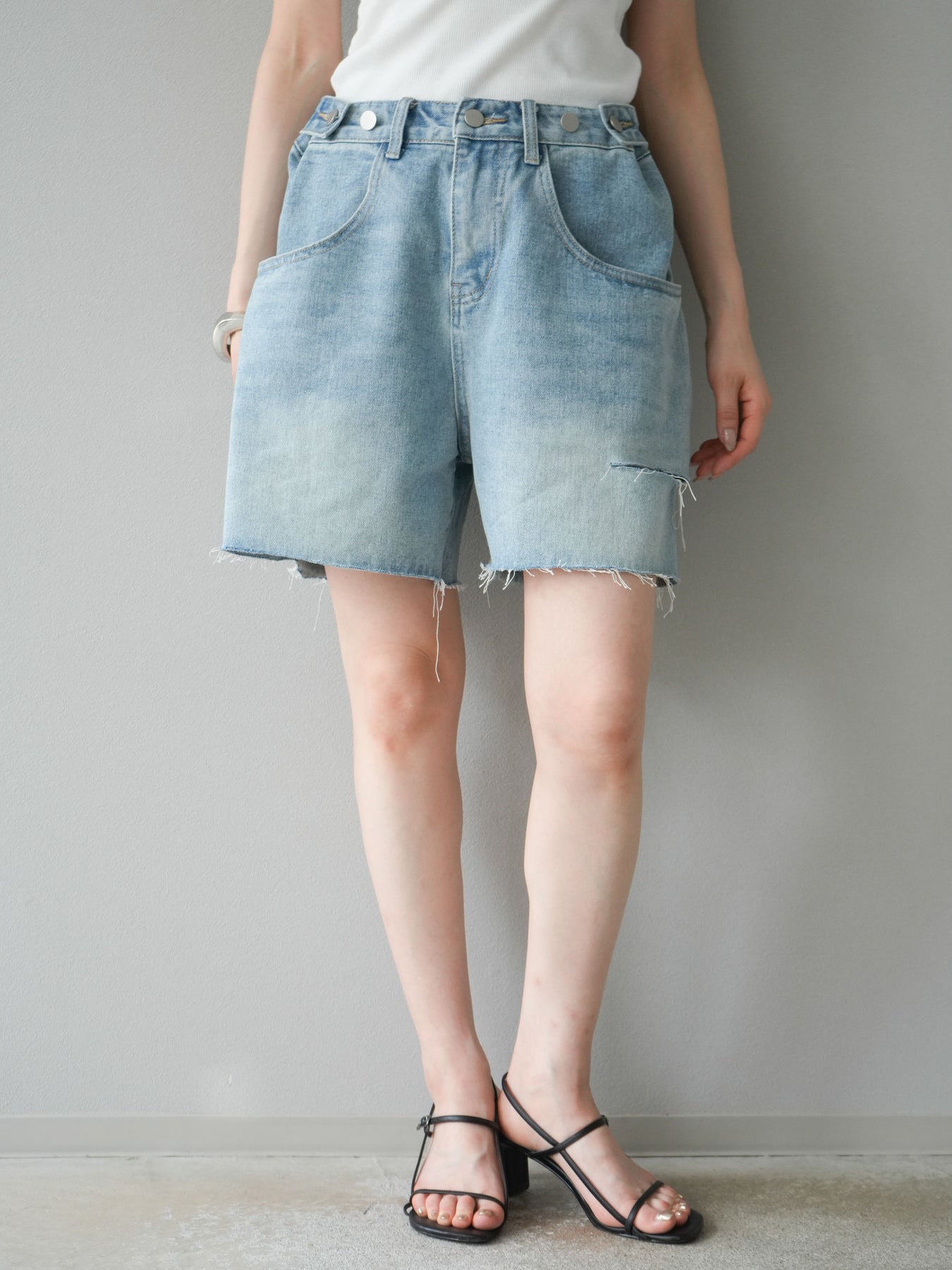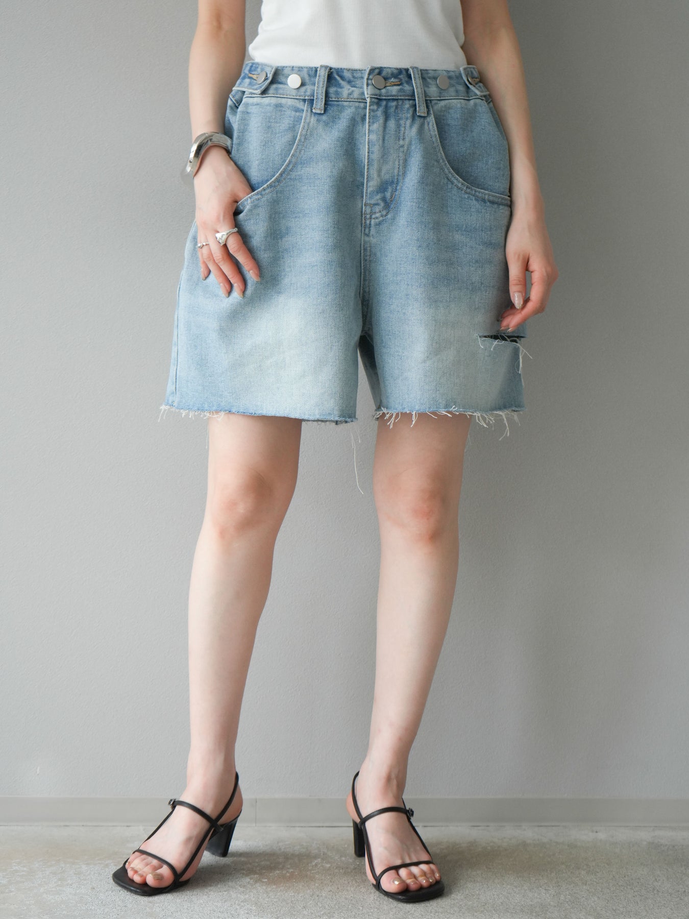 寬鬆適中的半身牛仔褲。水洗工藝和毛邊下擺營造出輕鬆休閒的風格,只需搭配一件簡單的上衣即可打造時尚造型。略高腰的設計也有顯瘦效果。柔軟的牛仔布料活動自如,非常適合日常穿著。它與T恤和襯衫搭配完美,是您春夏衣櫥的必備單品。