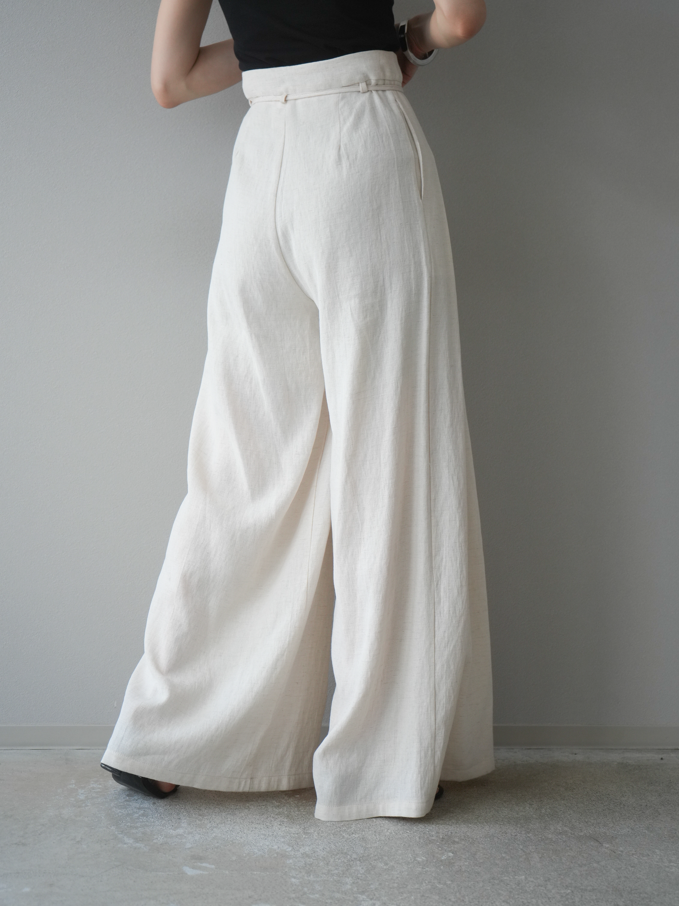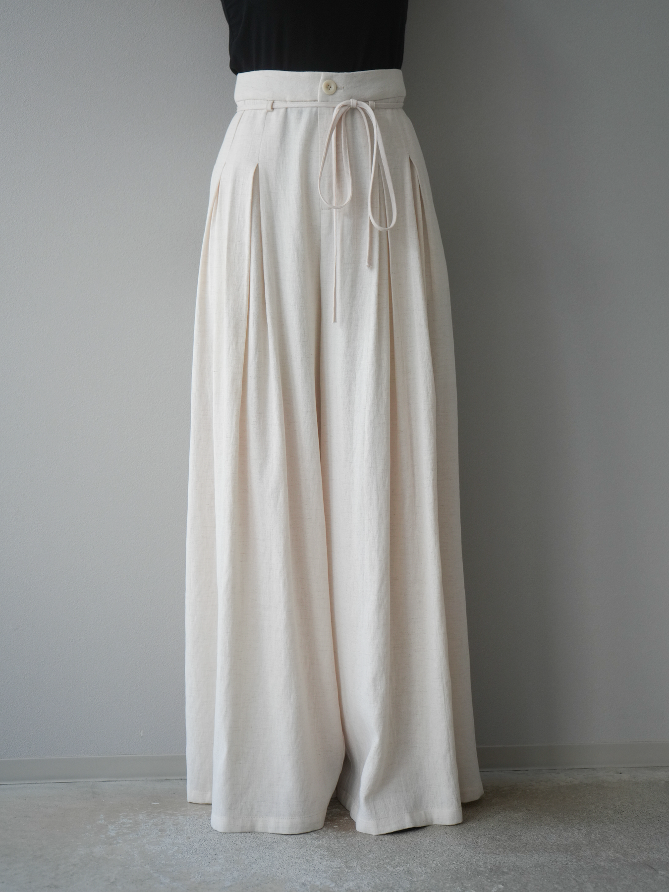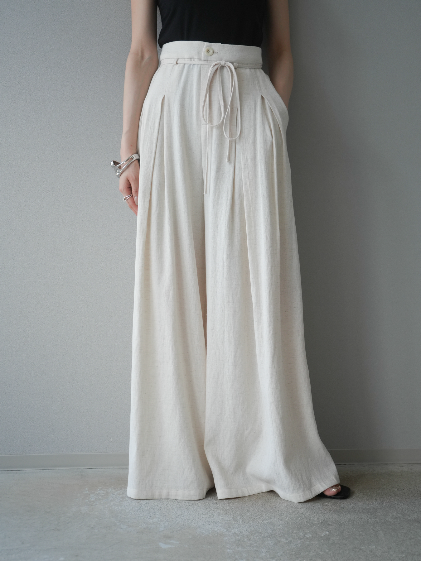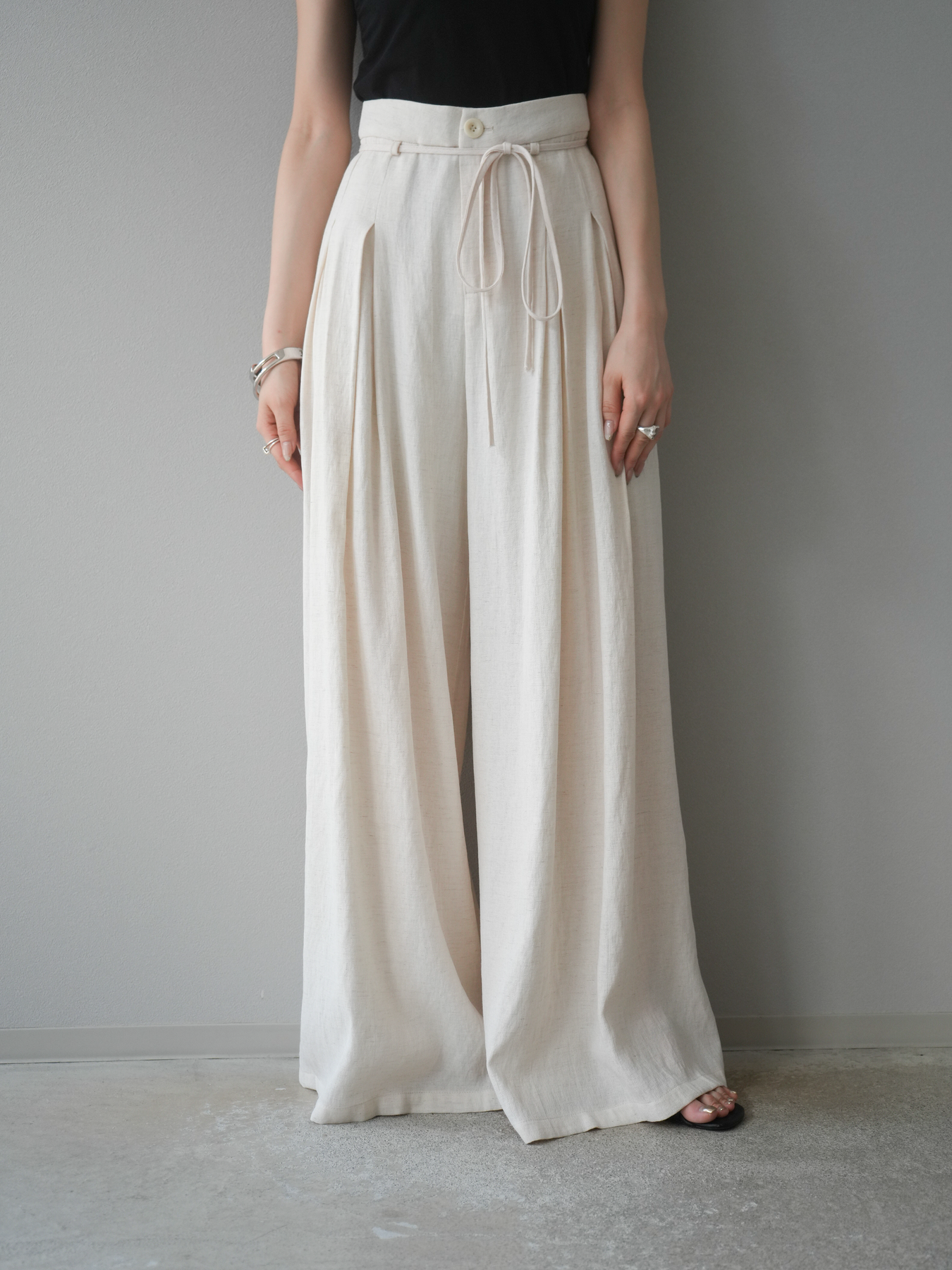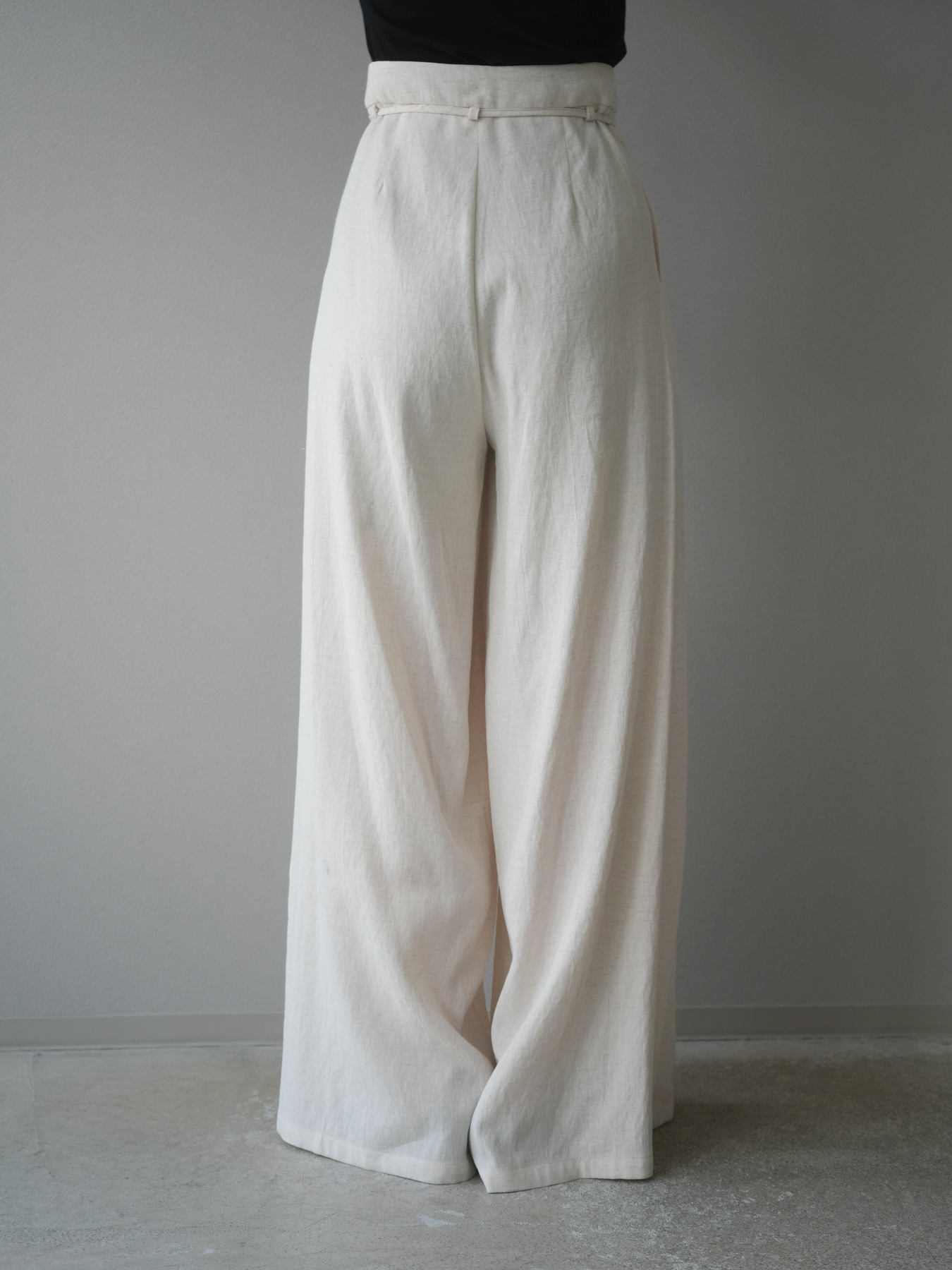 【預購】仿亞麻雙褶設計寬褲/象牙白