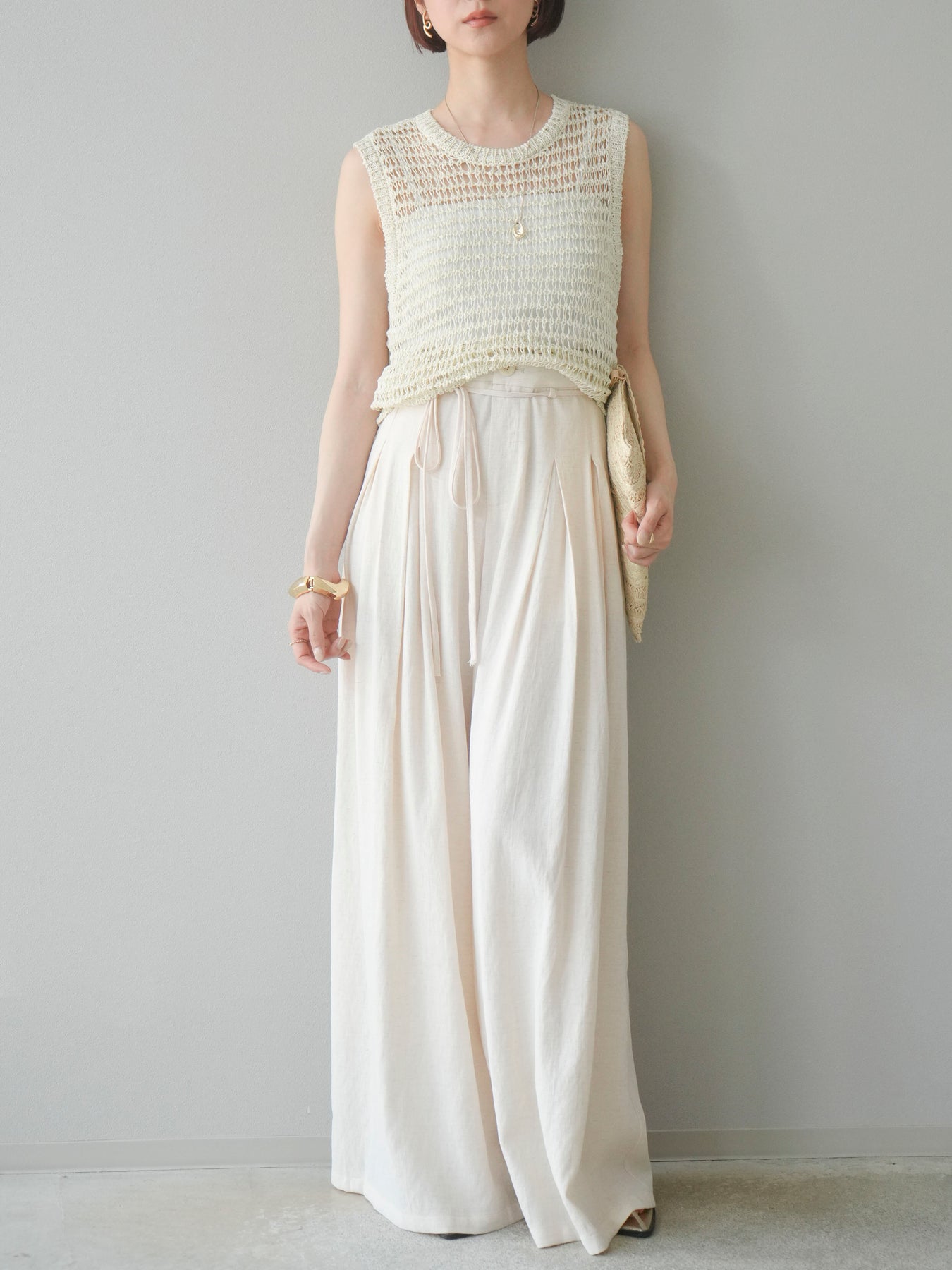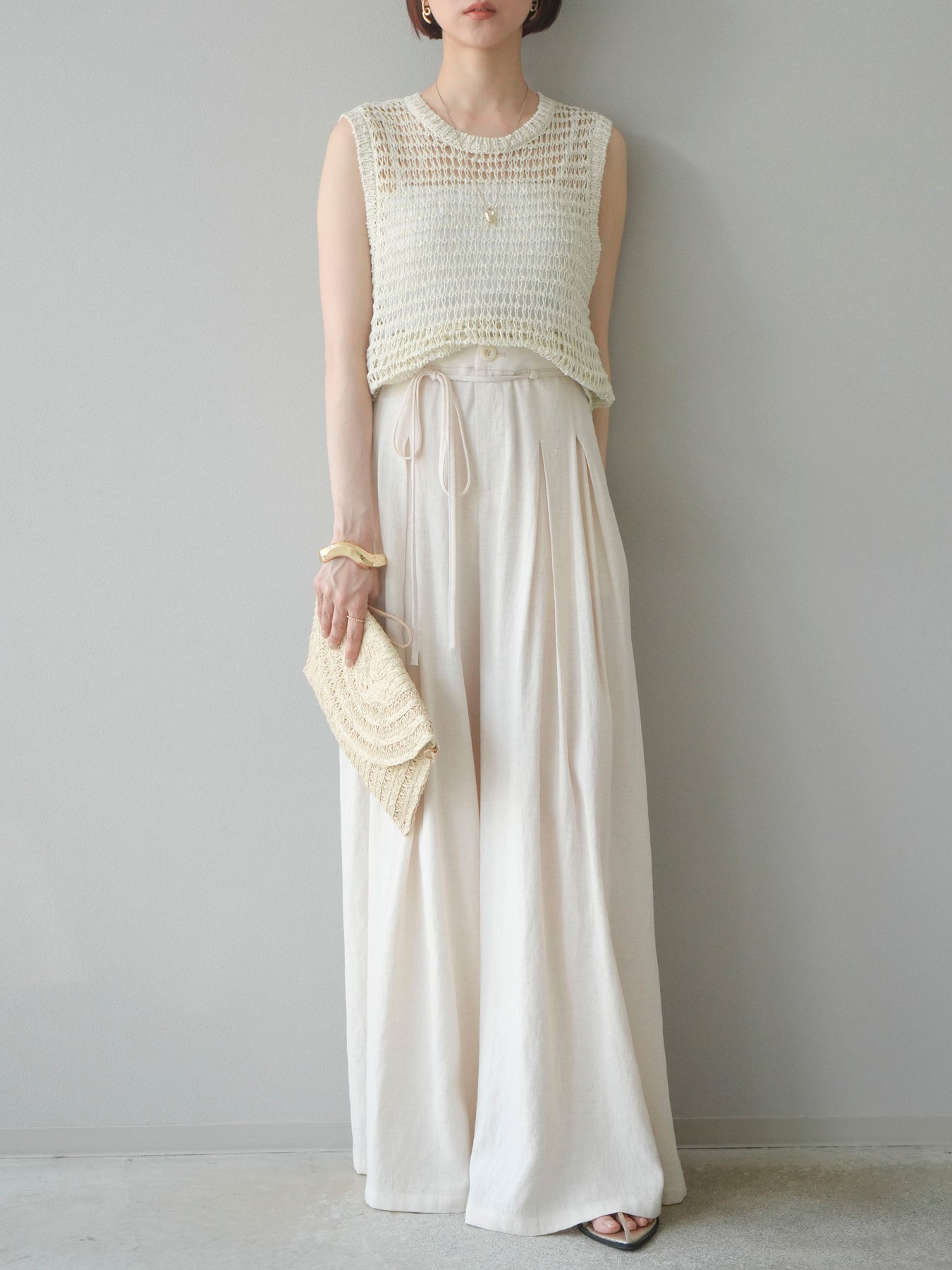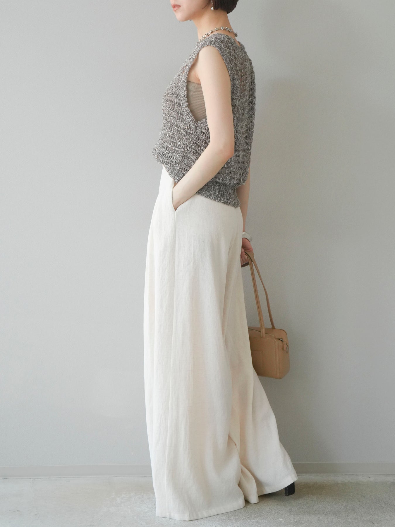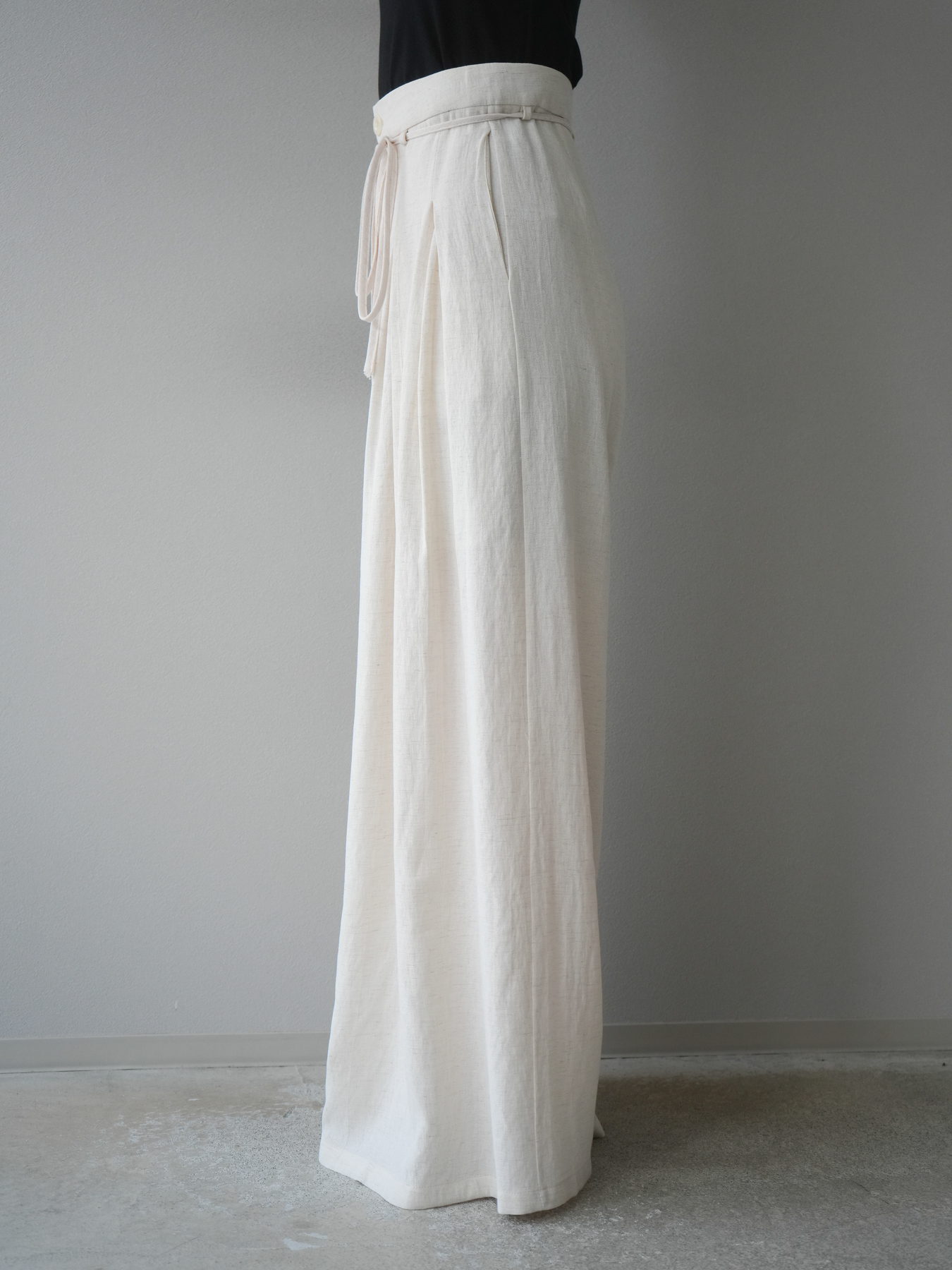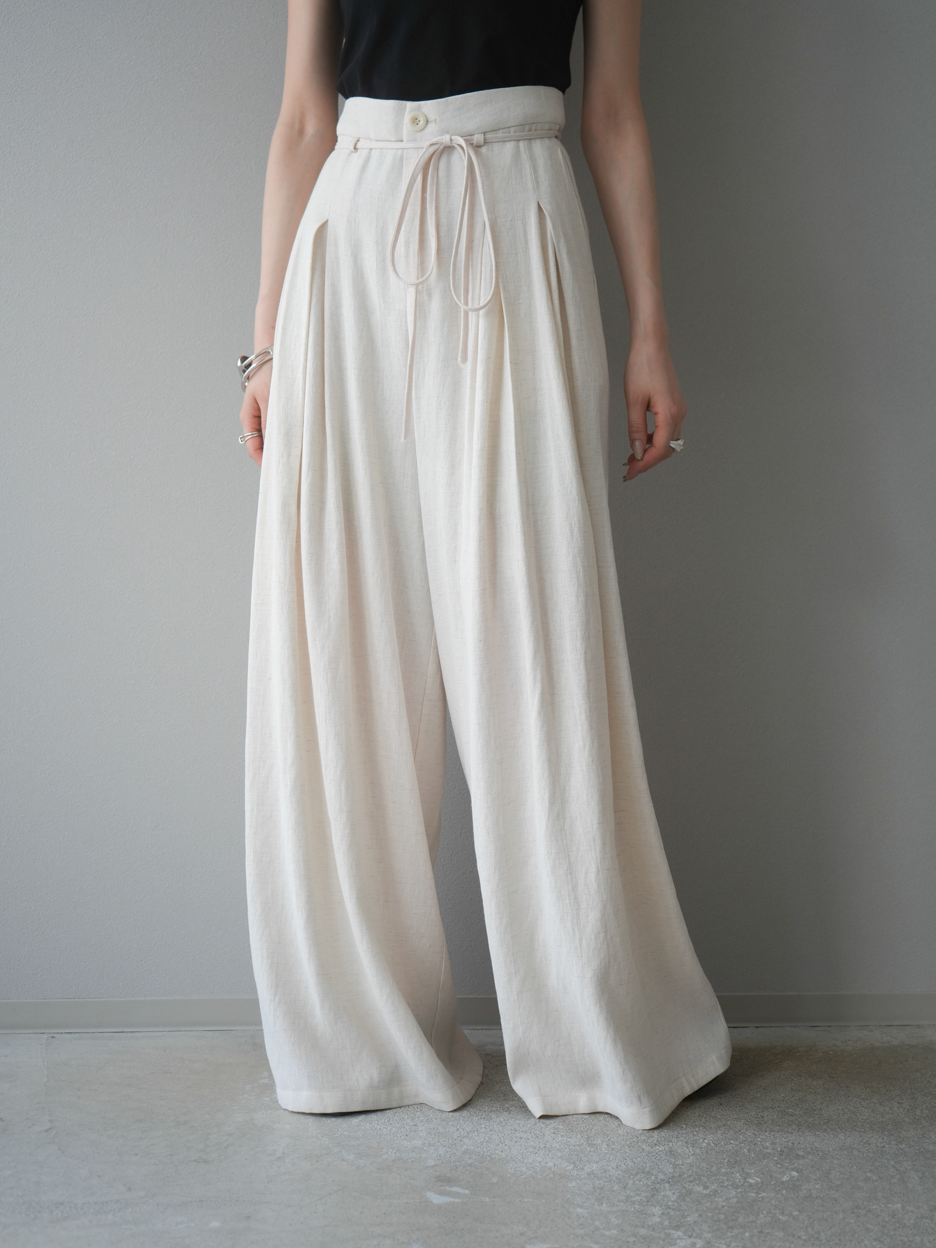 【預購】仿亞麻雙褶設計寬褲/象牙白