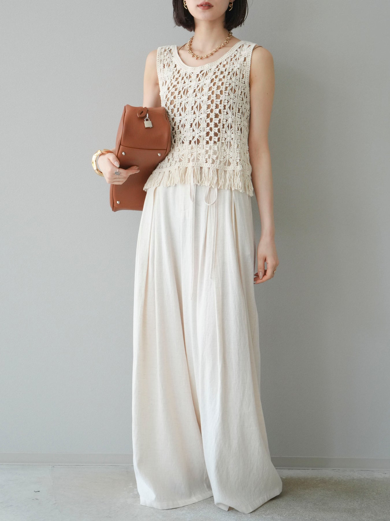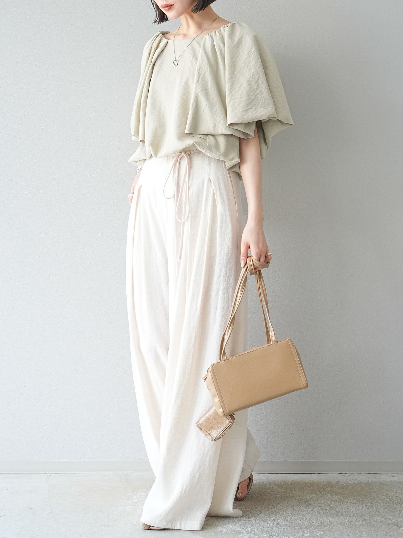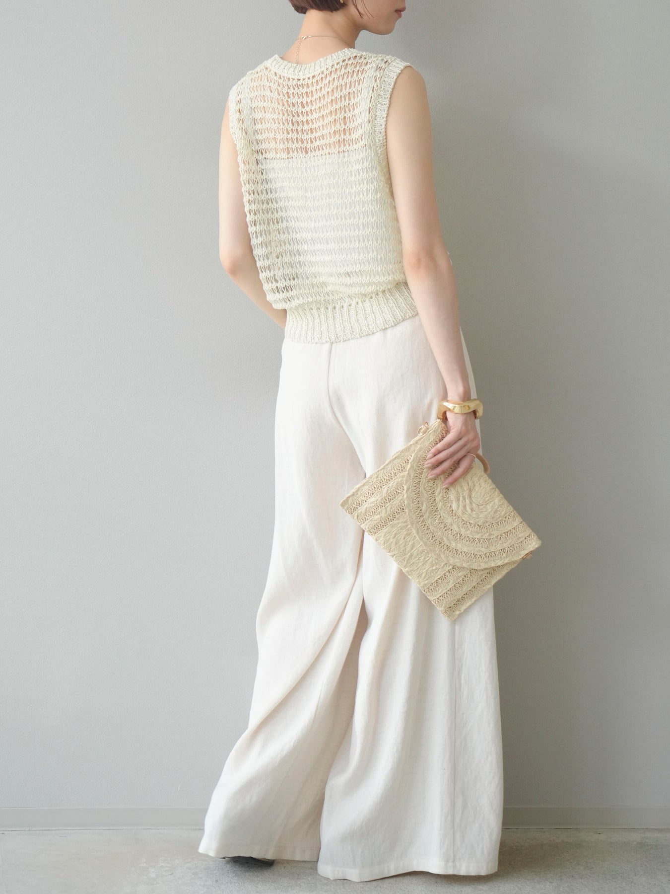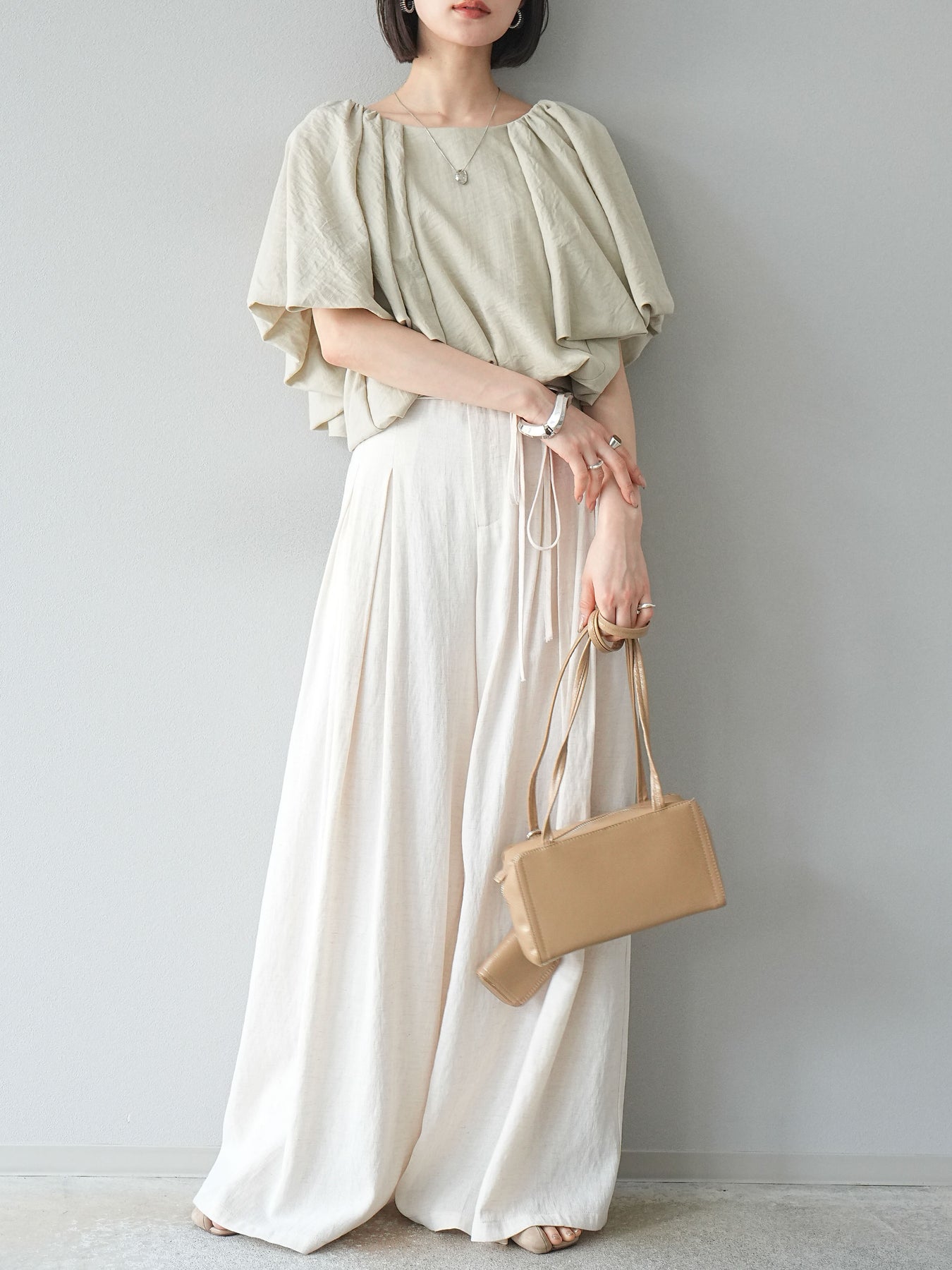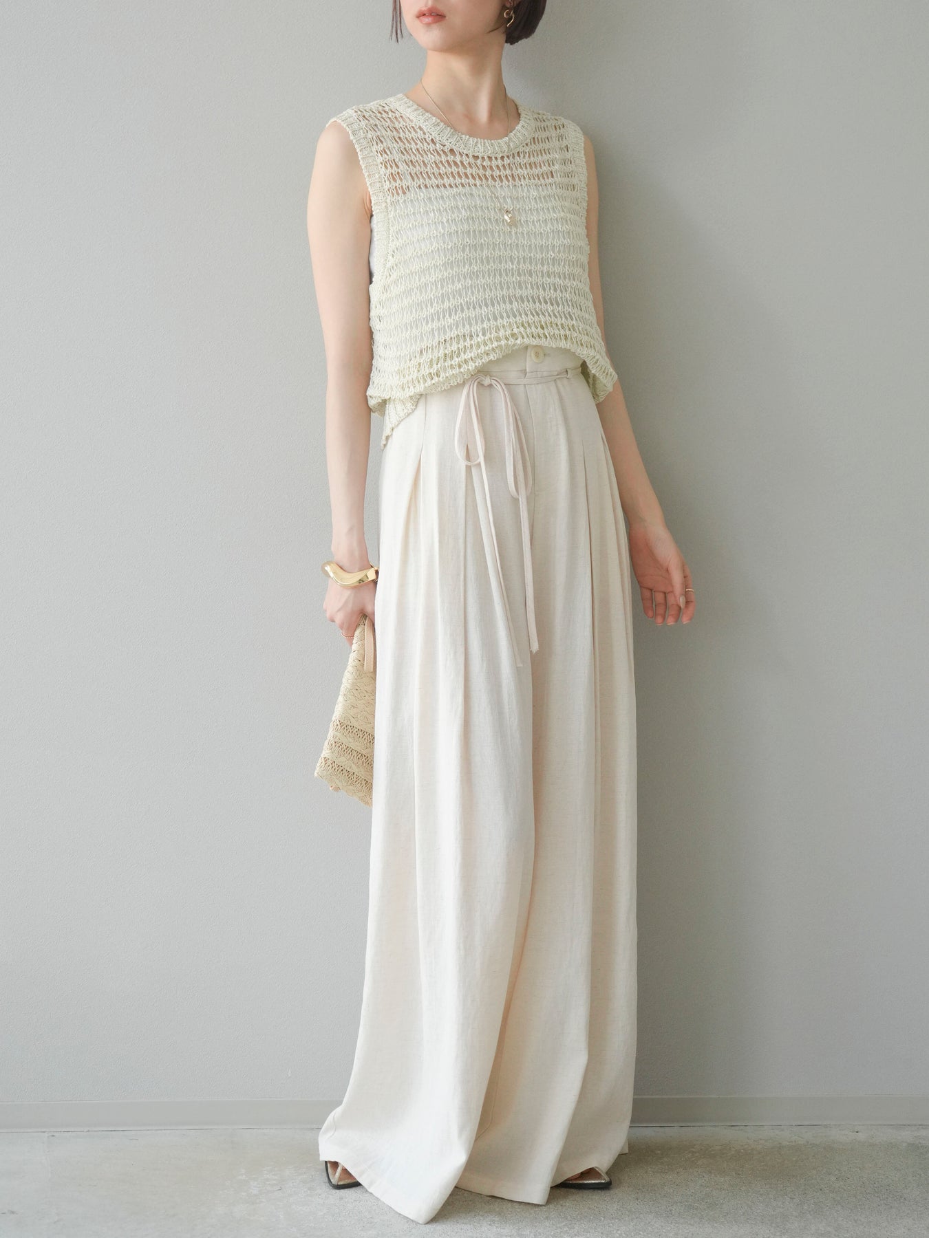 【預購】仿亞麻雙褶設計寬褲/象牙白