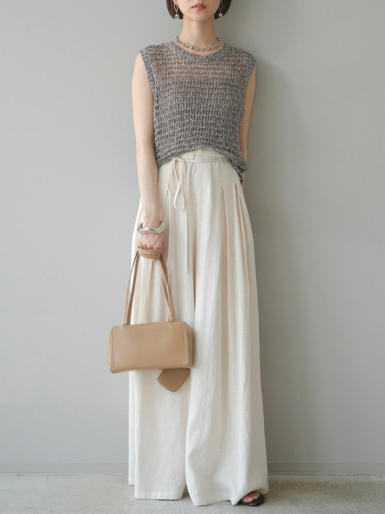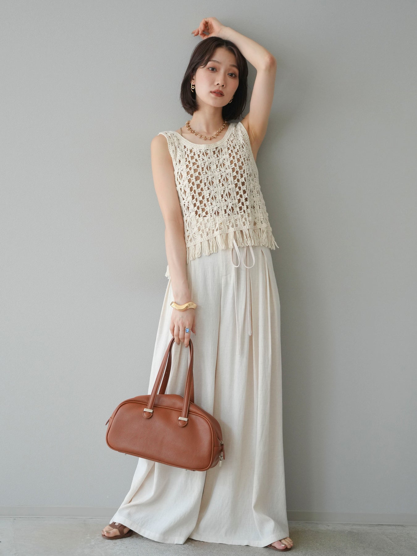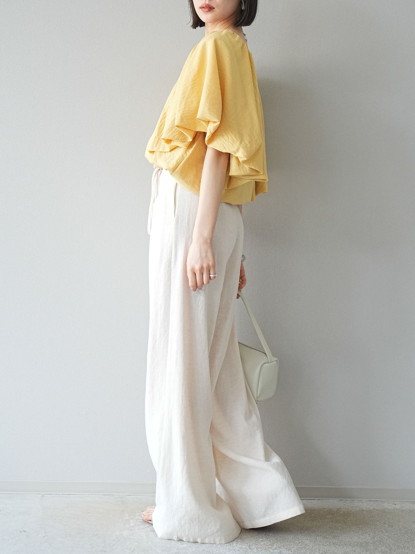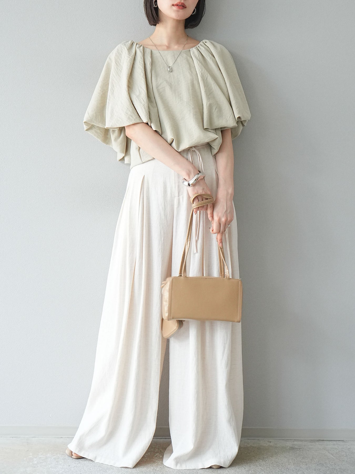 【預購】仿亞麻雙褶設計寬褲/象牙白