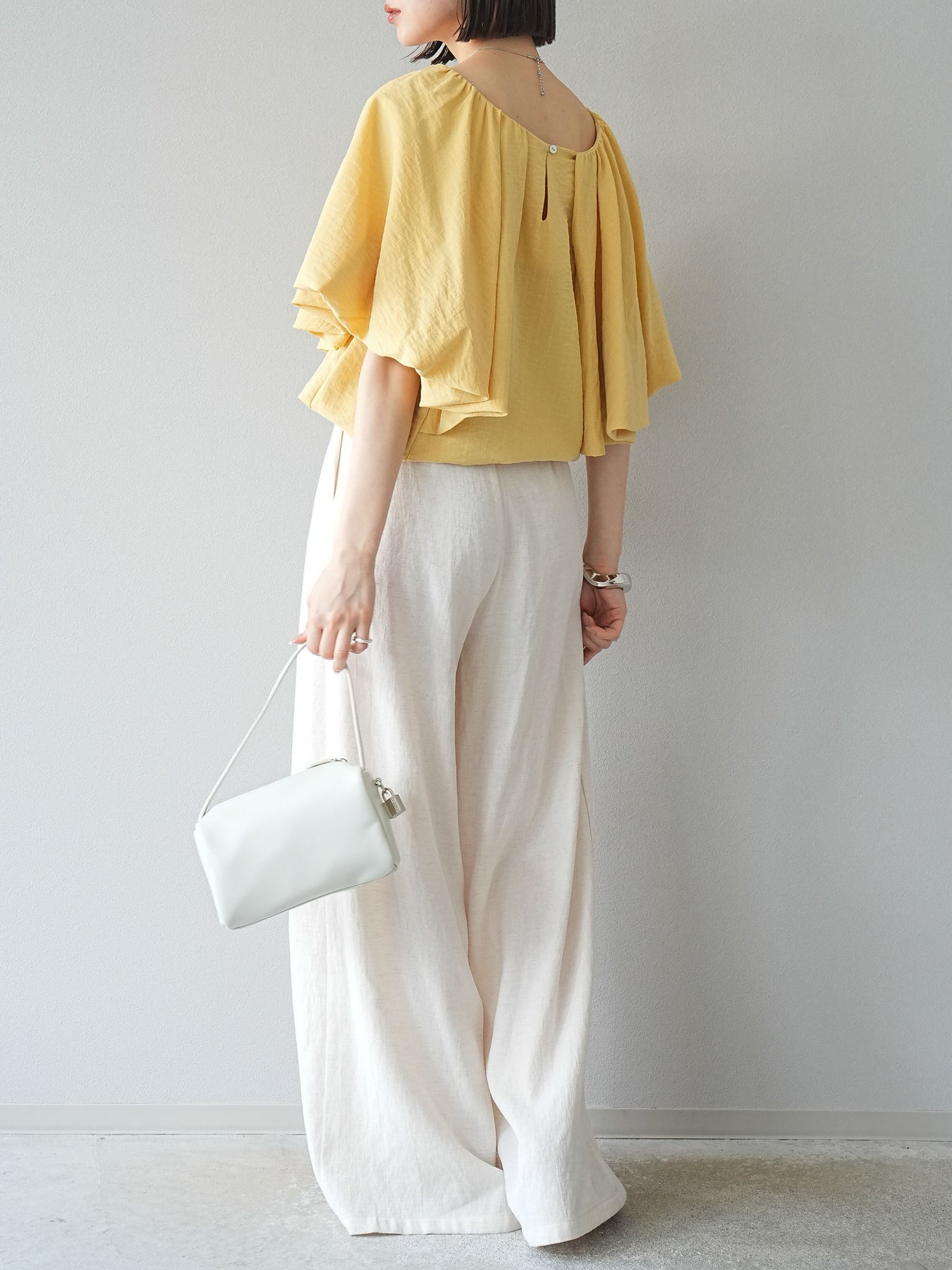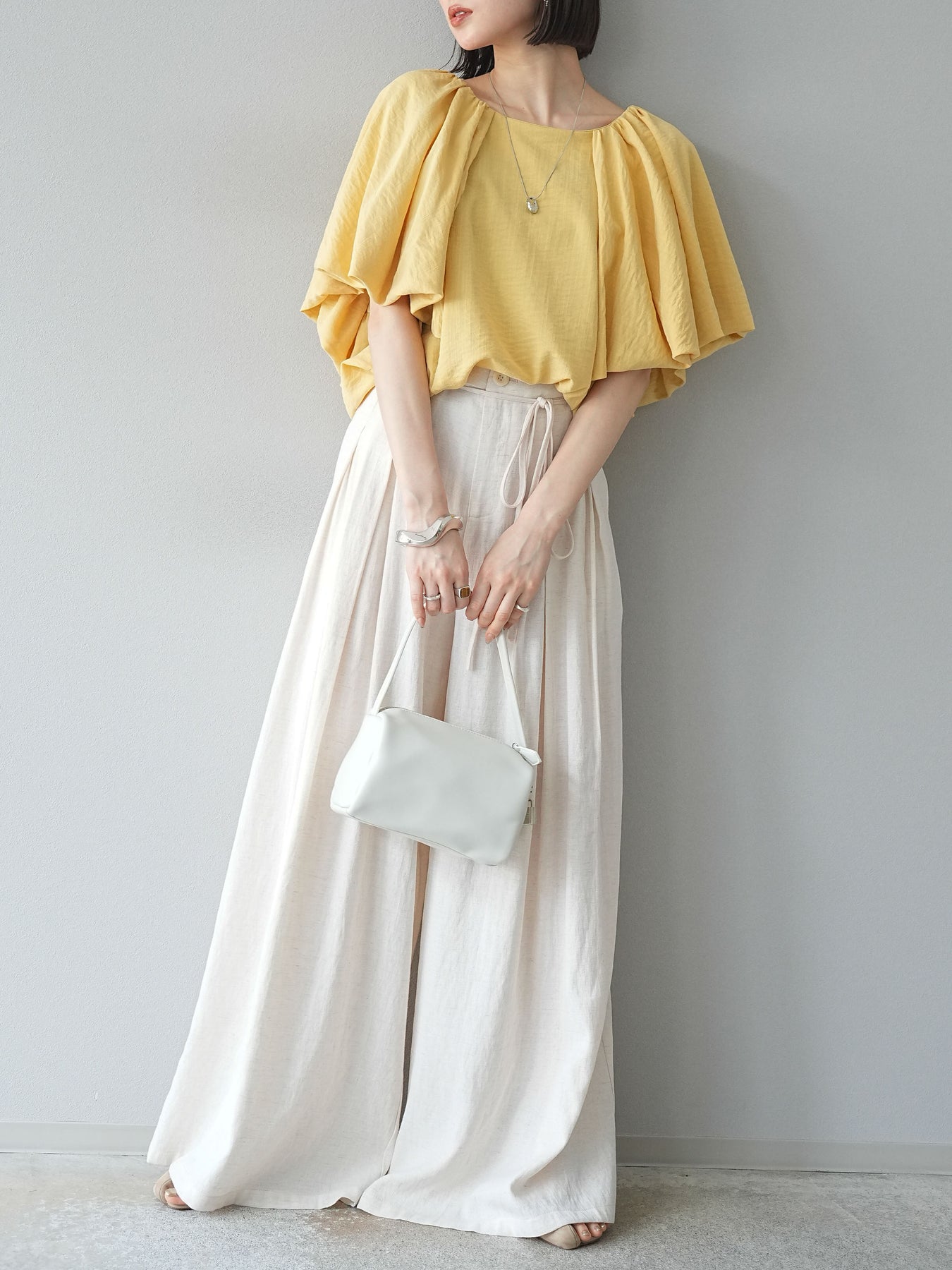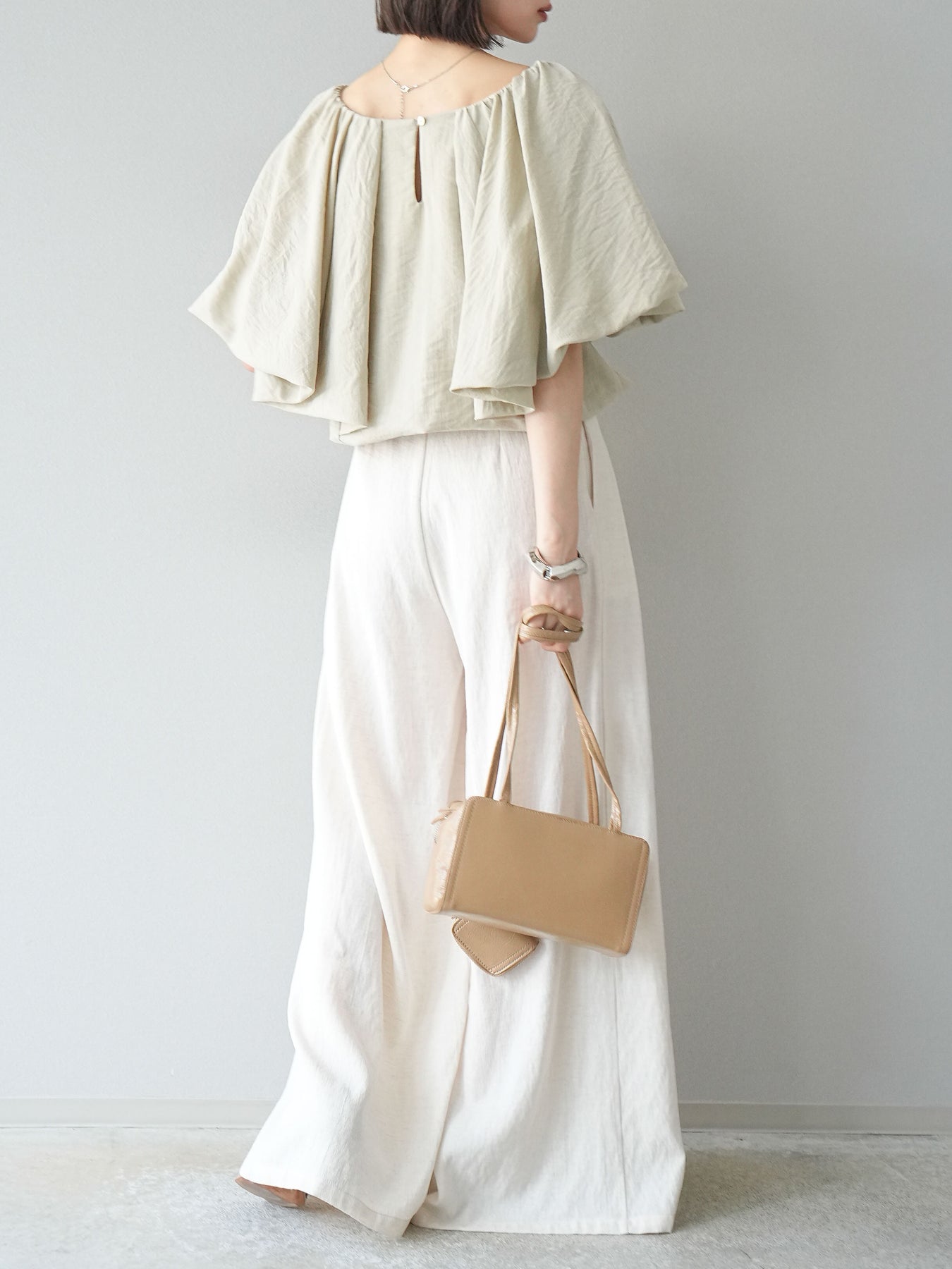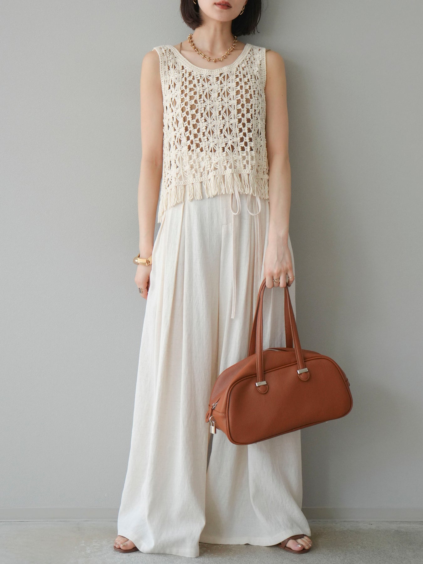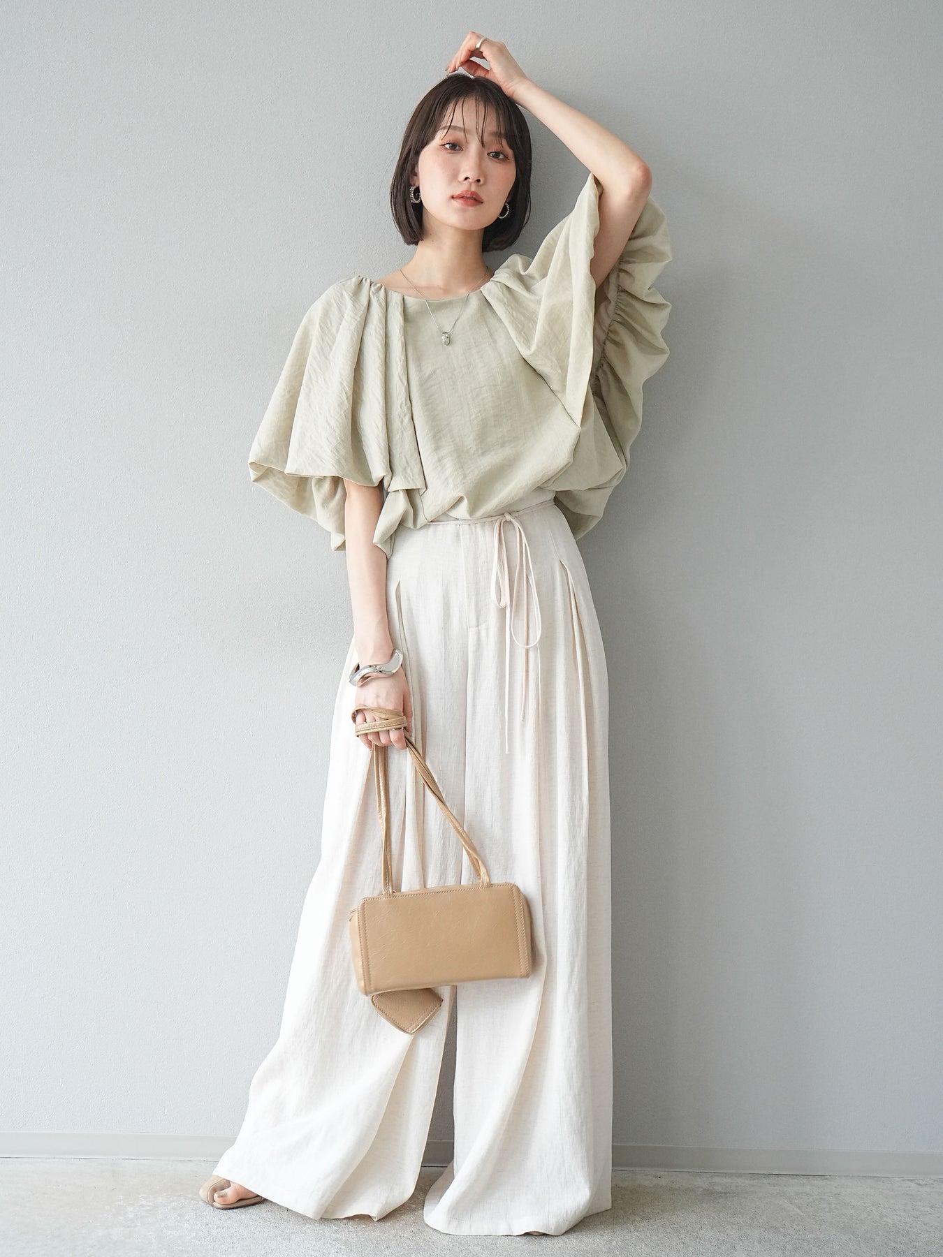 【預購】仿亞麻雙褶設計寬褲/象牙白
