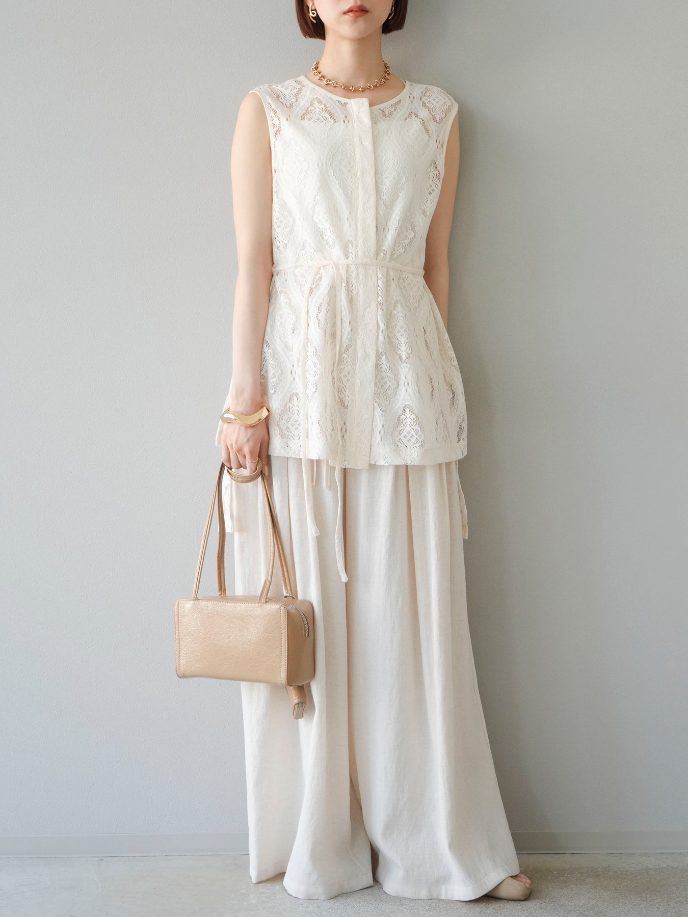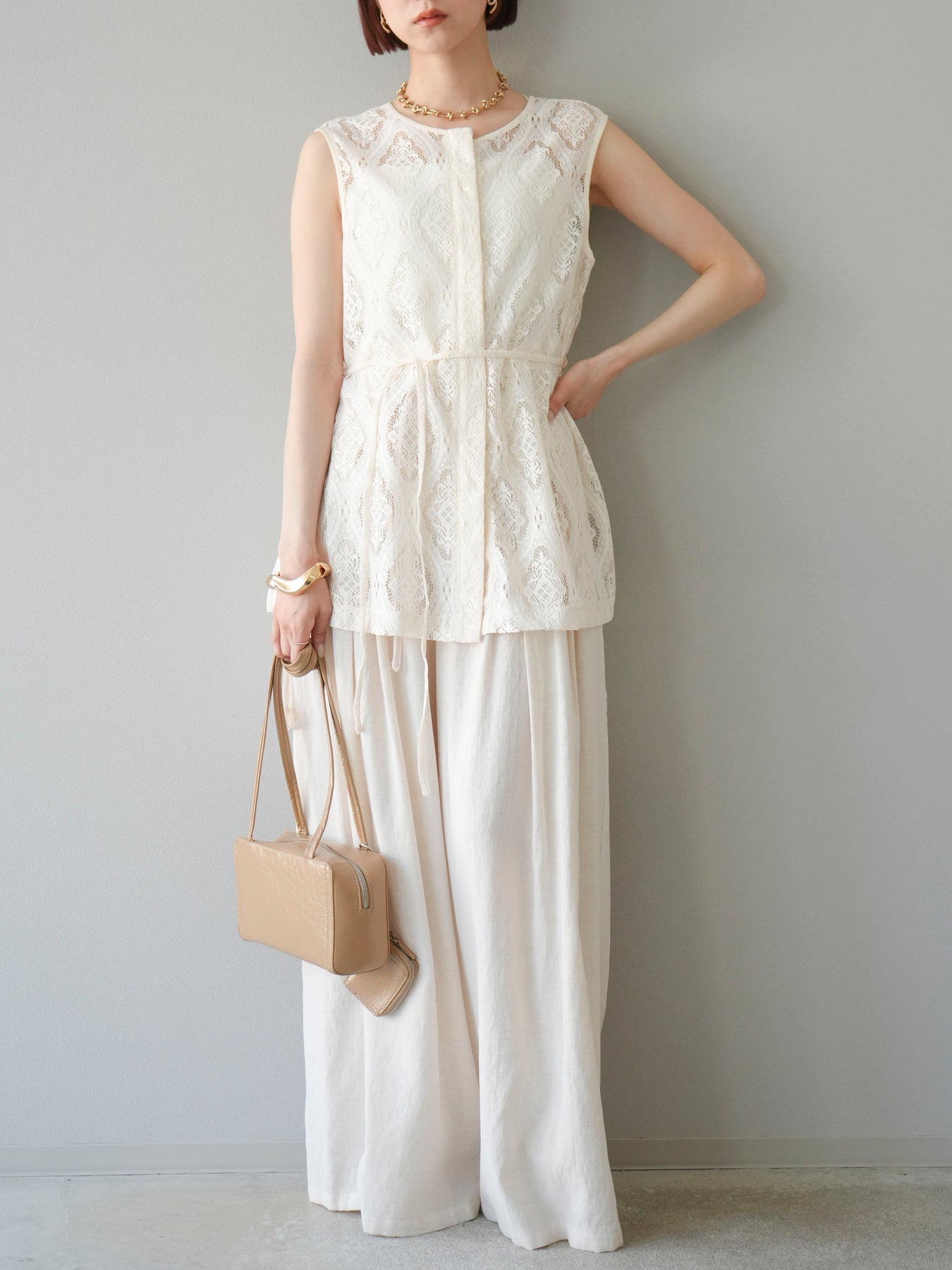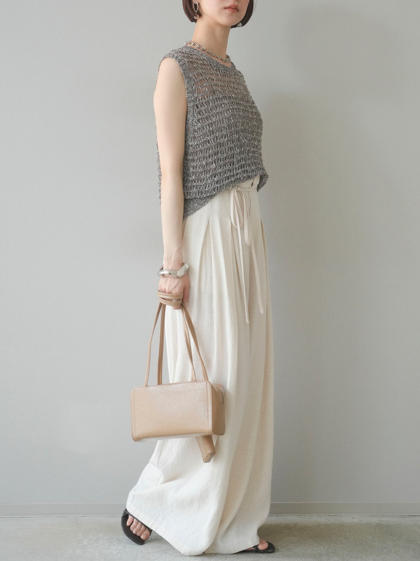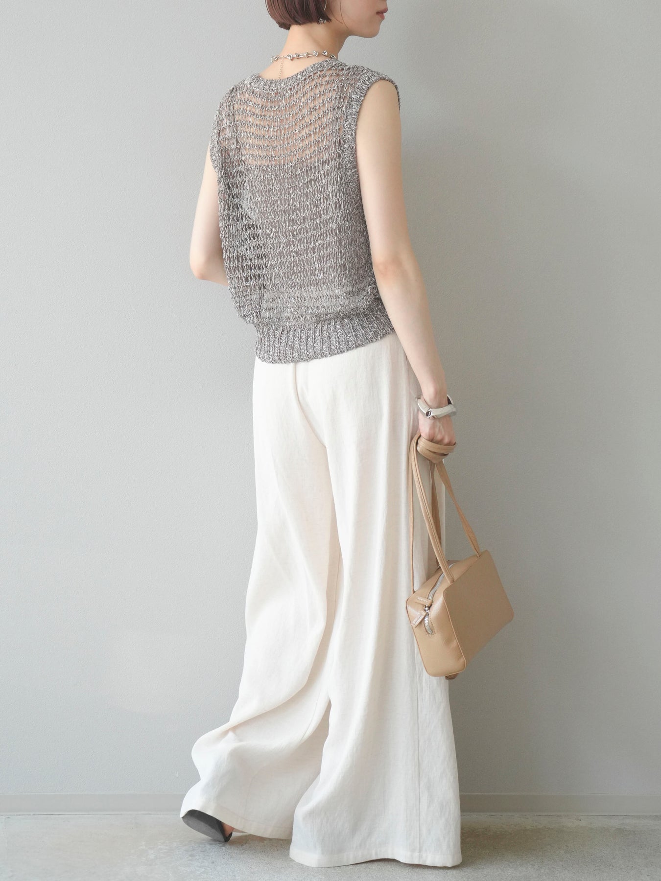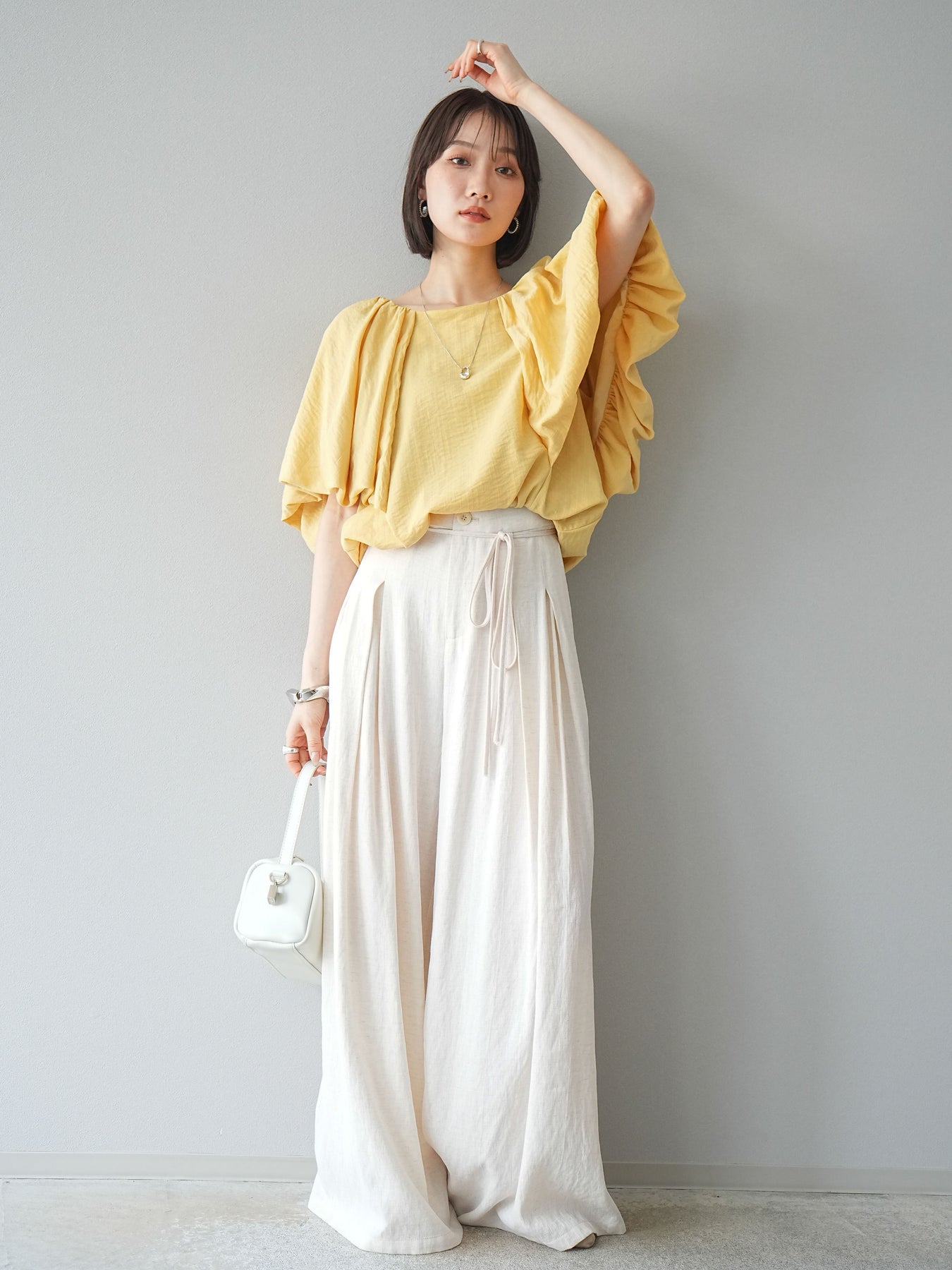 【預購】仿亞麻雙褶設計寬褲/象牙白