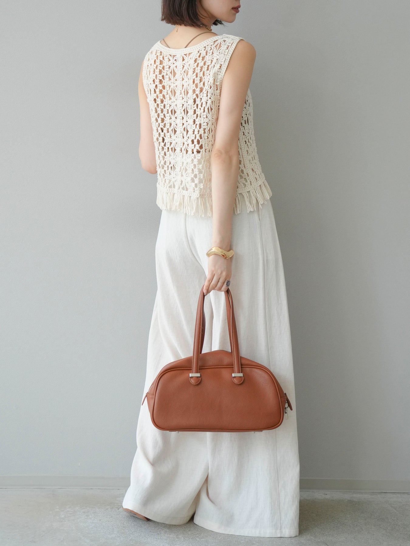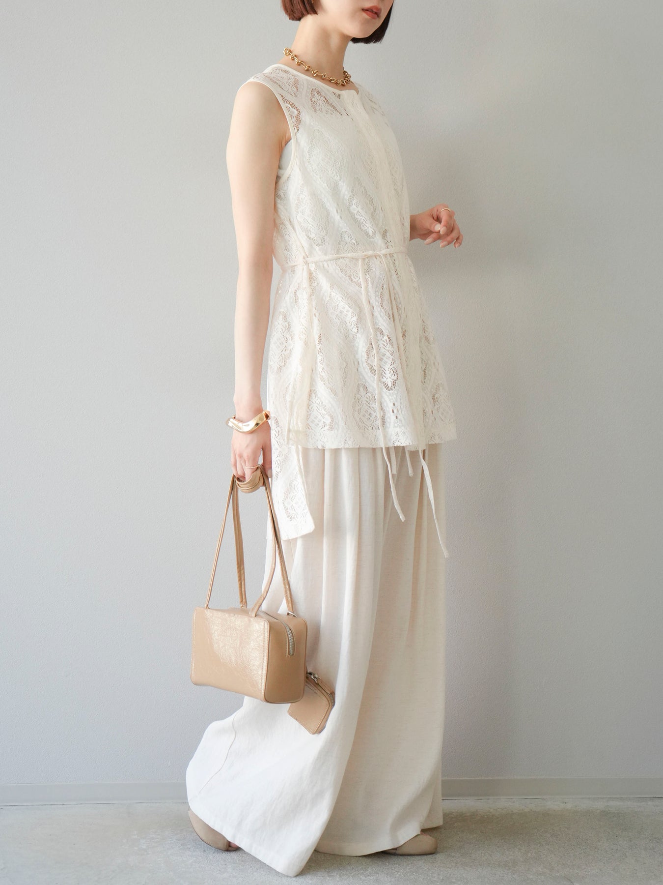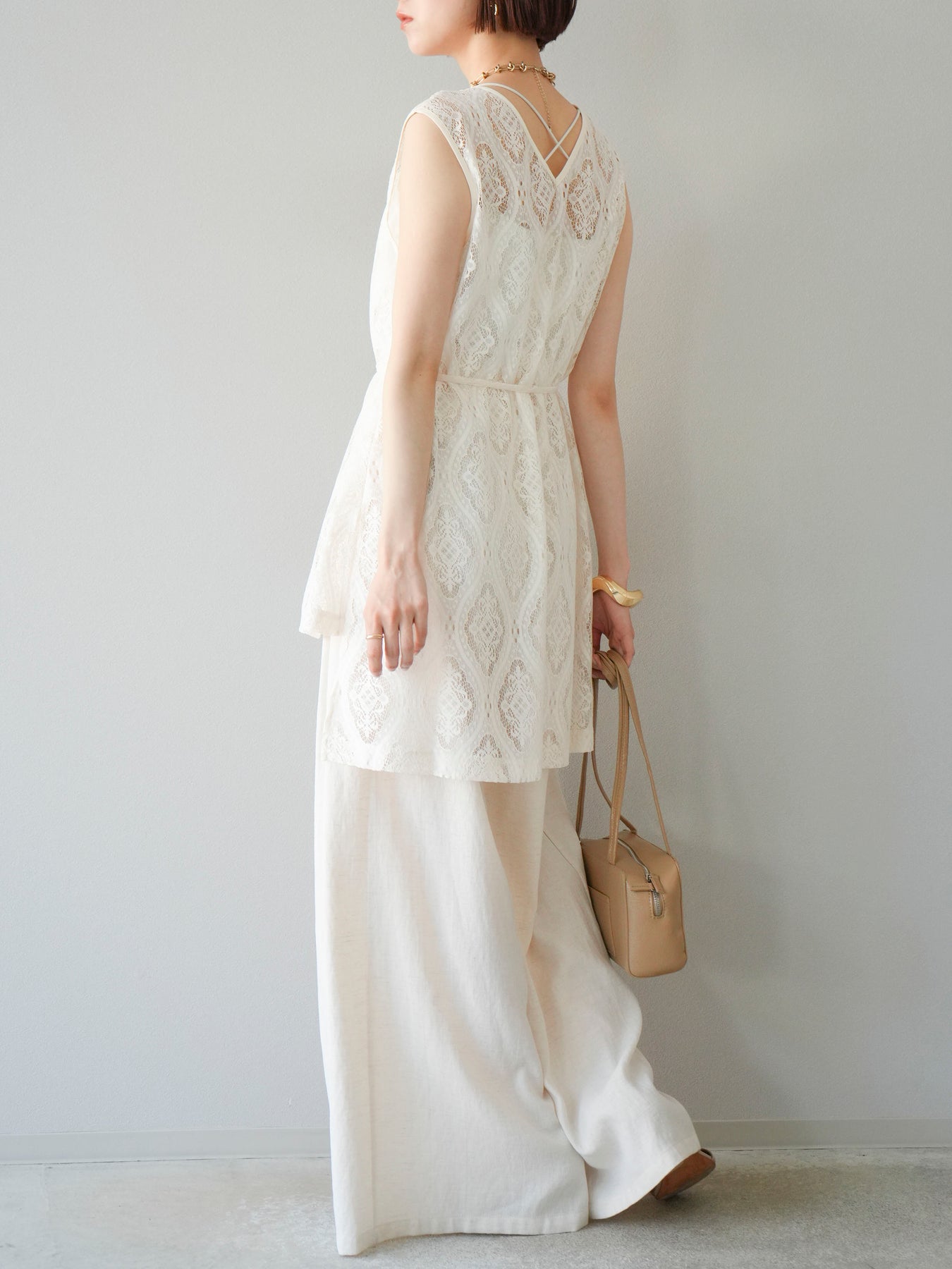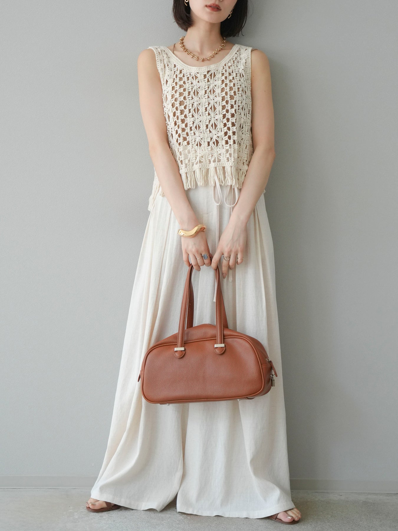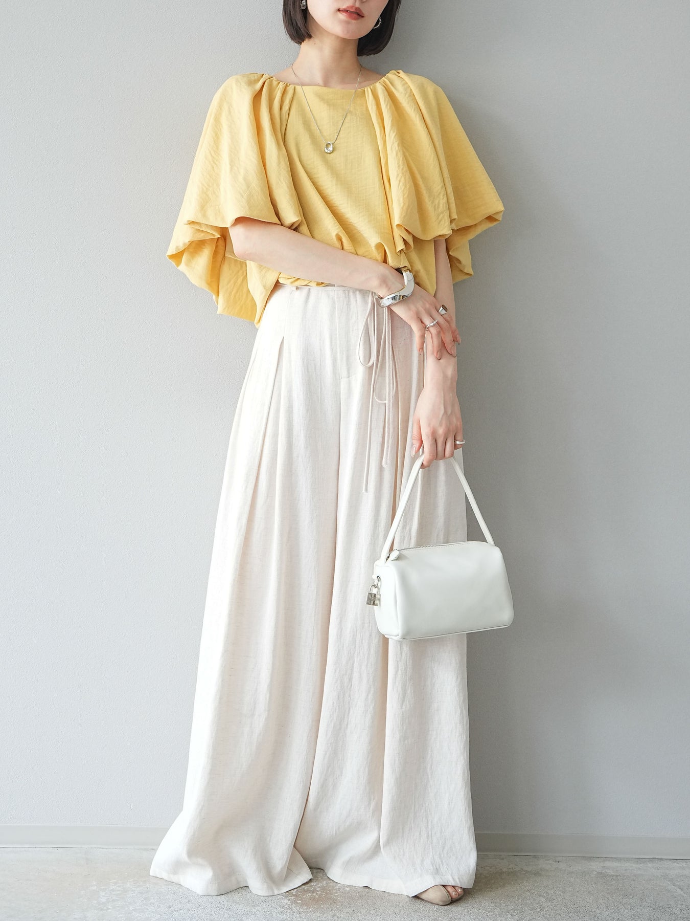 【預購】仿亞麻雙褶設計寬褲/象牙白
