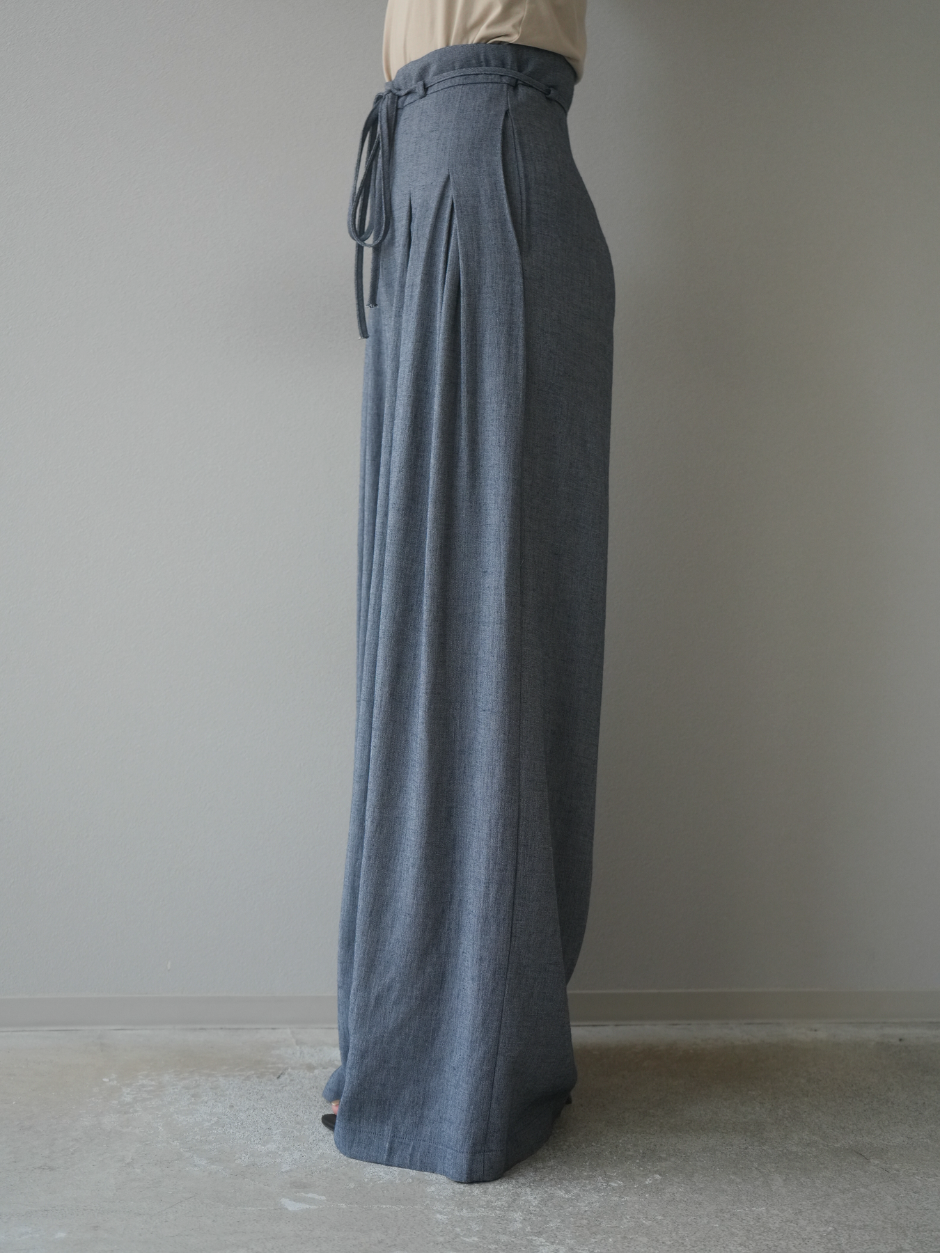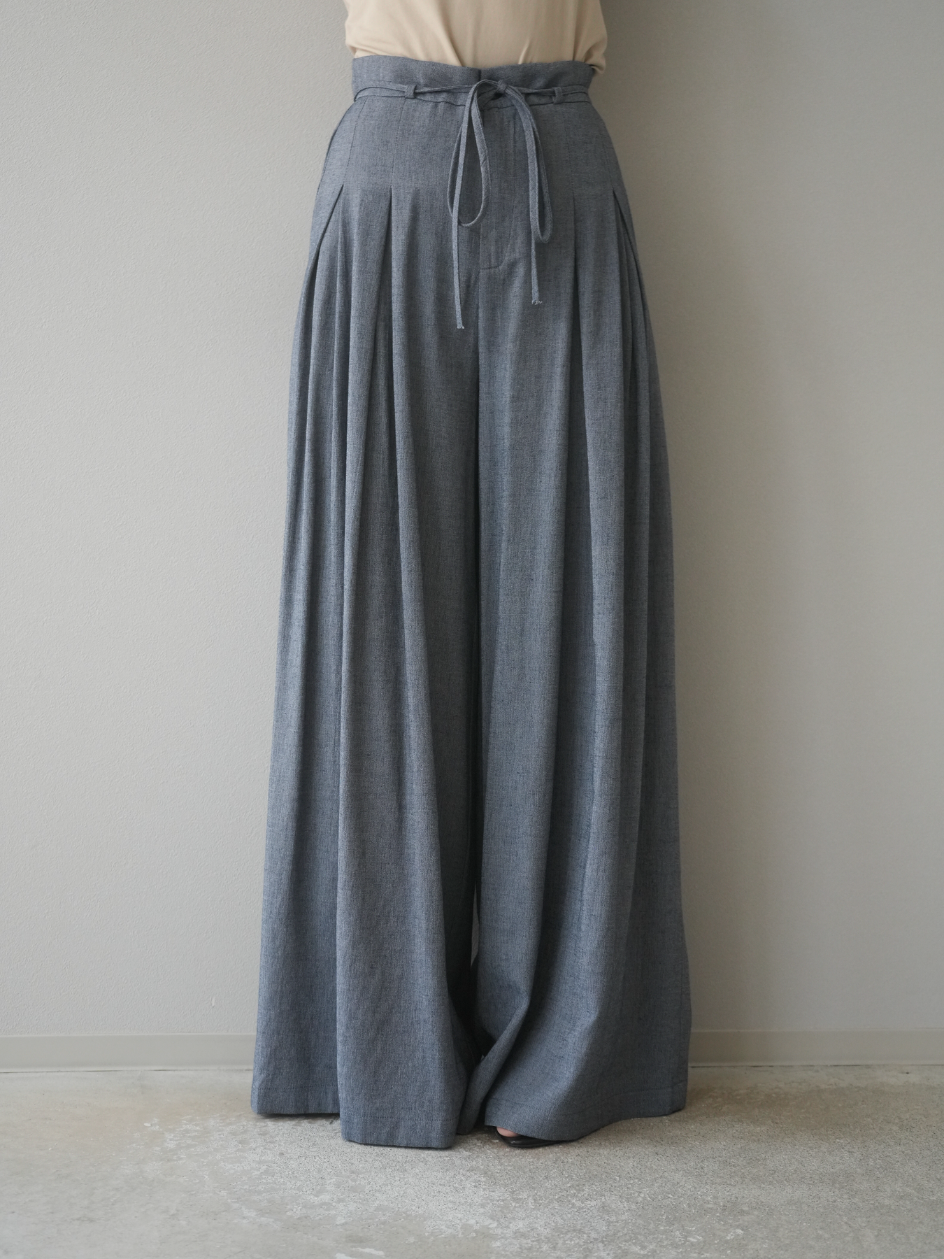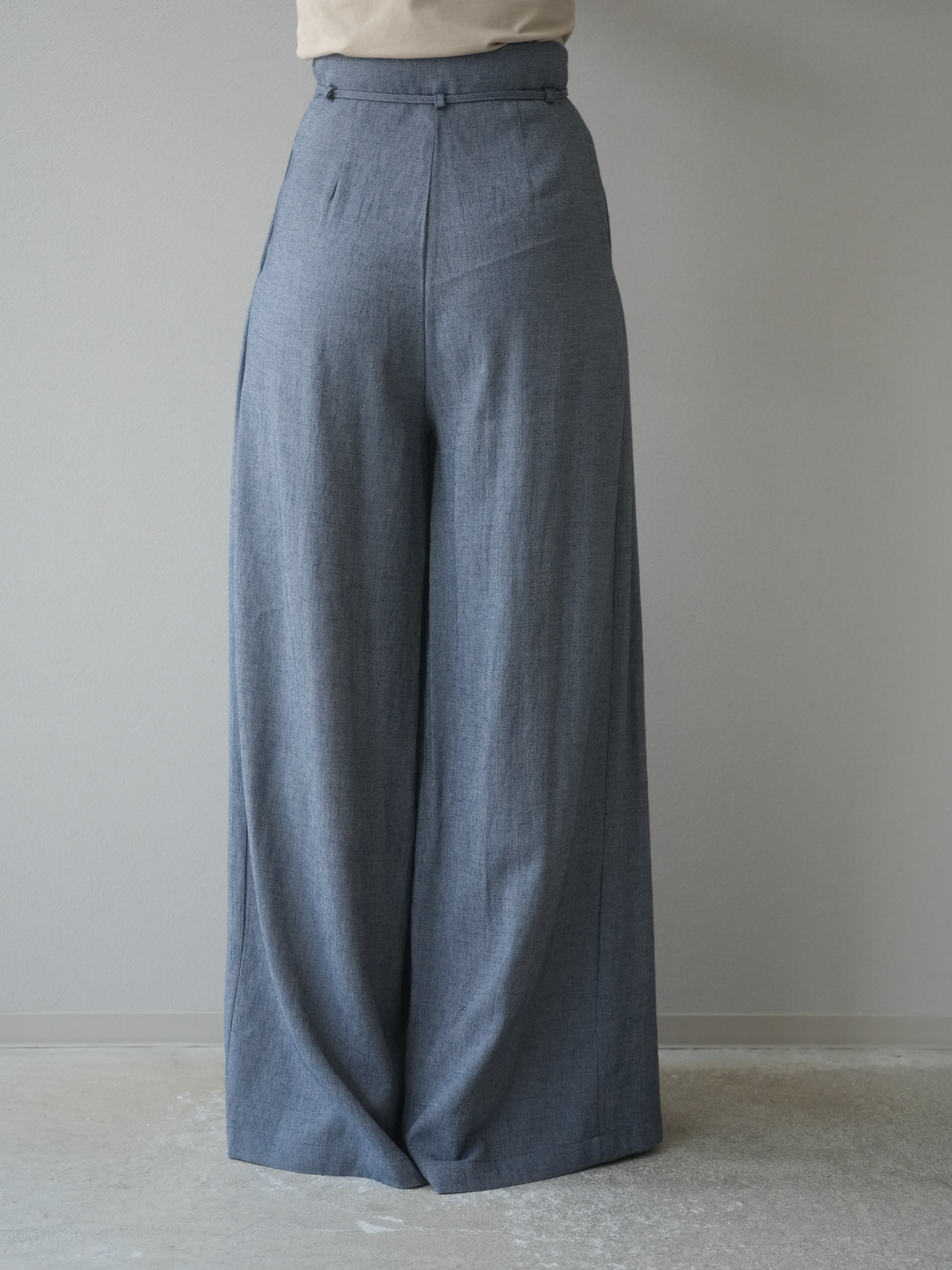 【預購】仿亞麻雙褶設計寬褲/藏青色