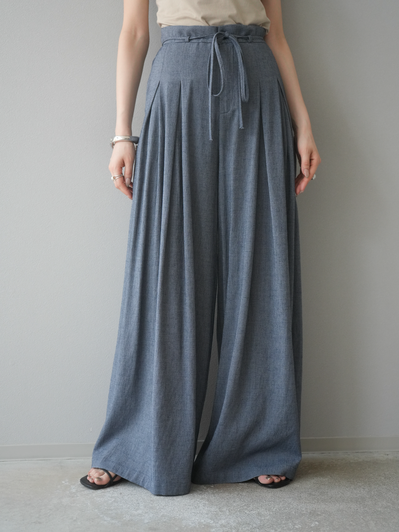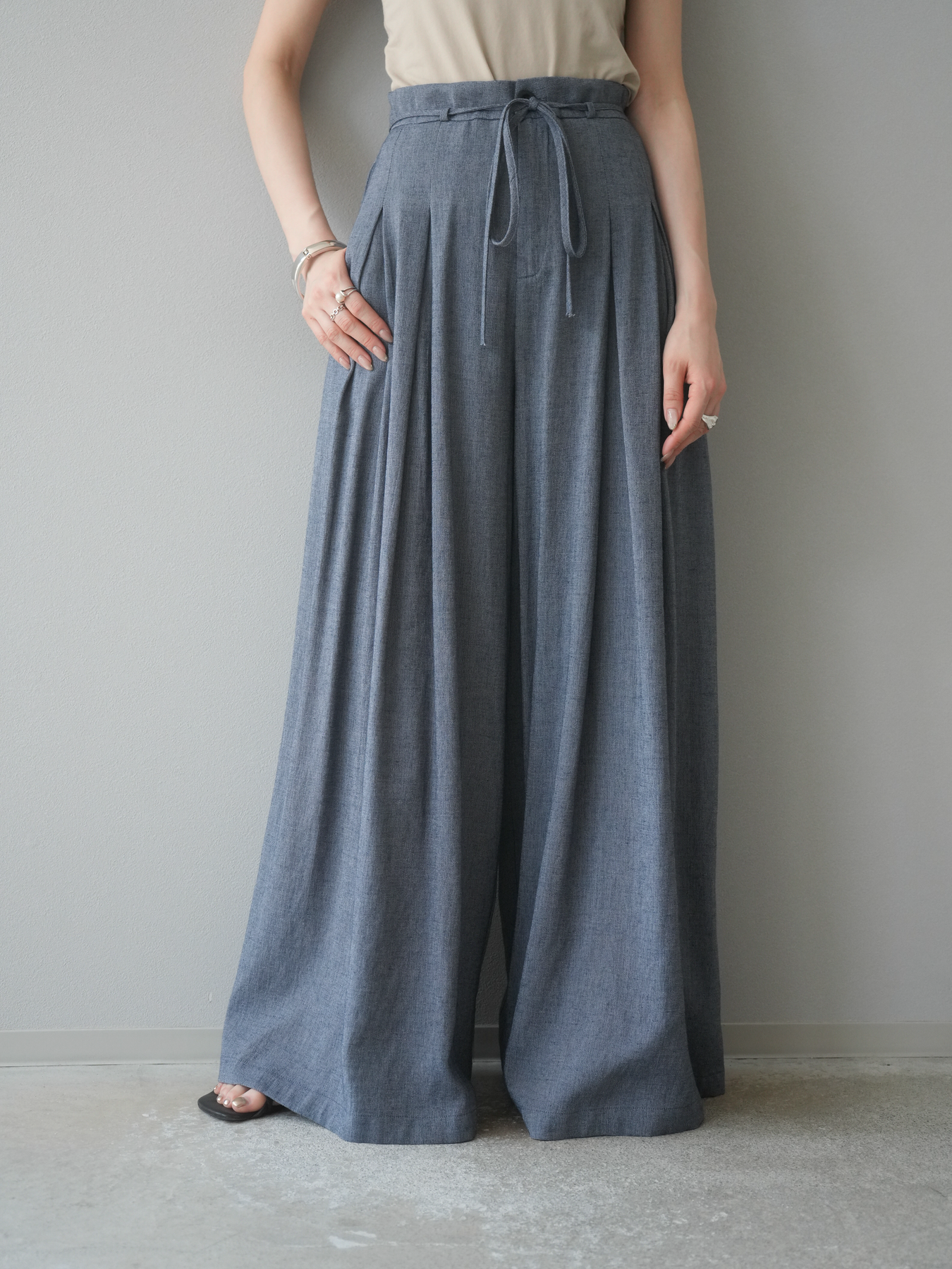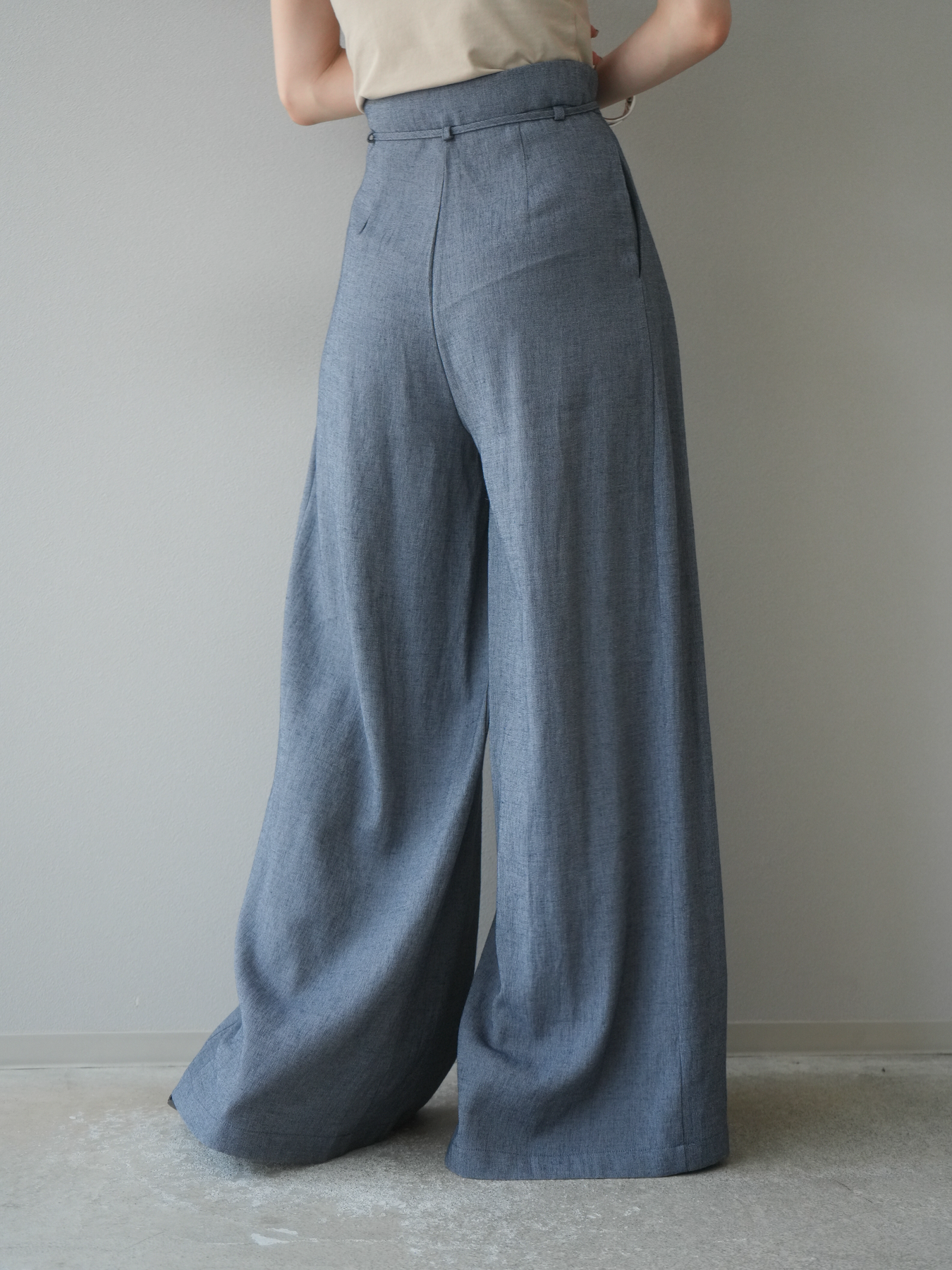 【預購】仿亞麻雙褶設計寬褲/藏青色