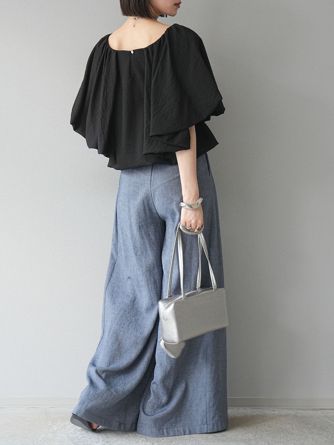 保養說明:建議在30°C或以下水溫下手洗。由於布料特性,洗滌過程中可能會出現褪色和縮水,因此建議單獨洗滌短時間。將衣物翻面,放入洗衣網中,選擇手洗模式洗滌,洗滌後,整理衣物後懸掛晾乾。 *請勿烘乾。 如果在濕潤狀態下摩擦,可能會褪色或串色。請避免浸泡或讓衣物被雨水或汗水浸濕,並及時處理。穿著時,請注意避免摩擦、汗水、水漬以及與不同顏色衣物疊穿。