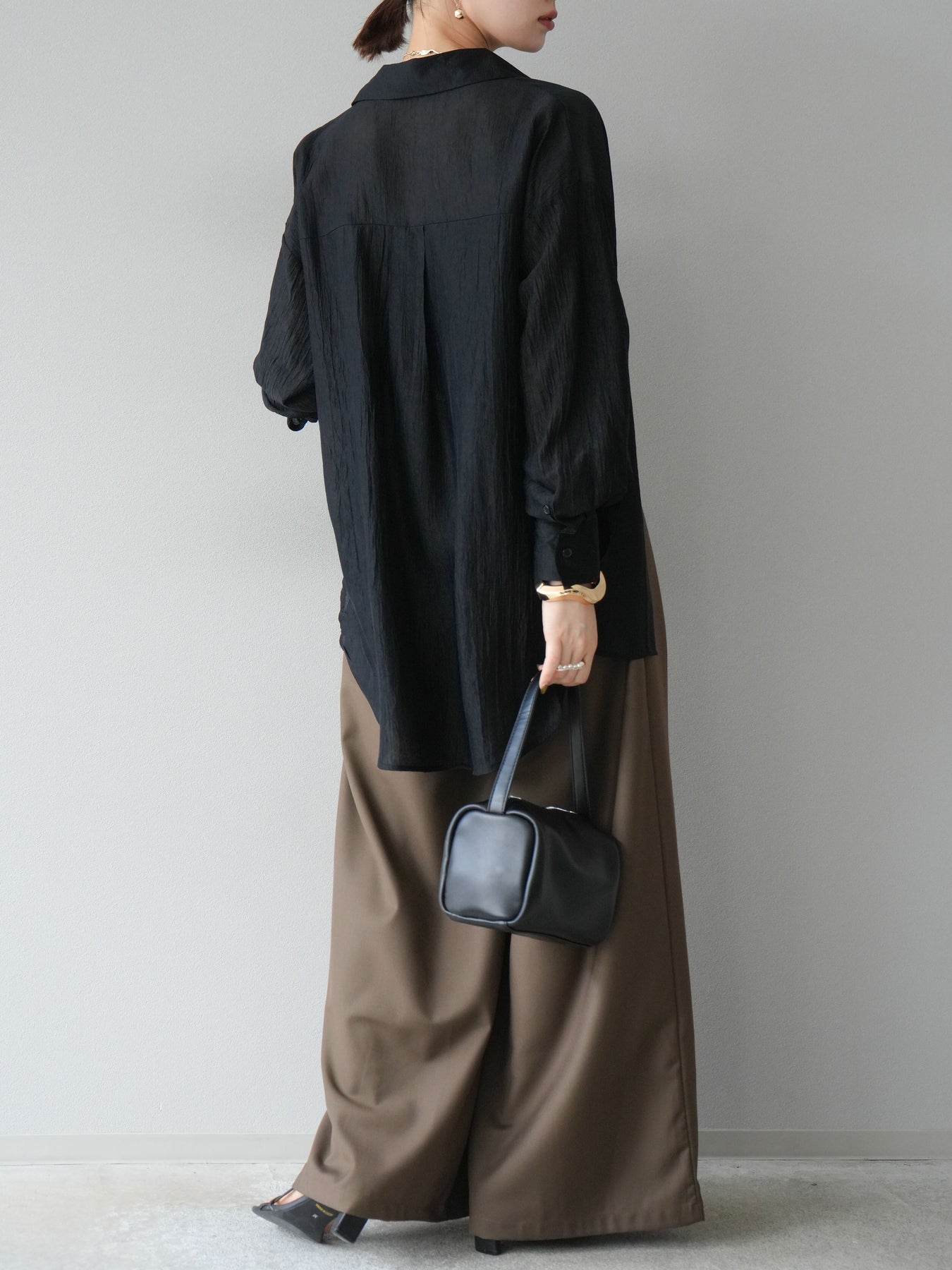 ・保養說明:建議在30℃以下水溫下手洗。由於材質特性,洗滌過程中可能會褪色,建議單獨洗滌短時間。將衣物翻面,放入洗衣網,選擇手洗模式洗滌,洗滌後整理懸掛晾乾。 *請勿使用滾筒烘乾機。如果在濕潤狀態下揉搓,可能會出現褪色或串色。避免浸泡或被雨水或汗水浸濕,並請立即丟棄。穿著時,請注意避免摩擦、汗水、水漬,以及與不同顏色衣物疊穿。