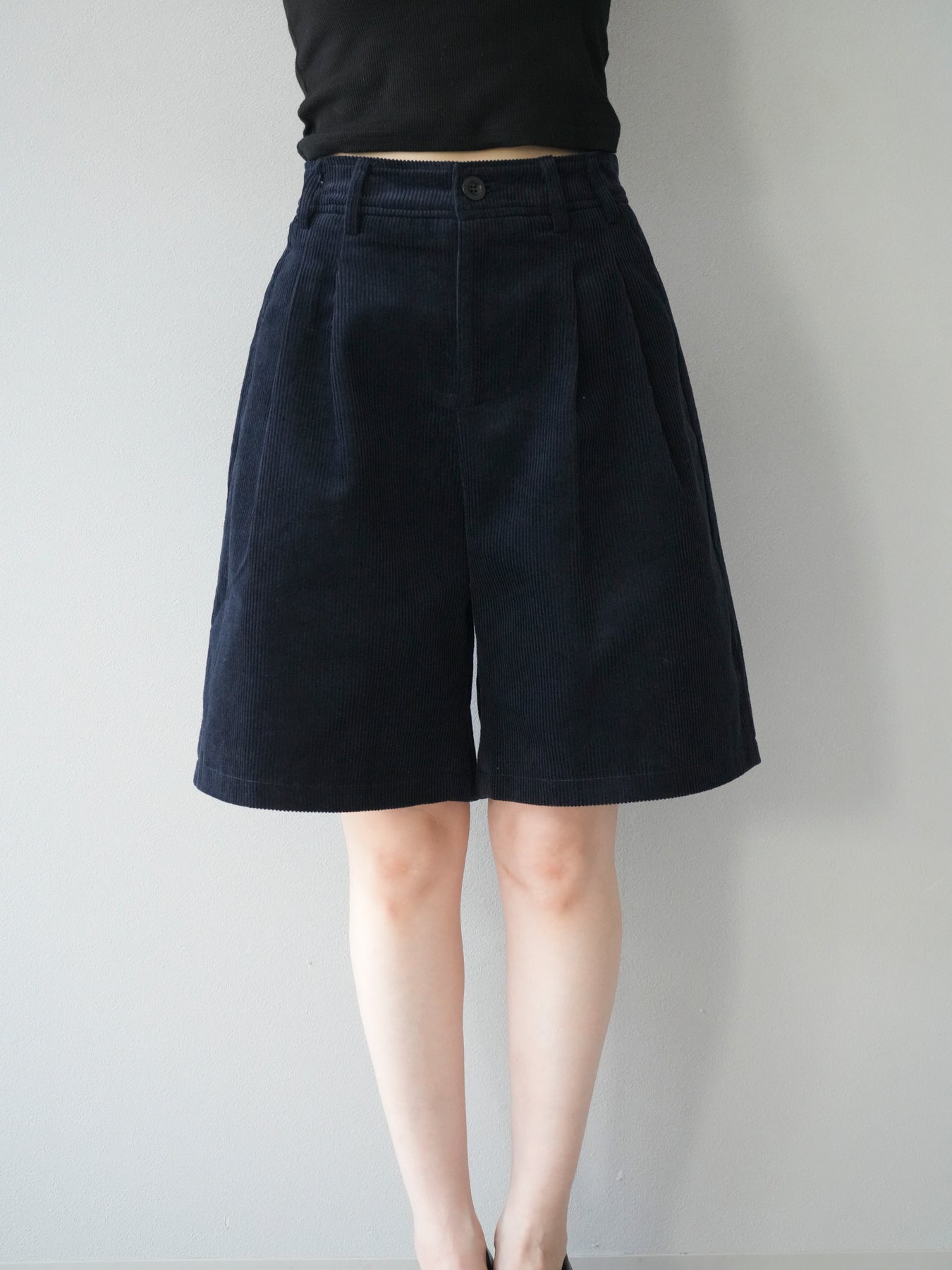季節感のあるコーデュロイ素材を使用したハーフパンツ。程よい厚みと柔らかな質感が特徴で、ラフさの中に上品さをプラスしてくれる一枚です。タック入りのシルエットが腰回りをすっきりと見せつつ、ゆとりのあるデザインで快適な穿き心地を実現。スウェットやニットとのカジュアルな組み合わせはもちろん、シャツやジャケットと合わせて大人っぽく着こなすのもおすすめです。
