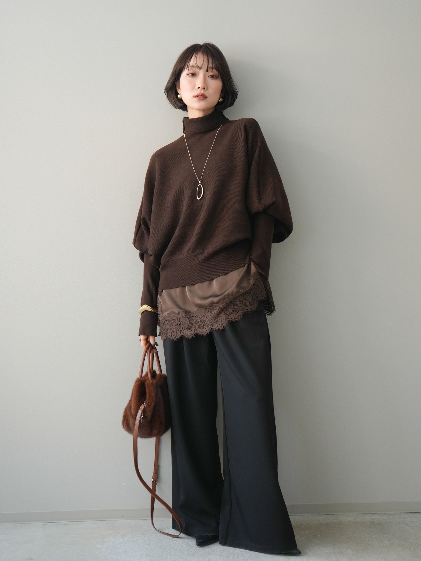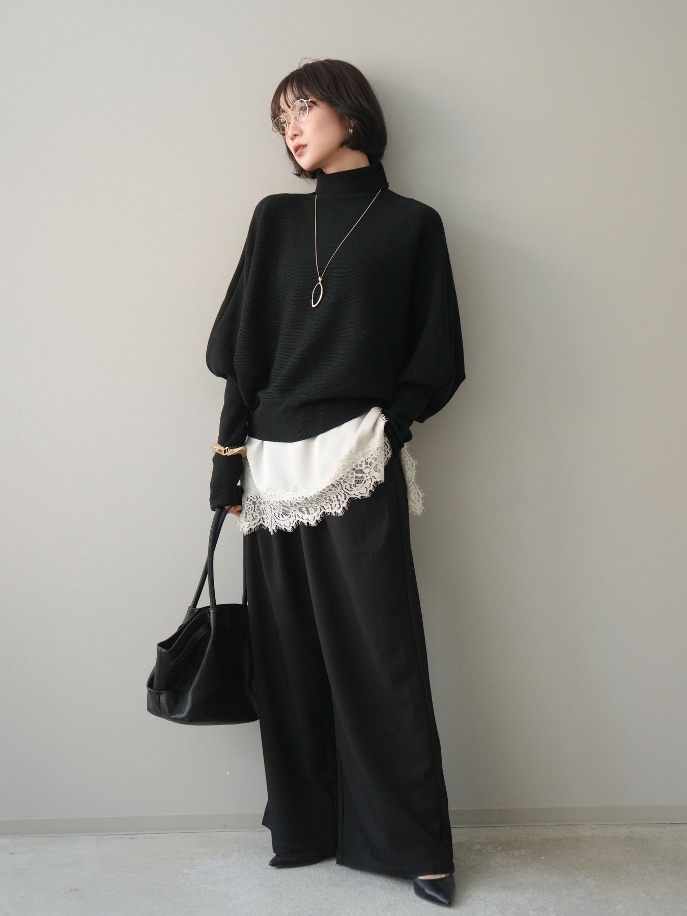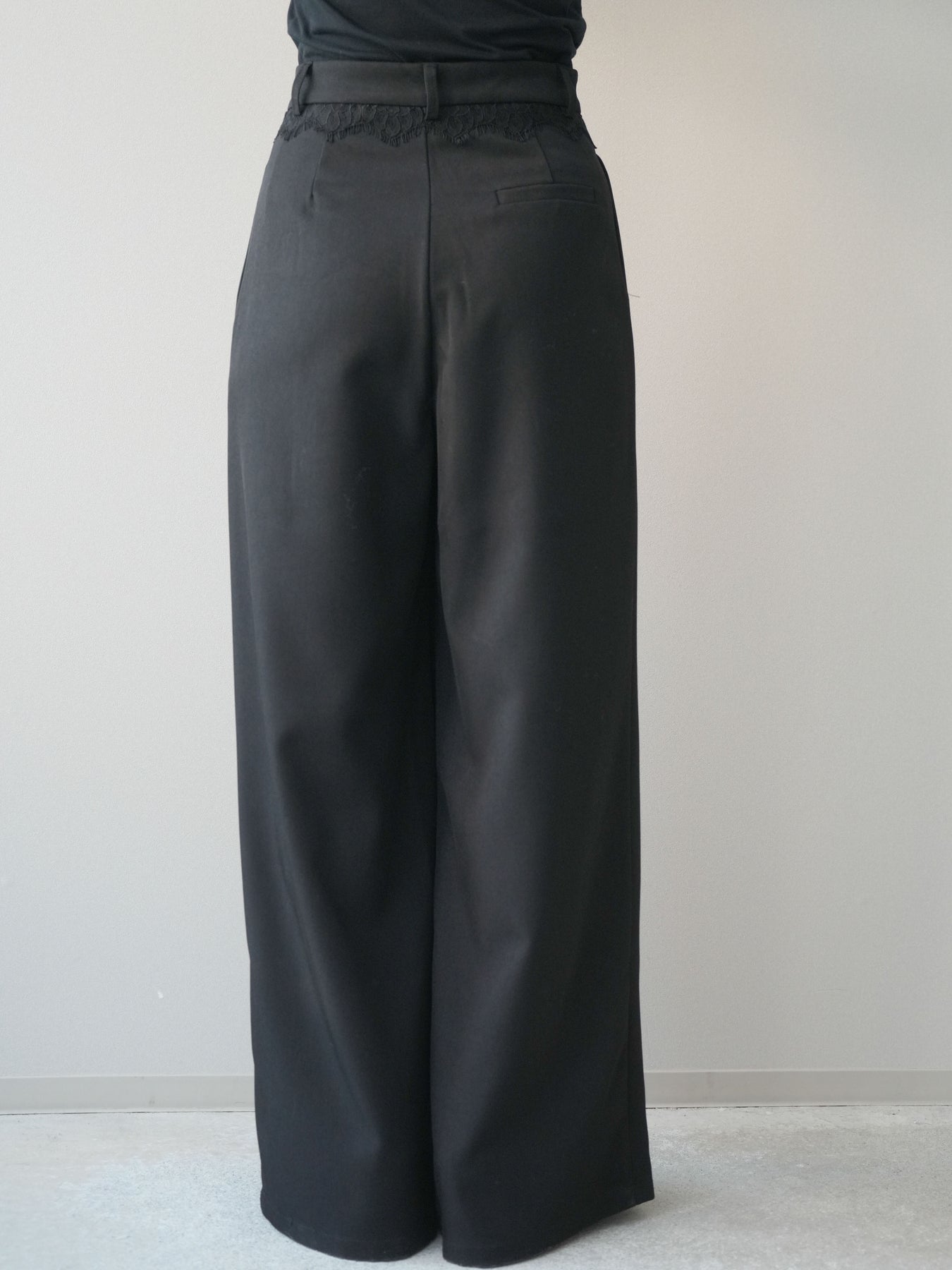 ウエスト部分にあしらったレースディテールが、さりげない華やかさを演出するタックワイドパンツ。フロントのタックが縦のラインを強調し、ワイドシルエットながらもすっきりとした印象に仕上げます。落ち感のある素材で動くたびに美しいシルエットを保ち、体のラインを拾いにくいのもポイント。きれいめトップスからカジュアルなアイテムまで幅広く合わせやすく、デイリーからお出かけまで活躍する一本です。