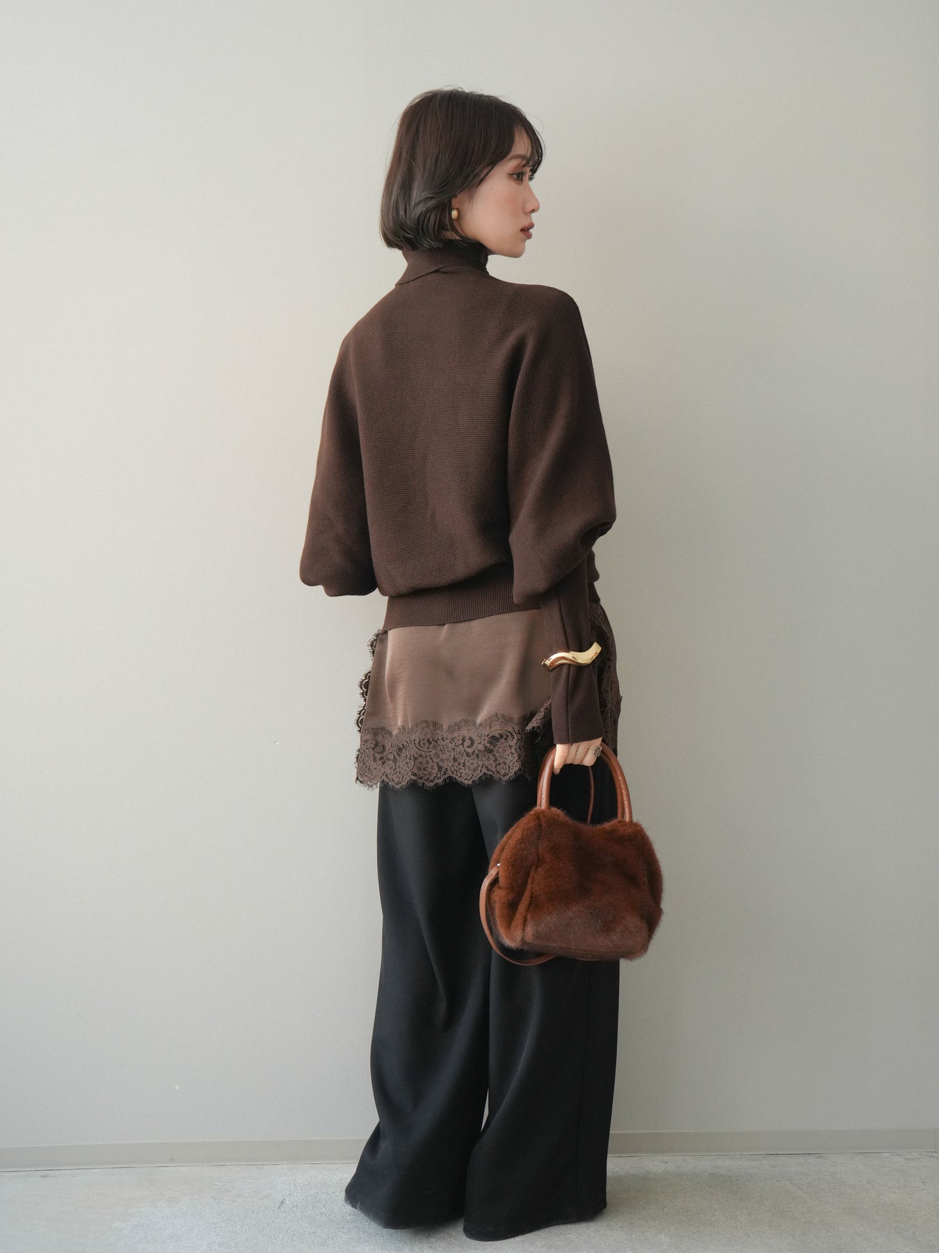 ・お手入れ方法:水温30℃以下手洗い優しく押し洗いでのお洗濯をお薦めします。素材の特性上、洗濯の際に毛抜け・色落ち・縮みが生じる恐れがありますので単独で・短時間でのお洗濯をお薦めします。裏返してネットに入れ手洗いコースで洗濯、洗濯後は形を整えてから干してください。※タンブラー乾燥は控えてください。 濡れたままの状態で擦れると、色落ち色移りすることがあります。つけ置き洗いや雨や汗で濡れたまま放置は避け、速やかに処理してください。着用中の摩擦や汗、水濡れ、濃淡差があるものとの重ね着にご注意ください。