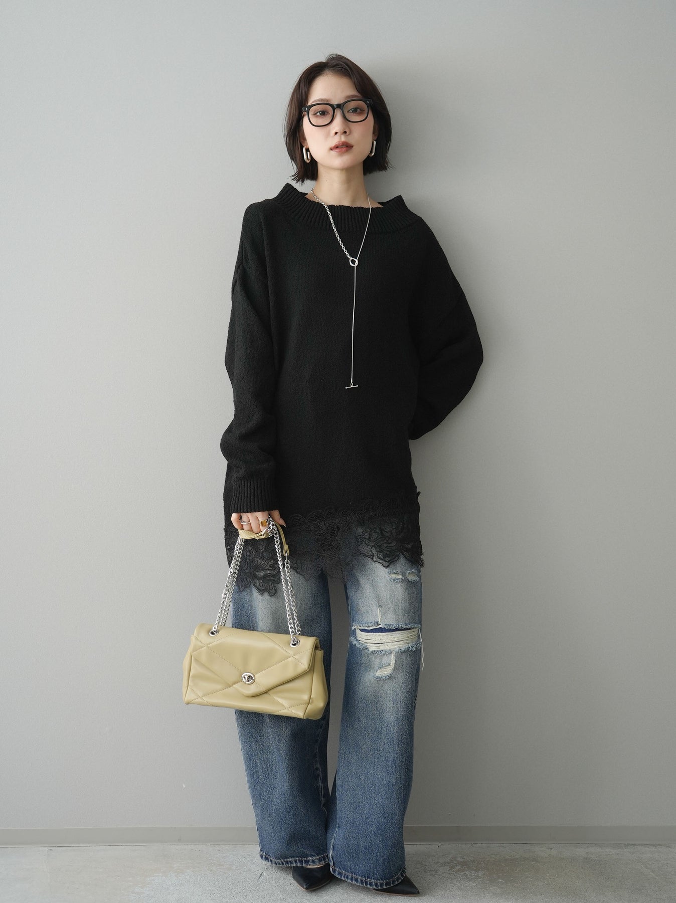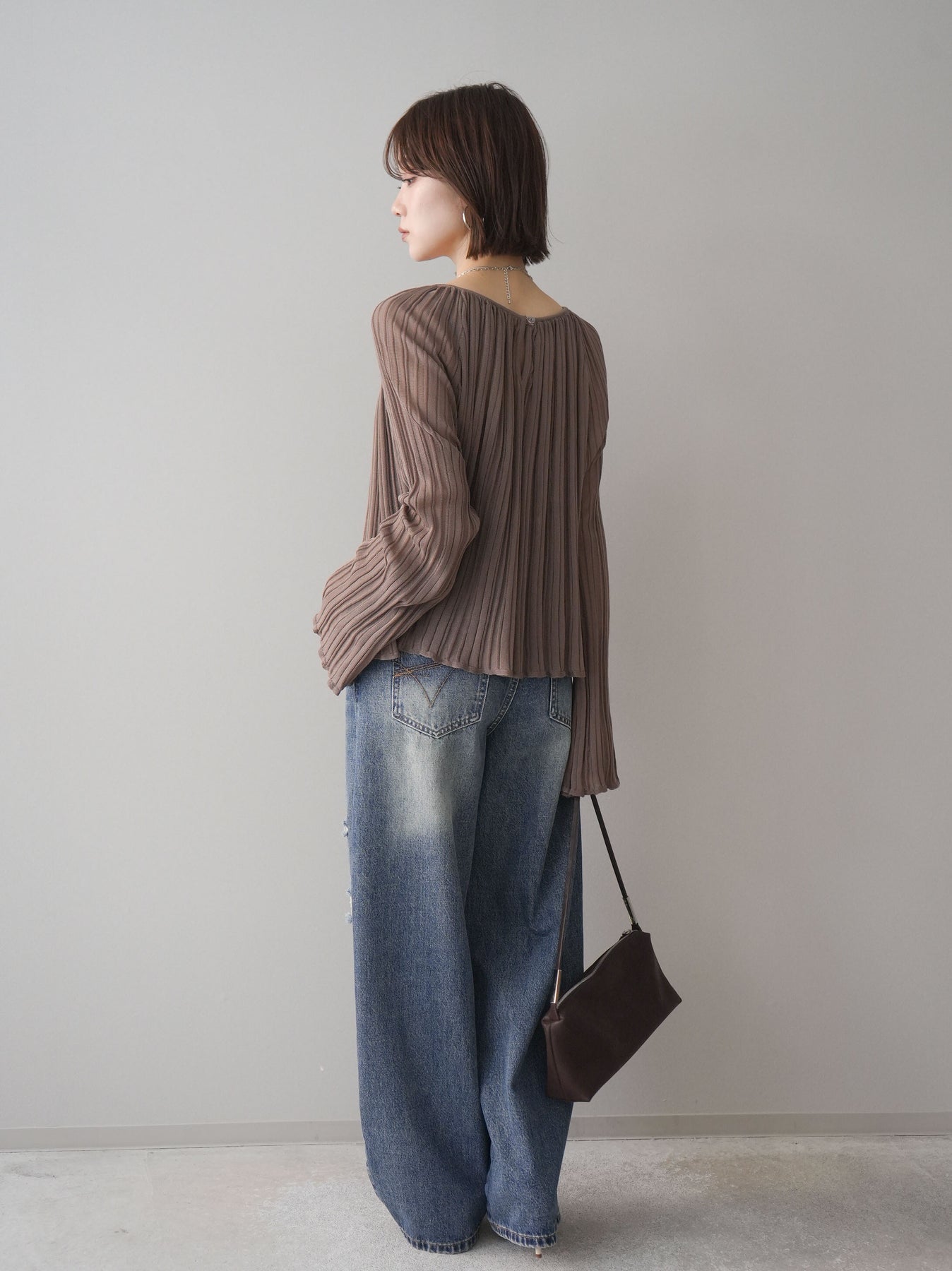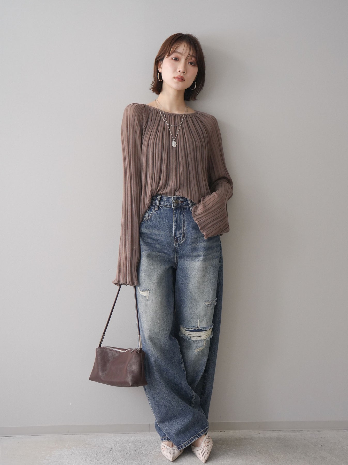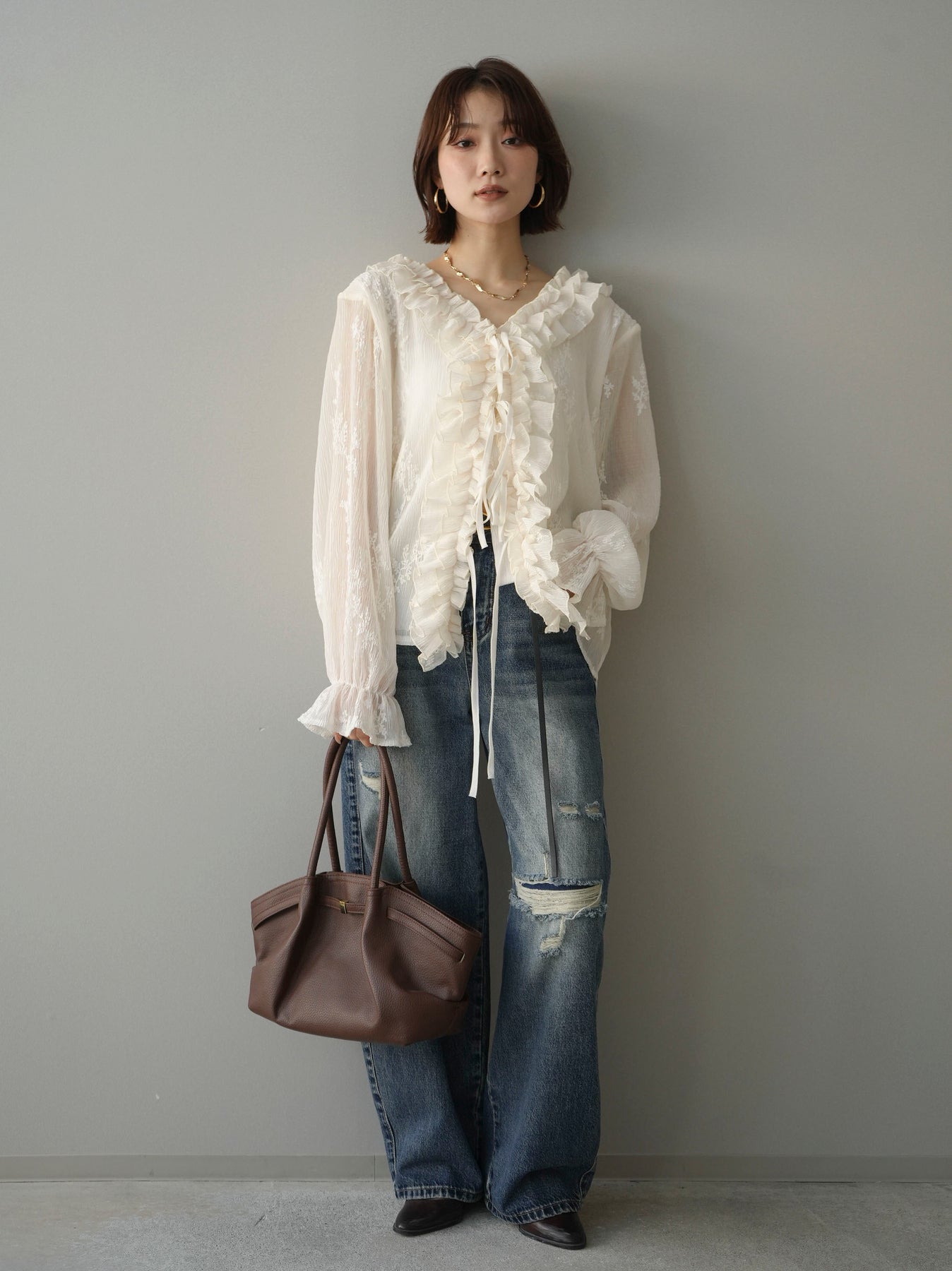 程よく施したダメージ加工がスタイリングに抜け感をプラスするデニムパンツ。ワイドなシルエットで脚のラインを拾いにくく、リラックス感のある着こなしが叶います。ヴィンテージライクな色落ちやクラッシュディテールがアクセントになり、シンプルなトップスと合わせるだけでこなれた印象に。シーズンレスで活躍する、ワードローブに加えたい一本です。 ※ボトムス、キャミソール(インナー)以外の商品は一律でインナーは付属していません