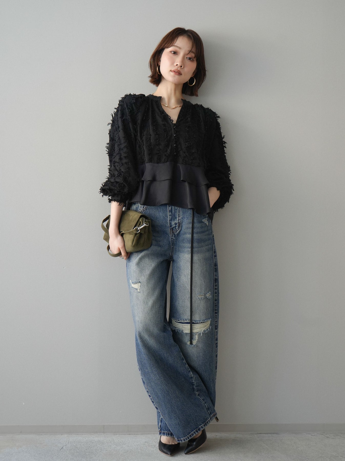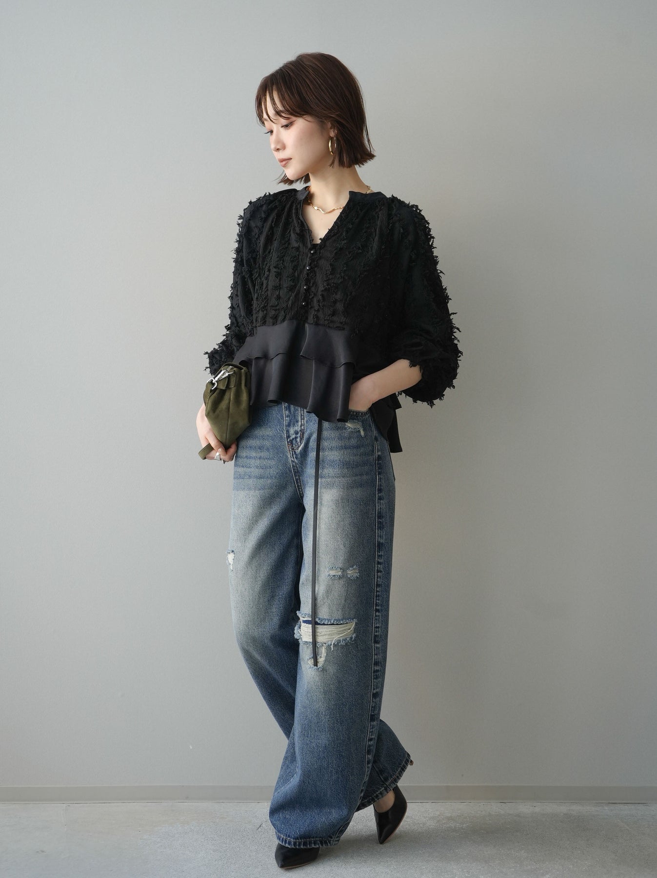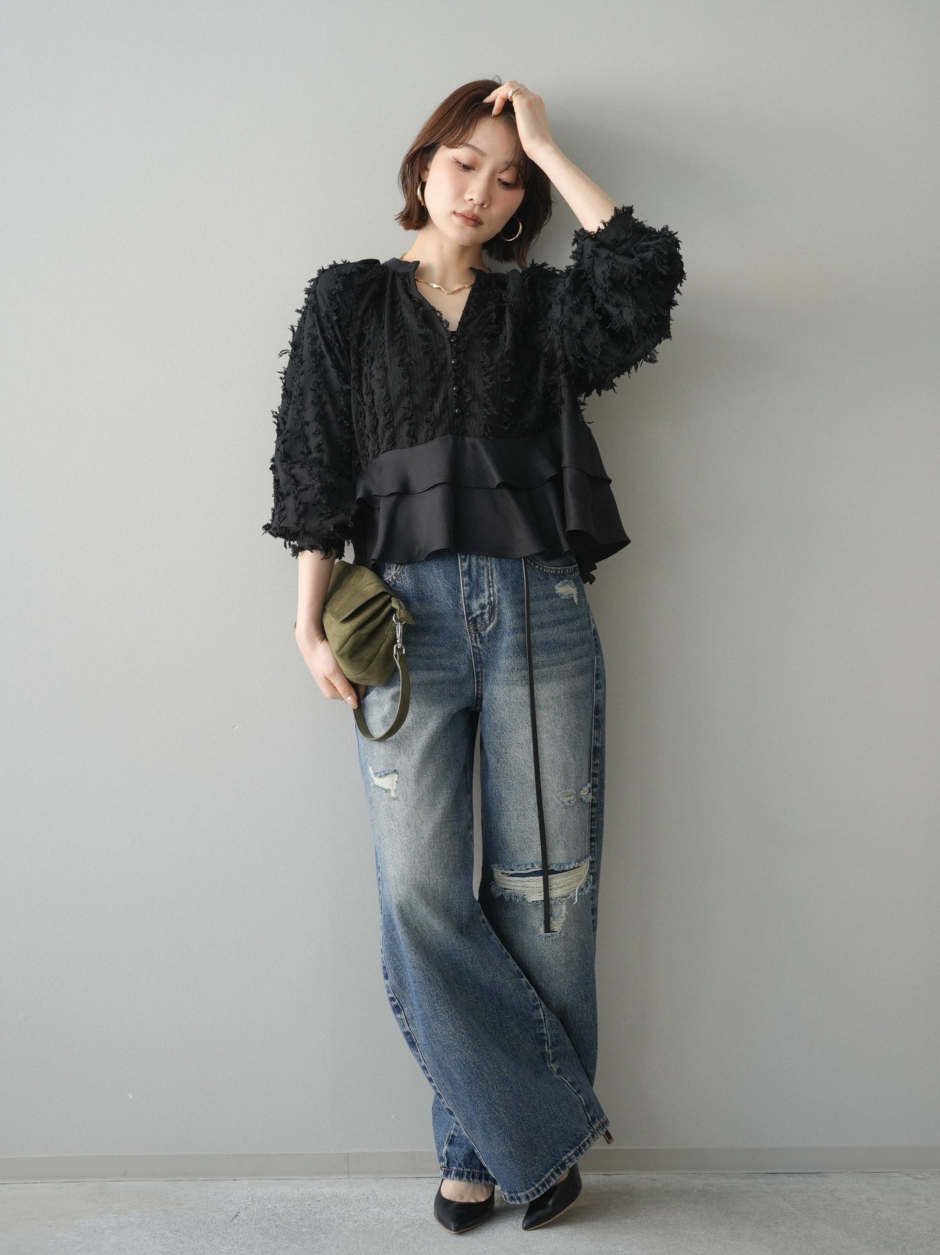 [予約]ダメージデニムセミワイドパンツに関連する商品を探す↓