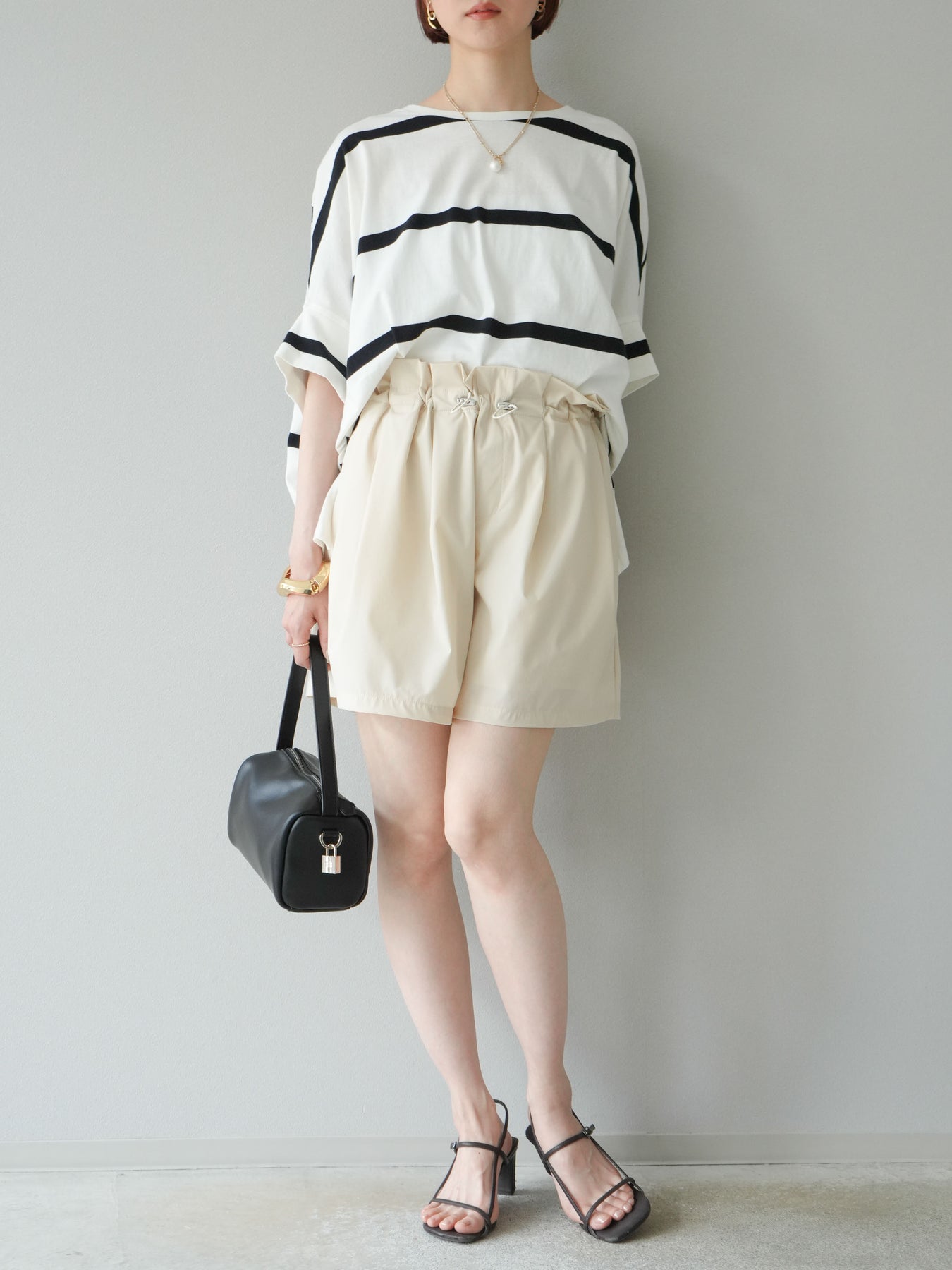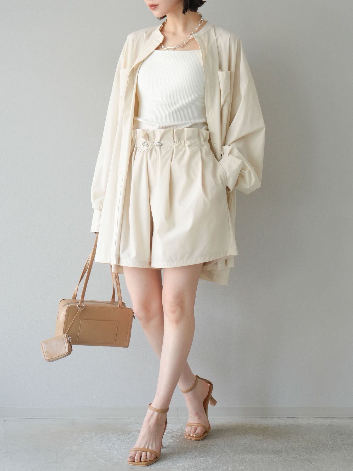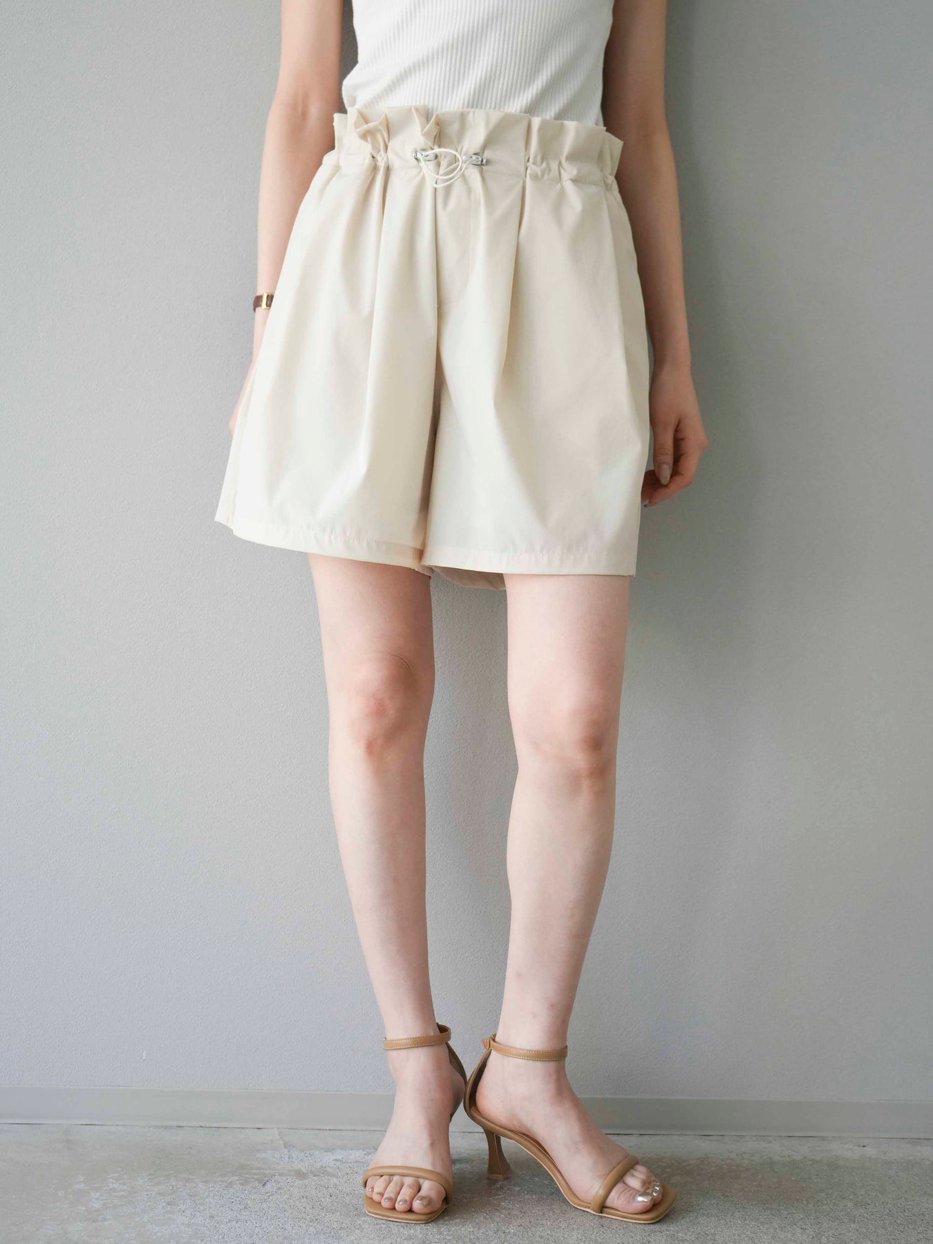 這款荷葉邊褶皺短褲採用ICE TOUCH布料製成,觸感清涼舒適。腰部的豐盈褶皺和抽繩,營造出簡約卻不失女性魅力的氛圍。褲腳略為加寬的喇叭褲型,不僅穿著舒適,還能凸顯腿部線條。這款輕盈清爽的單品,無論是日常穿著還是度假休閒場合,都非常適合穿著。 ※除下裝、吊帶背心(內衣)以外的商品均不含內衣。