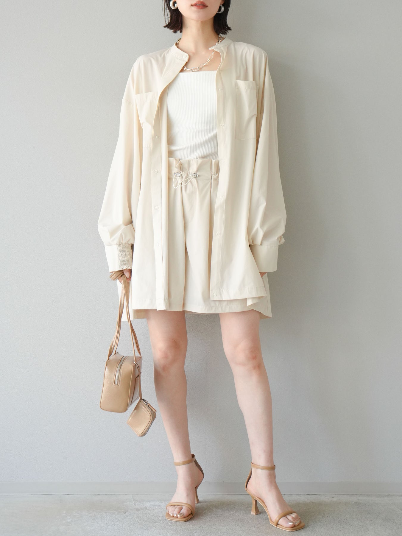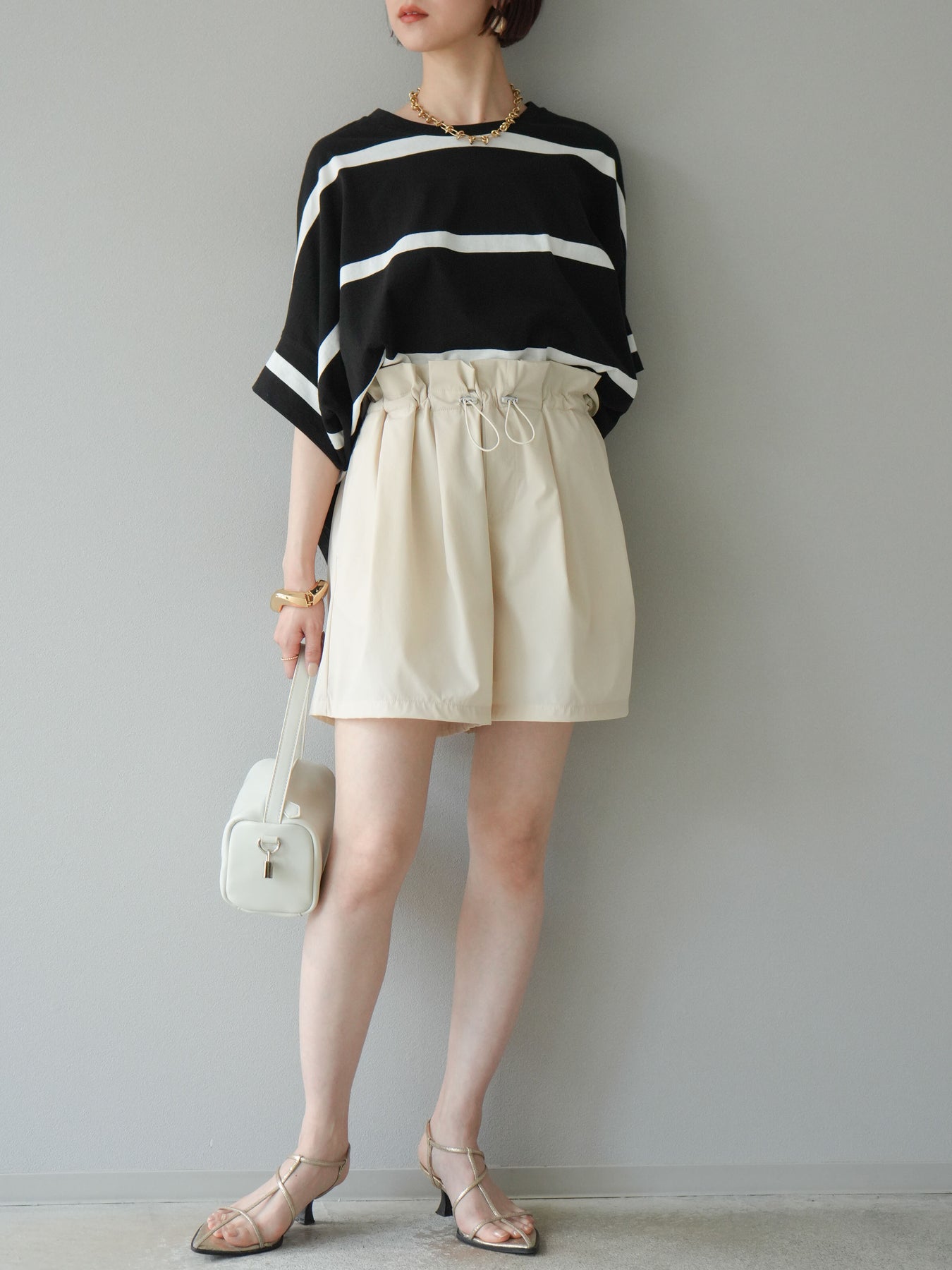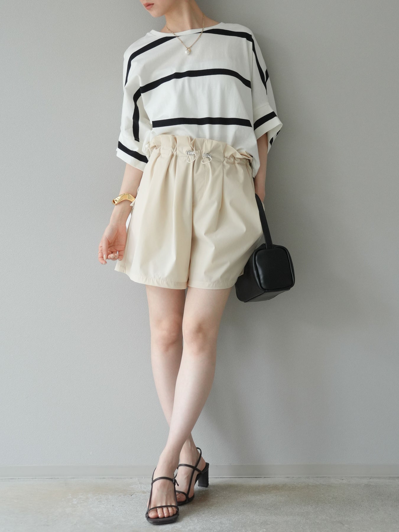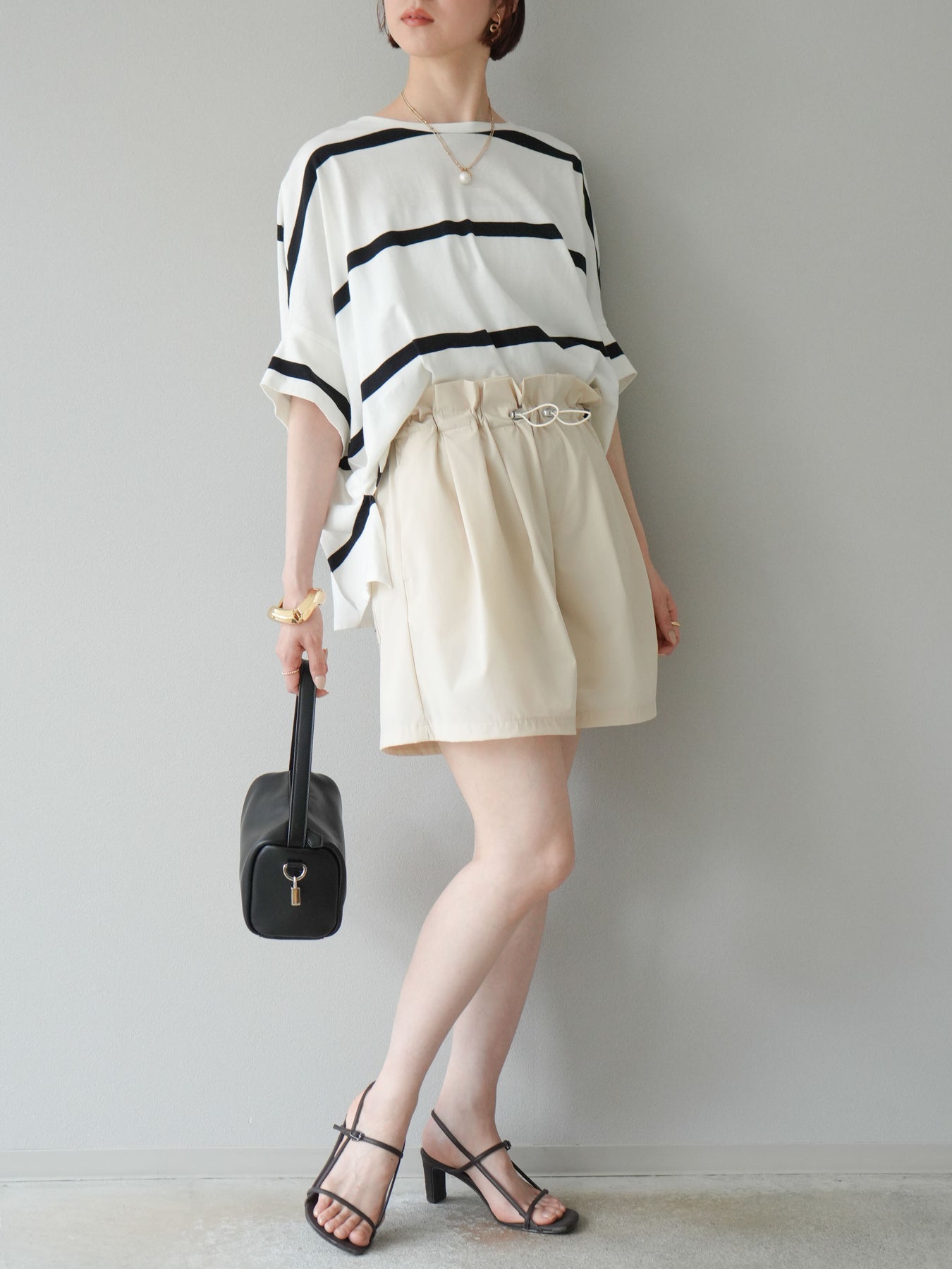這款荷葉邊褶皺短褲採用ICE TOUCH布料製成,觸感清涼舒適。腰部的豐盈褶皺和抽繩,營造出簡約卻不失女性魅力的氛圍。褲腳略為加寬的喇叭褲型,不僅穿著舒適,還能凸顯腿部線條。這款輕盈清爽的單品,無論是日常穿著還是度假休閒場合,都非常適合穿著。 ※除下裝、吊帶背心(內衣)以外的商品均不含內衣。