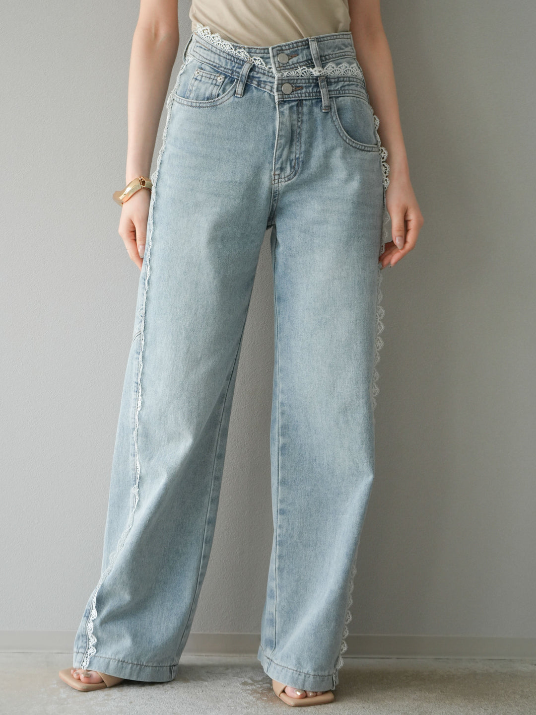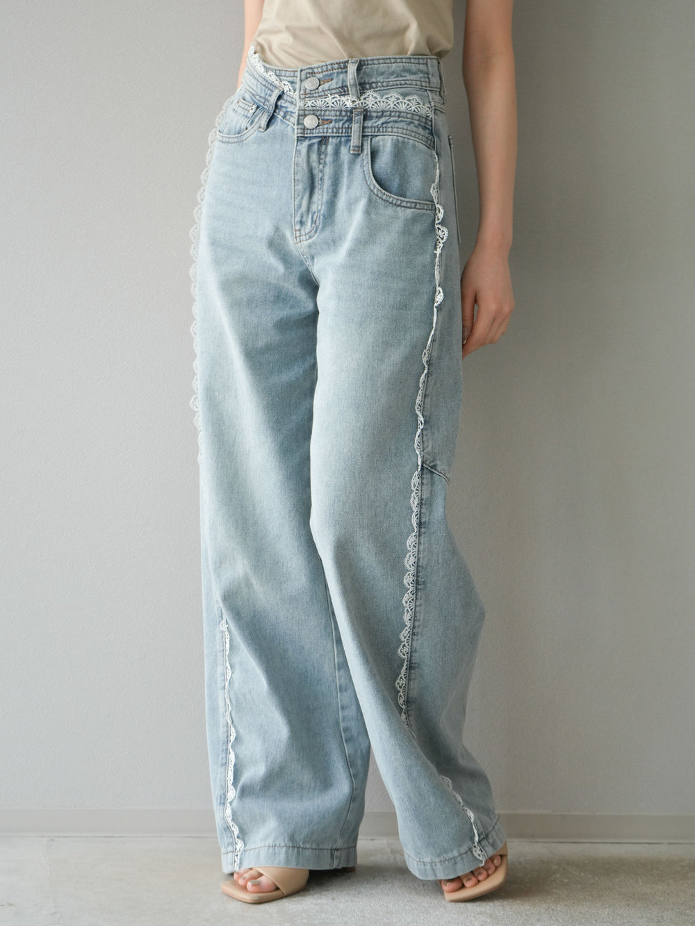 【預購】Line蕾絲牛仔褲/淺藍